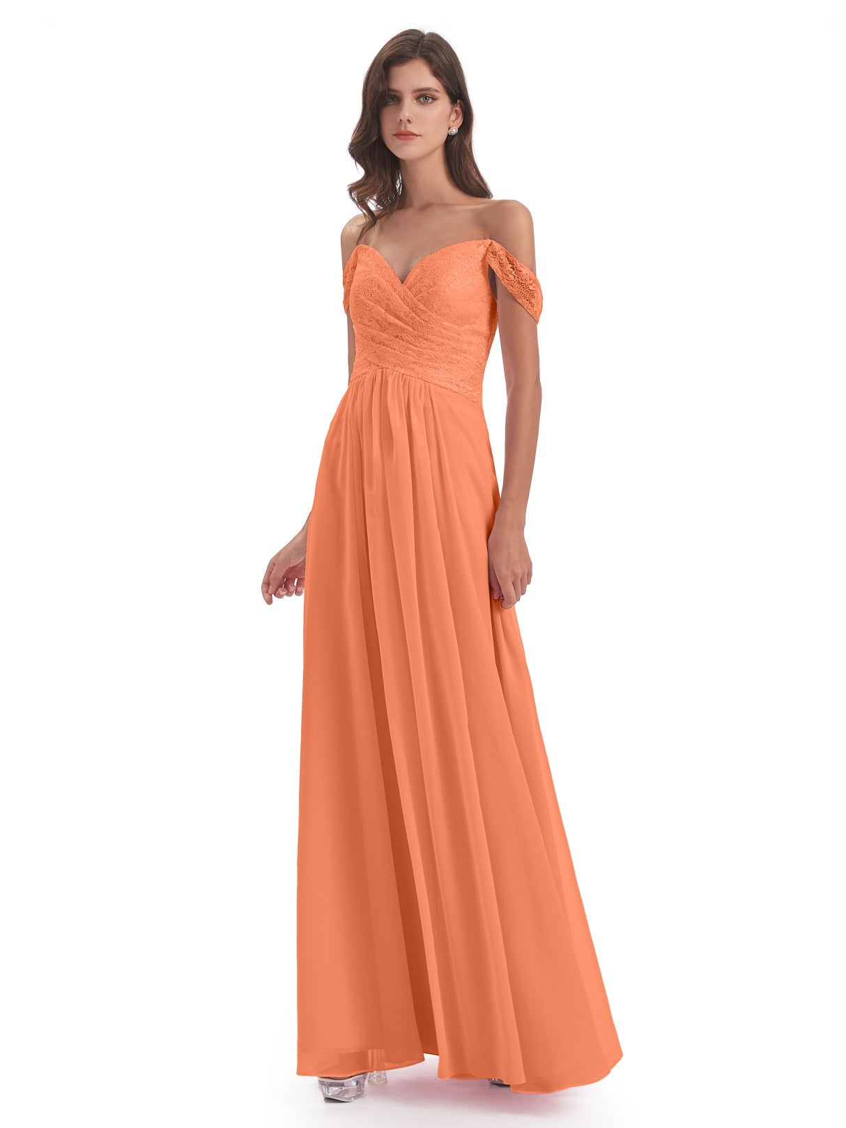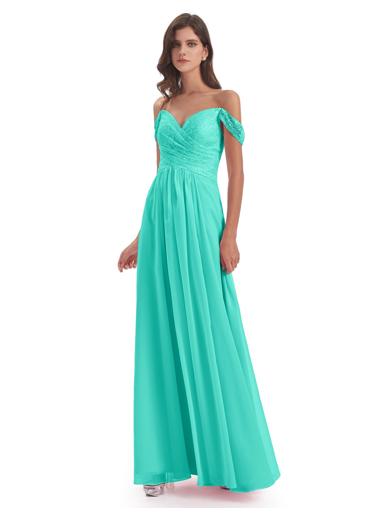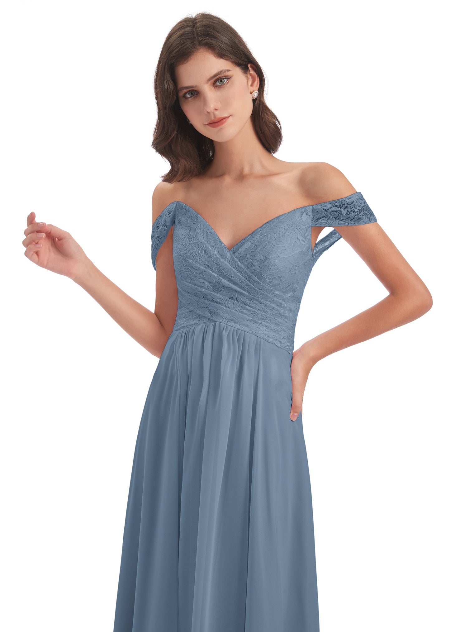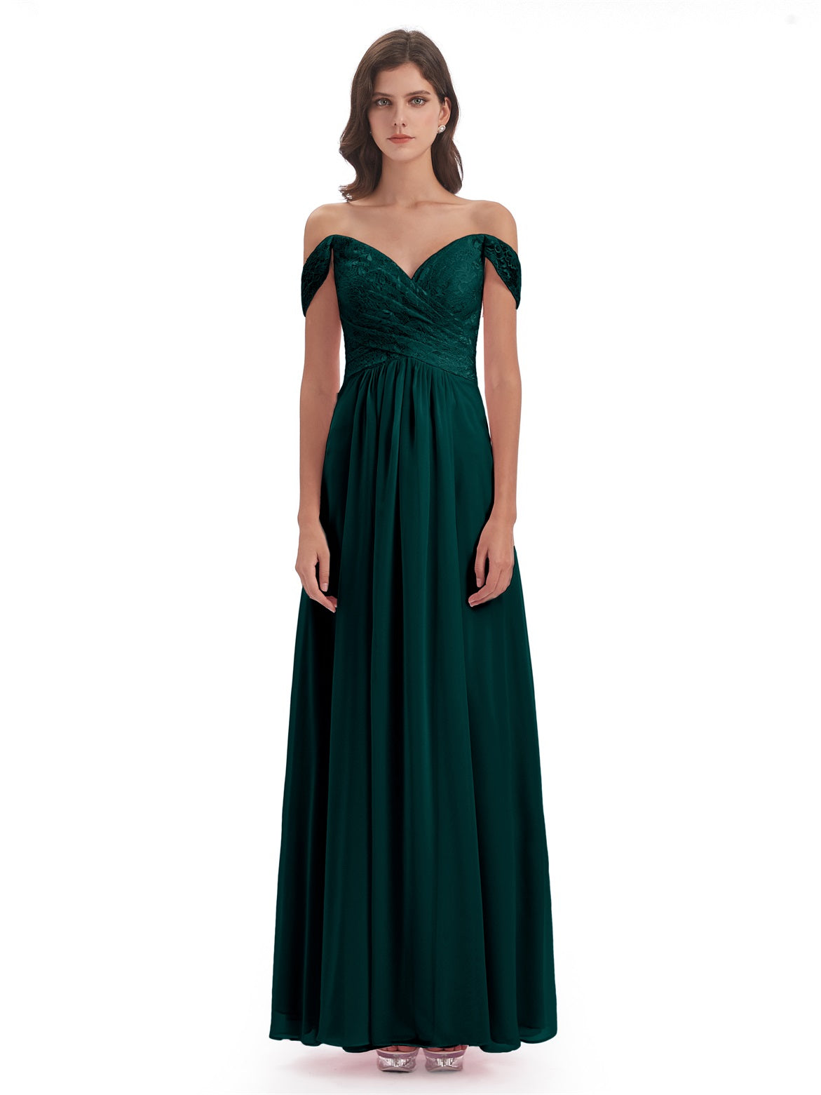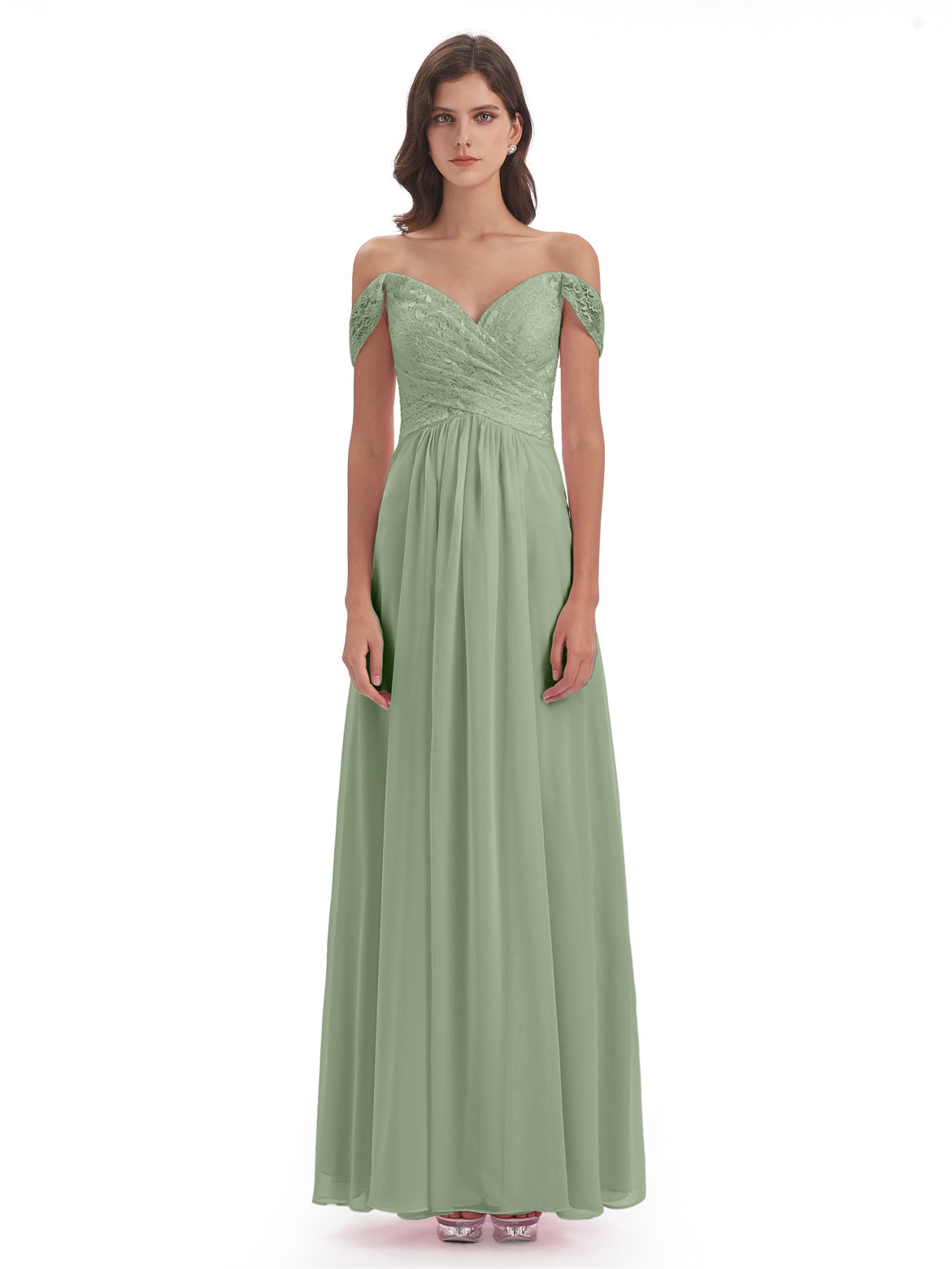 Marjorie A-Linie Bodenlange Schulterfreie Spitze/Chiffon Lange Brautjungfernkleider