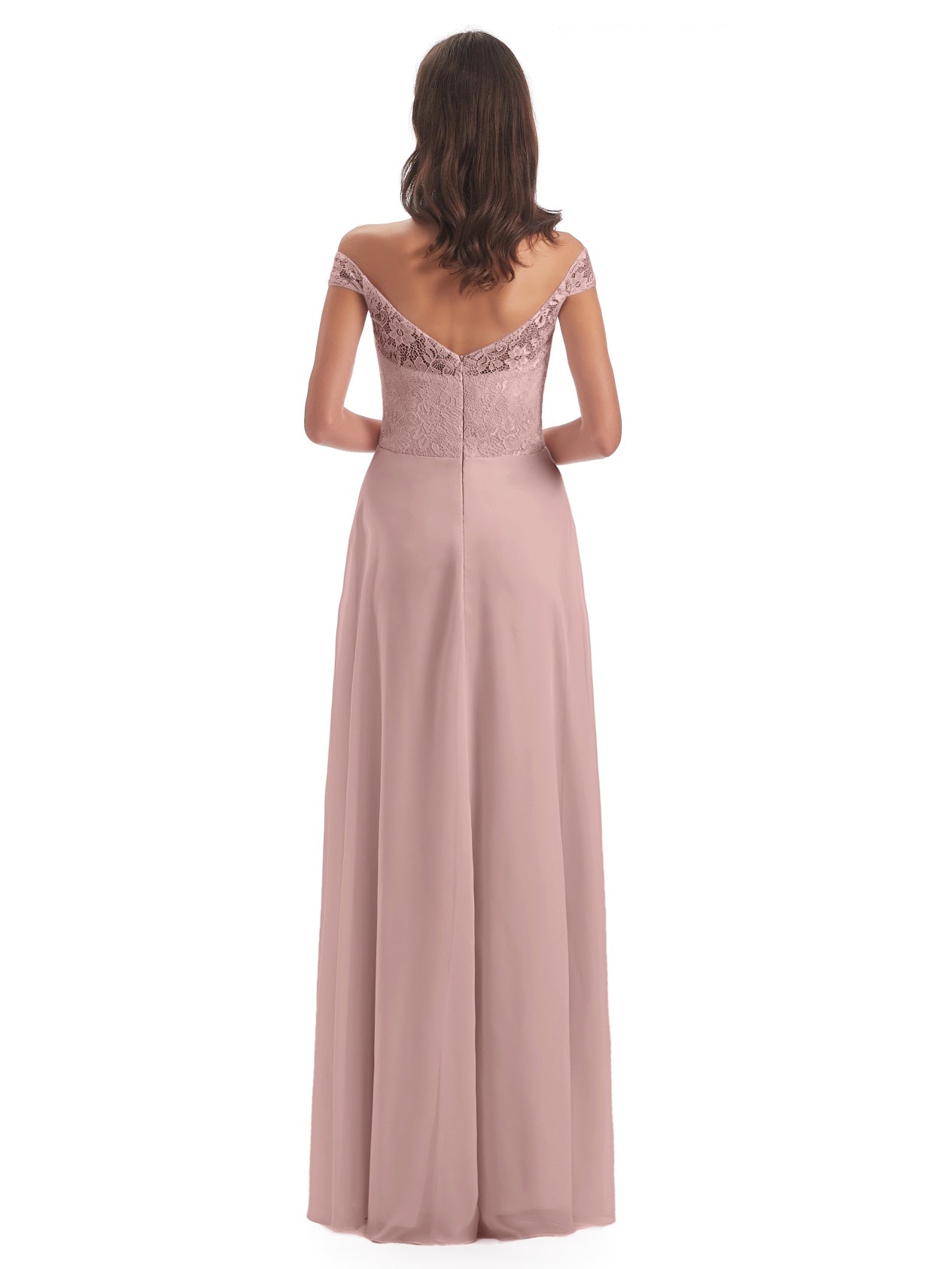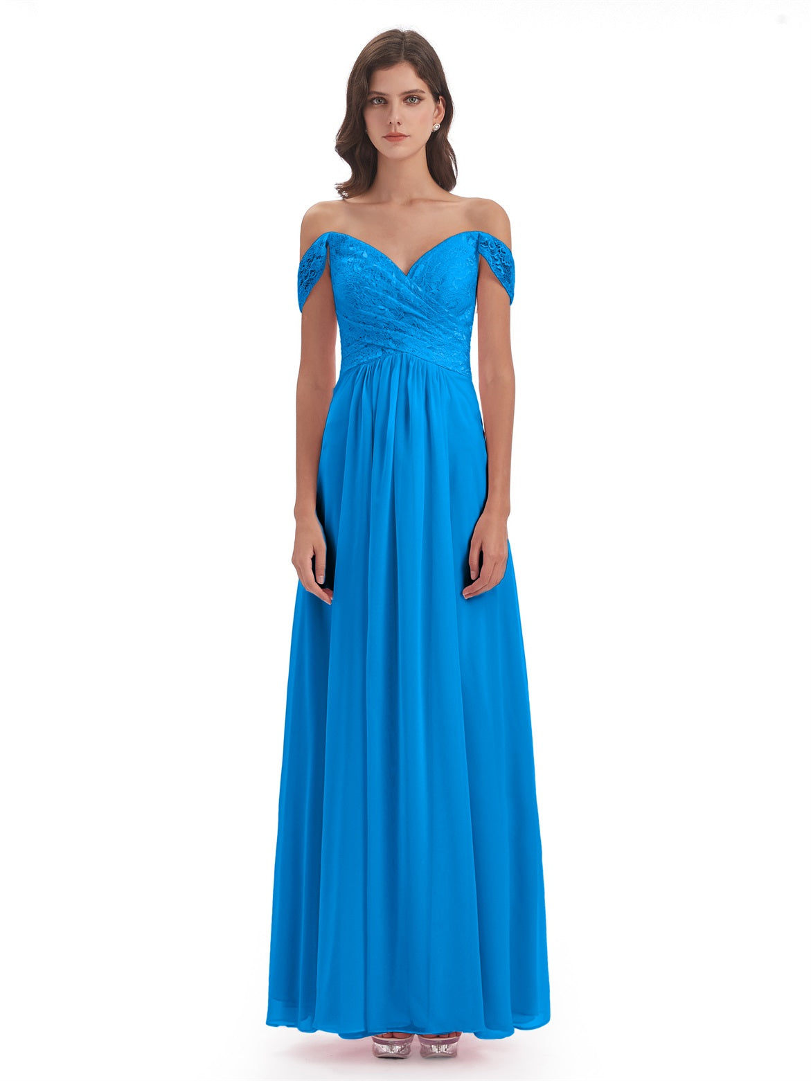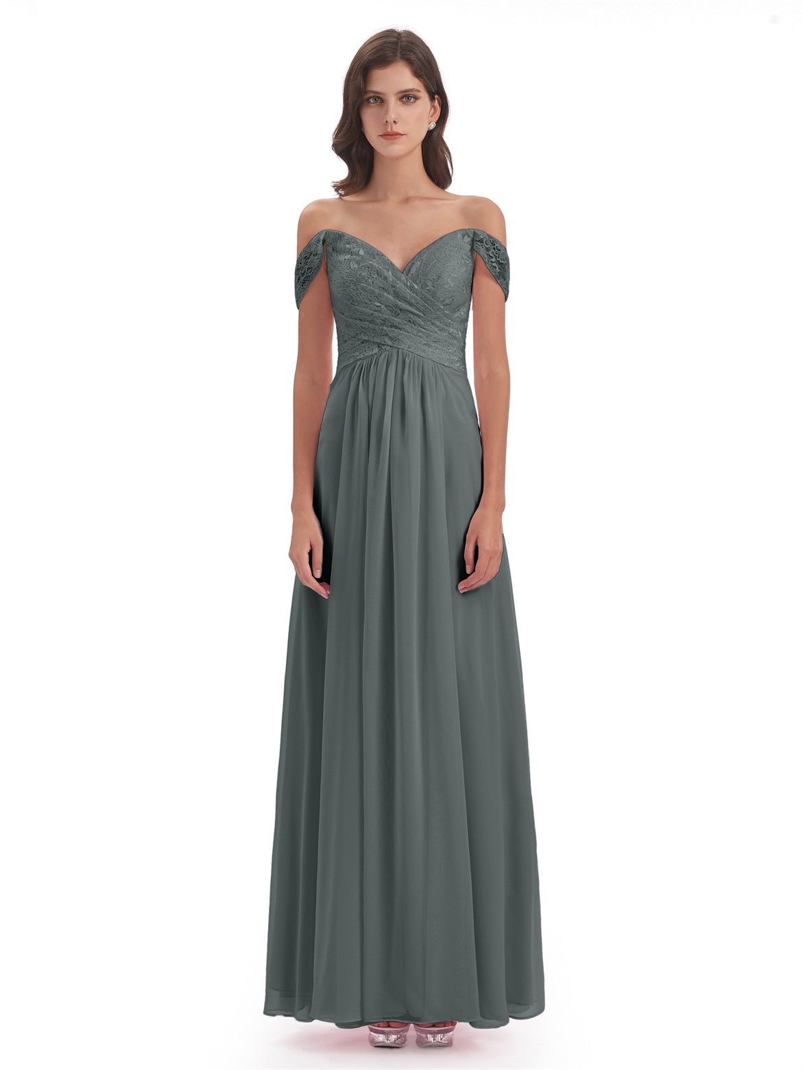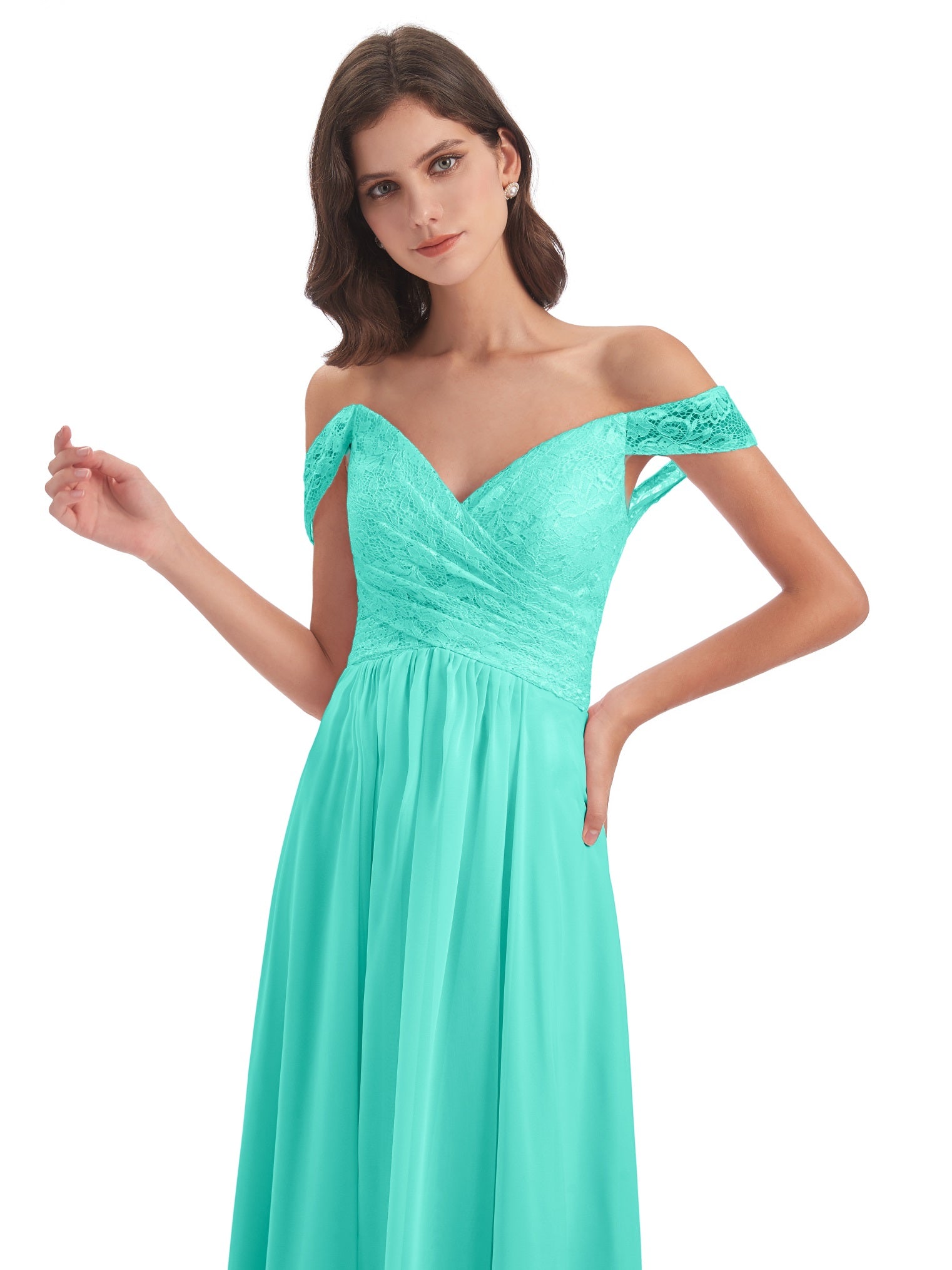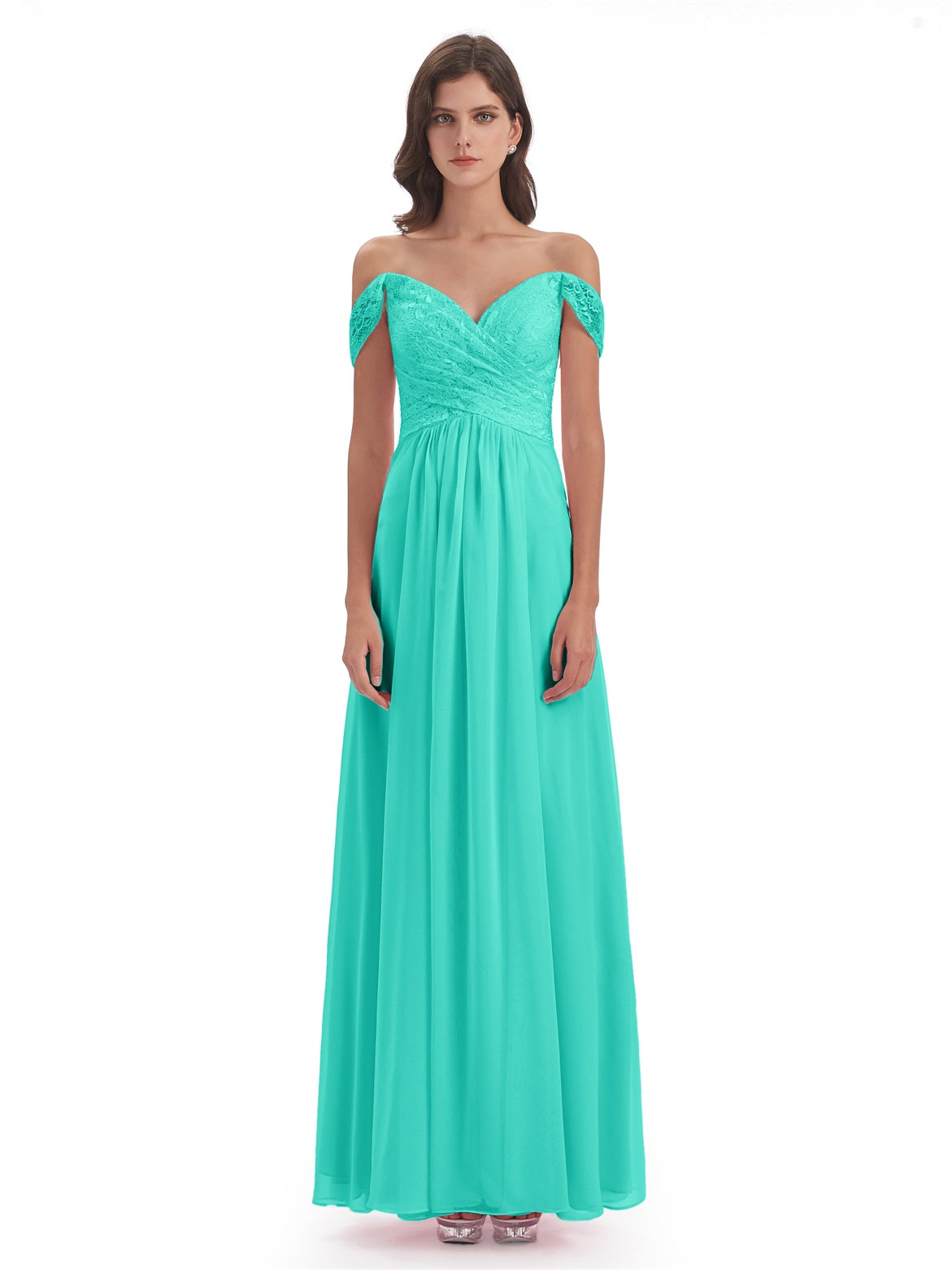 Marjorie A-Linie Bodenlange Schulterfreie Spitze/Chiffon Lange Brautjungfernkleider