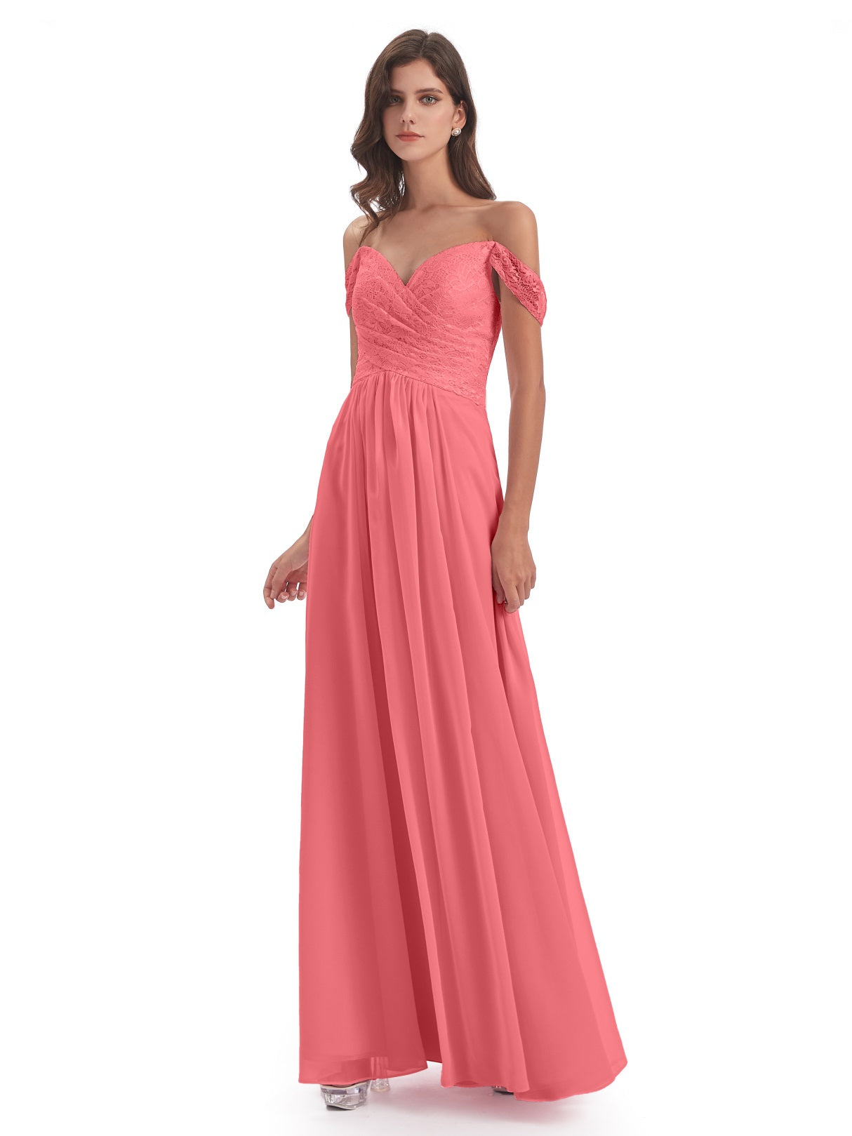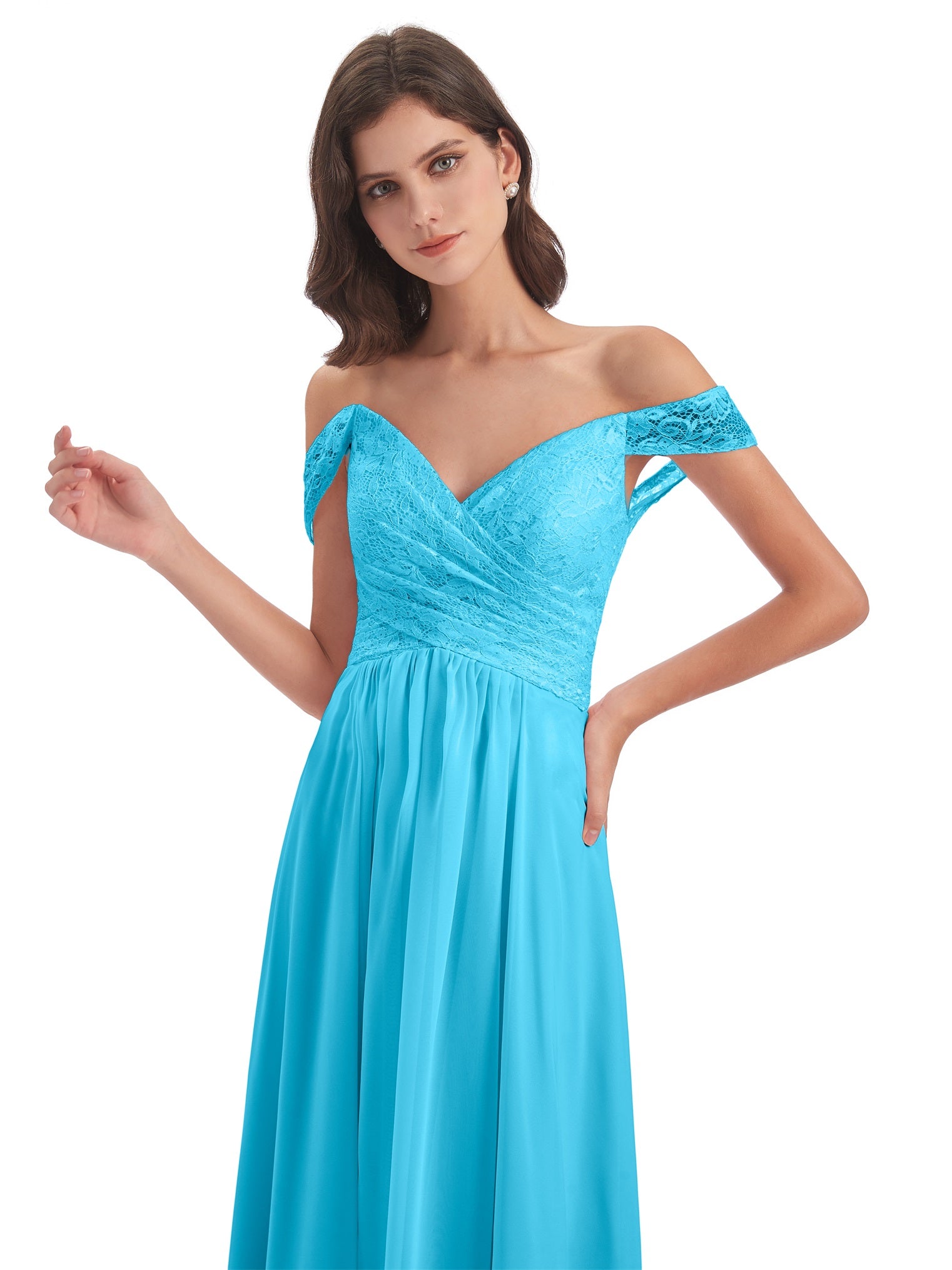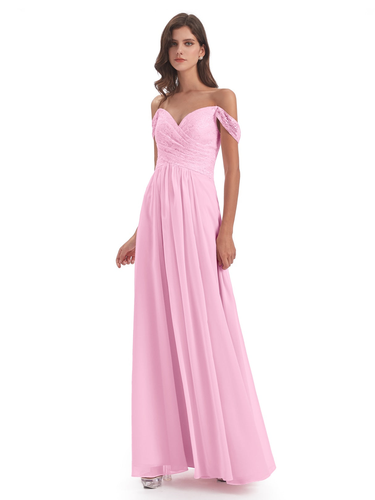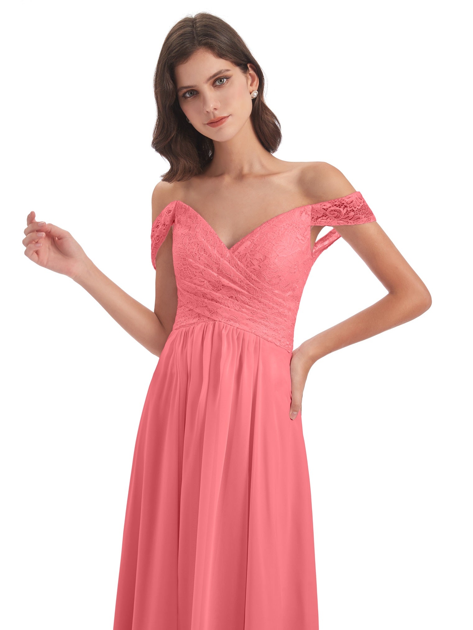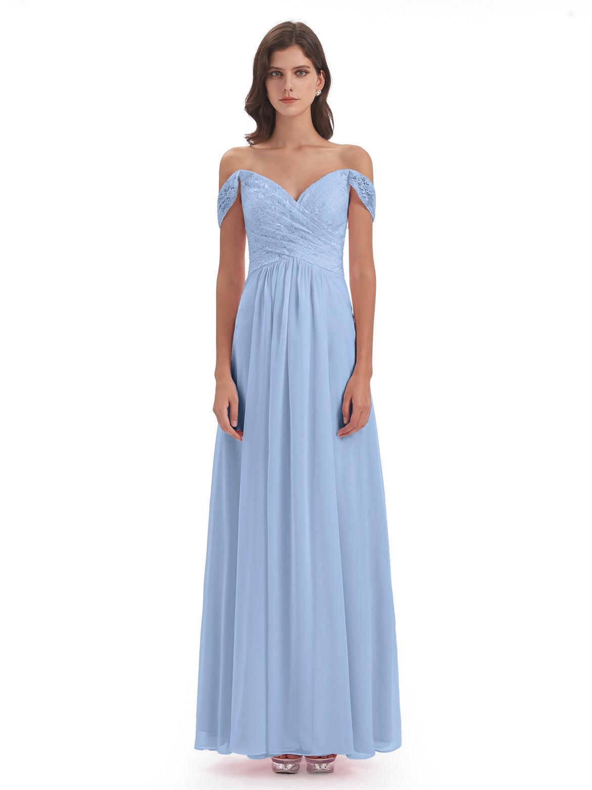 Marjorie A-Linie Bodenlange Schulterfreie Spitze/Chiffon Lange Brautjungfernkleider
