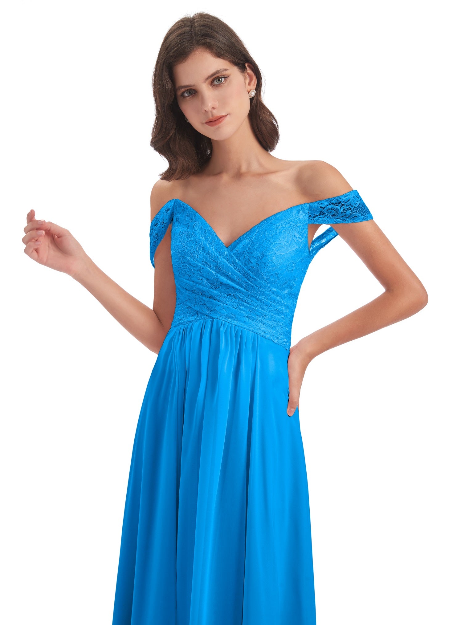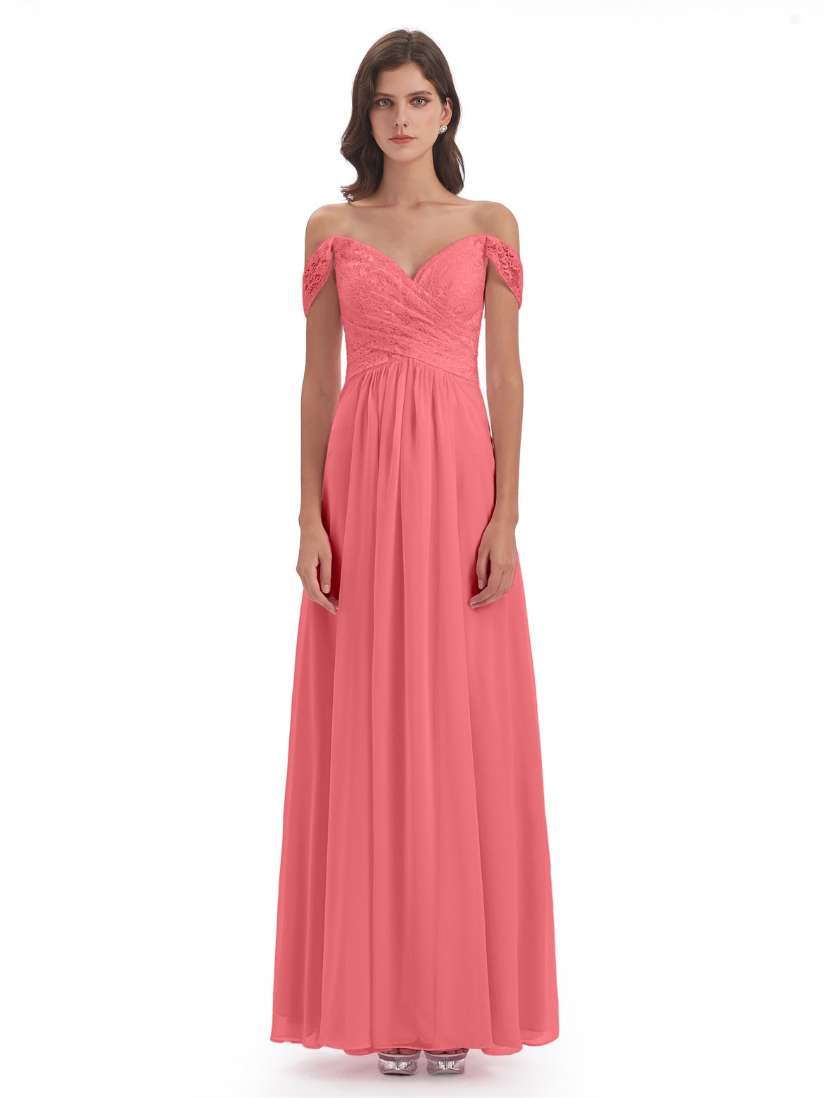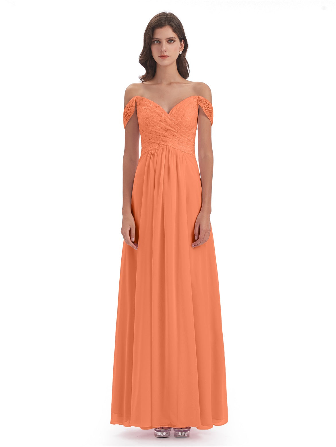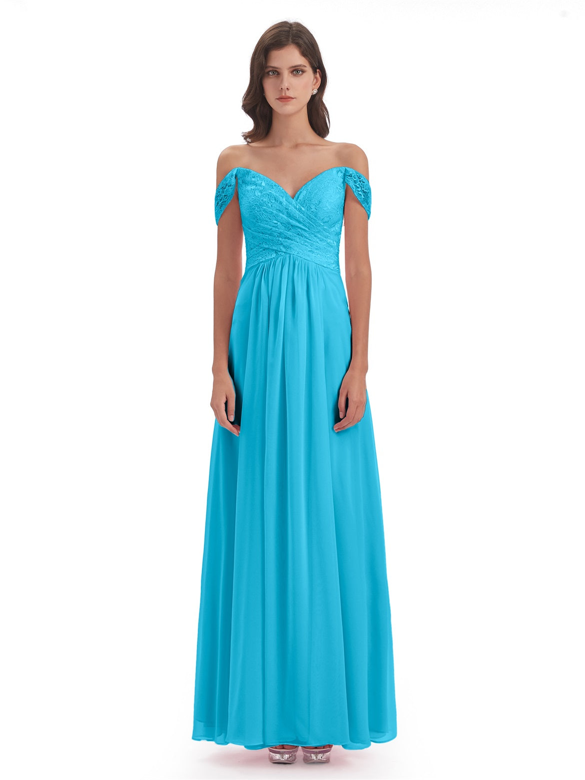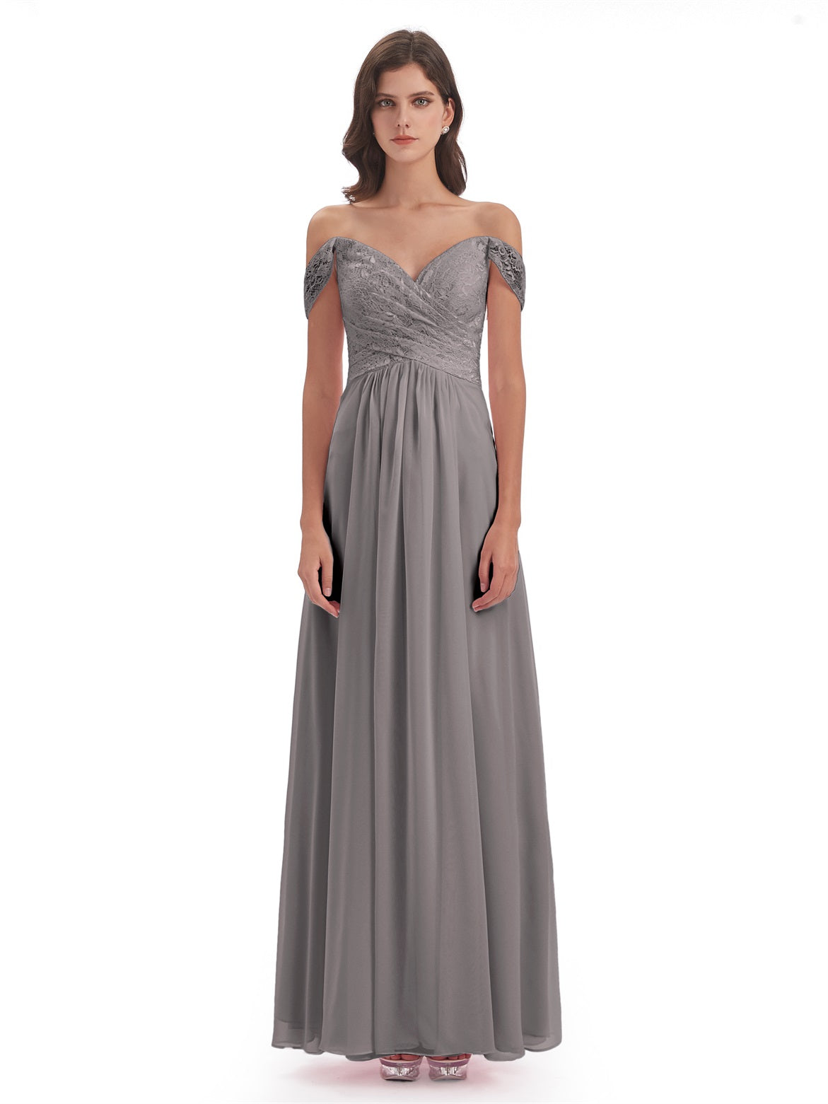 Marjorie A-Linie Bodenlange Schulterfreie Spitze/Chiffon Lange Brautjungfernkleider