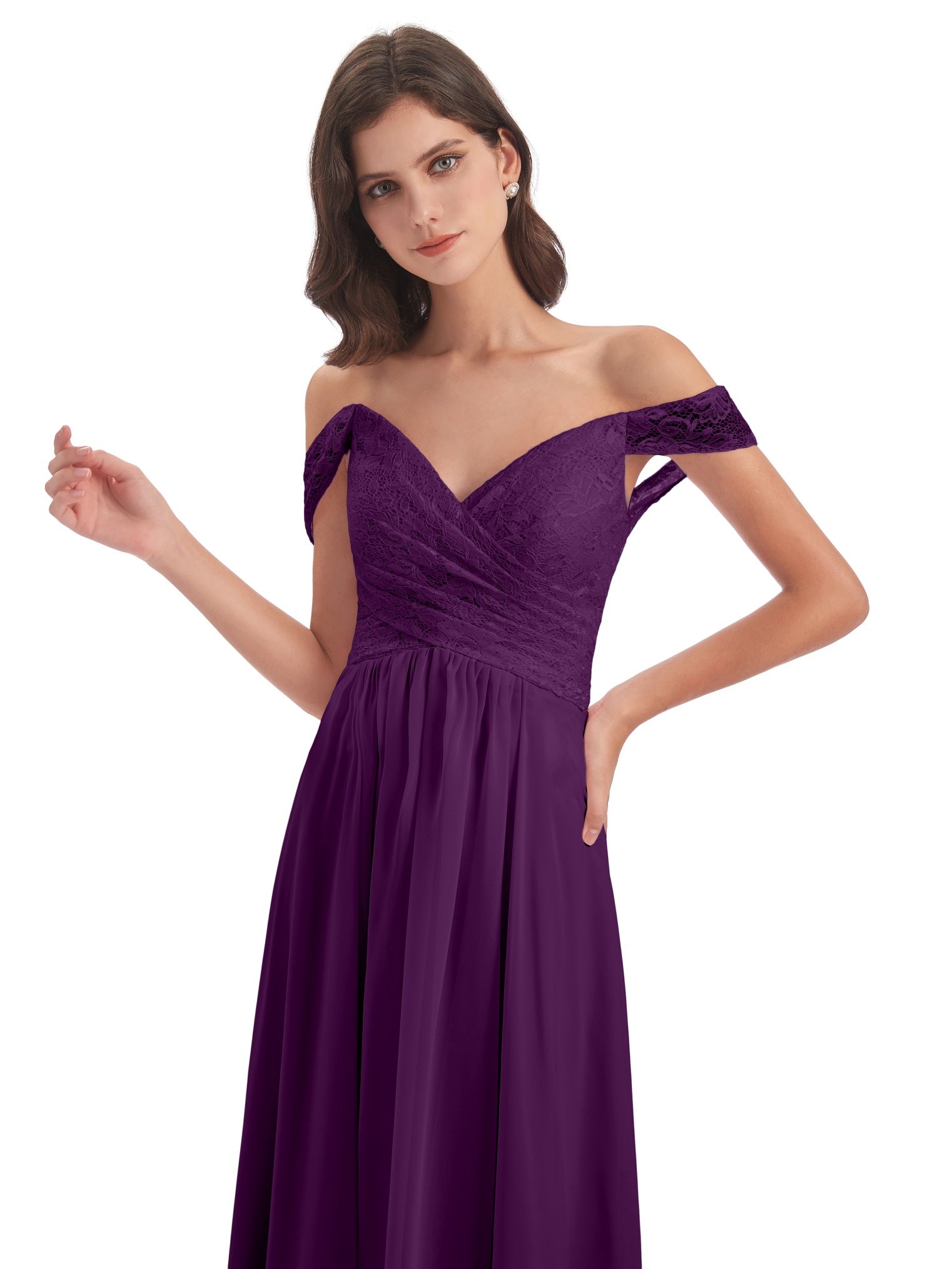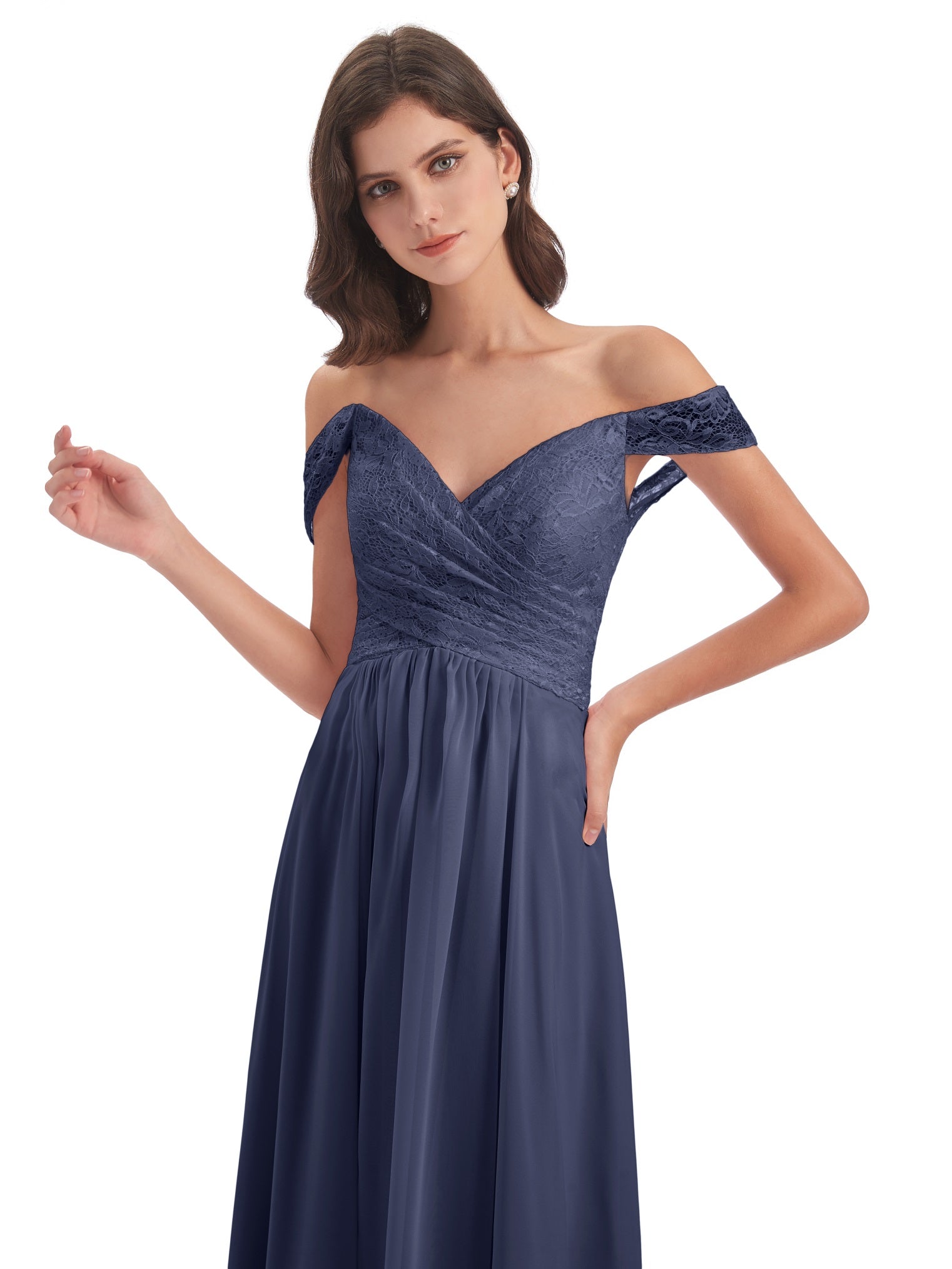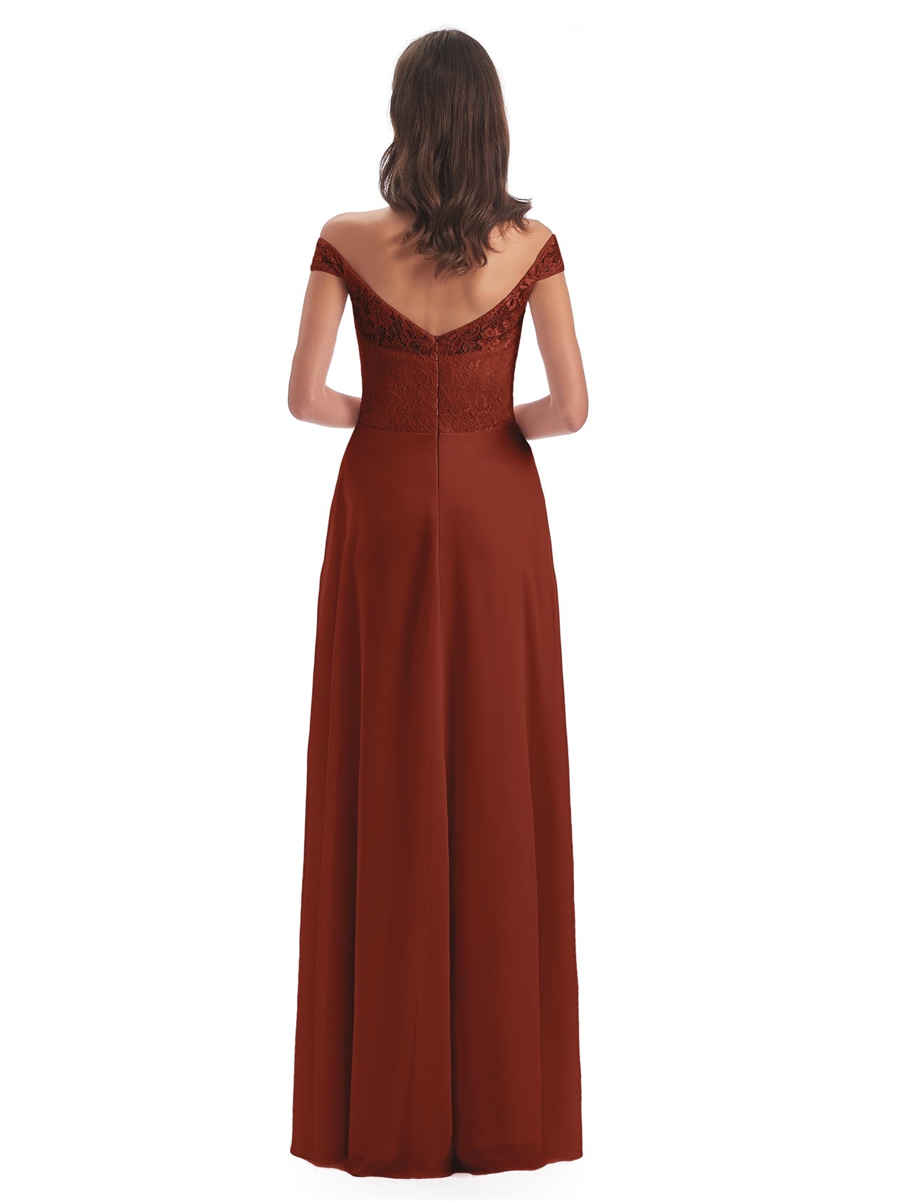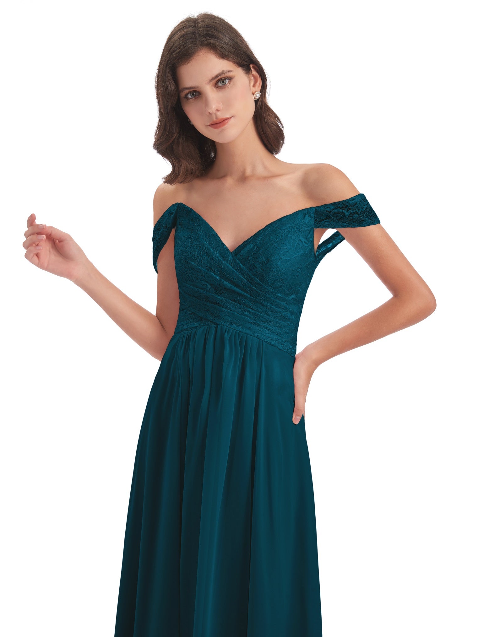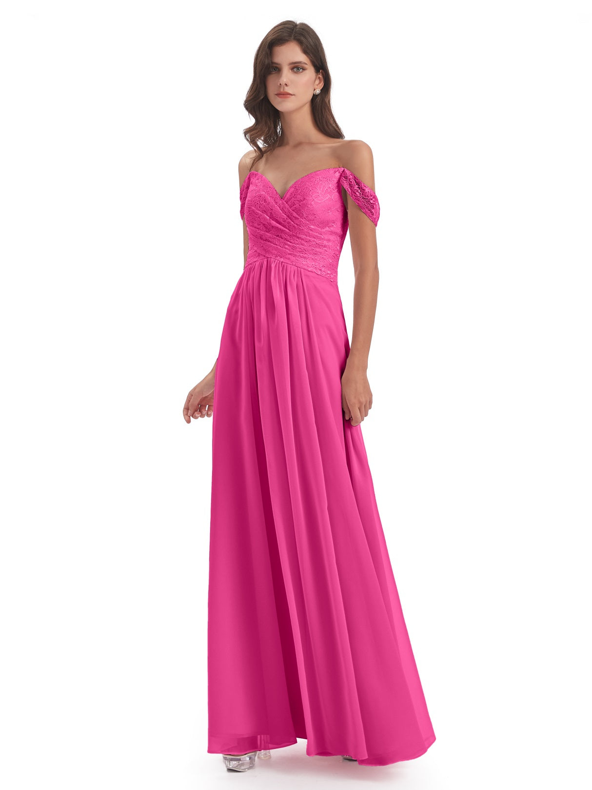 Marjorie A-Linie Bodenlange Schulterfreie Spitze/Chiffon Lange Brautjungfernkleider