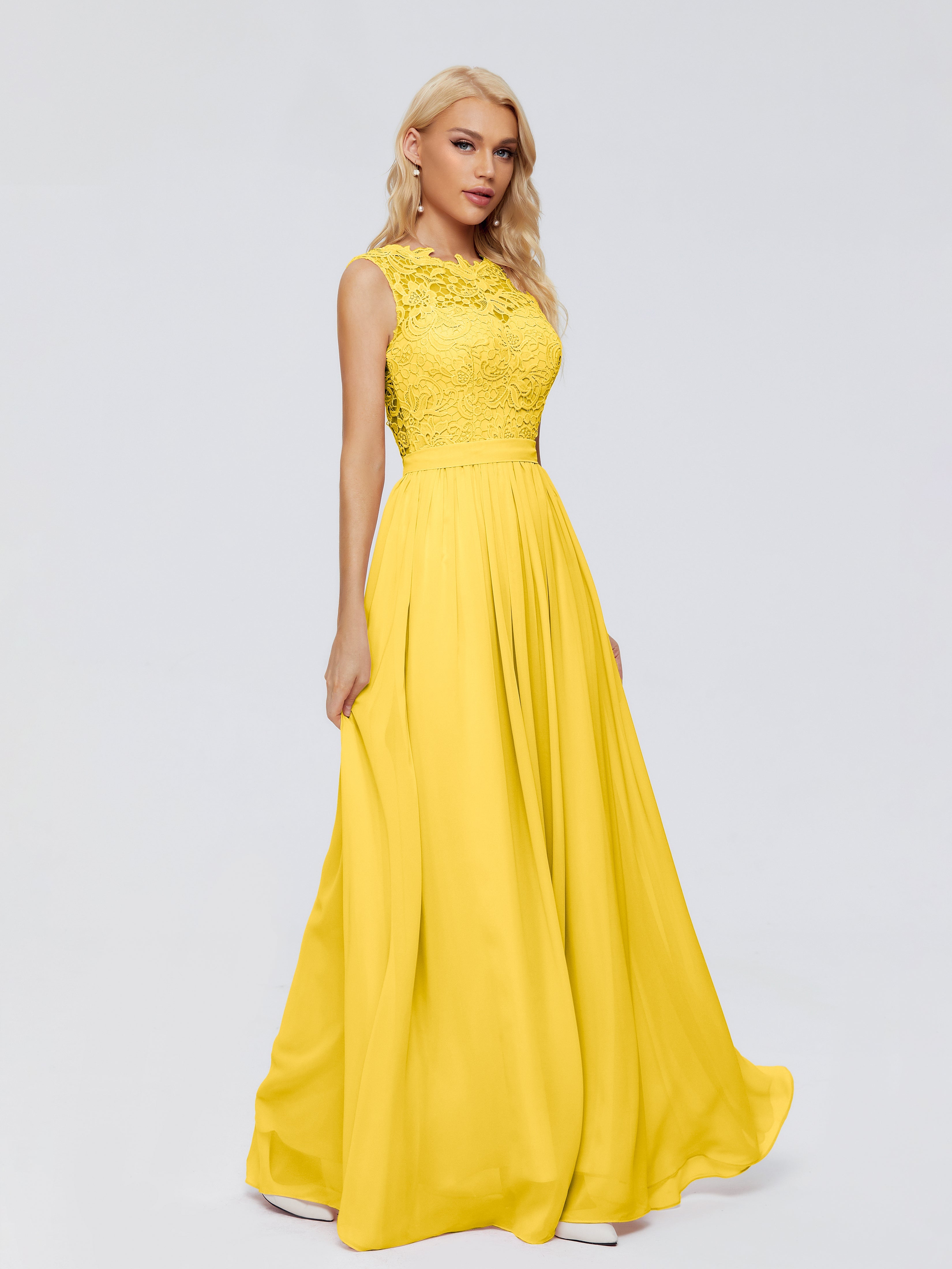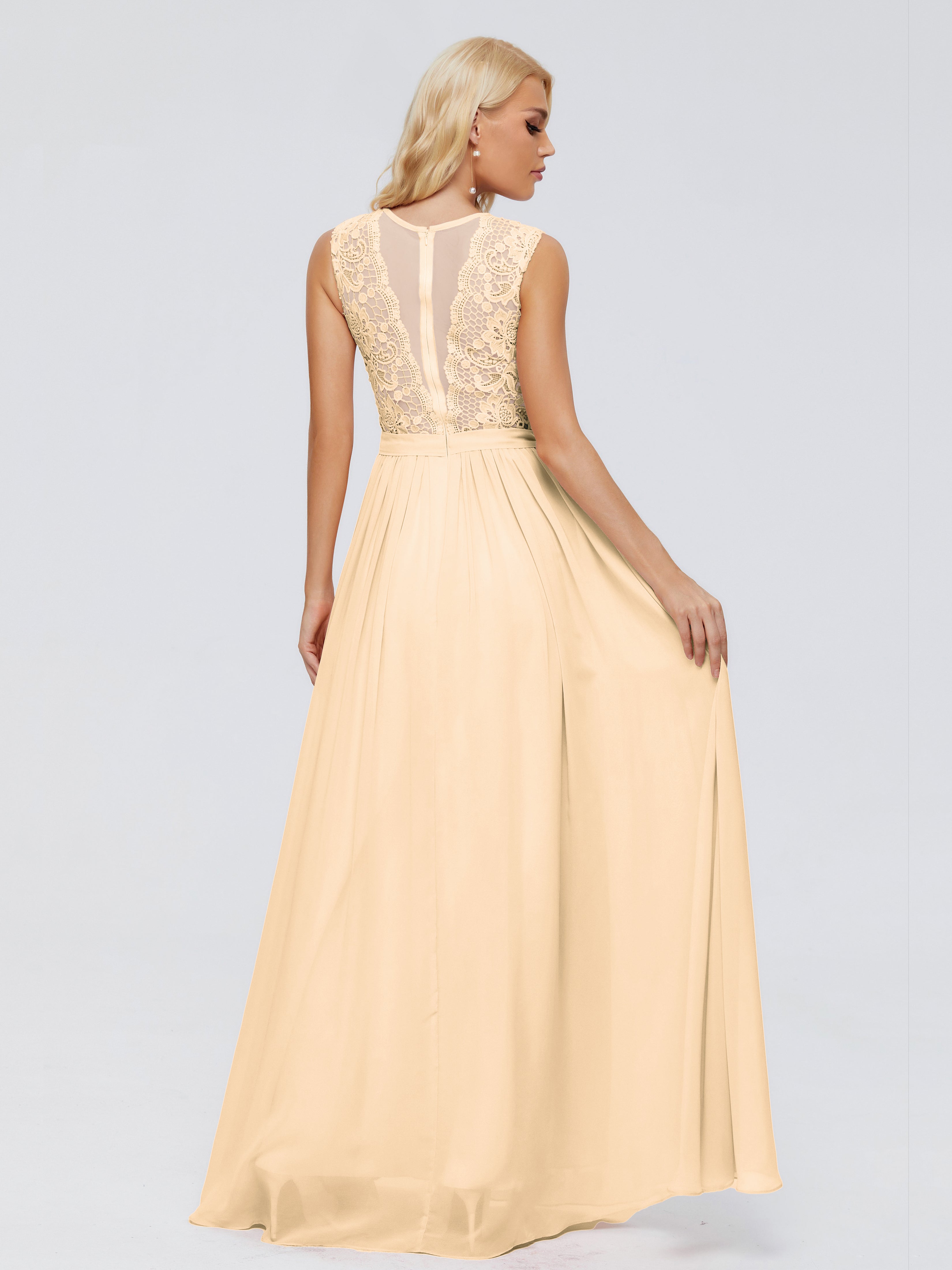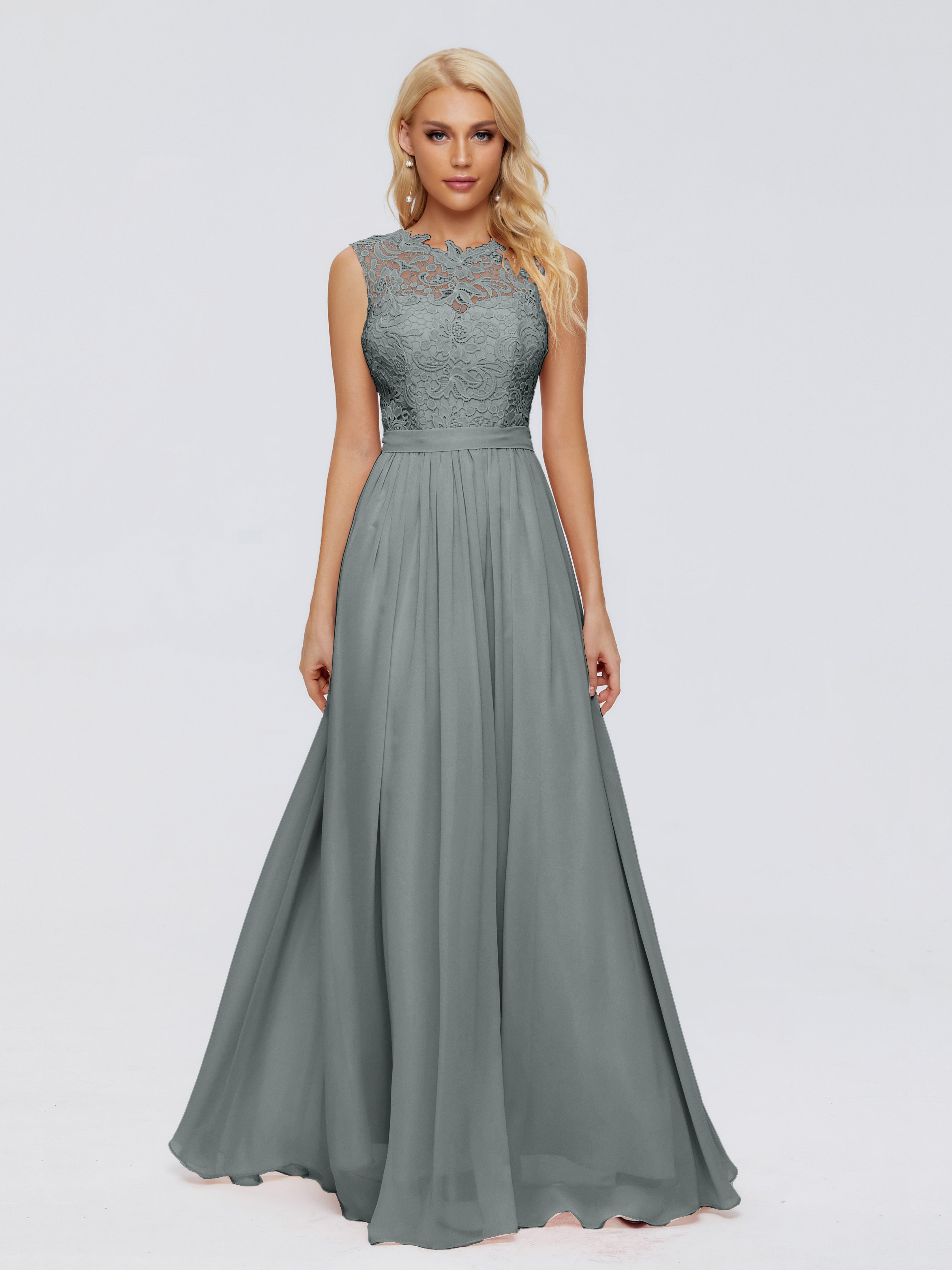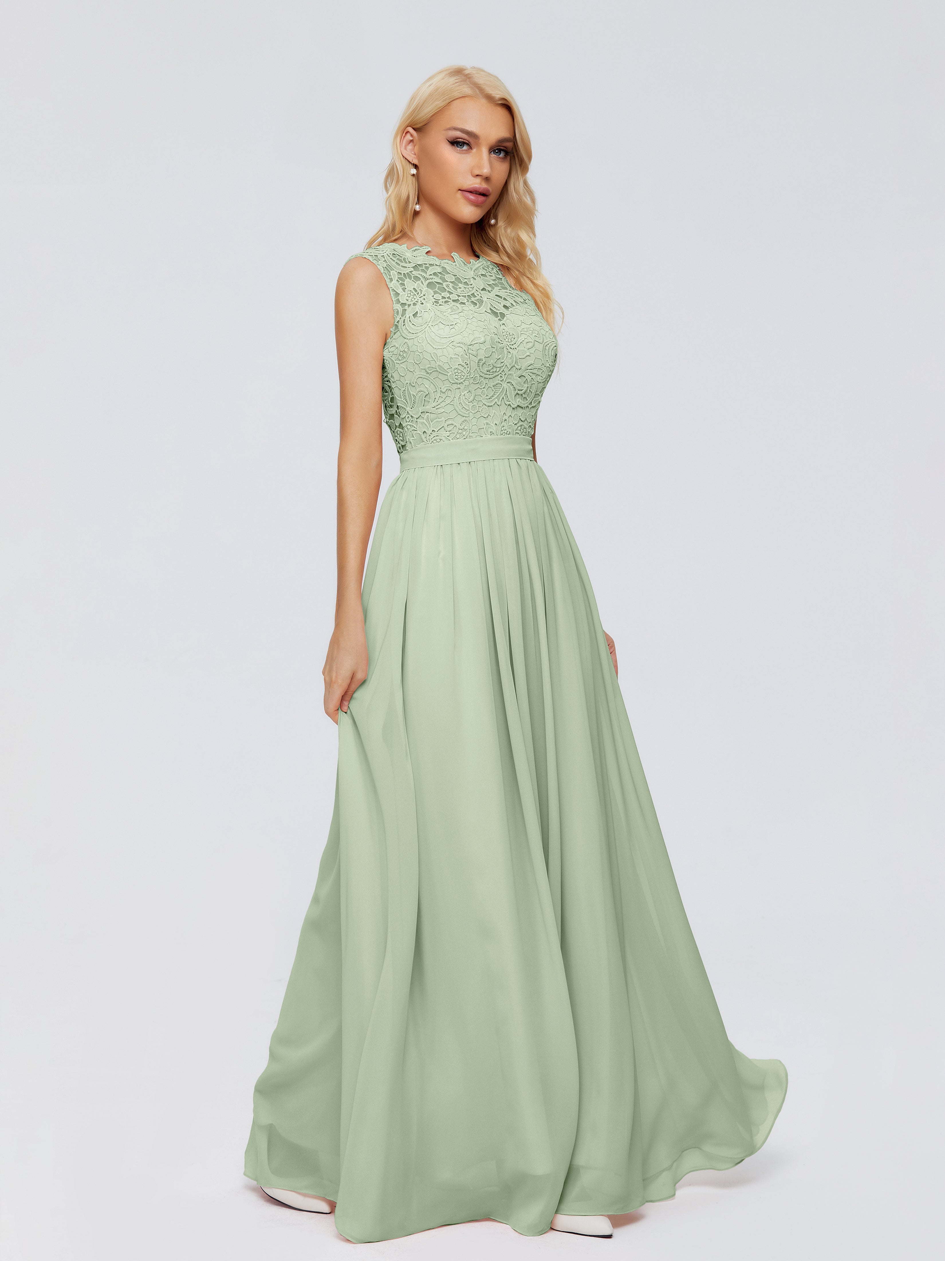 Melody A-Linie Bateau Chiffon Brautjungfernkleider