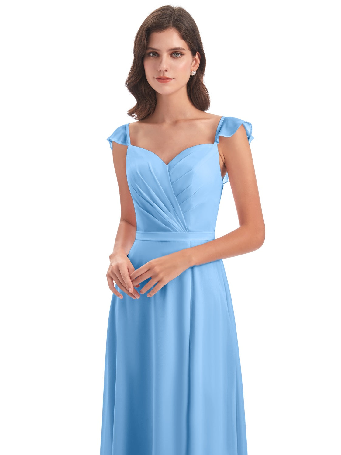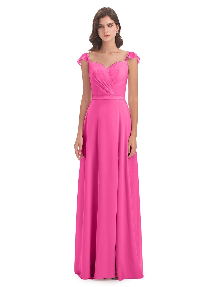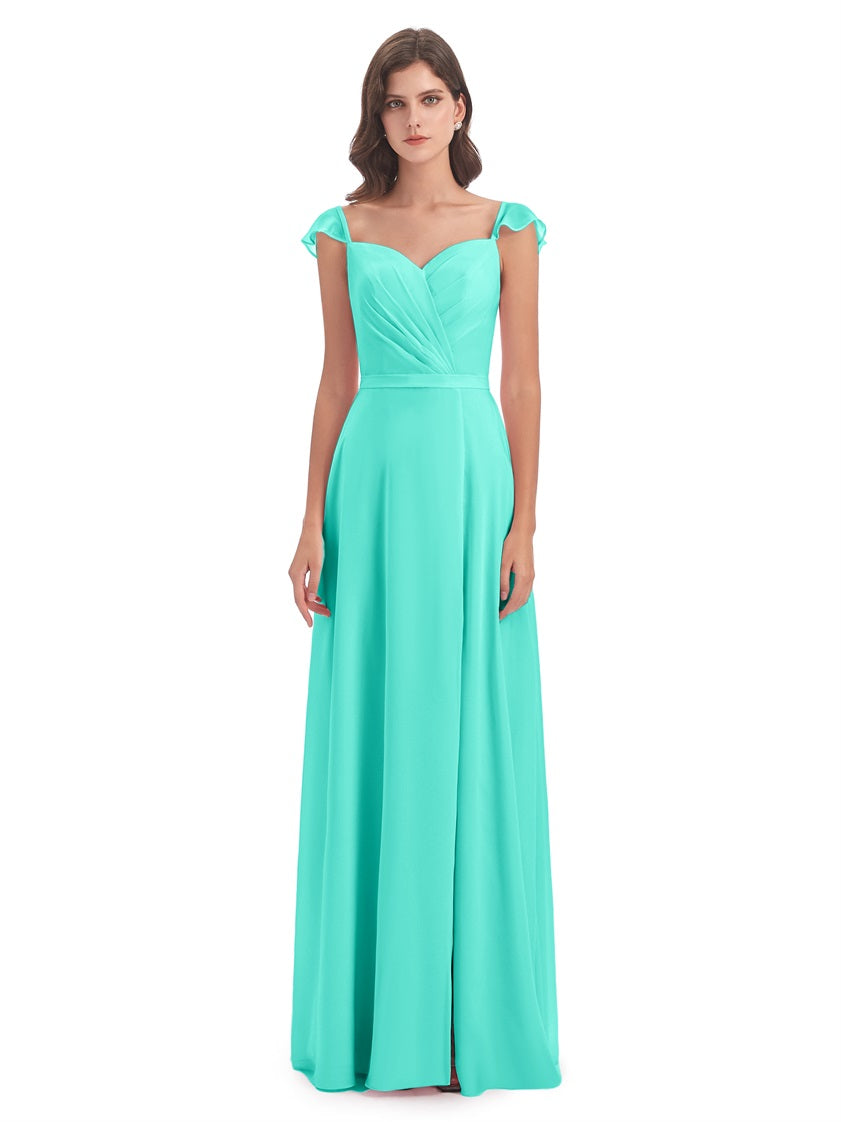 Mylah Etui-Säule Bodenlange Kappenärmel geschlitzte Chiffon Lange Brautjungfernkleider