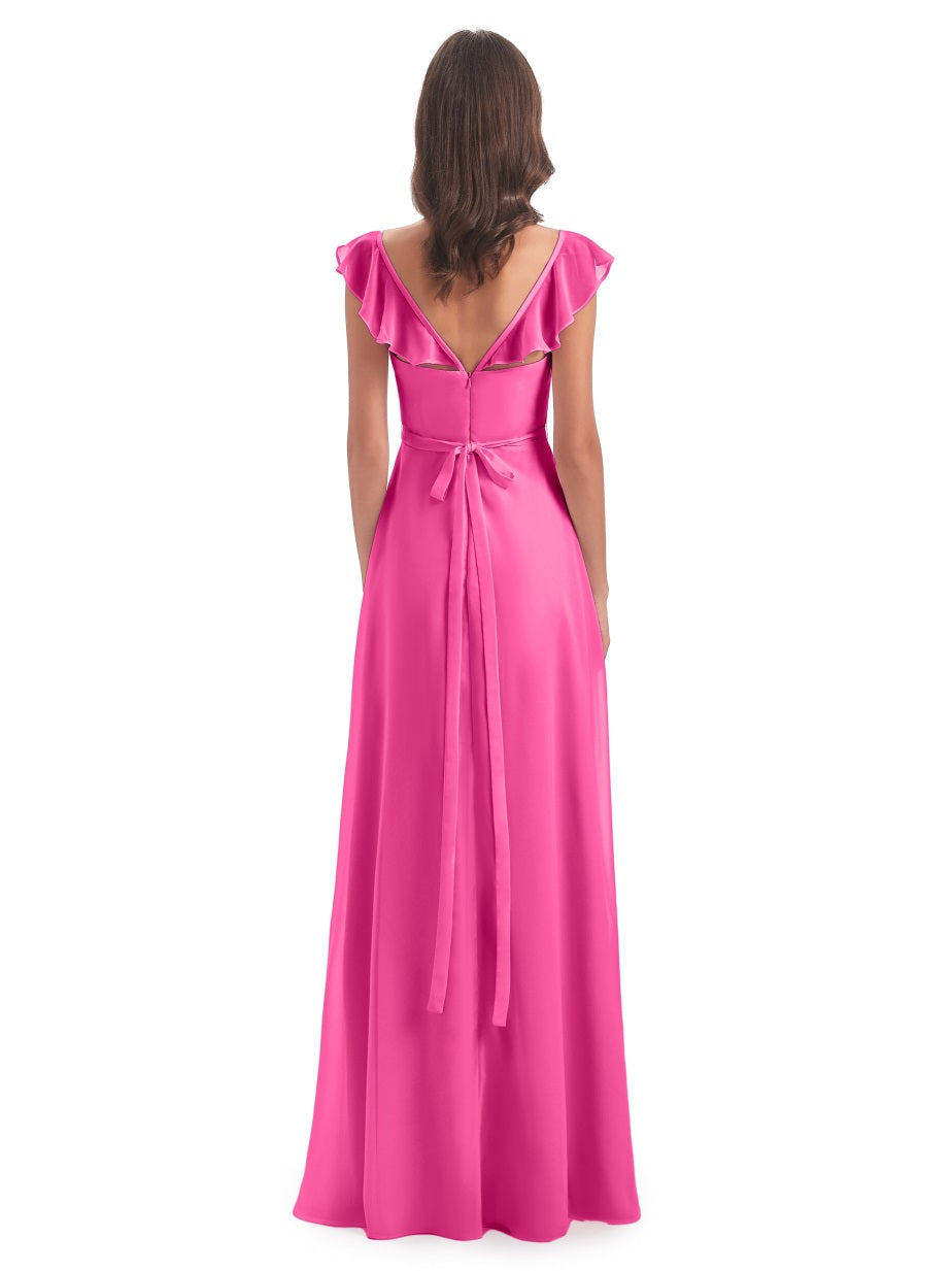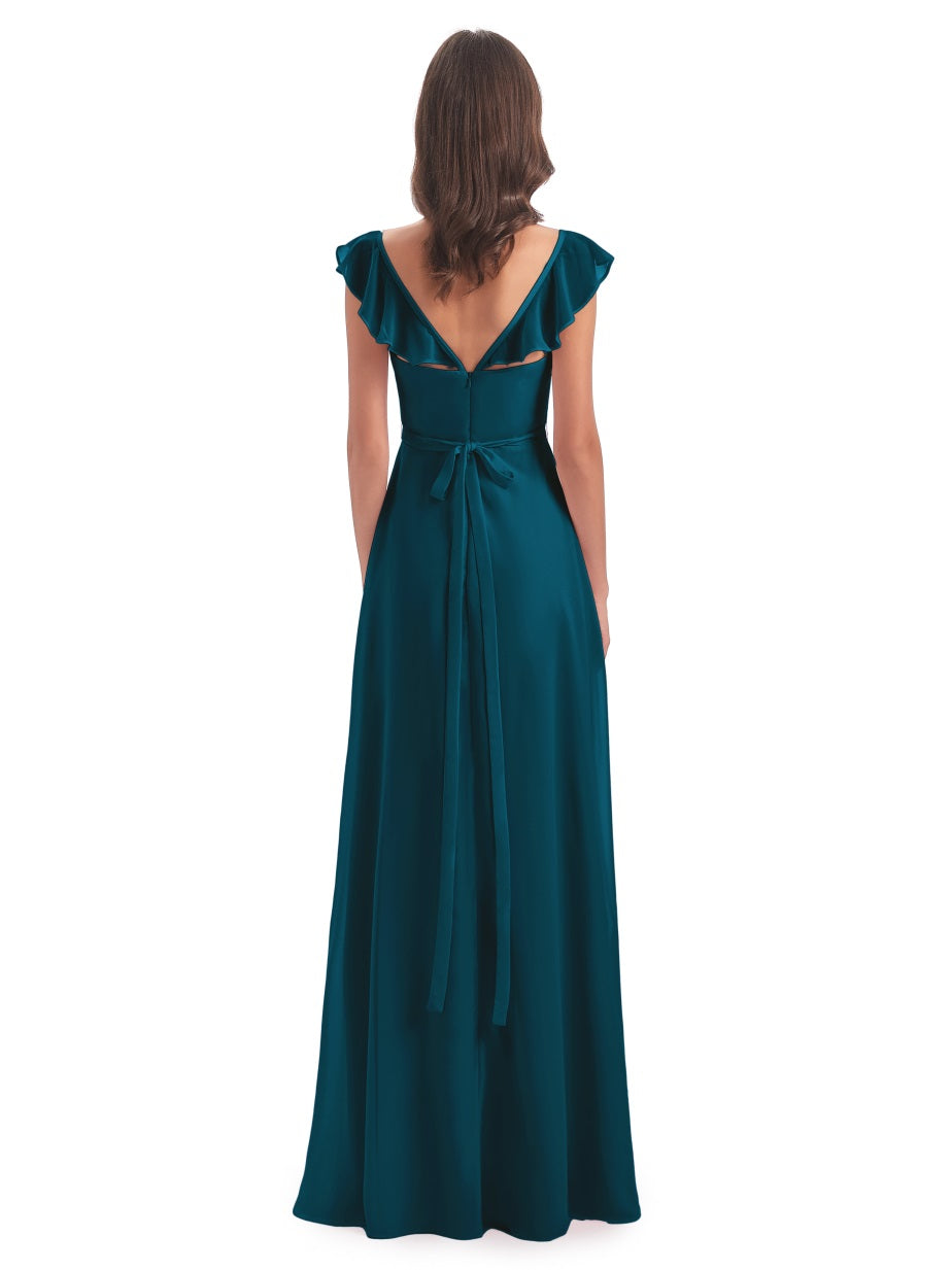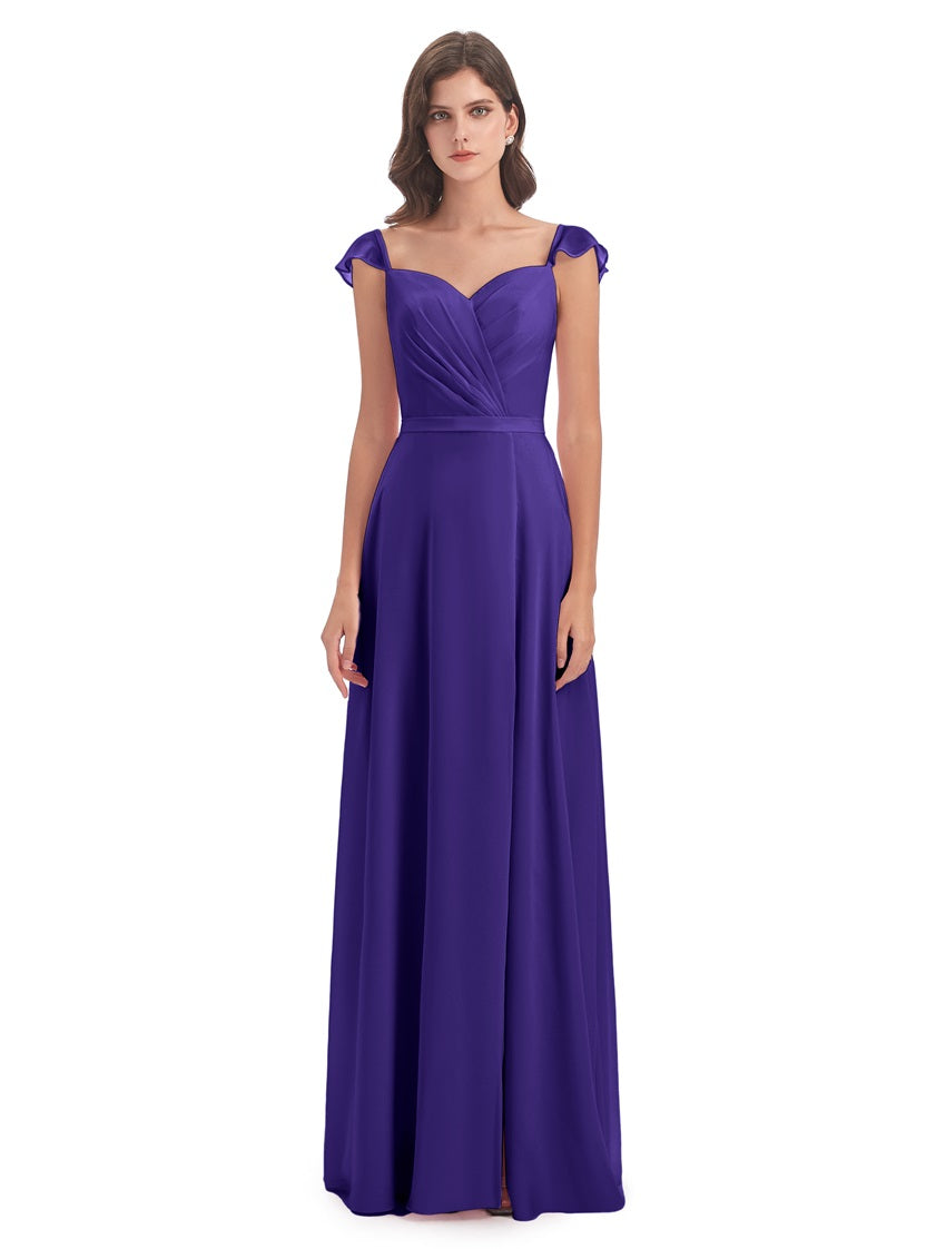 Mylah Etui-Säule Bodenlange Kappenärmel geschlitzte Chiffon Lange Brautjungfernkleider