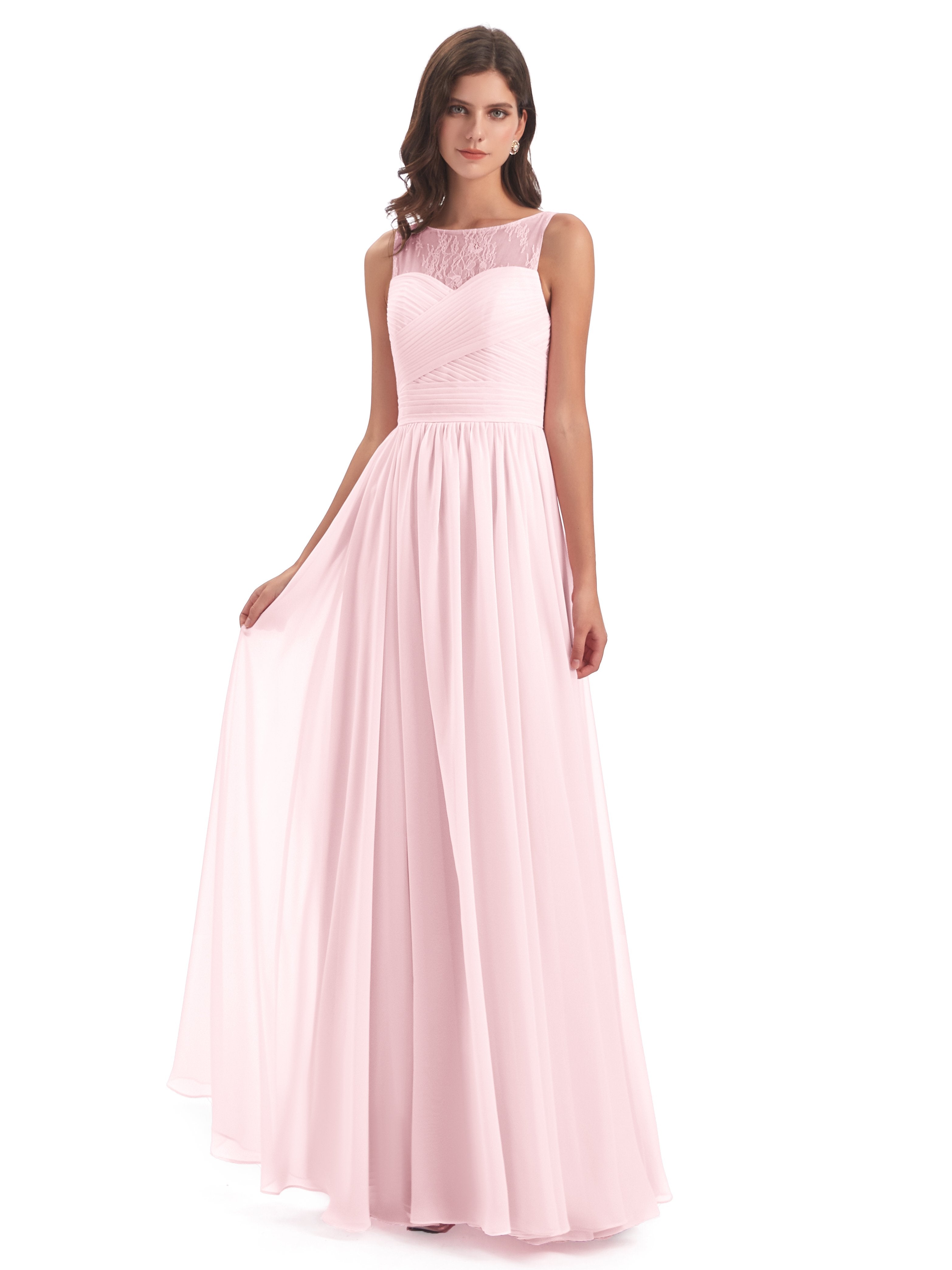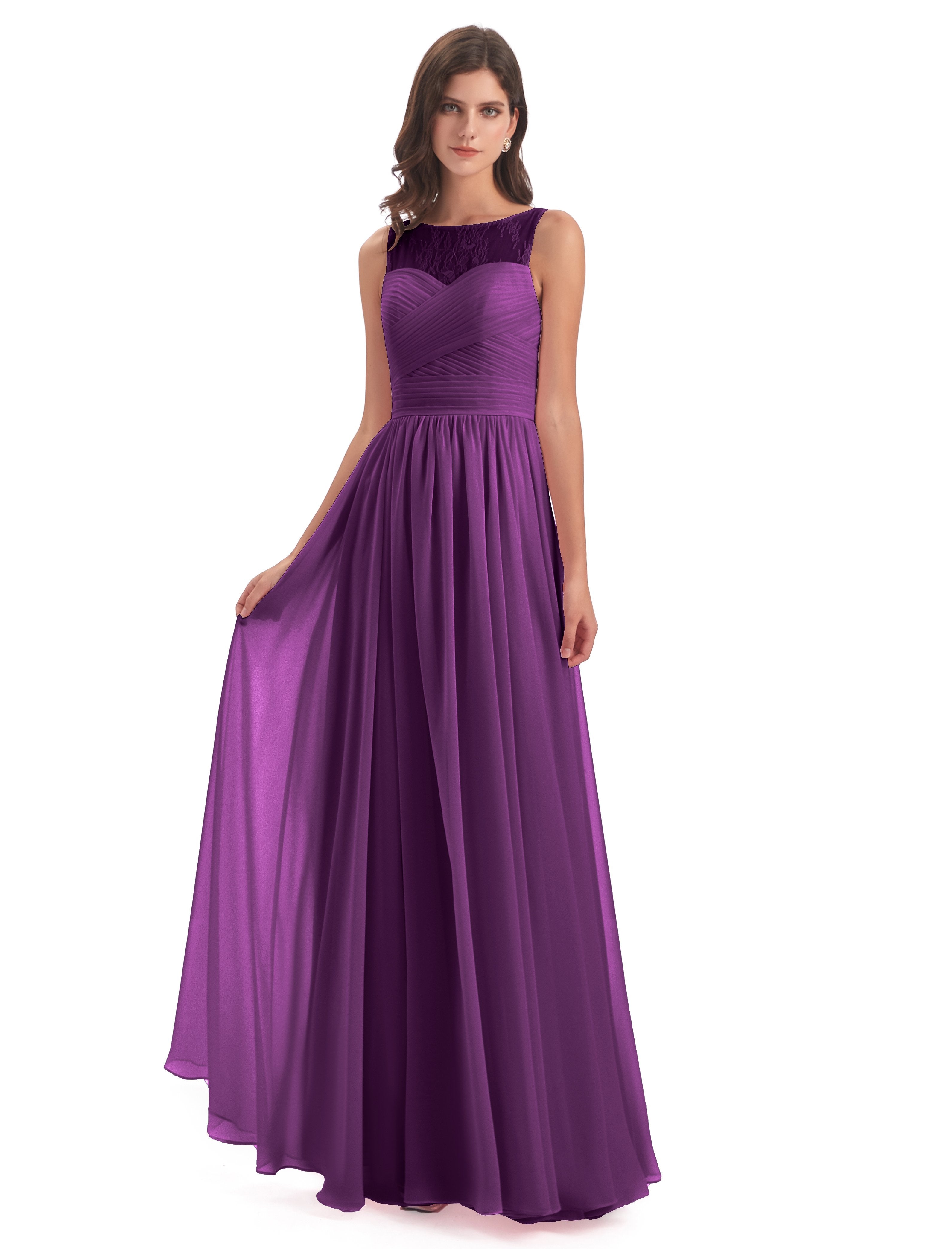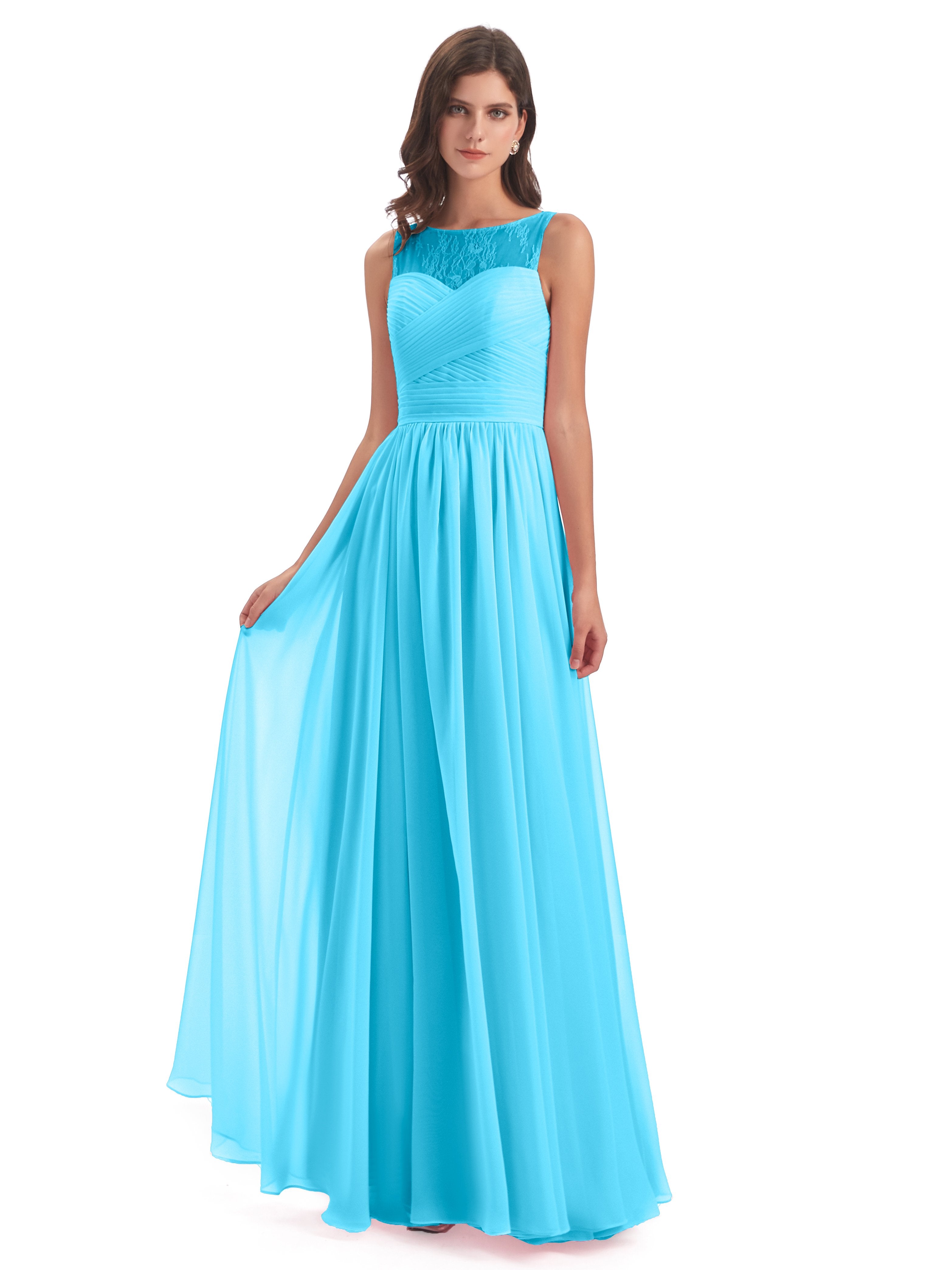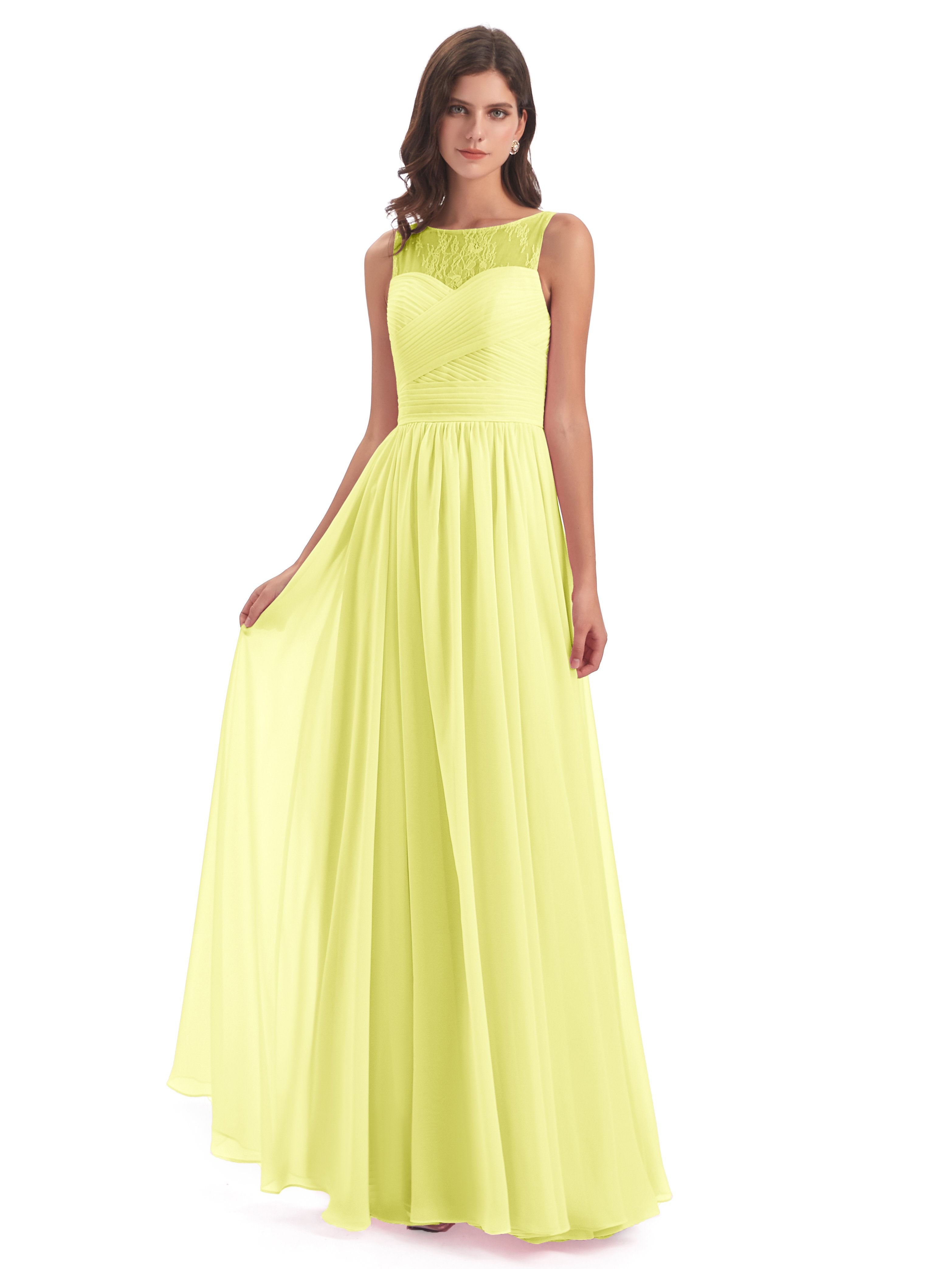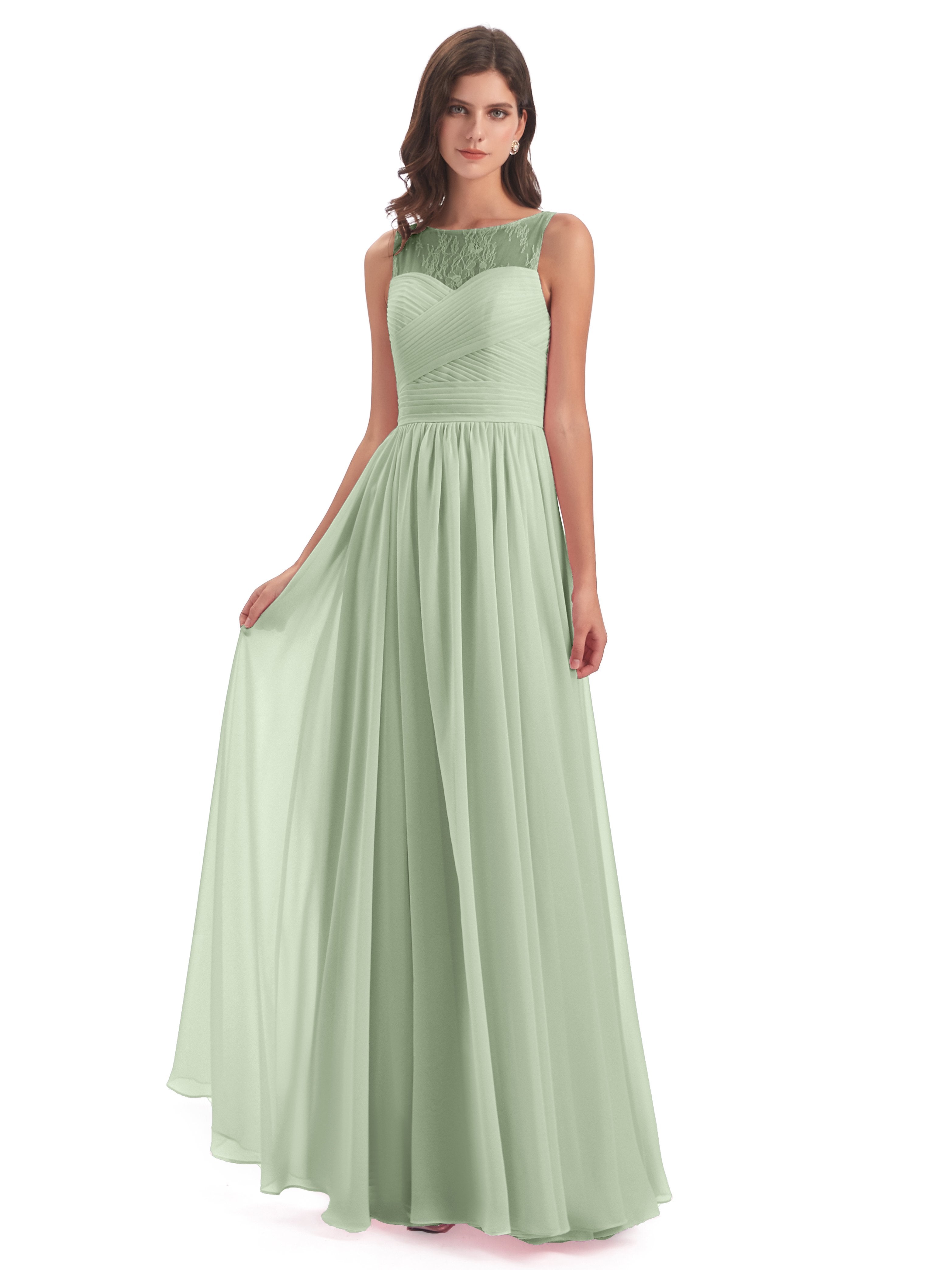 Naya A-Linie Bodenlange Illusion Spitze/Chiffon Lange Brautjungfernkleider