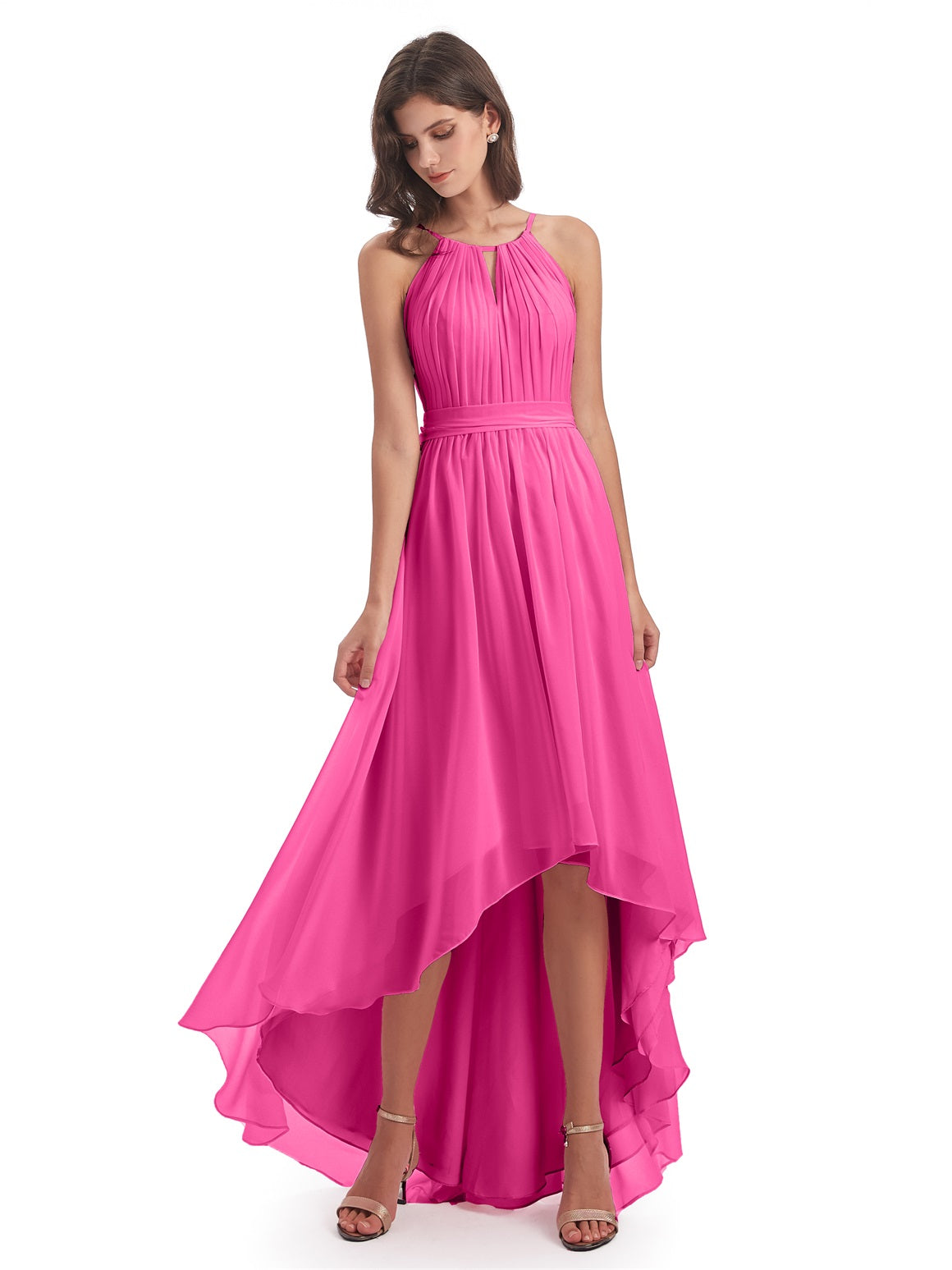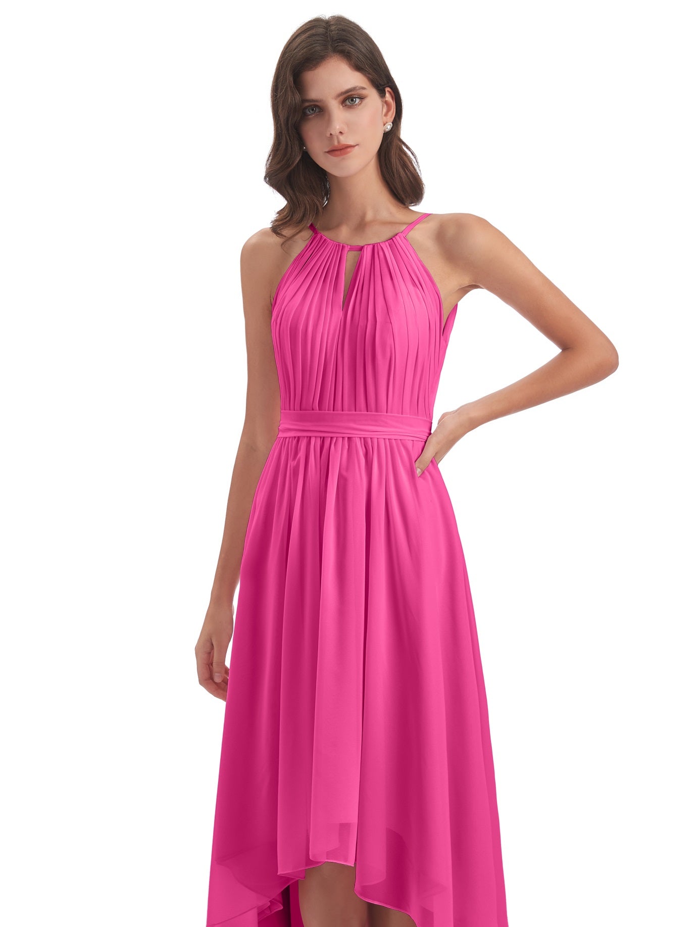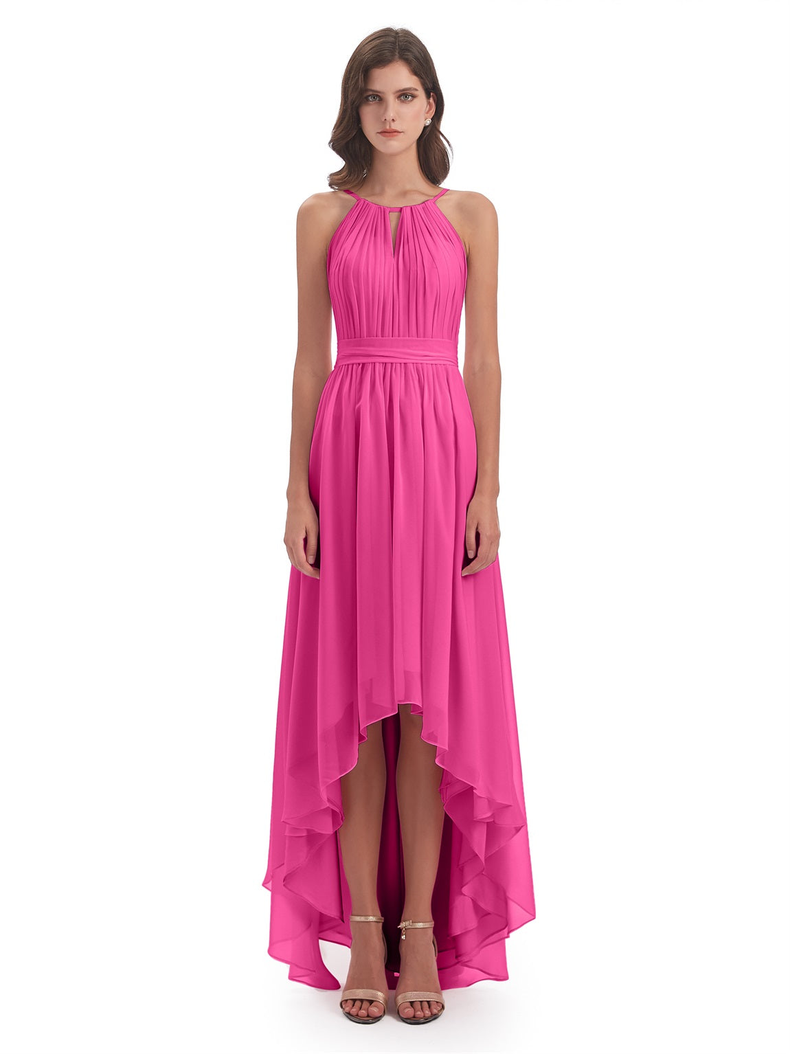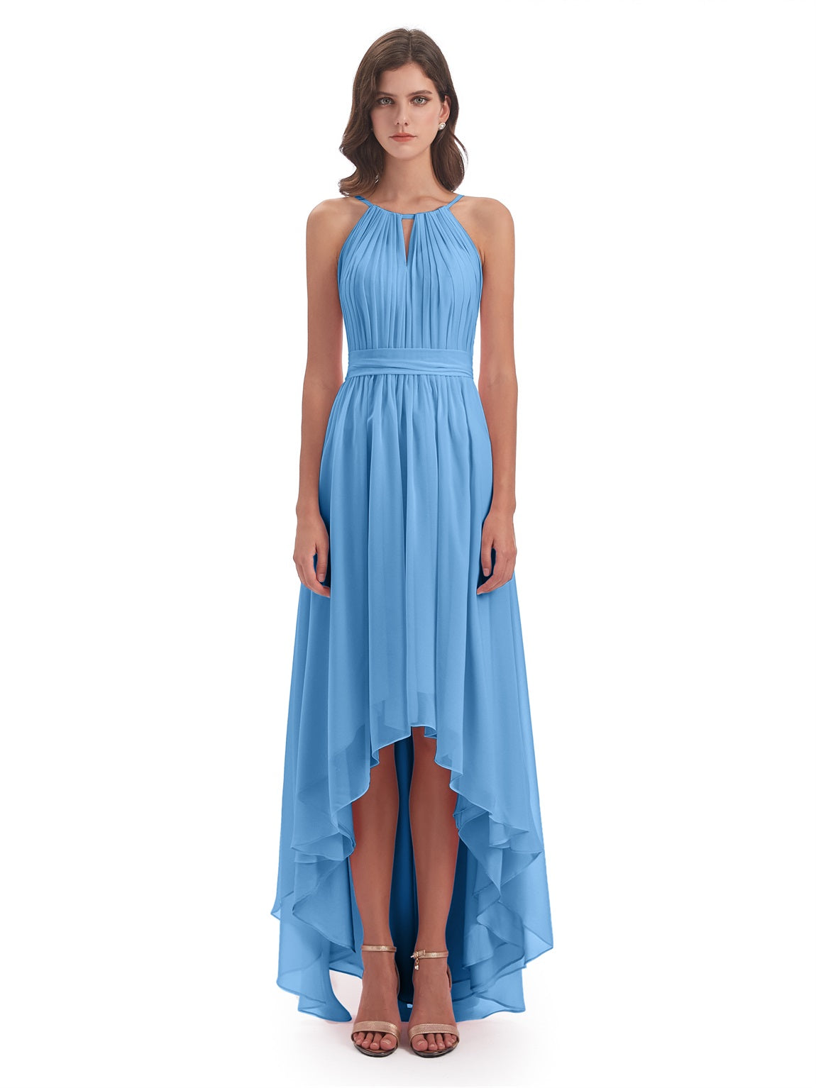 Oaklee Asymmetrische High-Low Nackenträger Chiffon Brautjungfernkleider