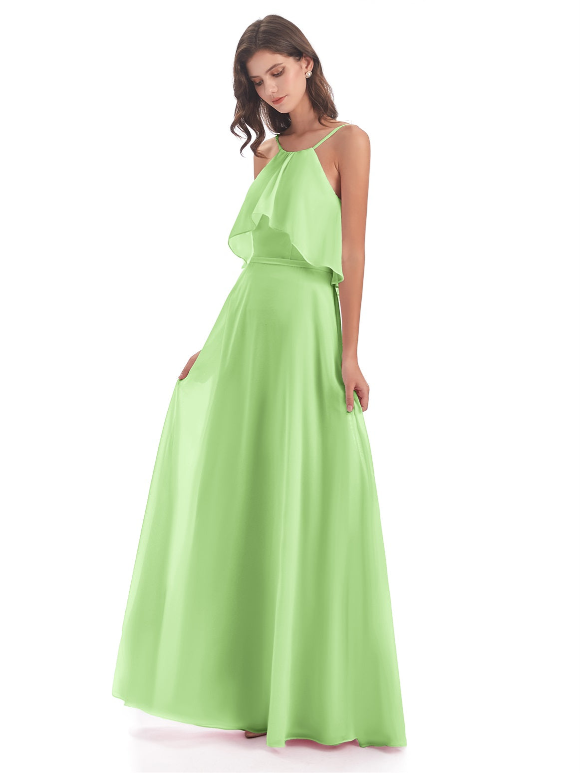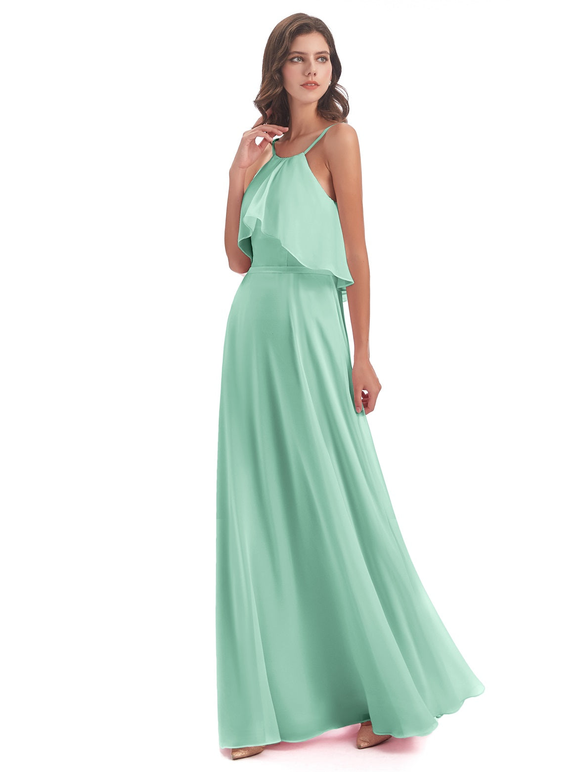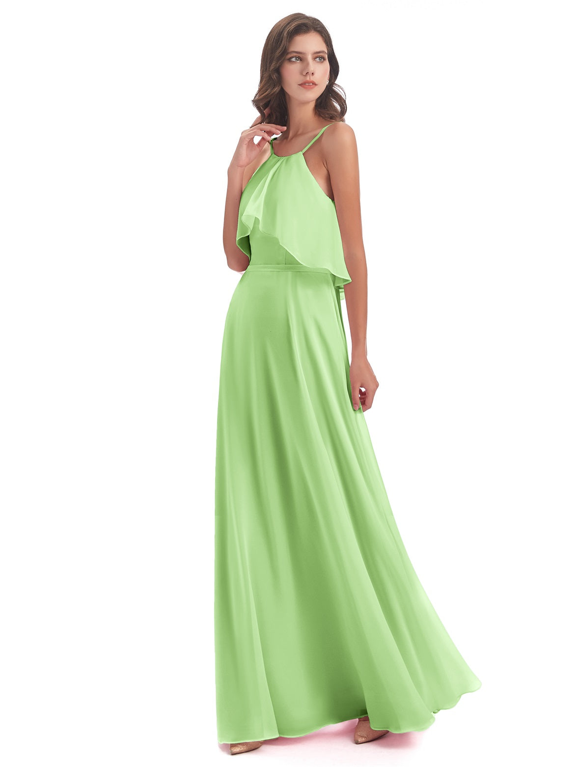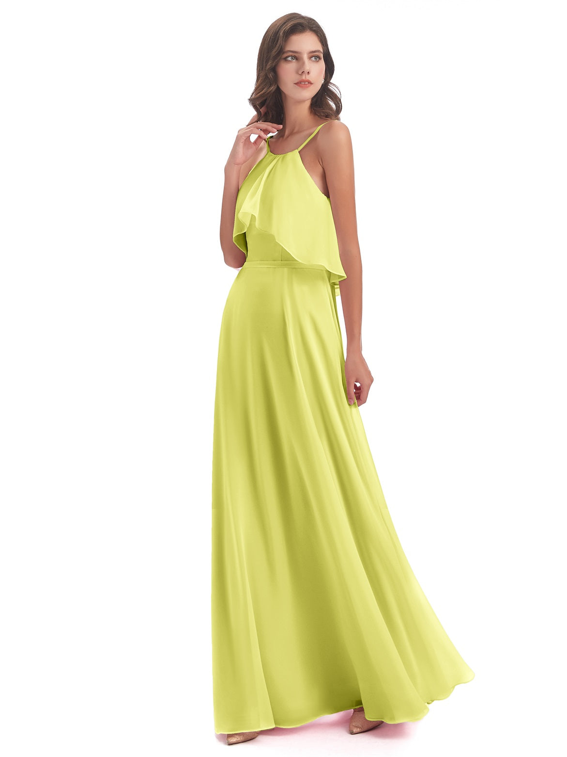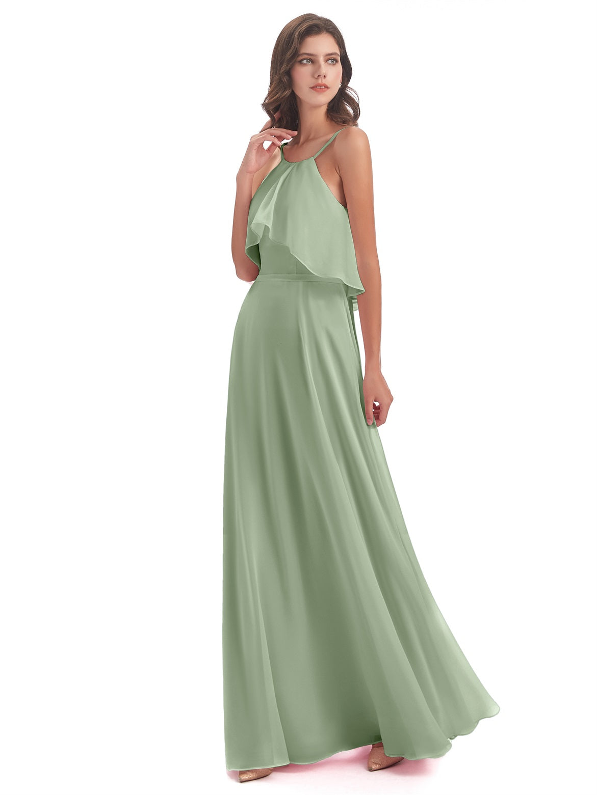 Paisley A-Linie Bodenlange Spaghetti-Trägern geschlitzte Chiffon Lange Brautjungfernkleider