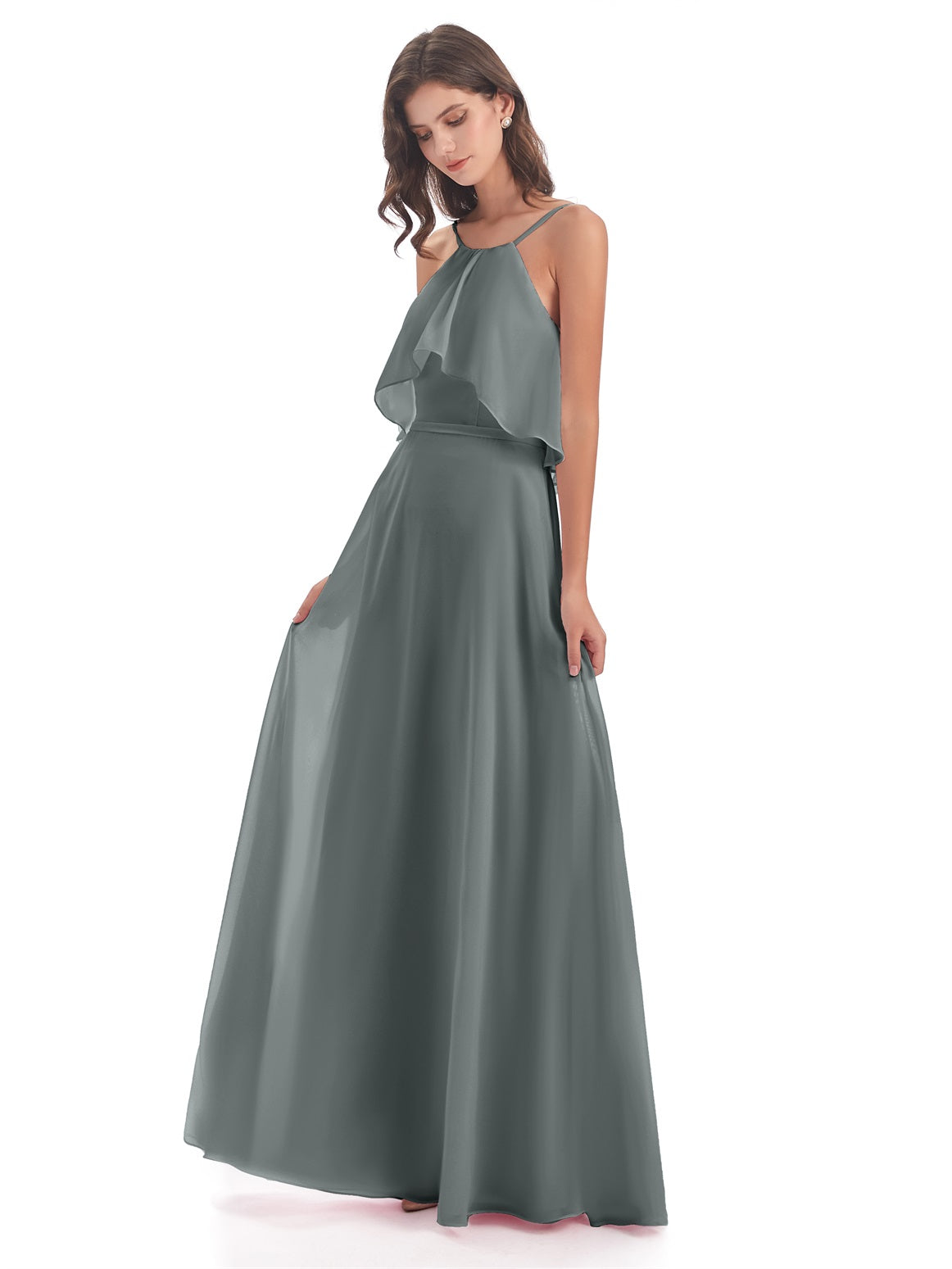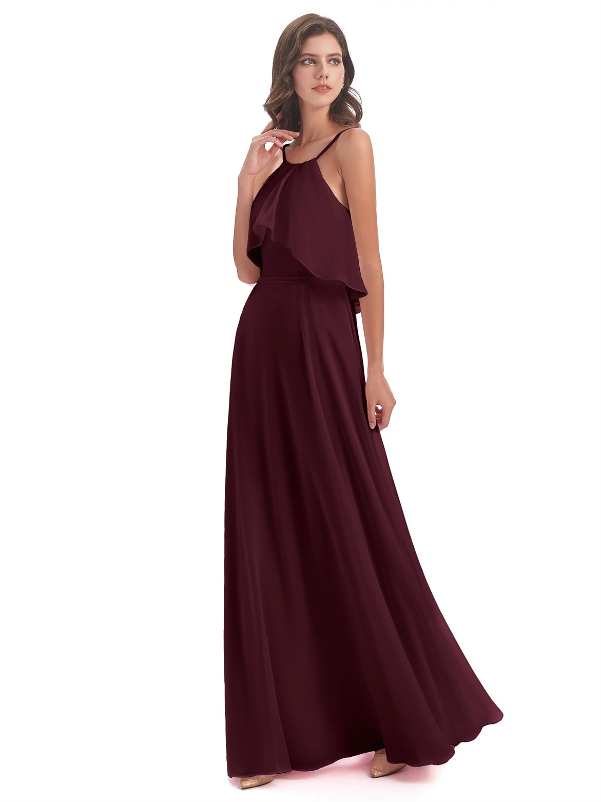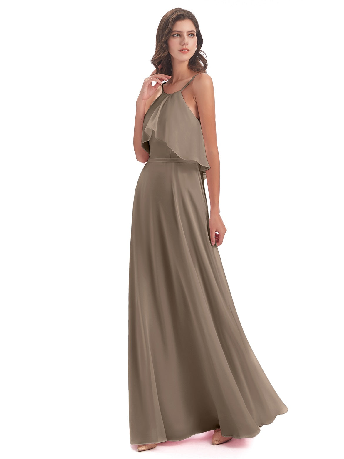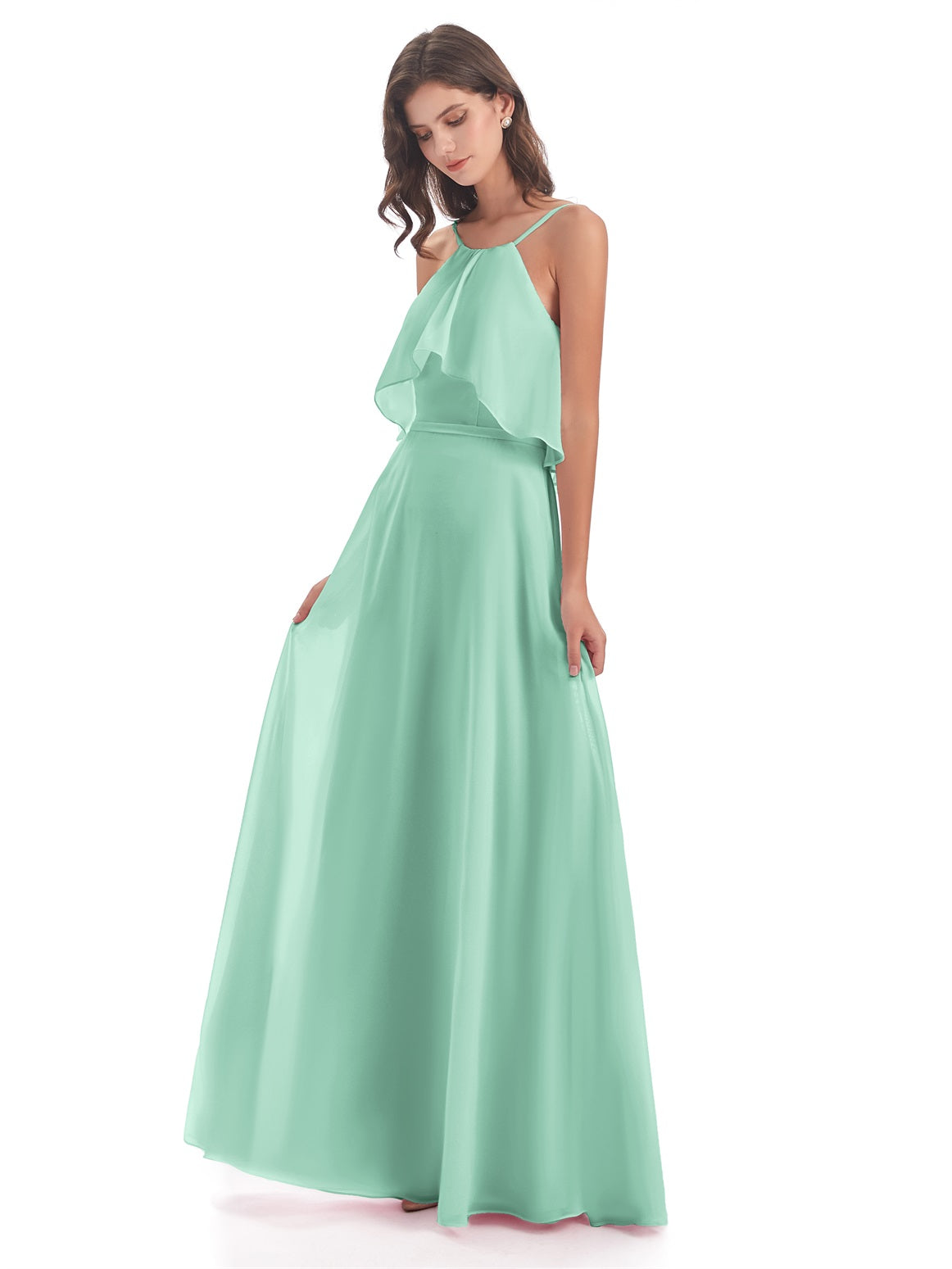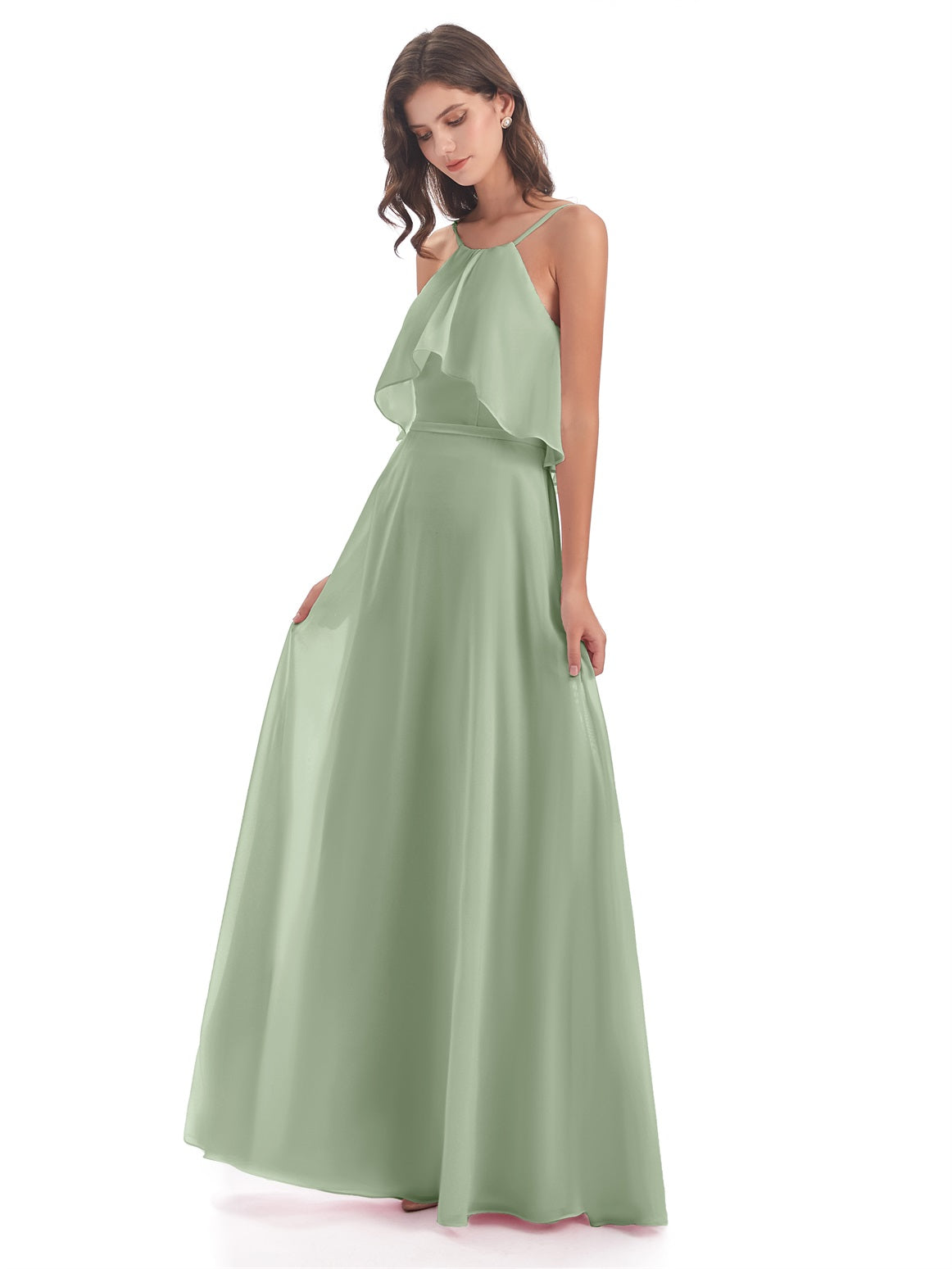 Paisley A-Linie Bodenlange Spaghetti-Trägern geschlitzte Chiffon Lange Brautjungfernkleider
