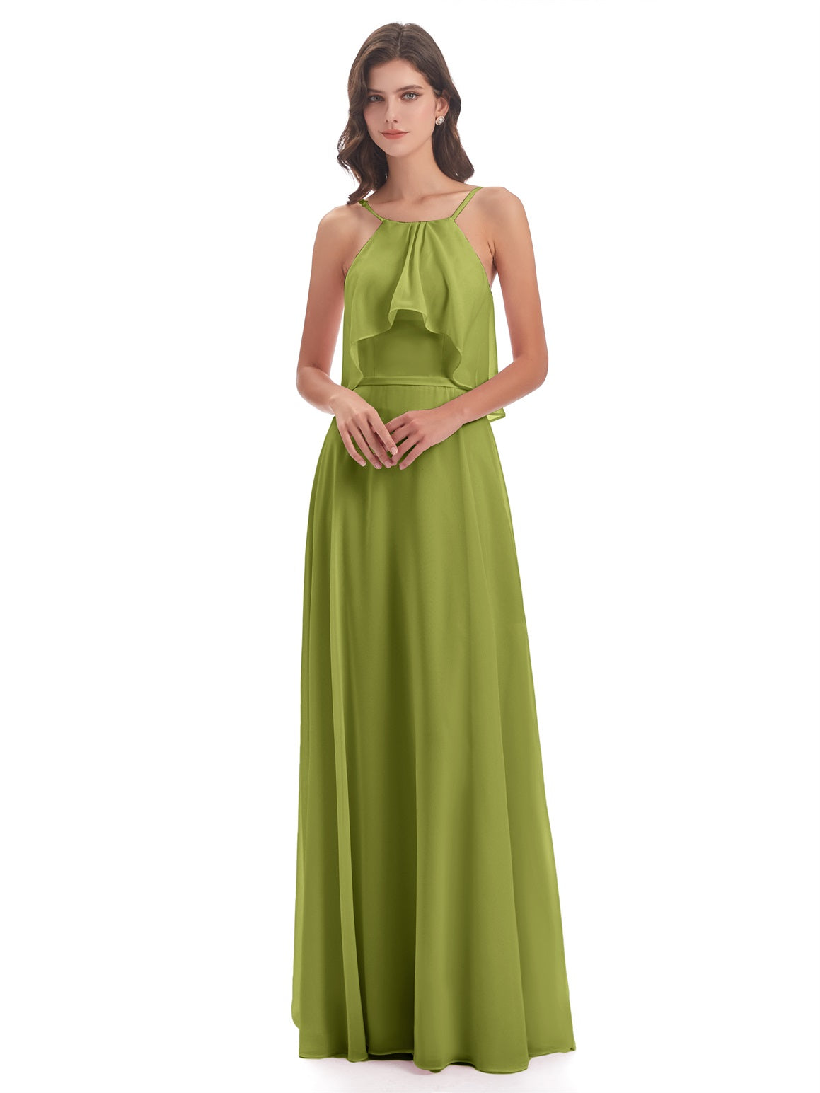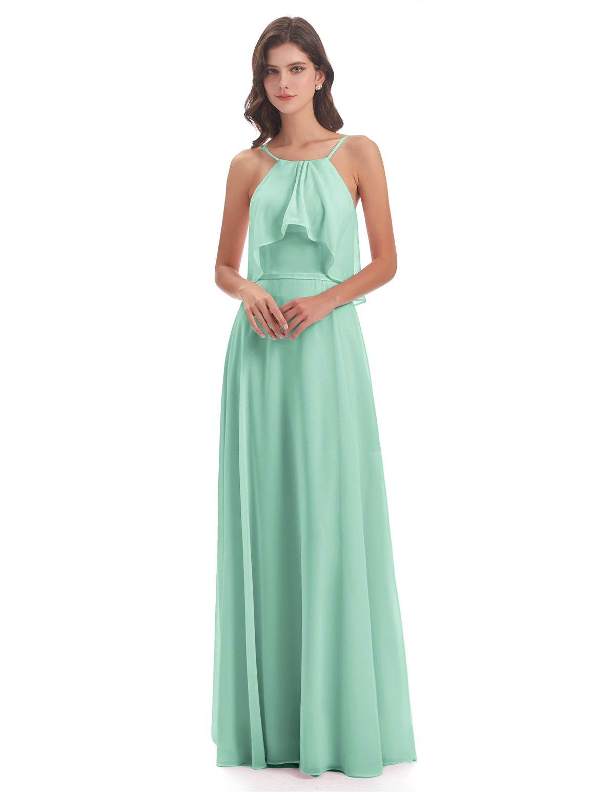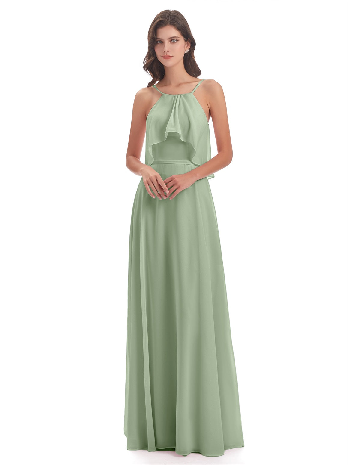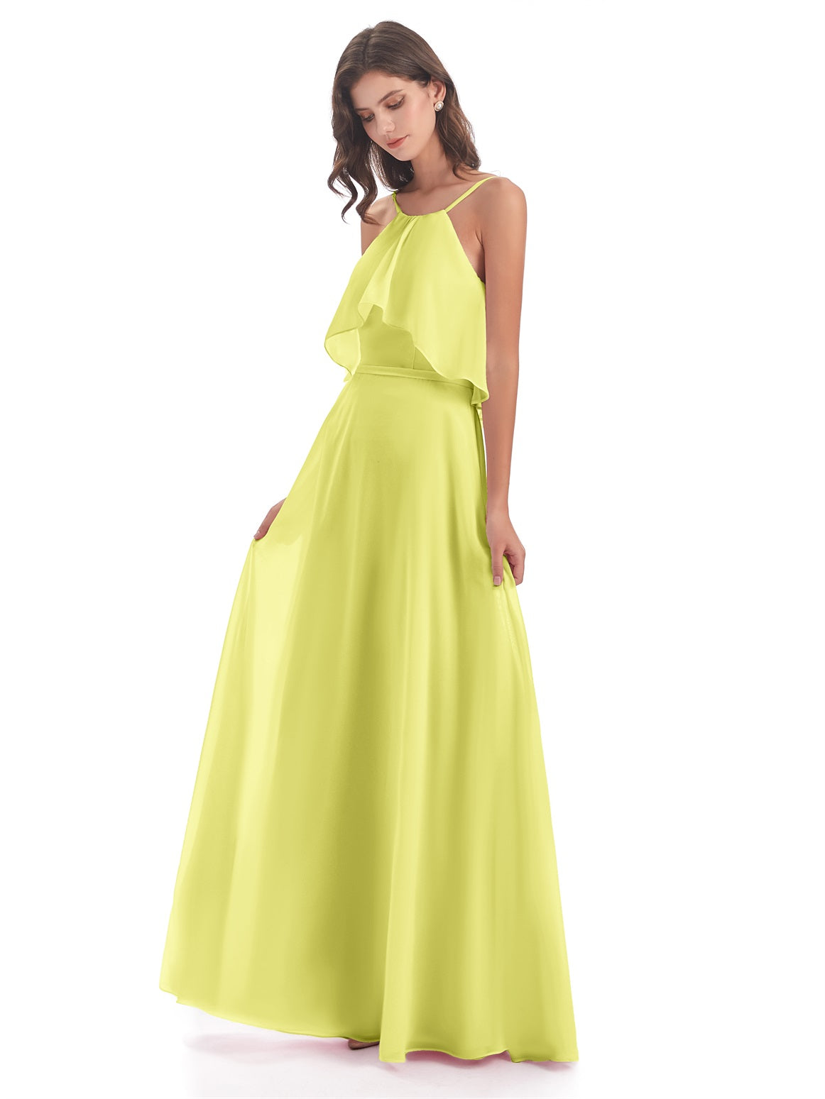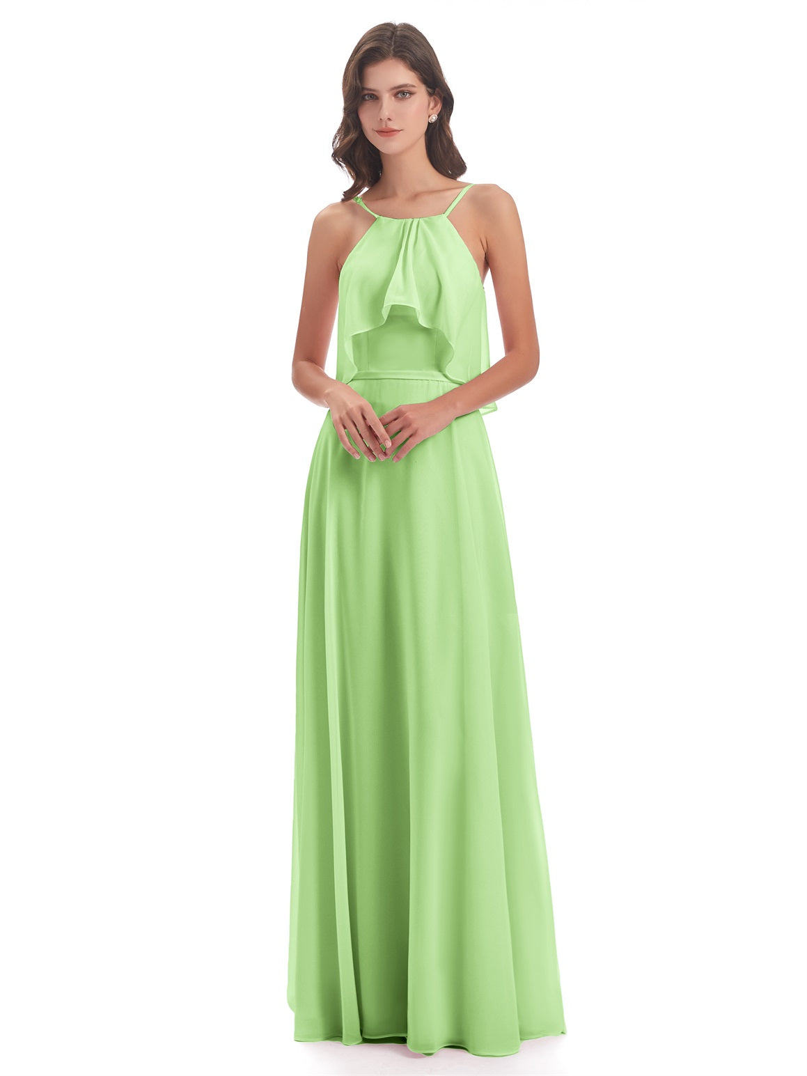 Paisley A-Linie Bodenlange Spaghetti-Trägern geschlitzte Chiffon Lange Brautjungfernkleider