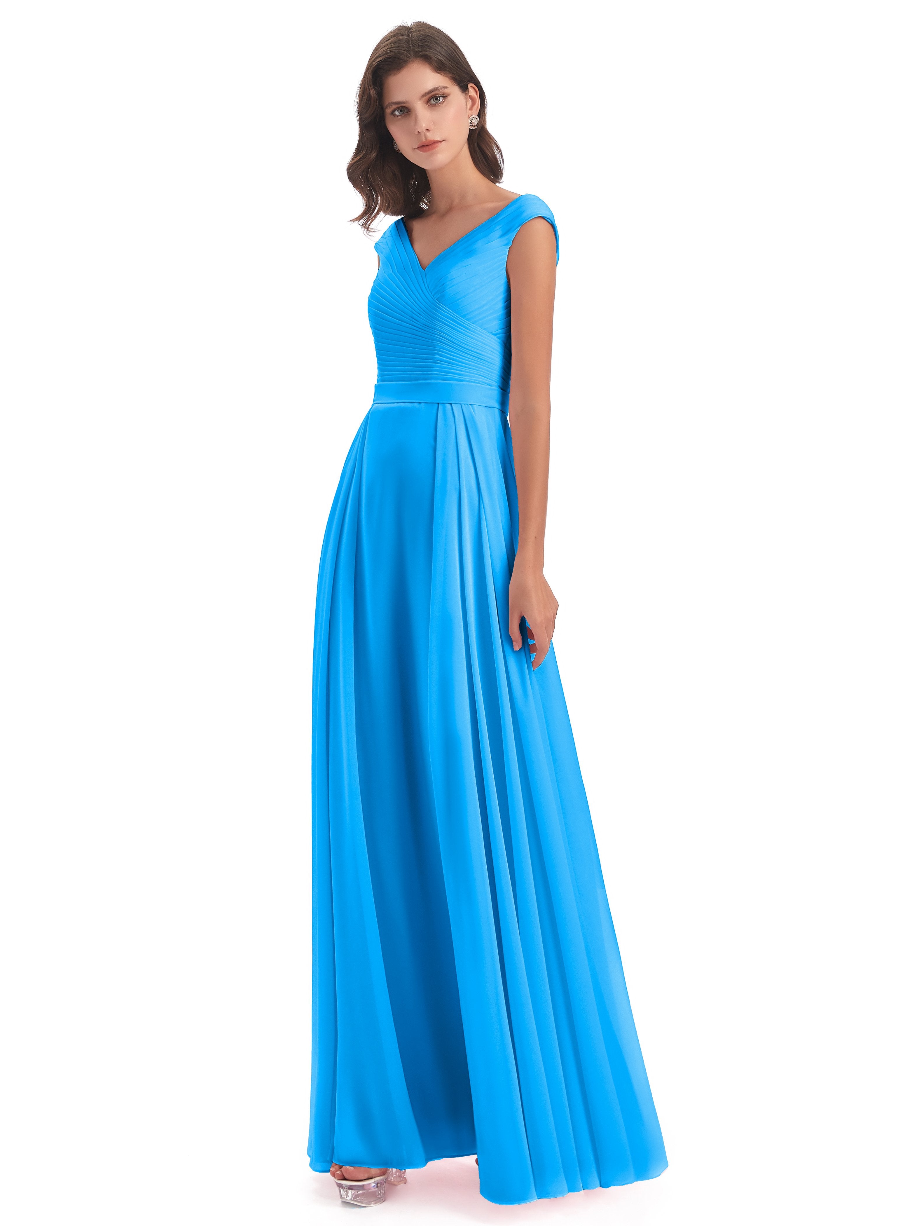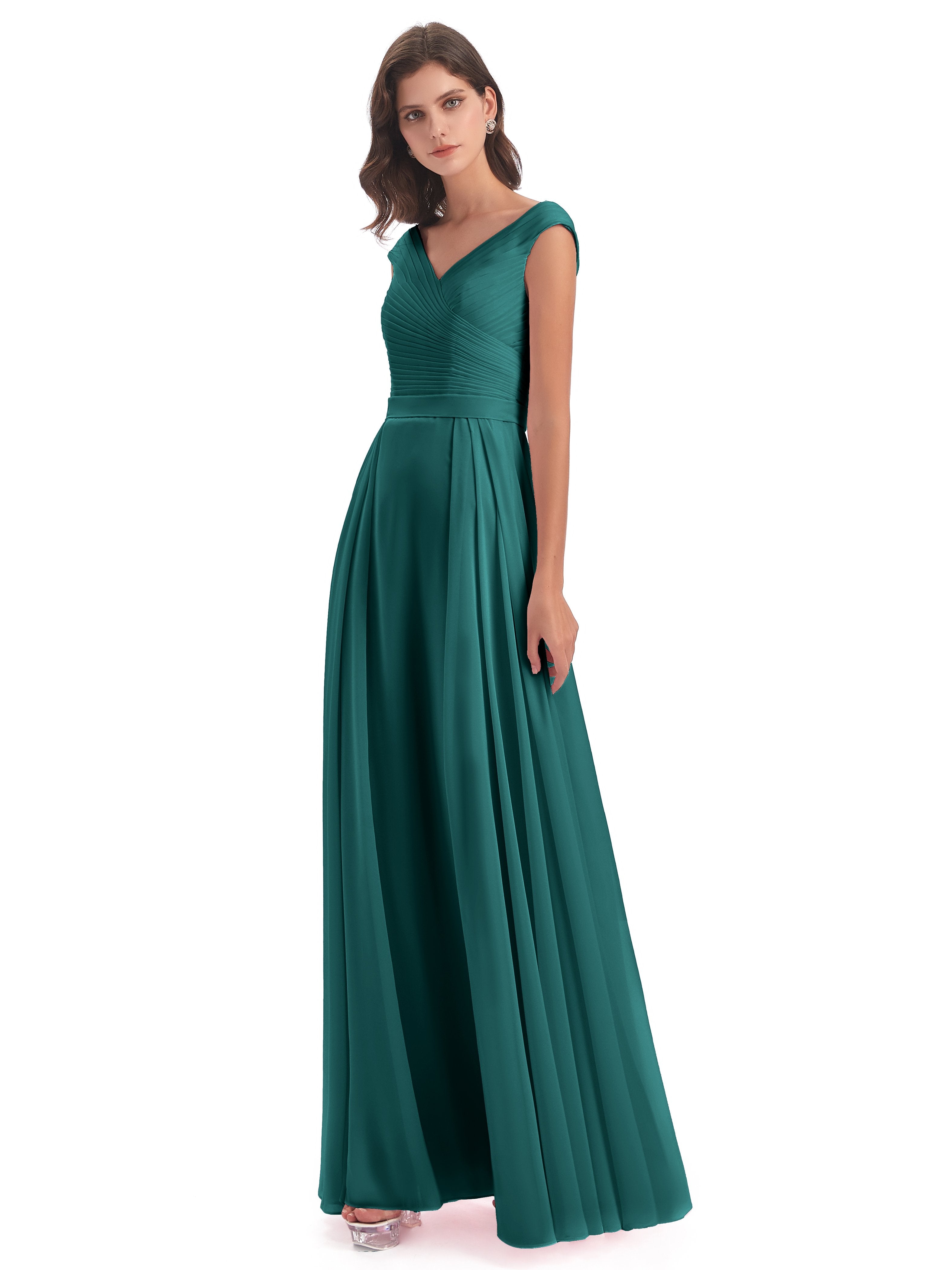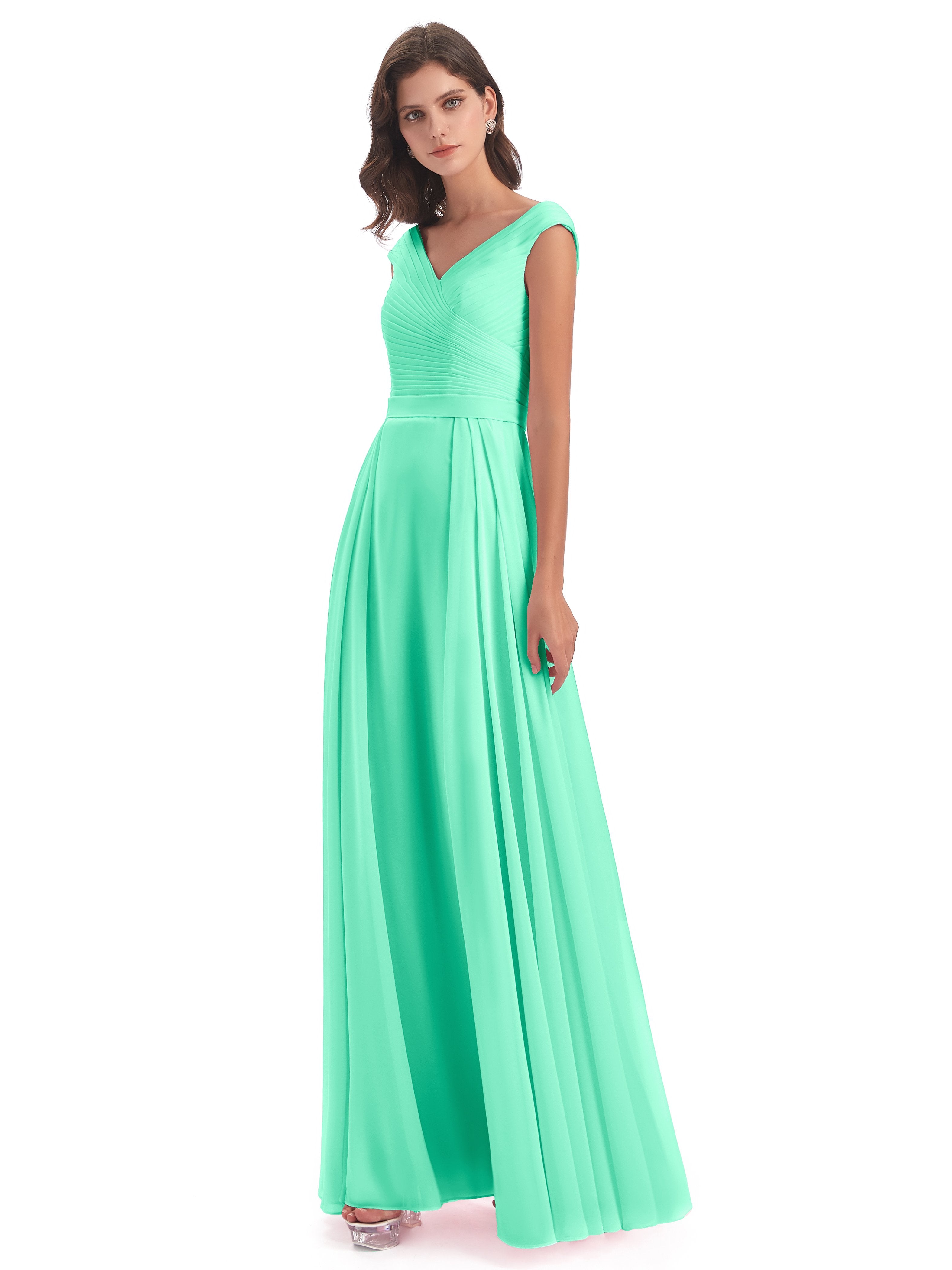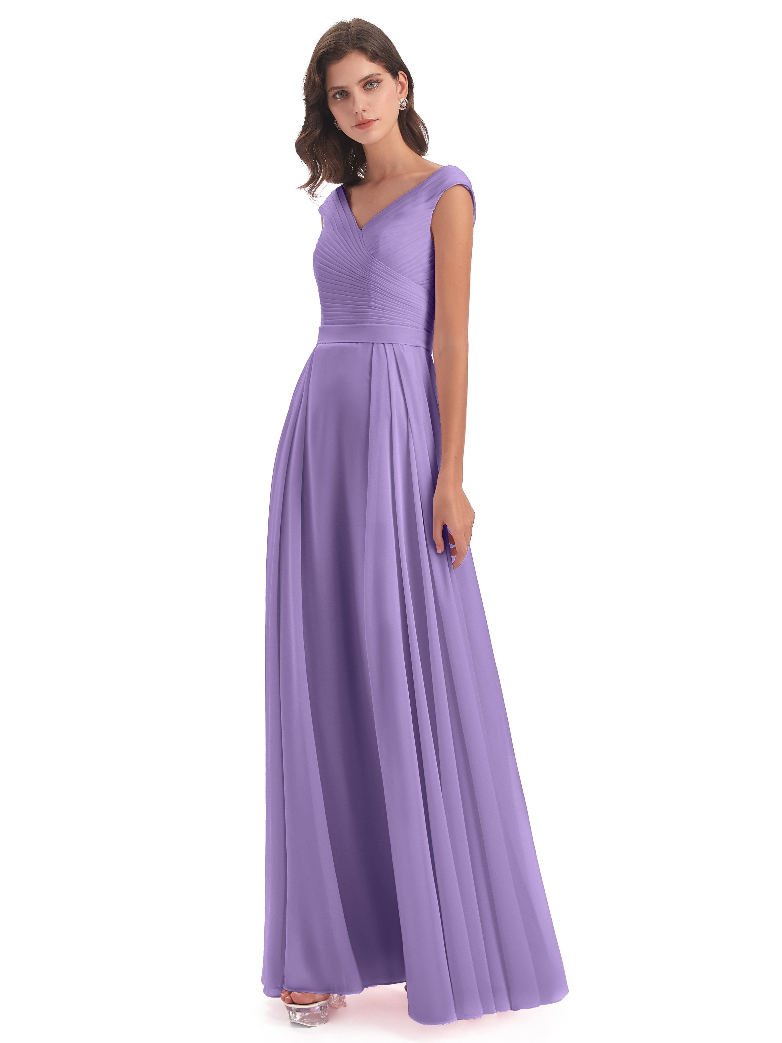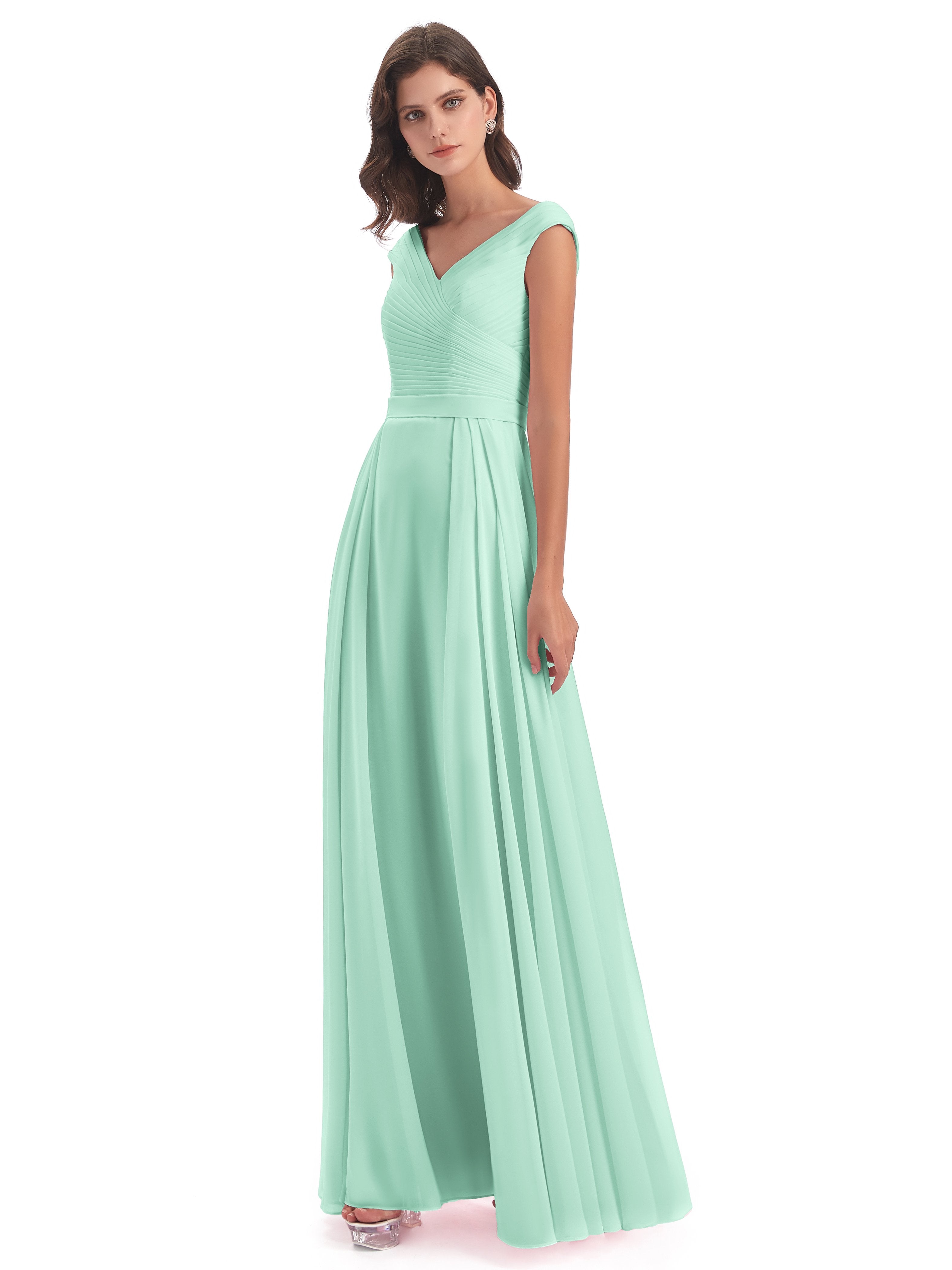 Saoirse A-Linie Bodenlange V-Ausschnitt Chiffon Lange Brautjungfernkleider