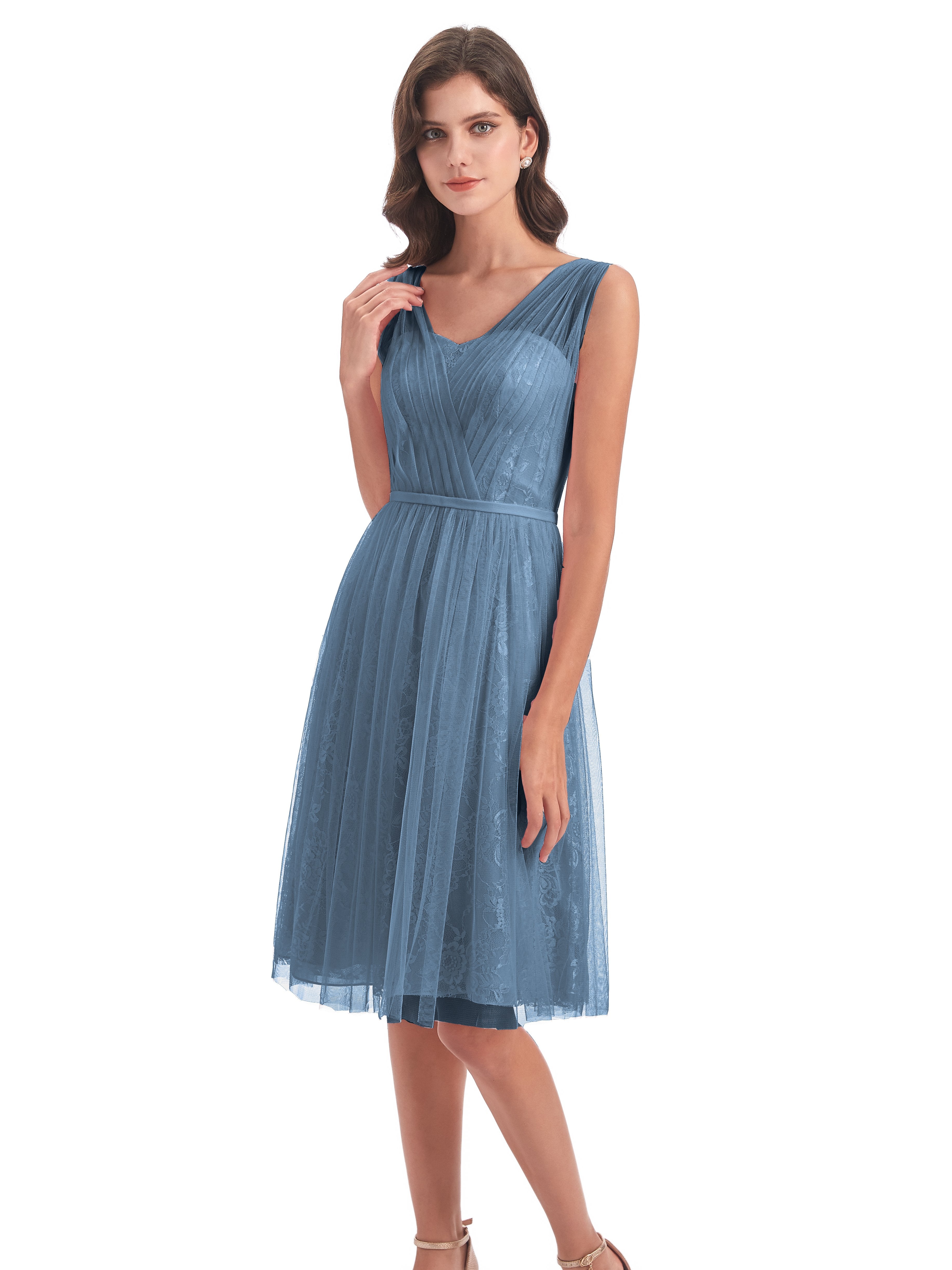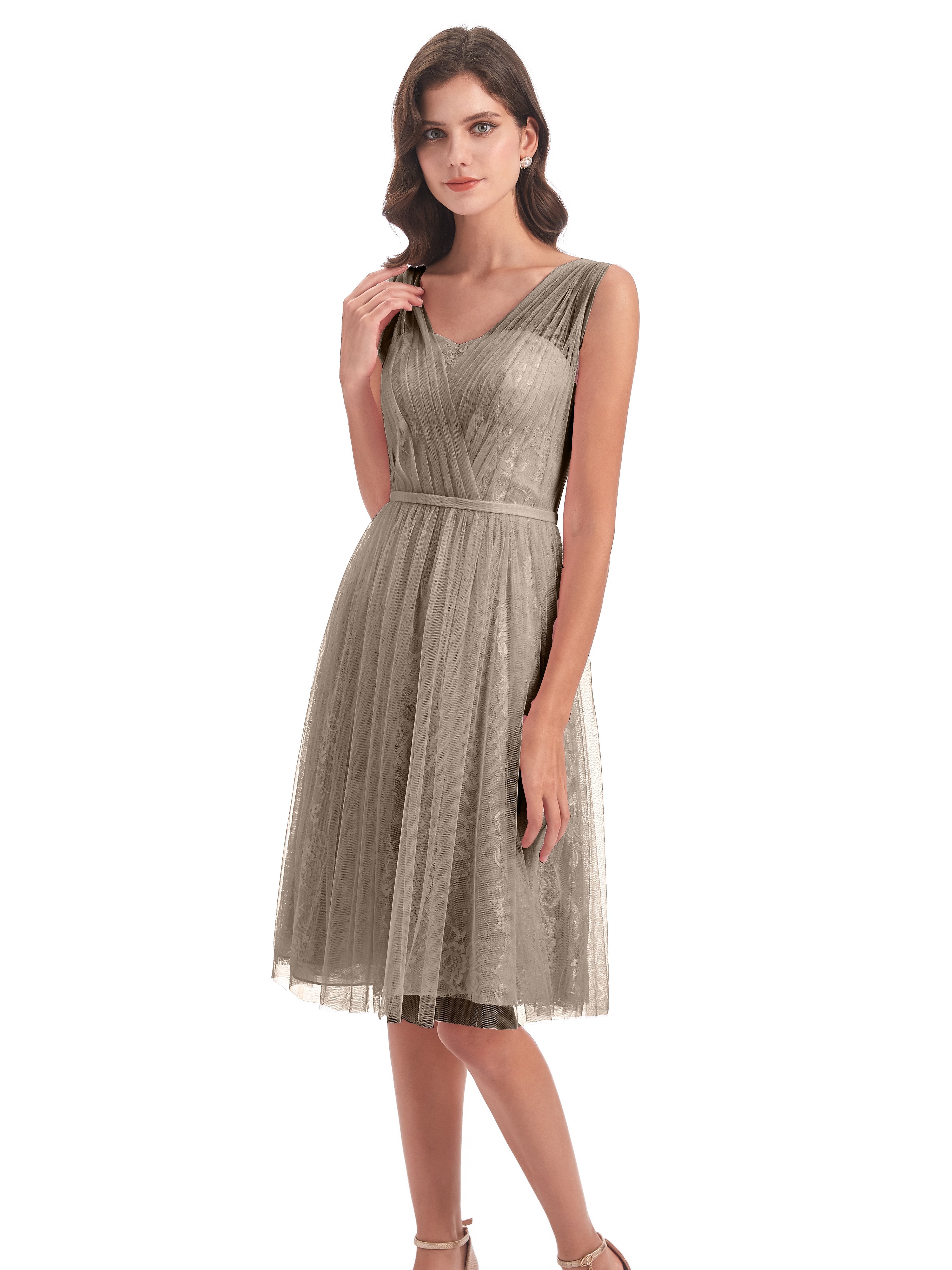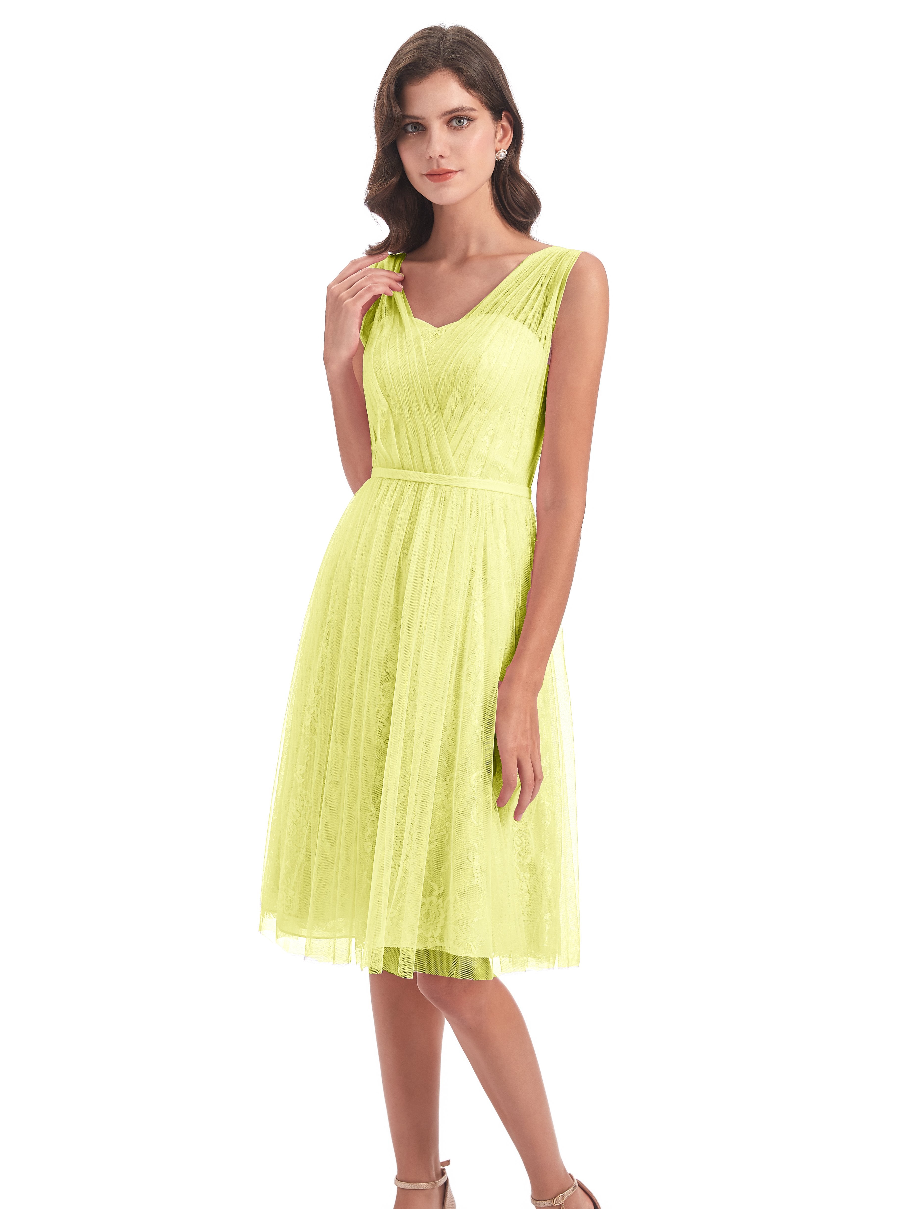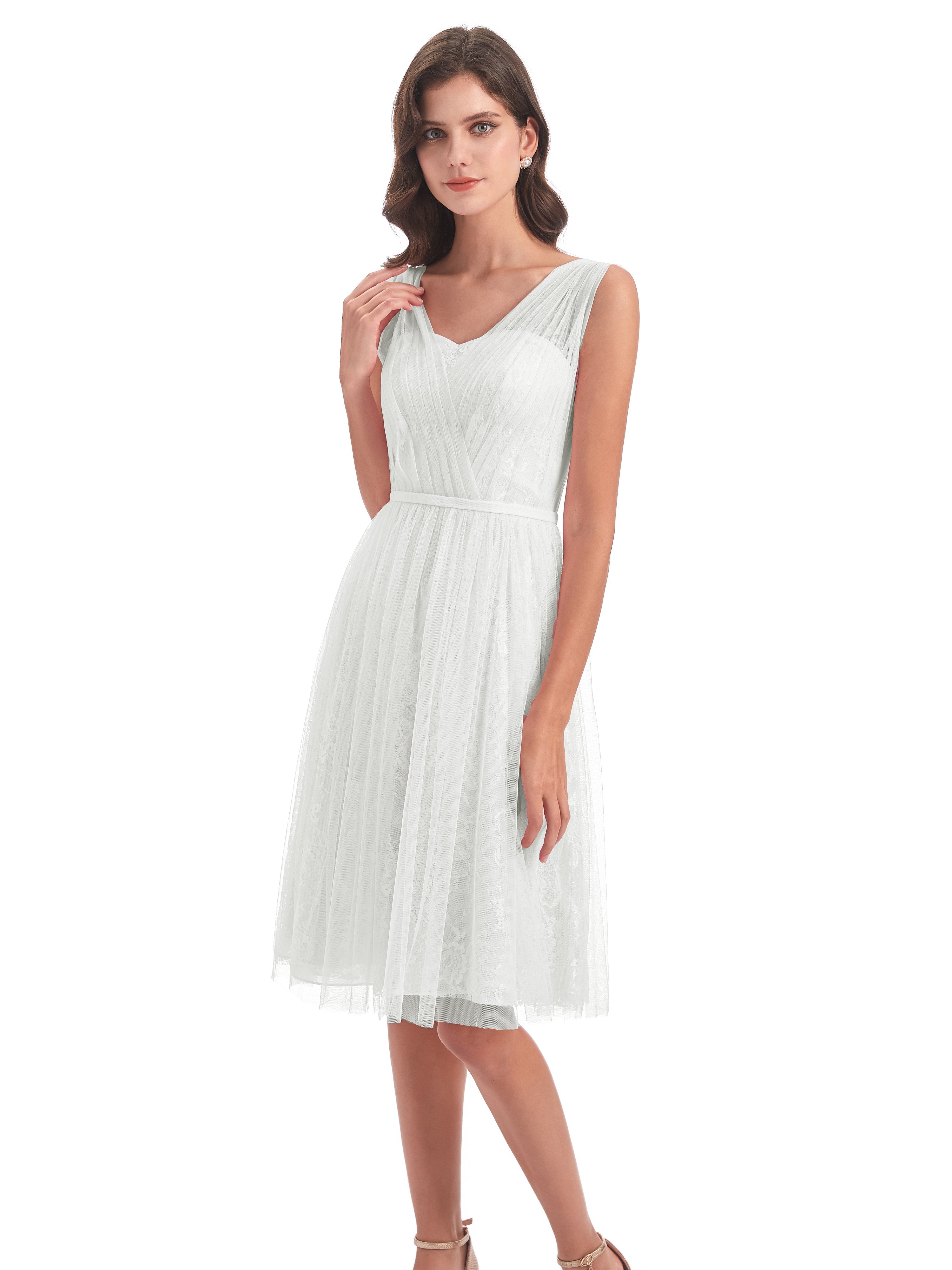 Savannah A-Linie Knielange Illusion Trägern Tüll/Spitze Kurze Brautjungfernkleider