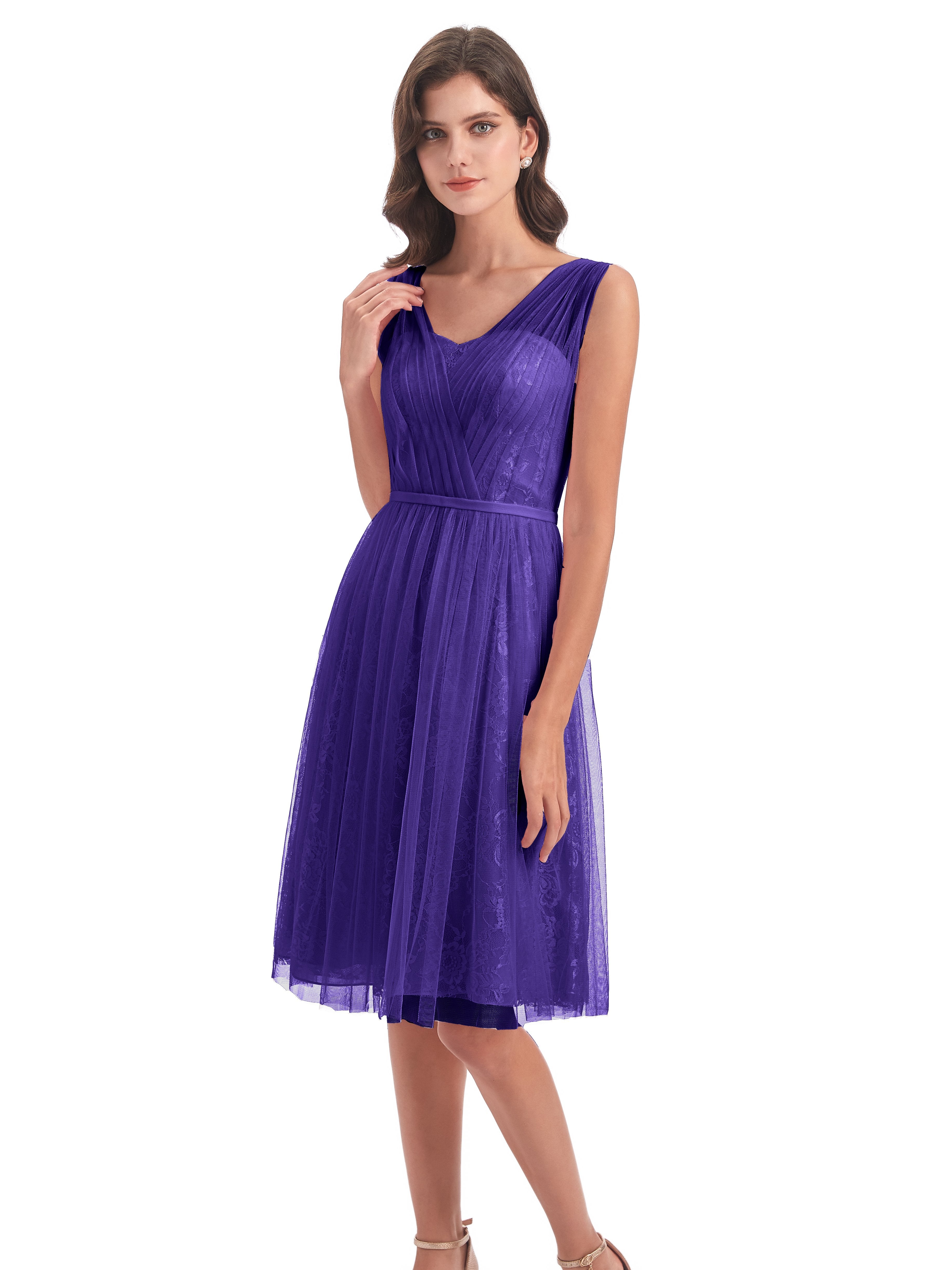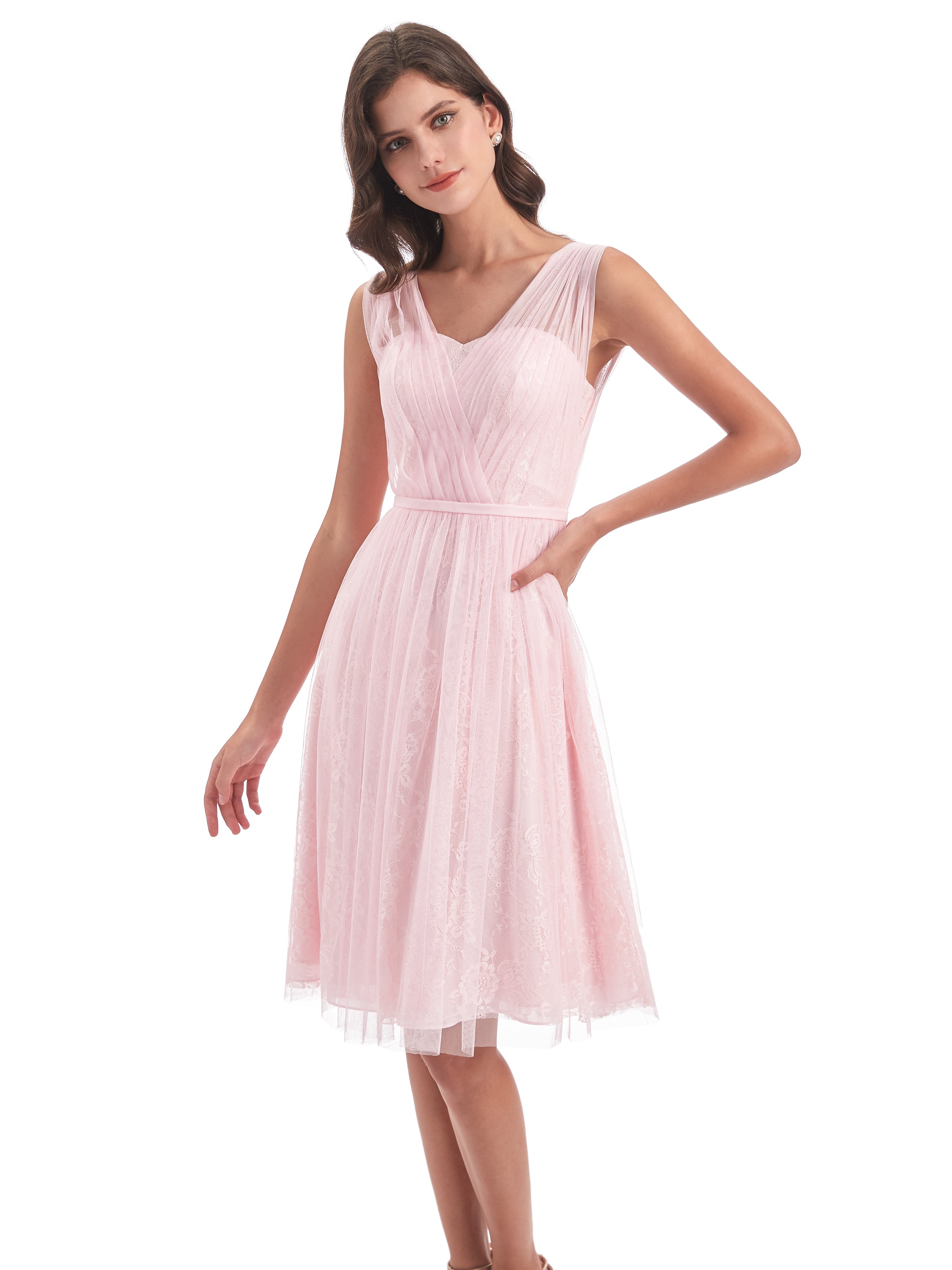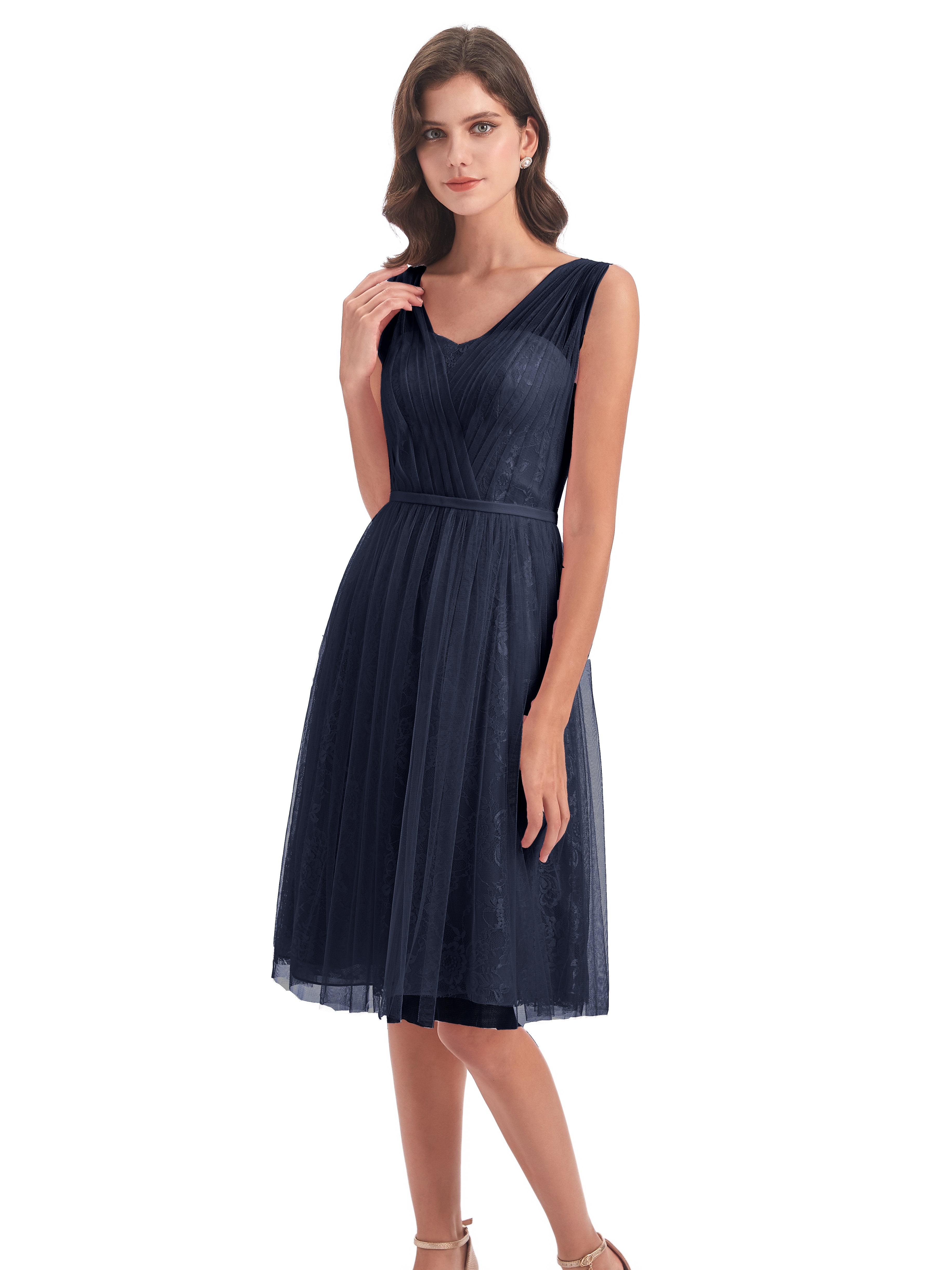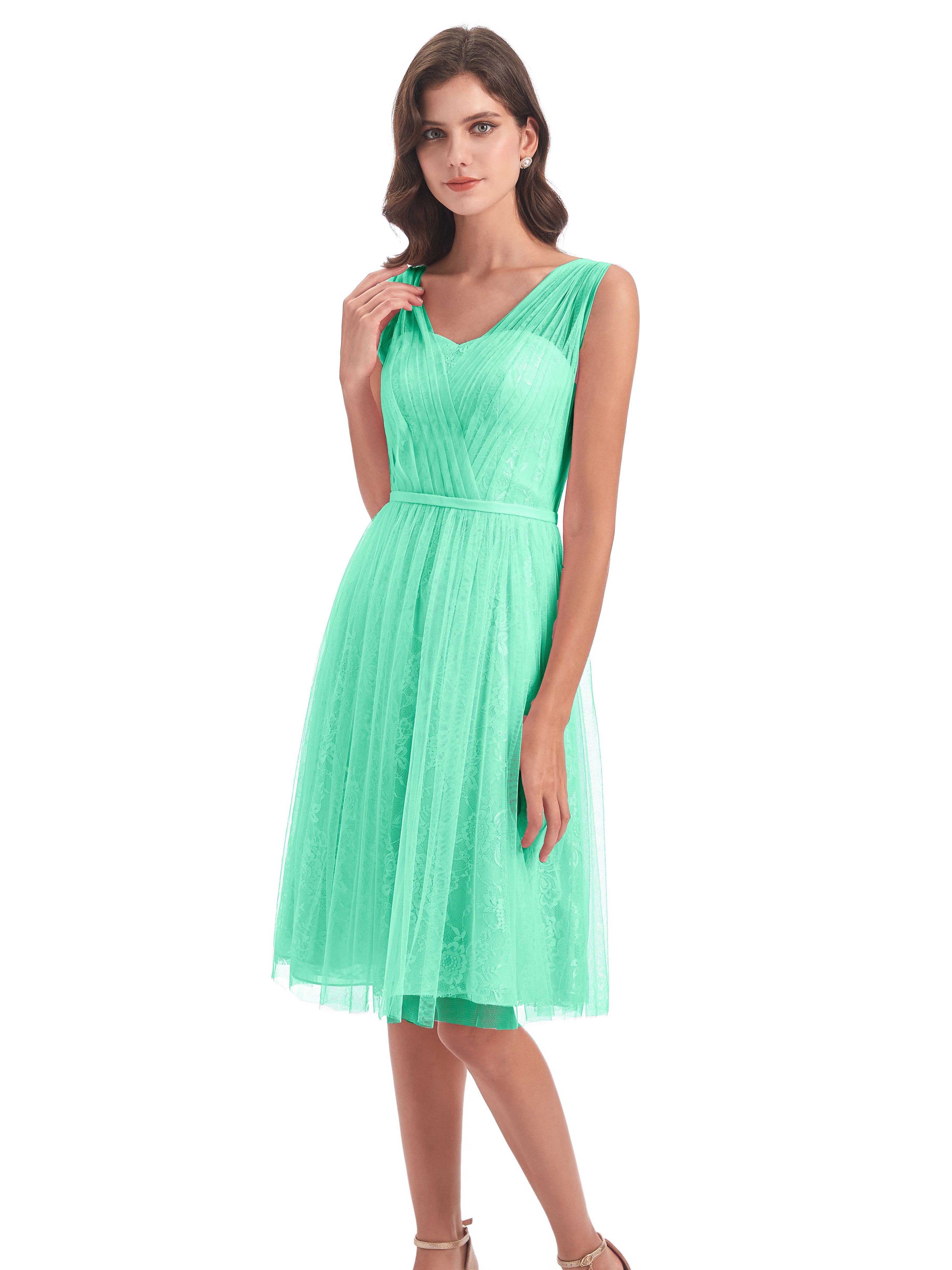 Savannah A-Linie Knielange Illusion Trägern Tüll/Spitze Kurze Brautjungfernkleider