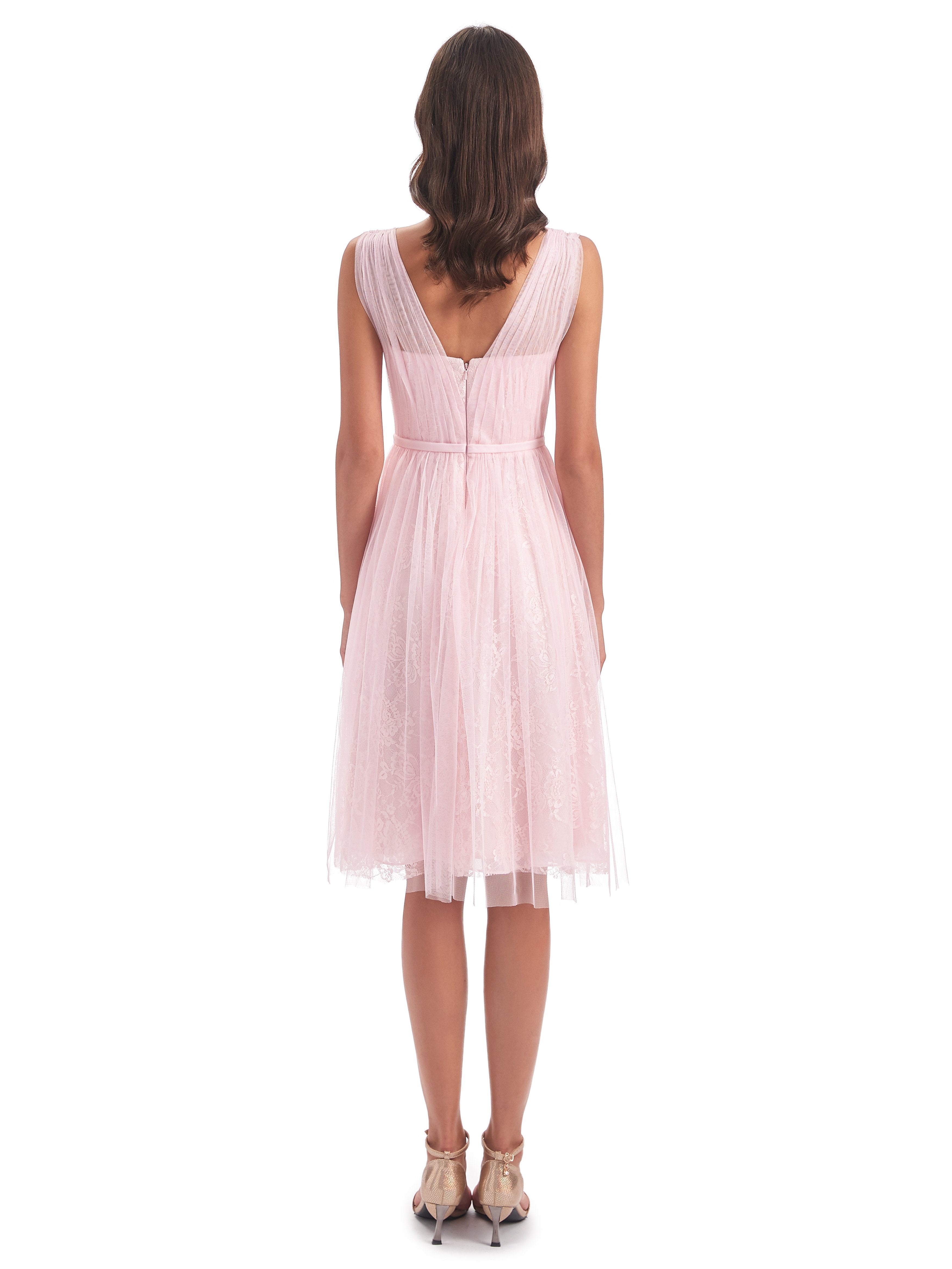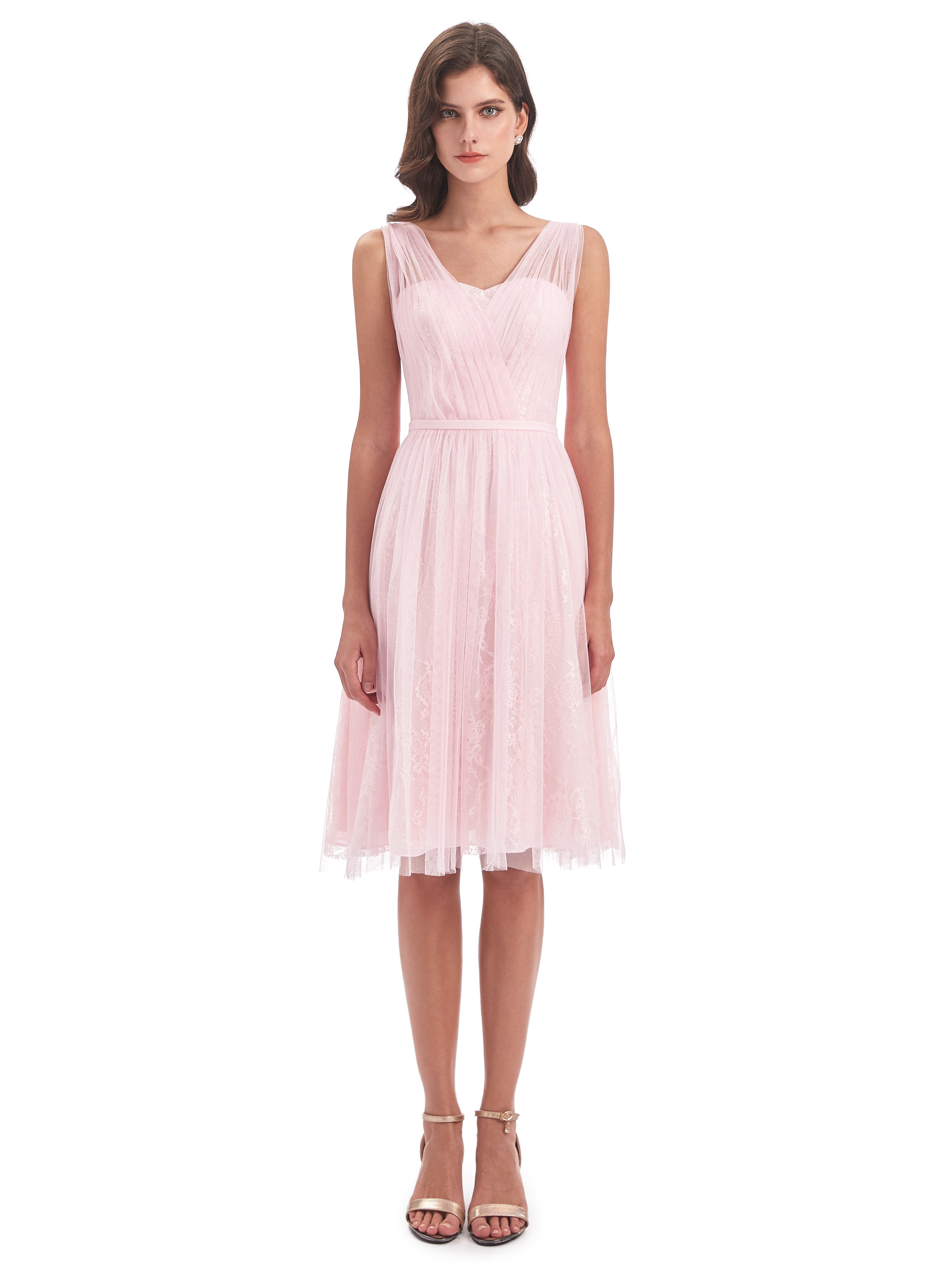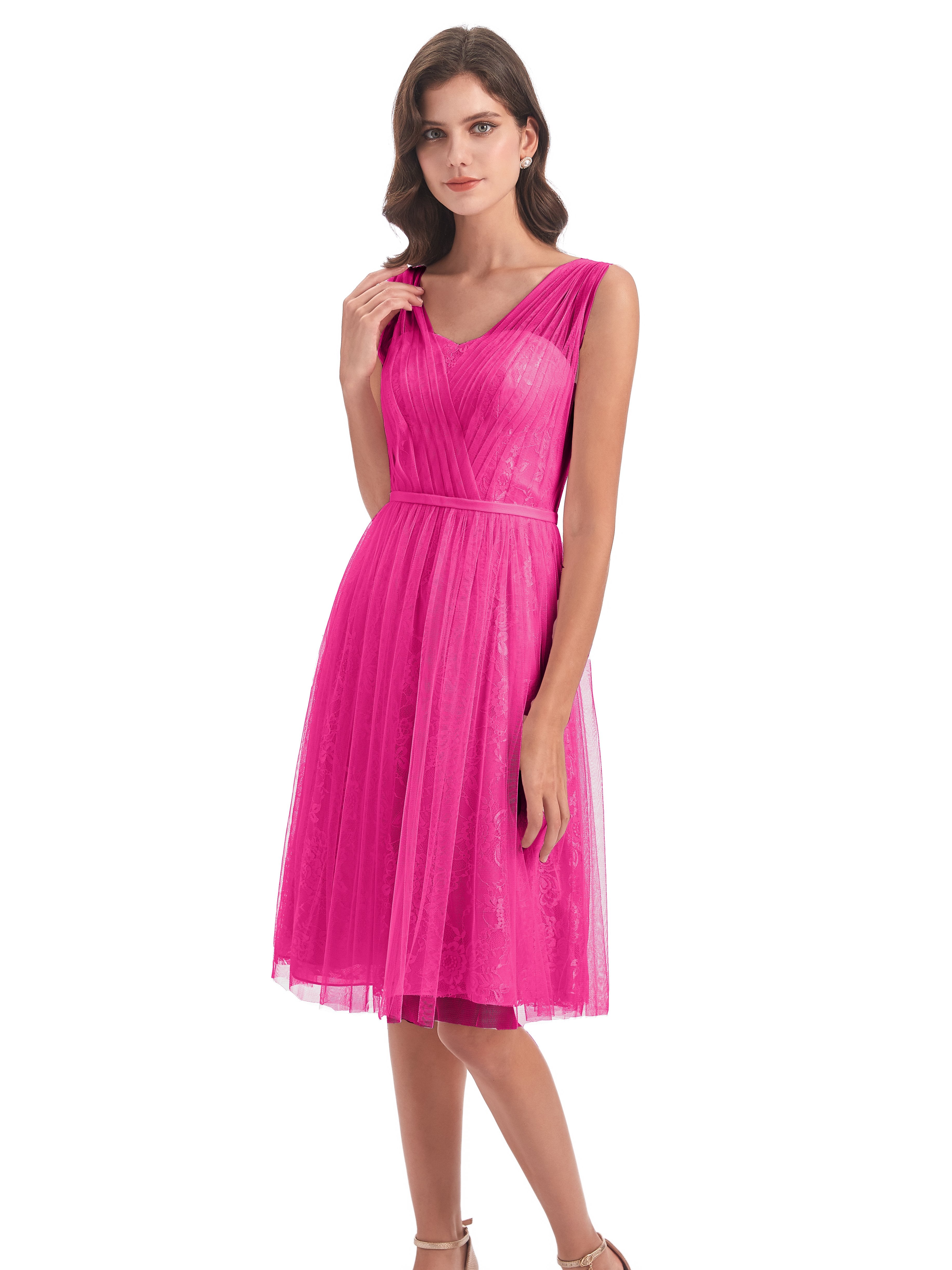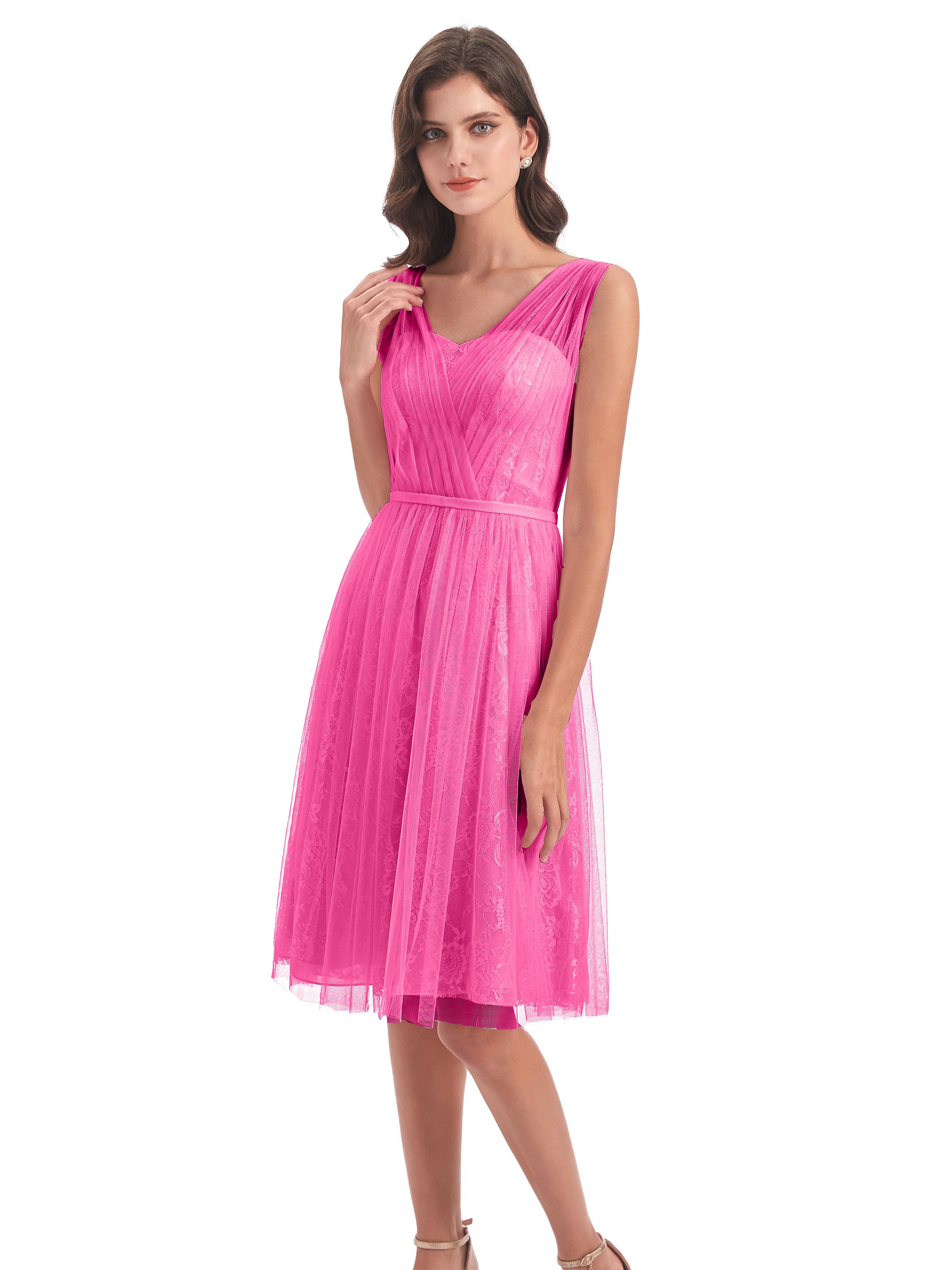 Savannah A-Linie Knielange Illusion Trägern Tüll/Spitze Kurze Brautjungfernkleider