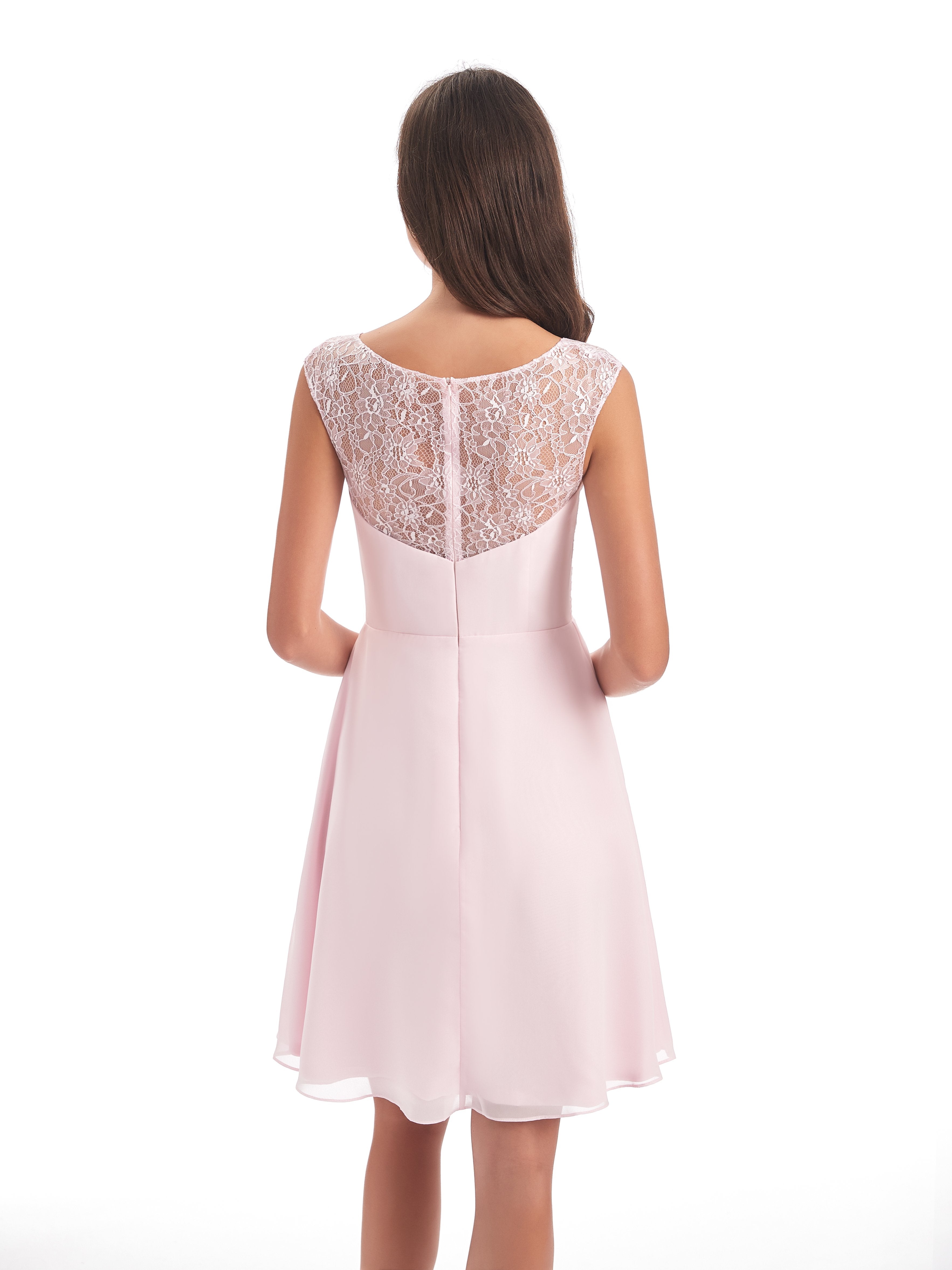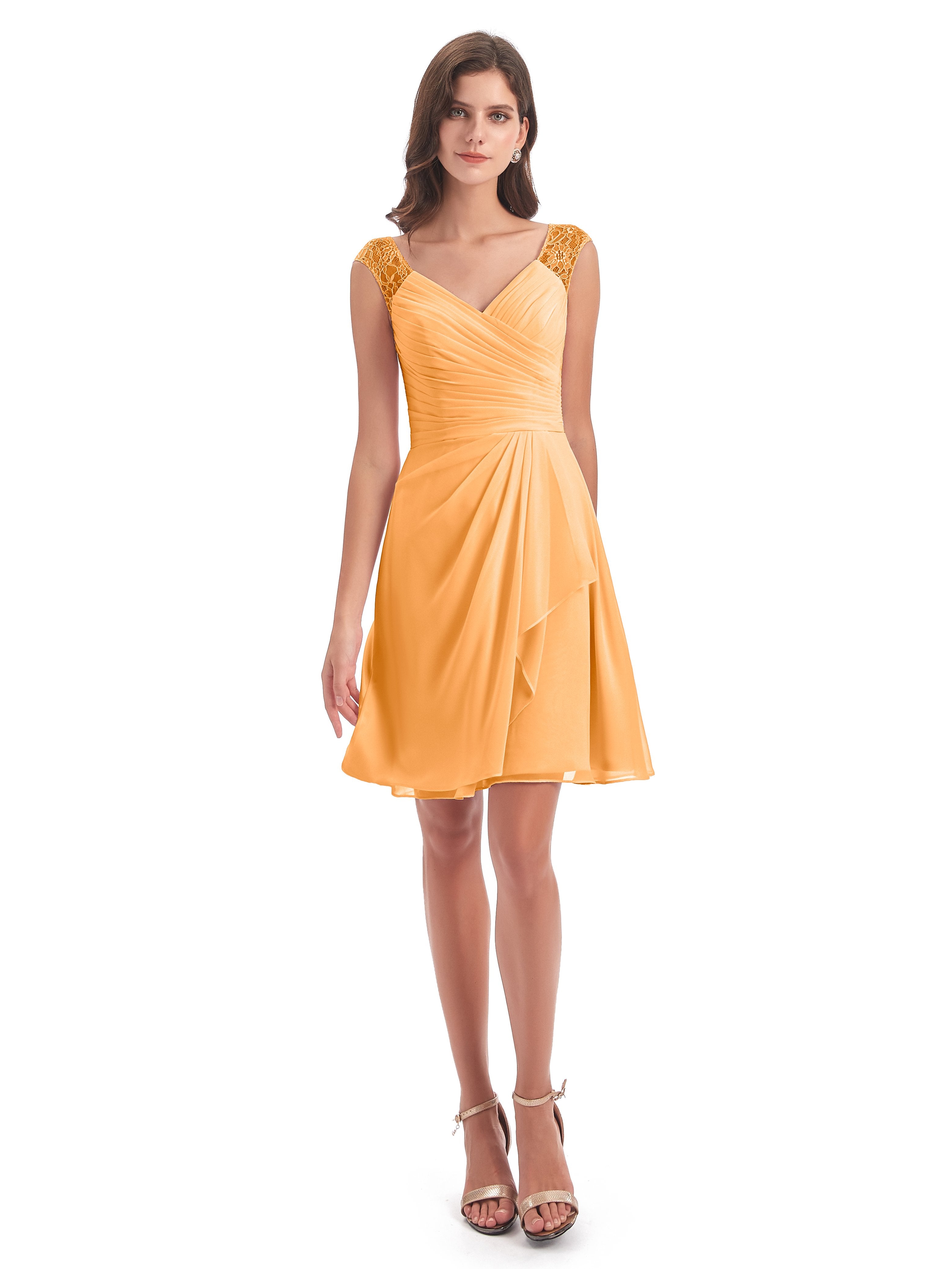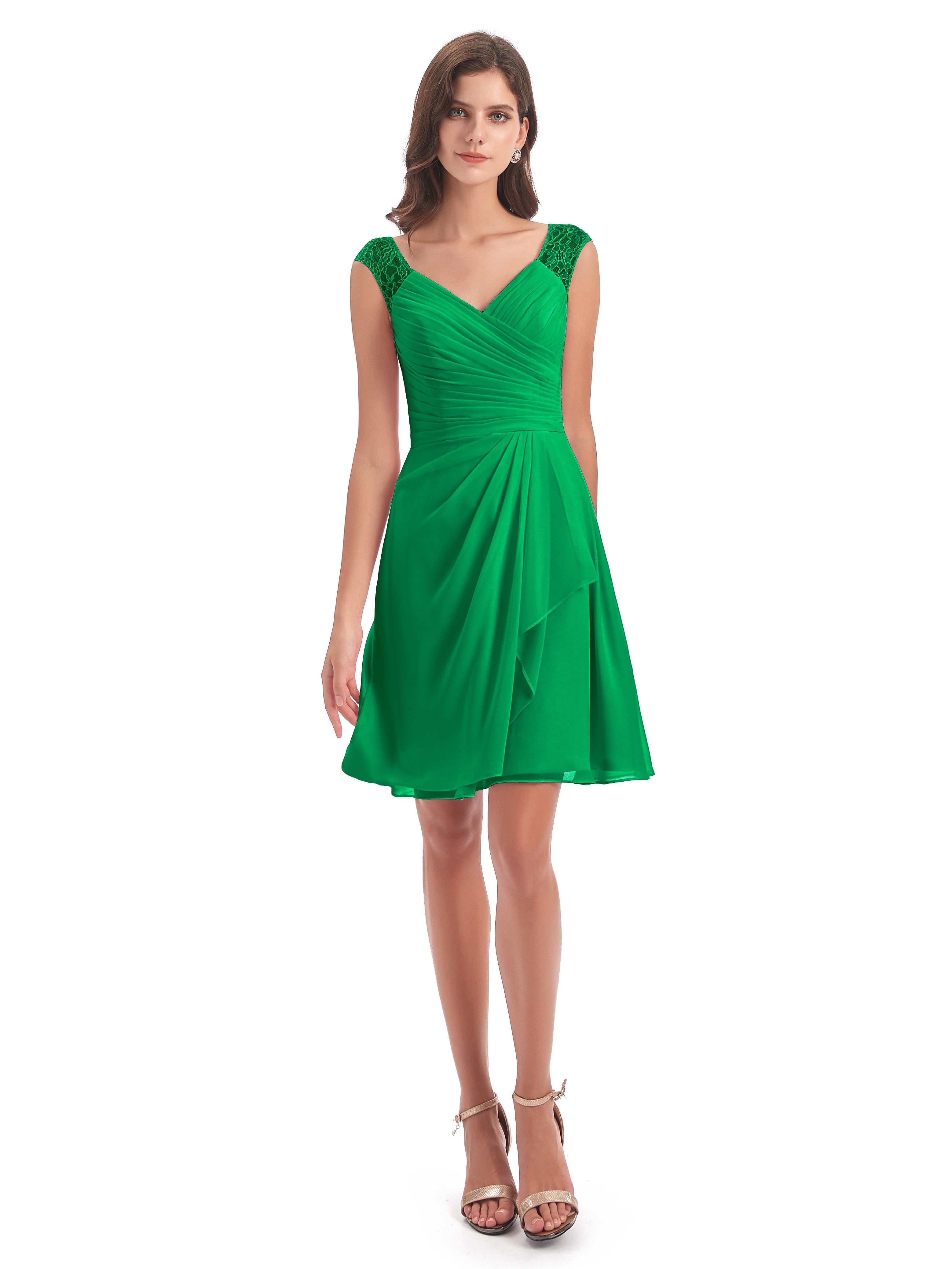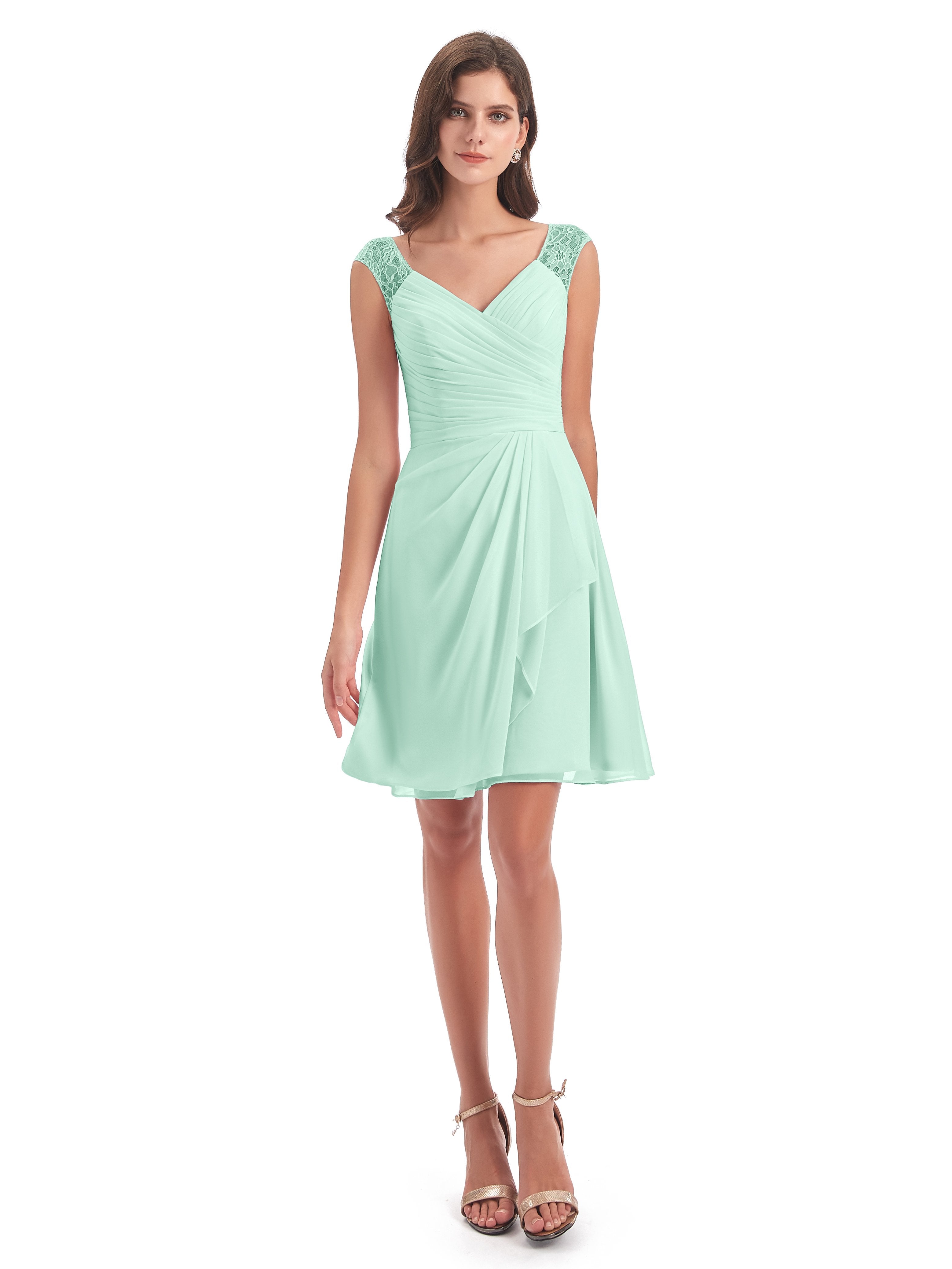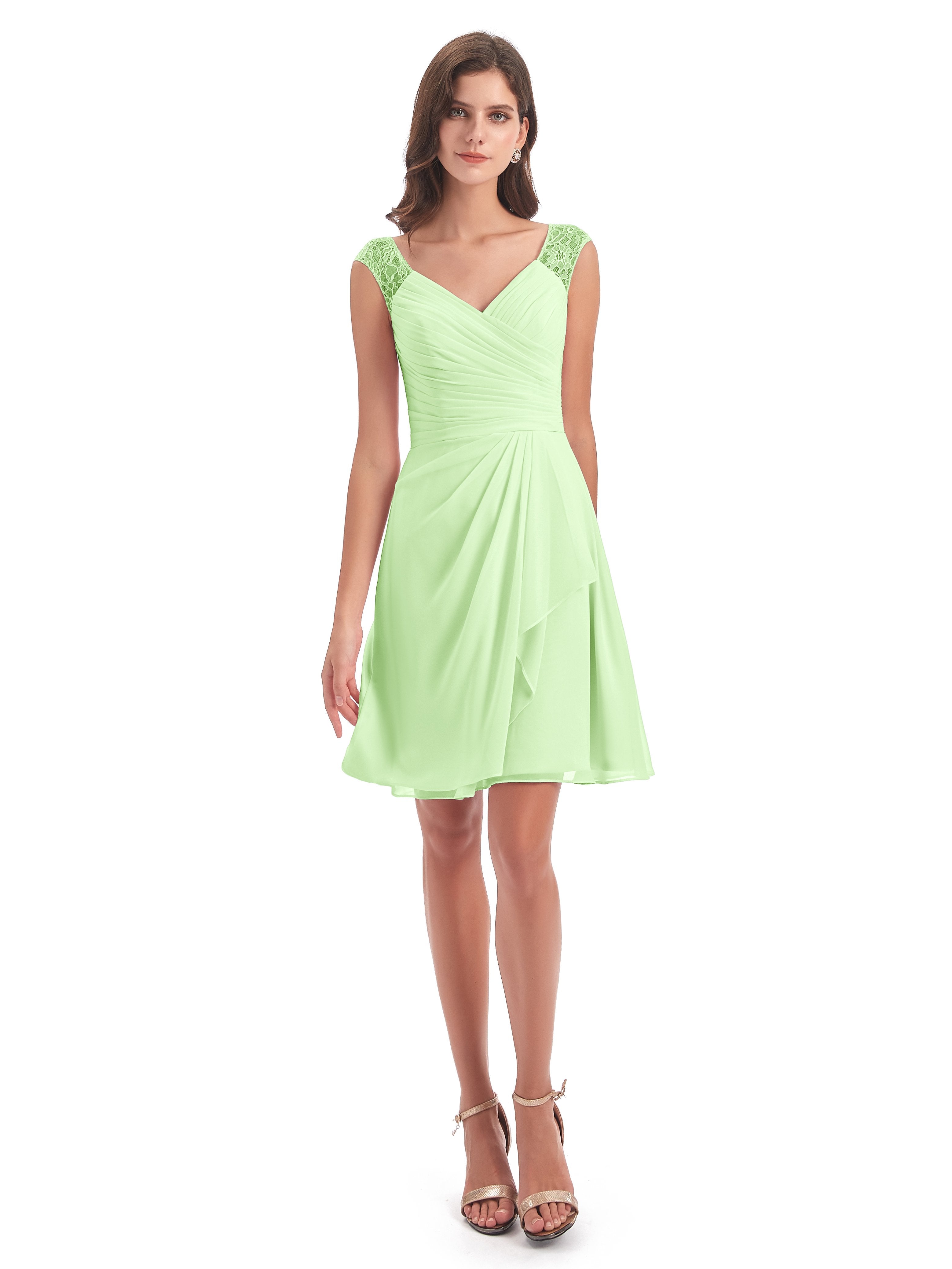 Zendaya A-Linie Knielange V-Ausschnitt Spitze/Chiffon Kurze Brautjungfernkleider