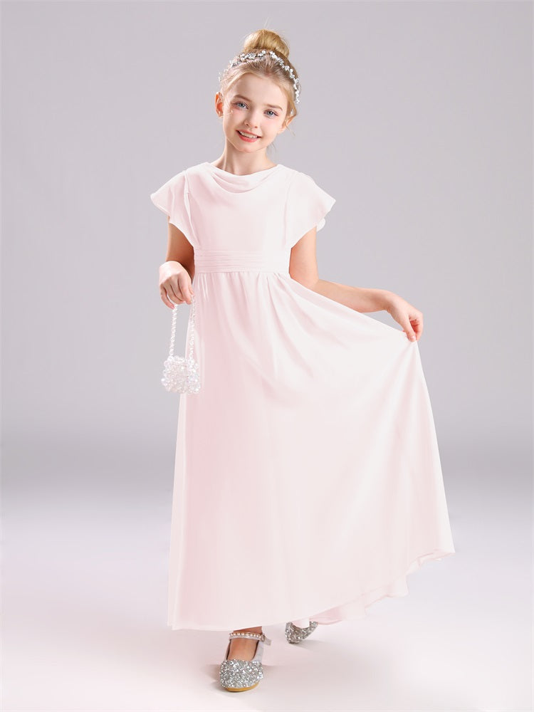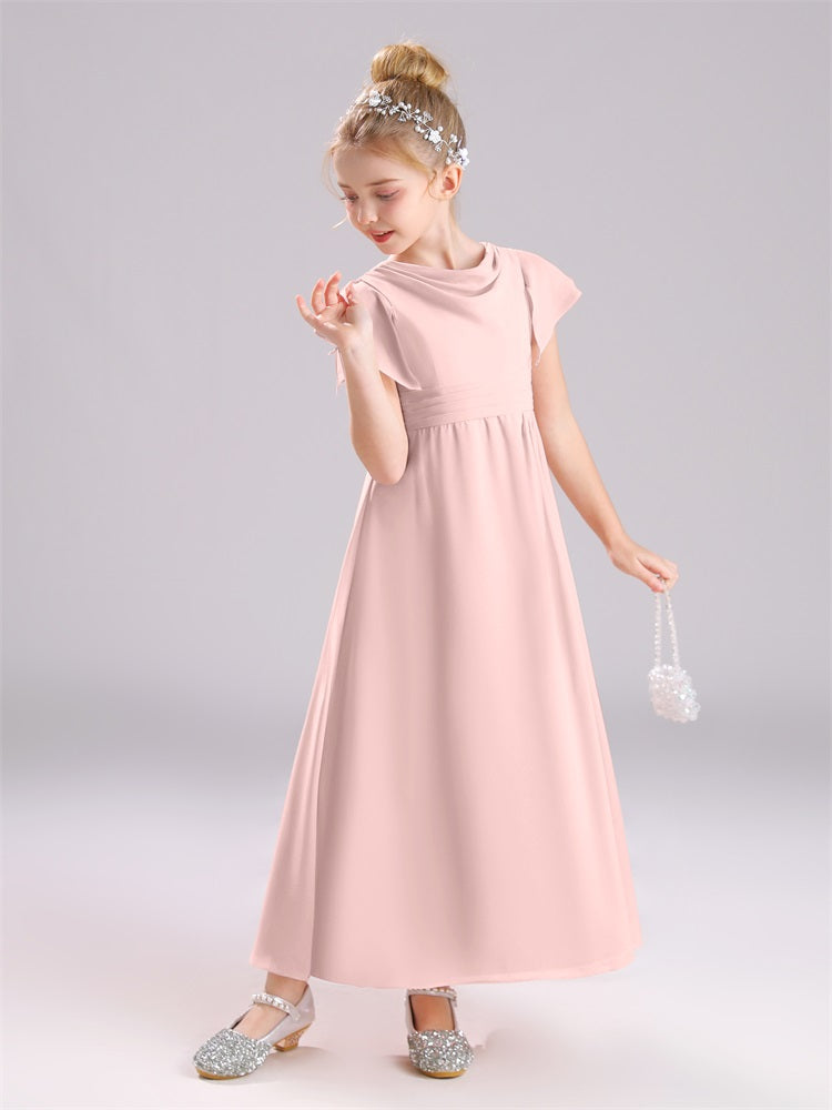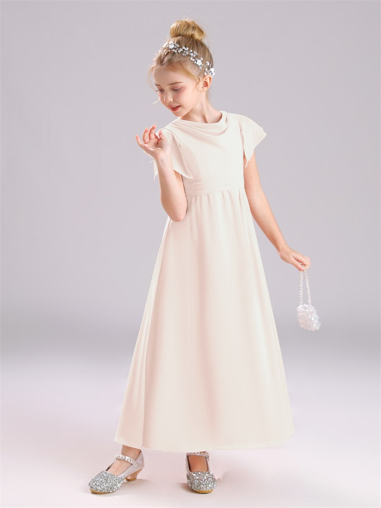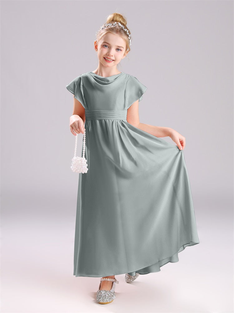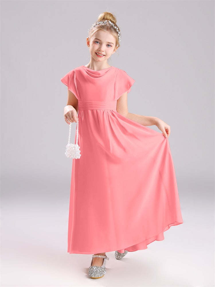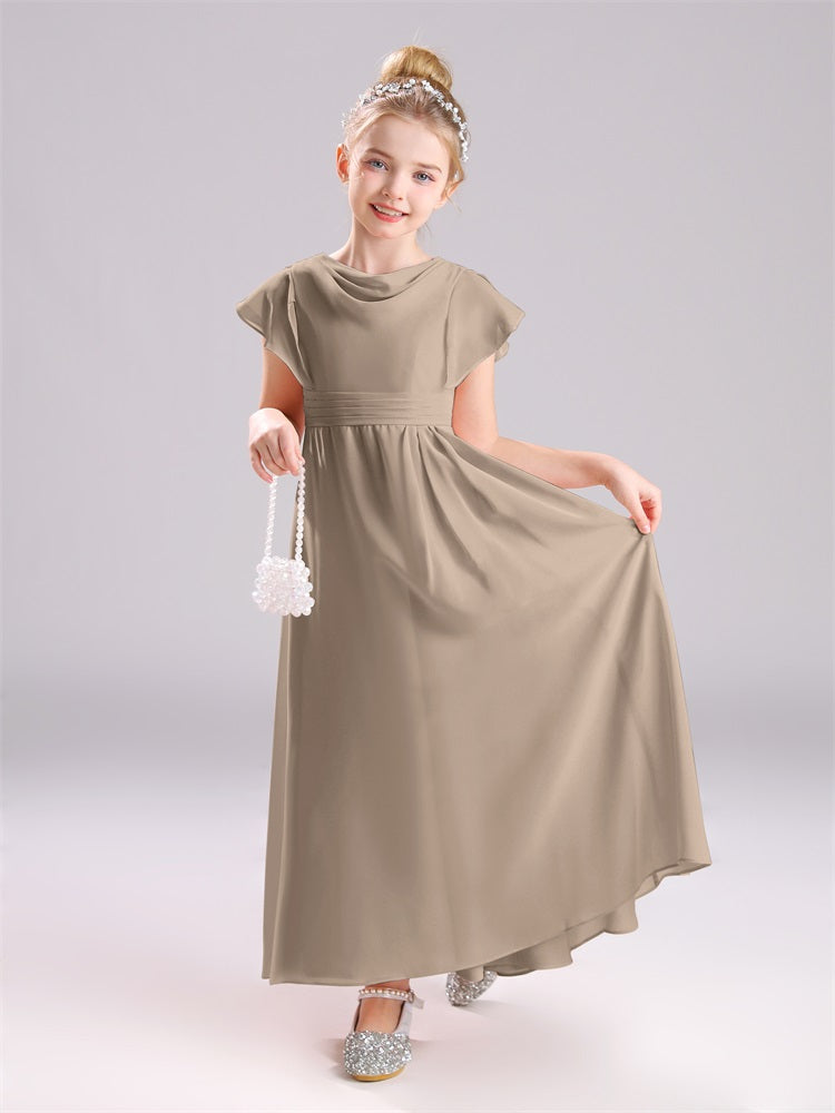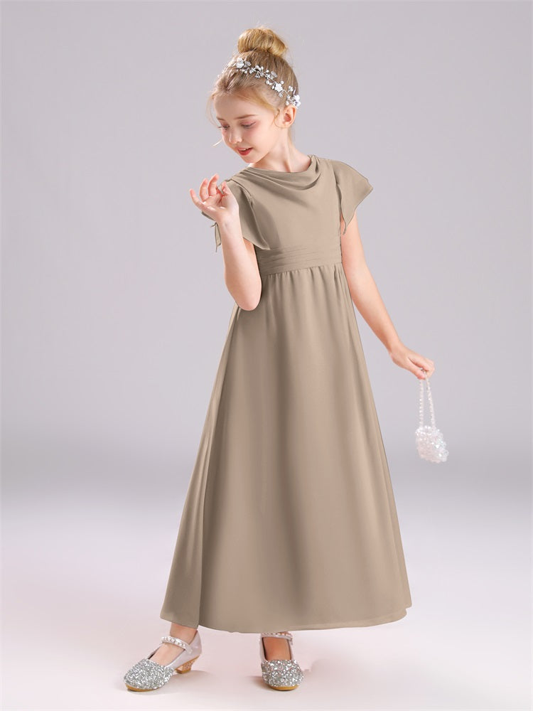 Cowl Kurze Ärmel Reißverschluss Chiffon Junior Brautjungfernkleider