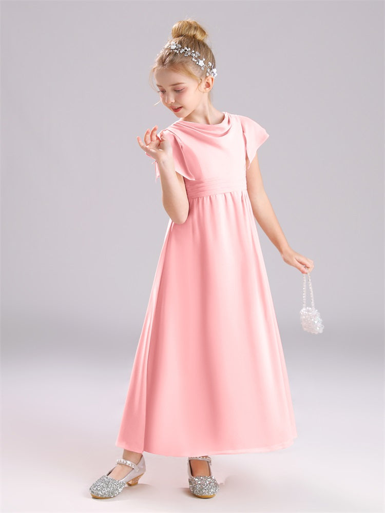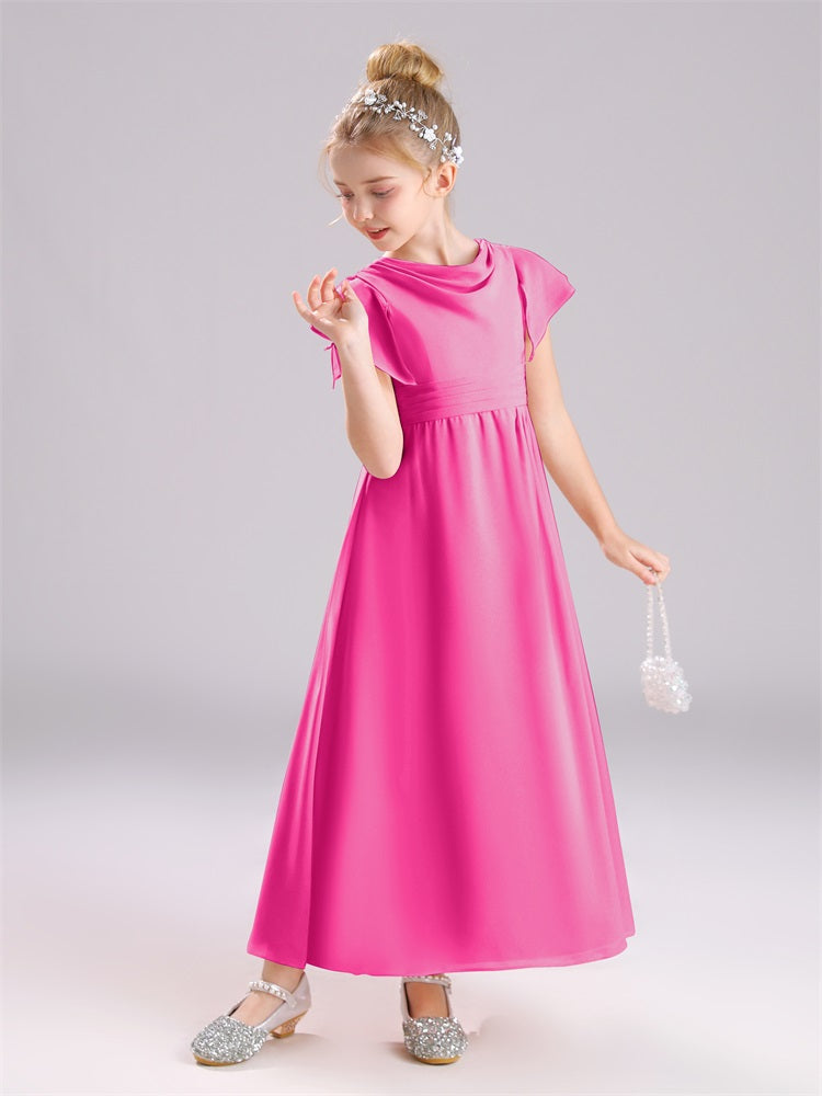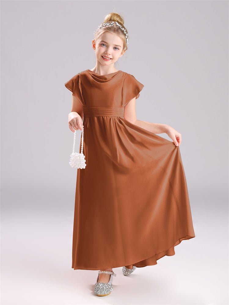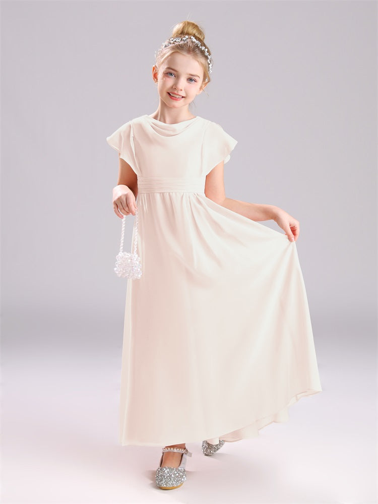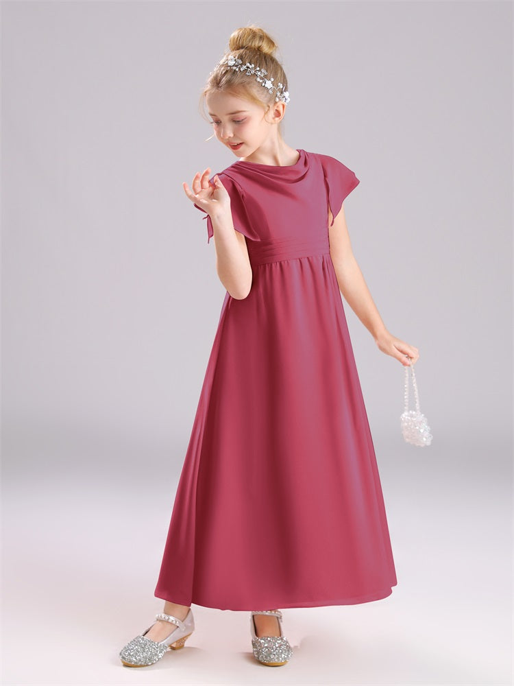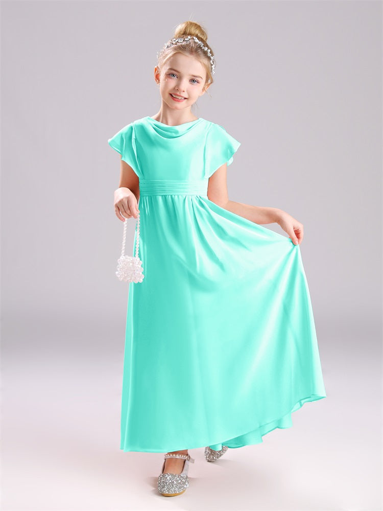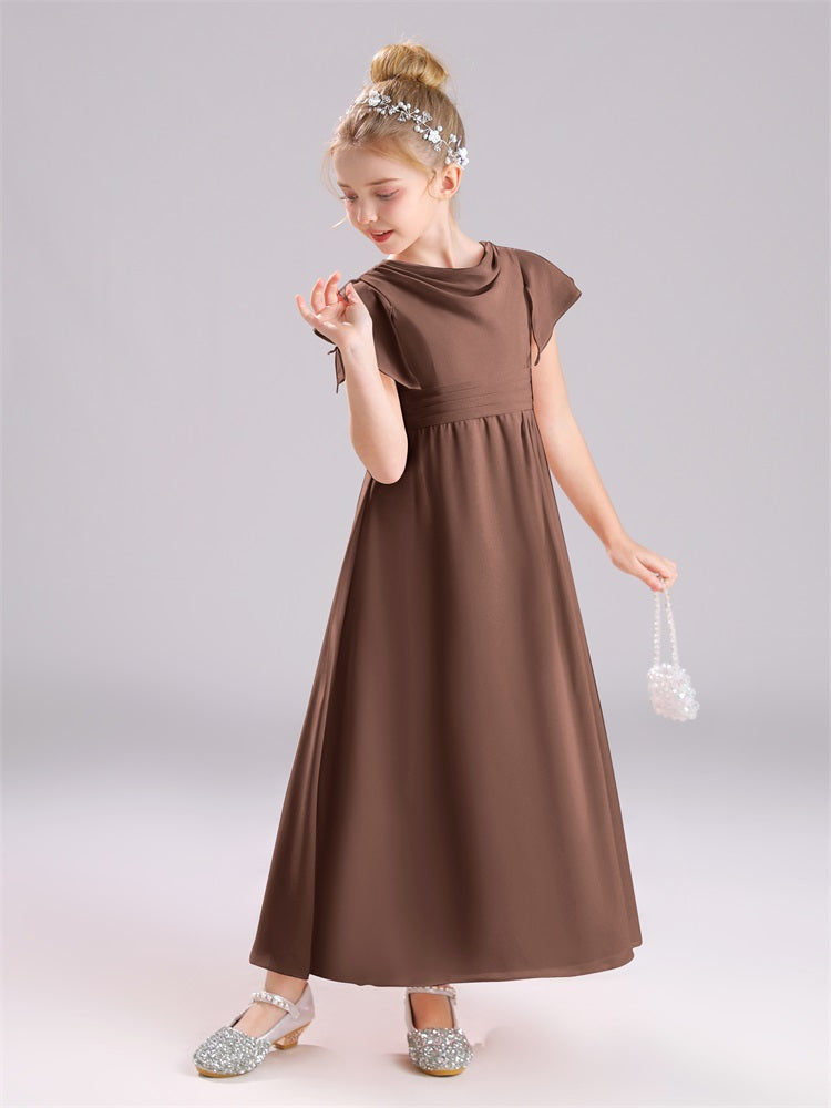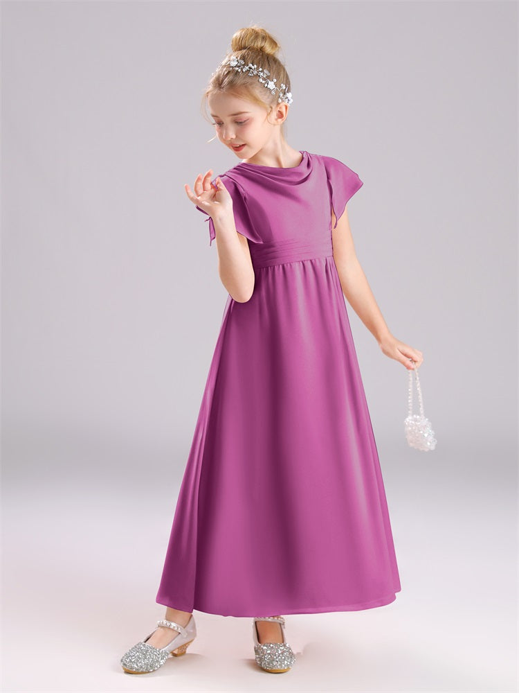 Cowl Kurze Ärmel Reißverschluss Chiffon Junior Brautjungfernkleider