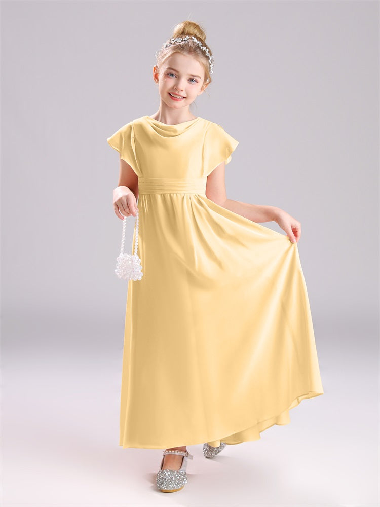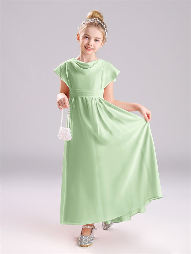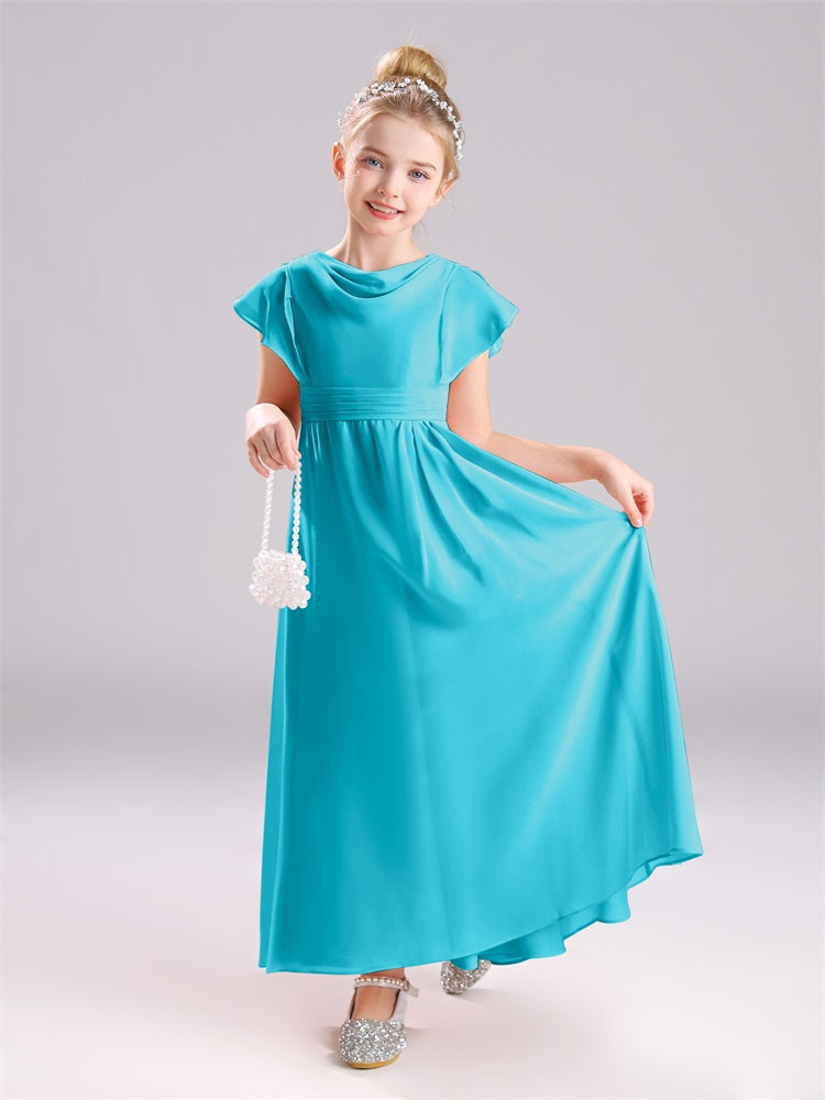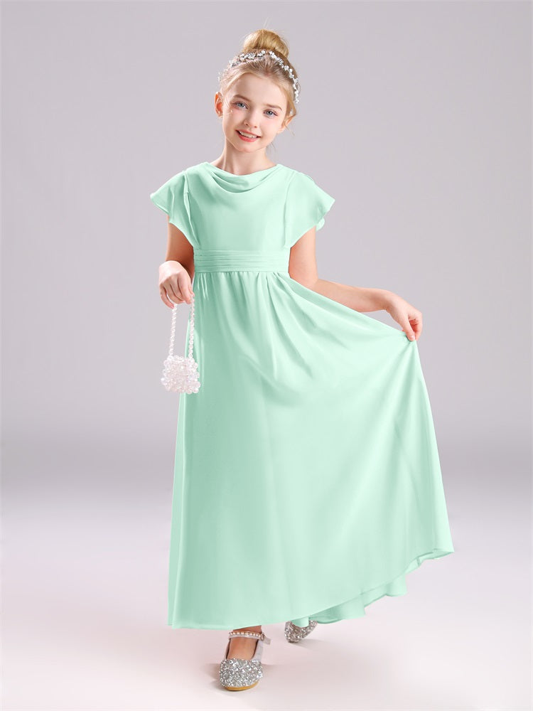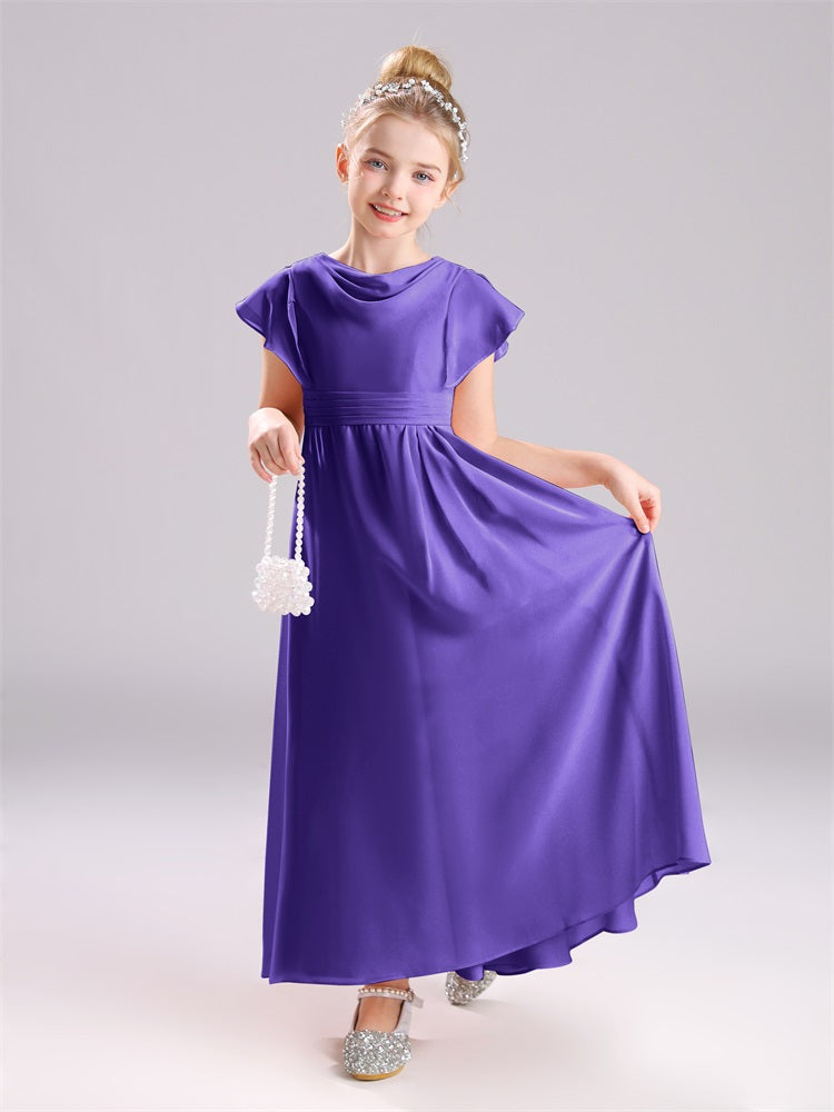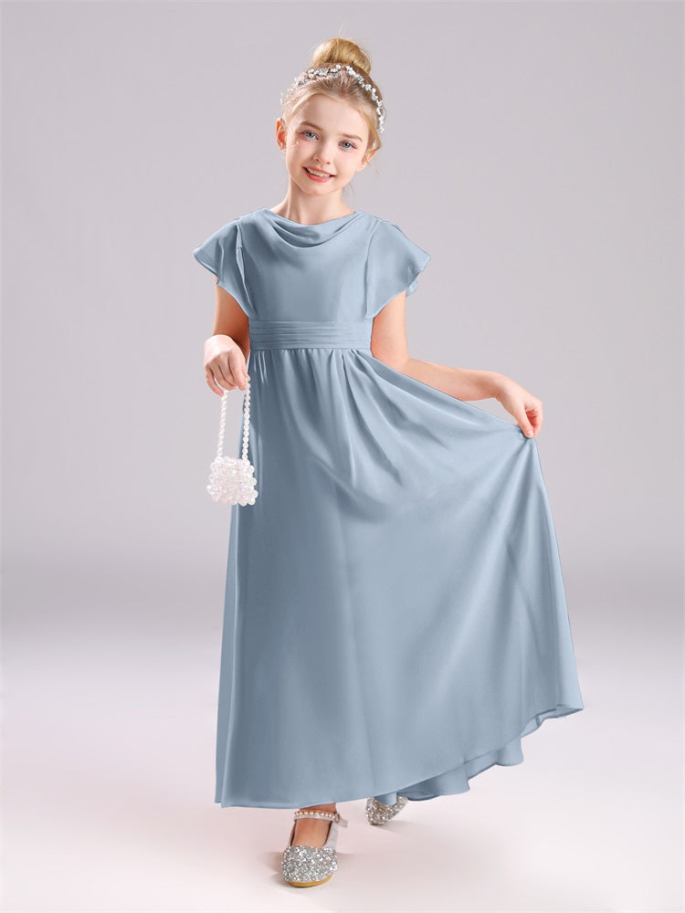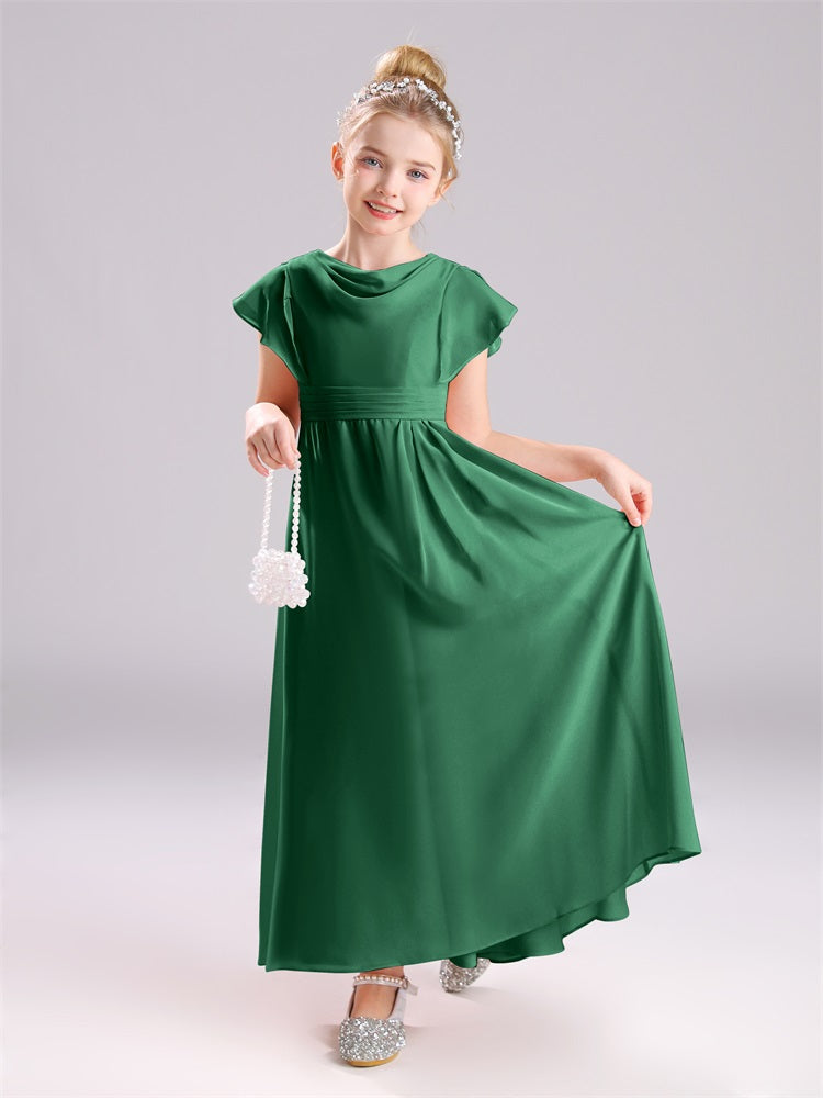 Cowl Kurze Ärmel Reißverschluss Chiffon Junior Brautjungfernkleider