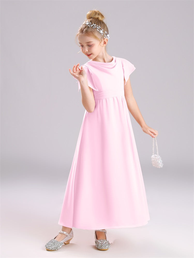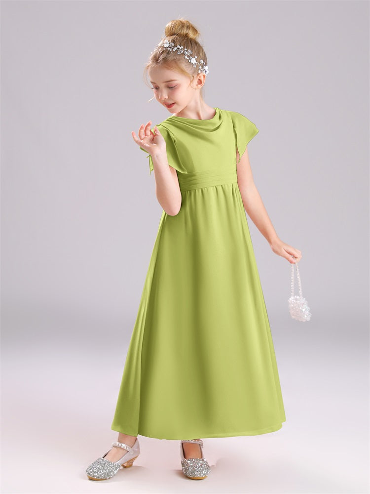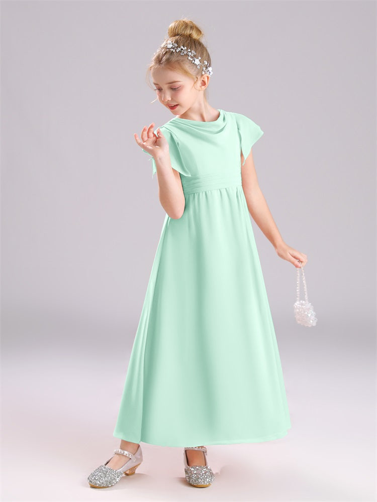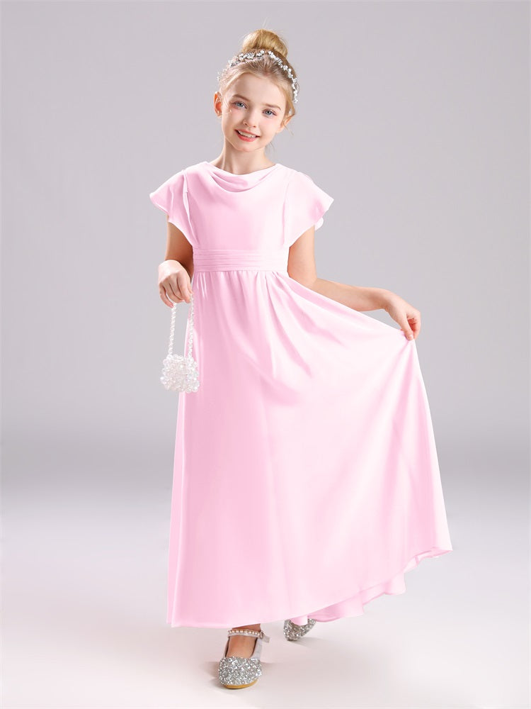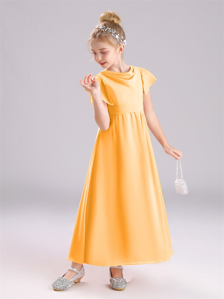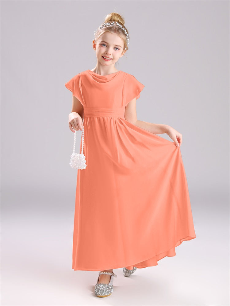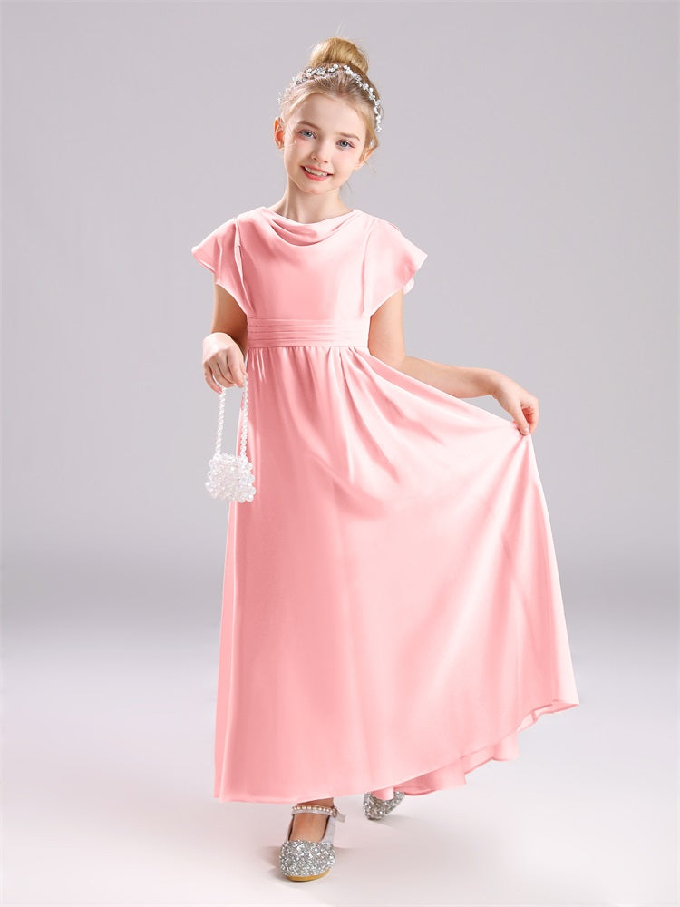 Cowl Kurze Ärmel Reißverschluss Chiffon Junior Brautjungfernkleider