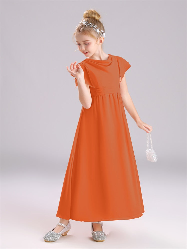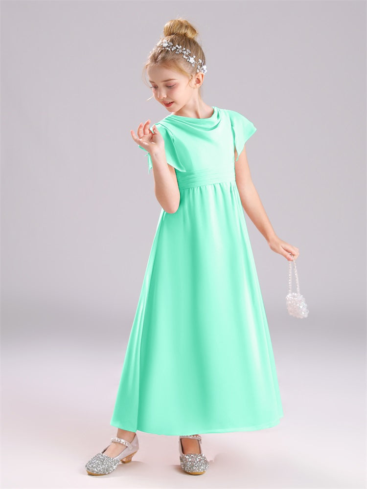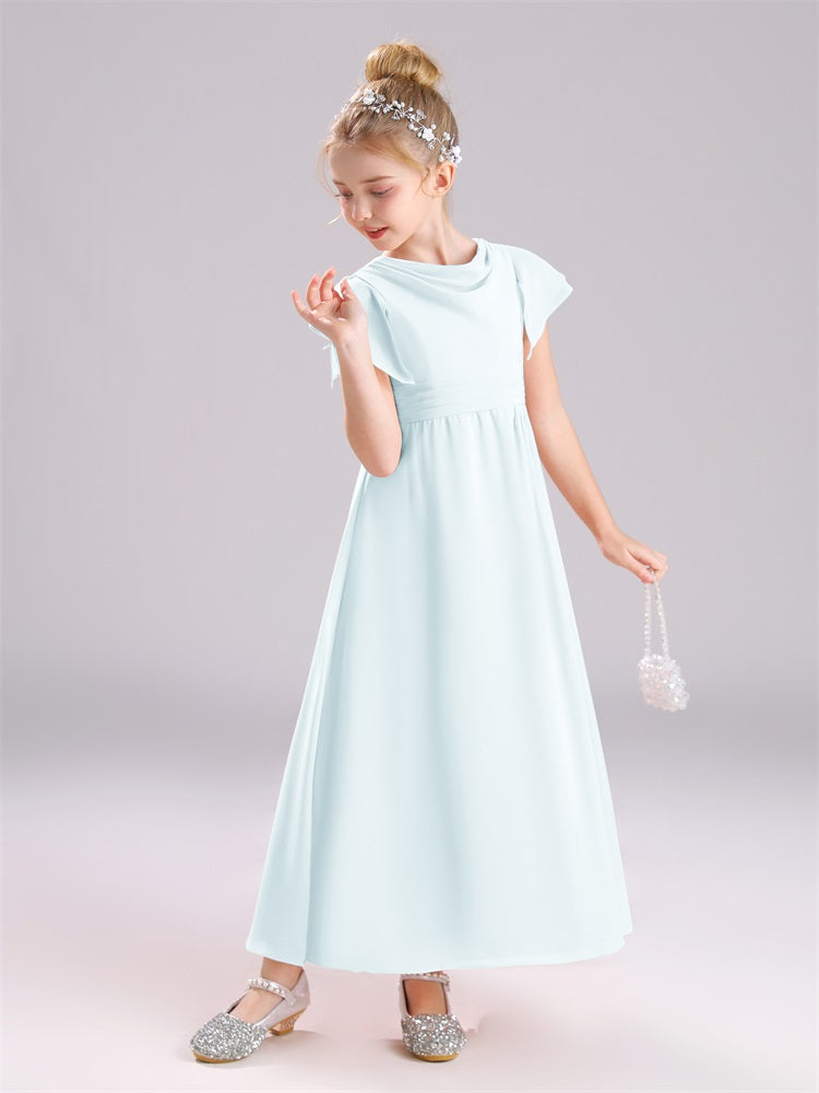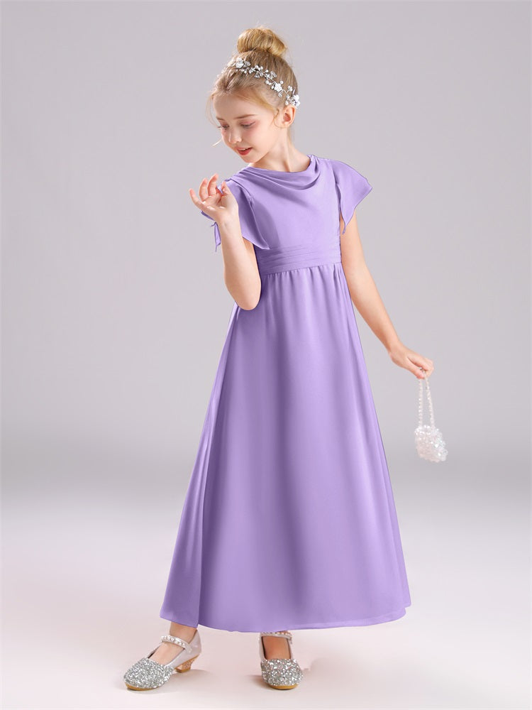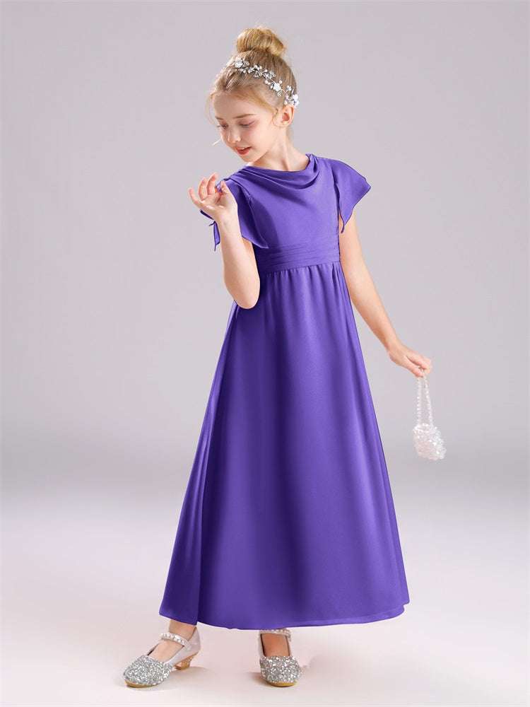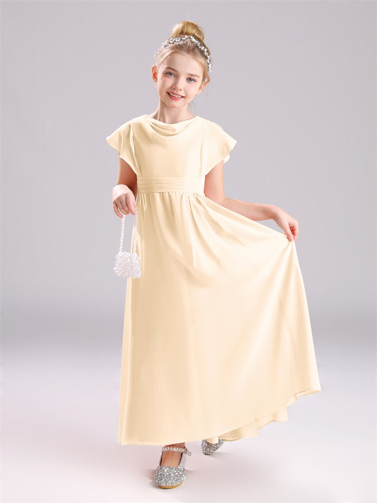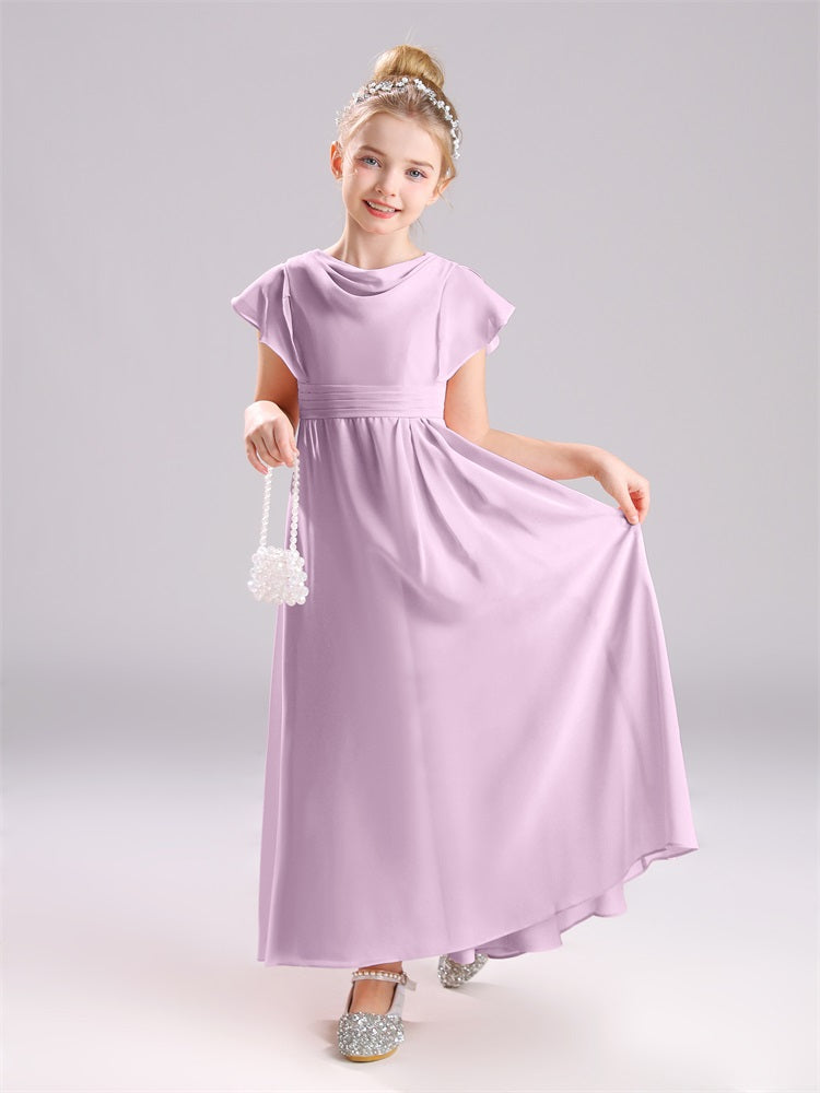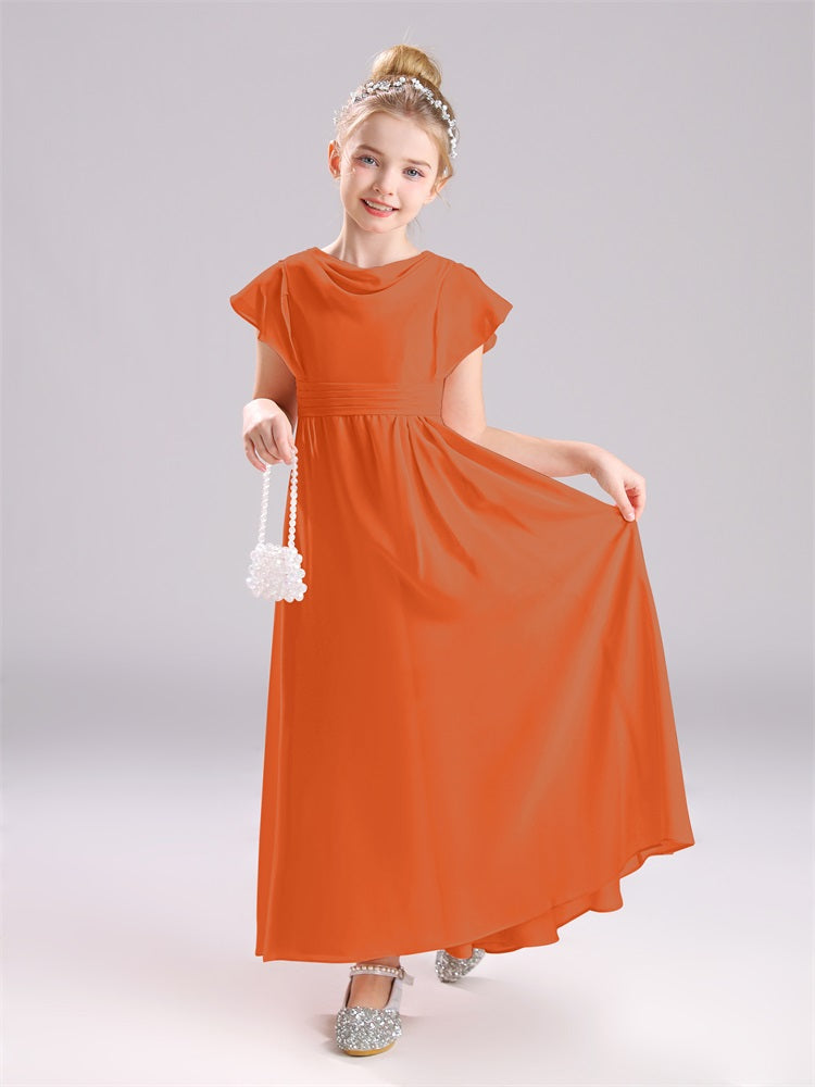 Cowl Kurze Ärmel Reißverschluss Chiffon Junior Brautjungfernkleider