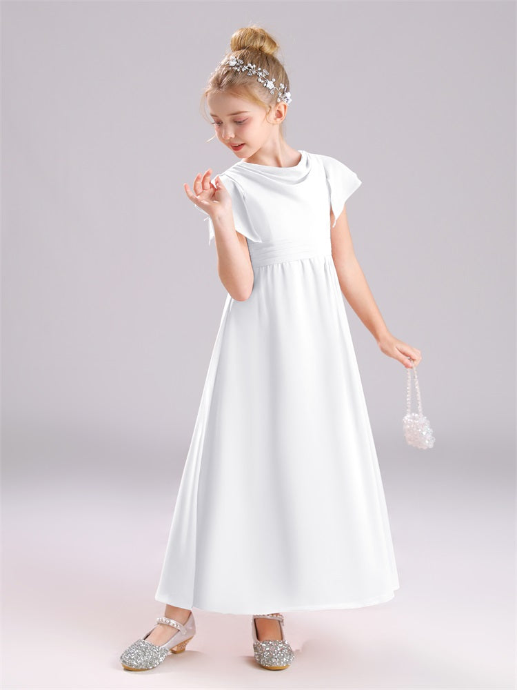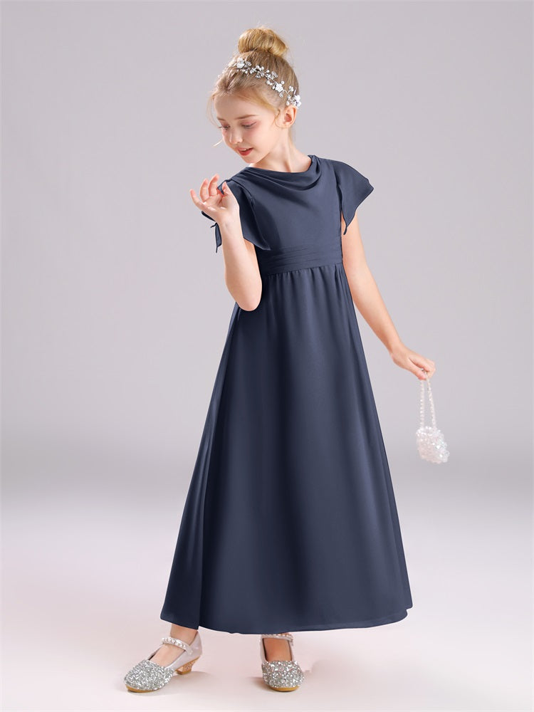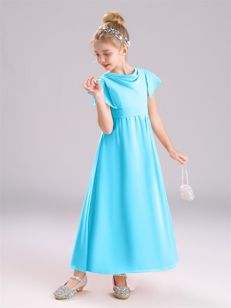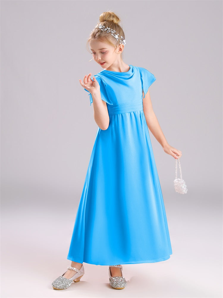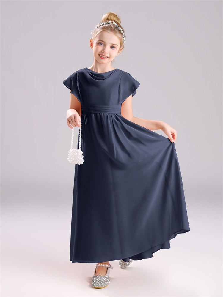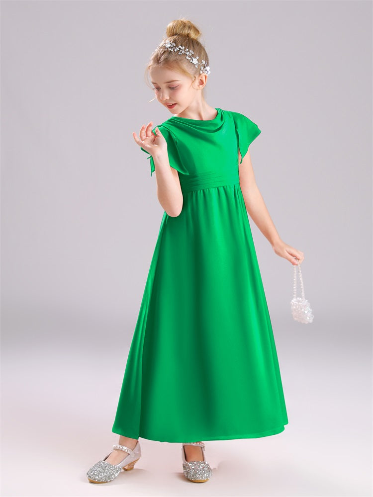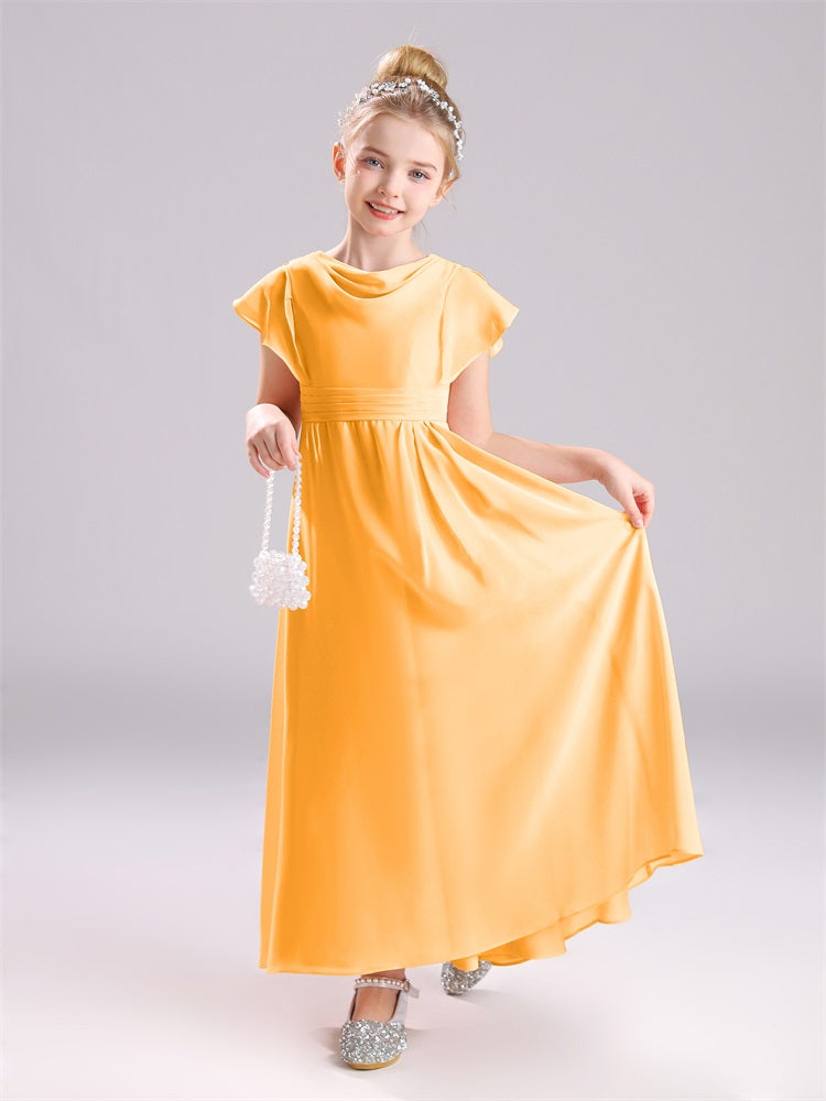 Cowl Kurze Ärmel Reißverschluss Chiffon Junior Brautjungfernkleider