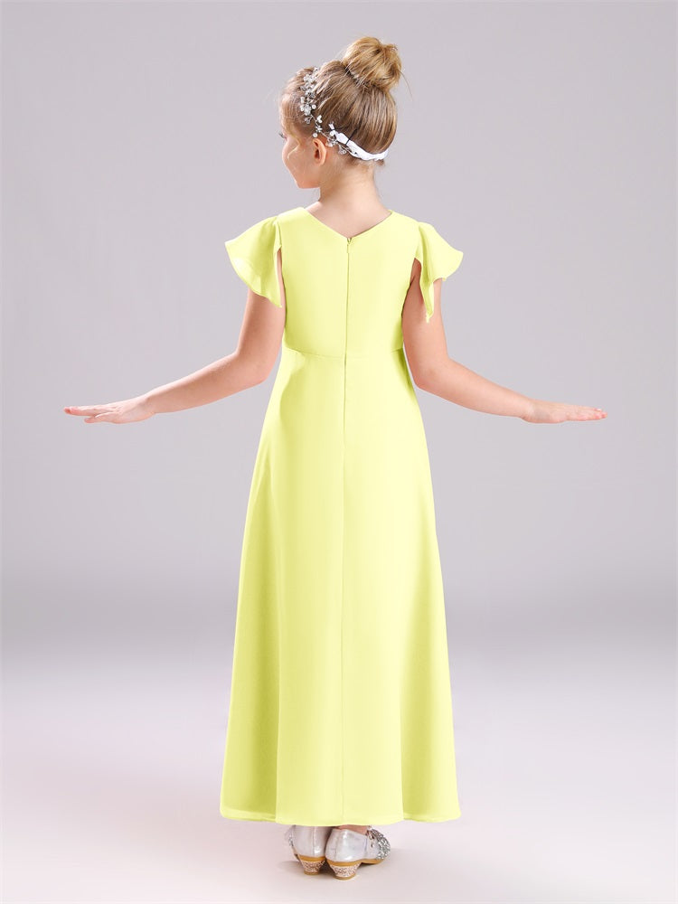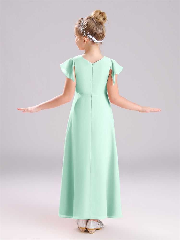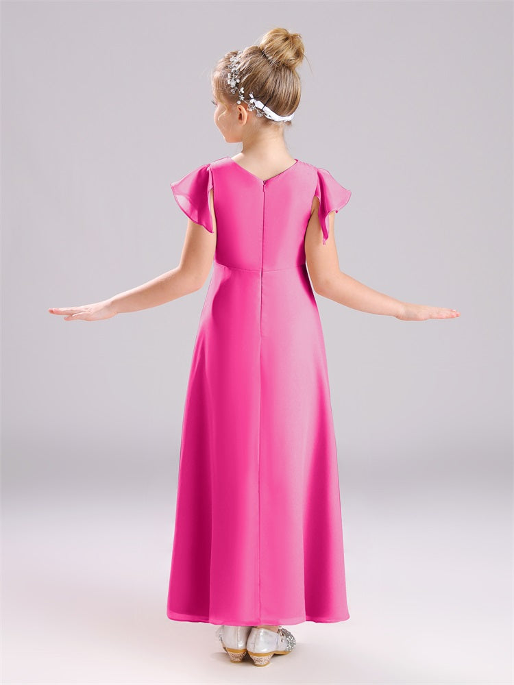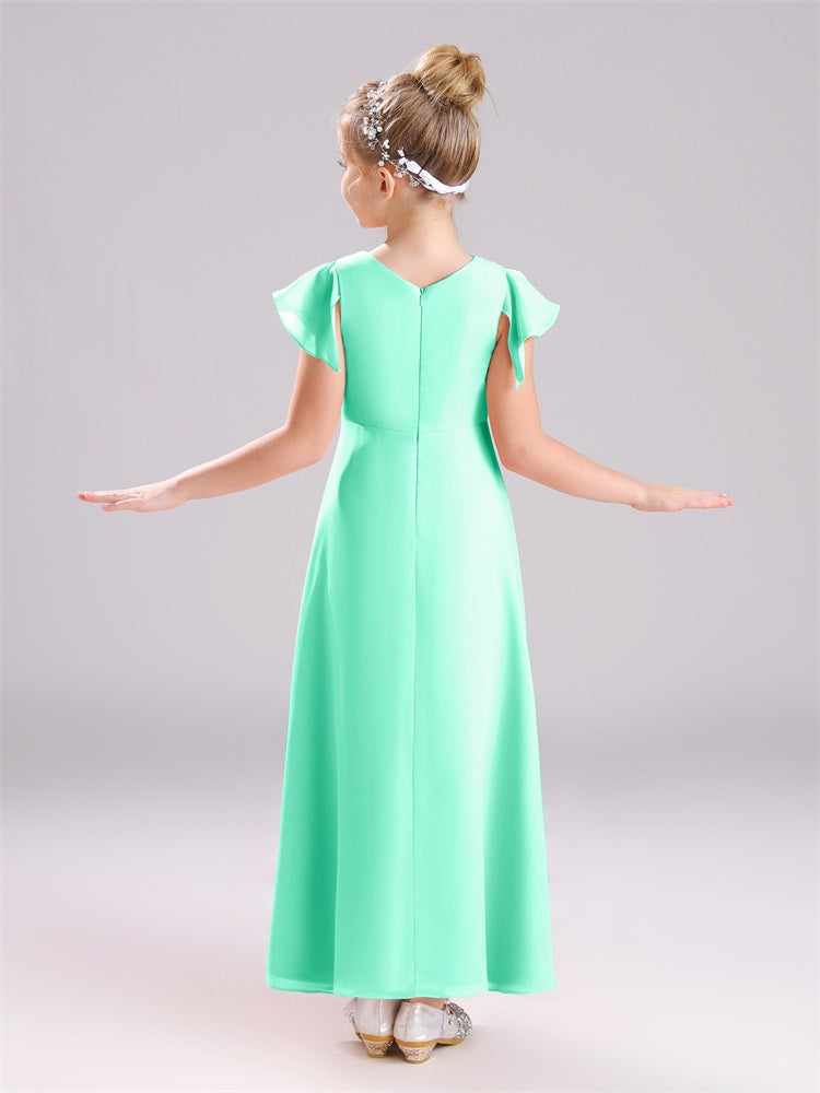Diese aus hochwertigem Chiffon gefertigten Junior-Brautjungfernkleider verfügen über ein einzigartiges Design mit kurzen Ärmeln und einen praktischen Reißverschluss. Die perfekte Kombination aus Komfort und Eleganz, werden diese Kleider Ihre Junior-Brautjungfern fühlen sich selbstbewusst und stilvoll auf Ihren besonderen Tag.