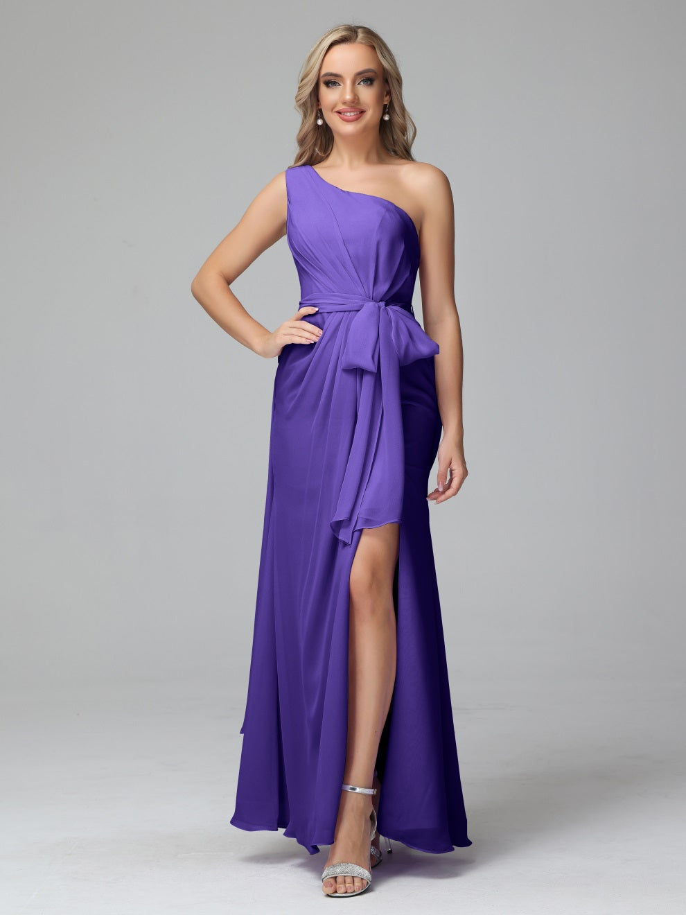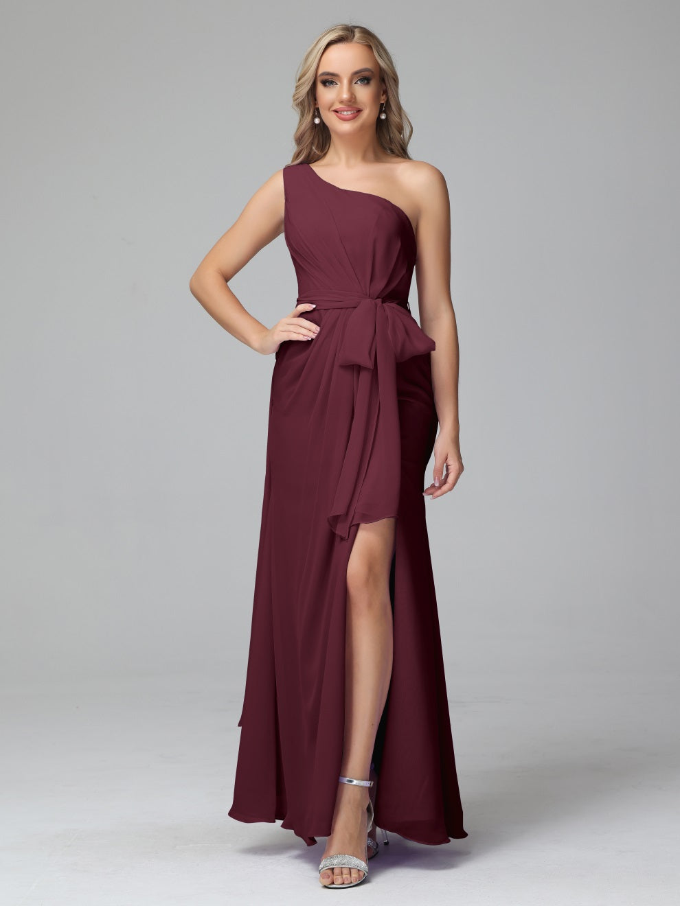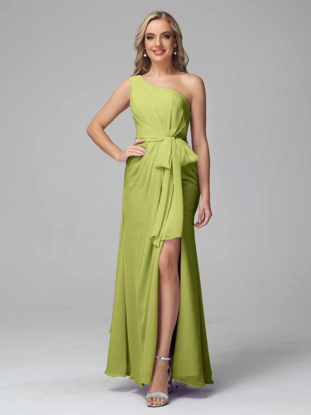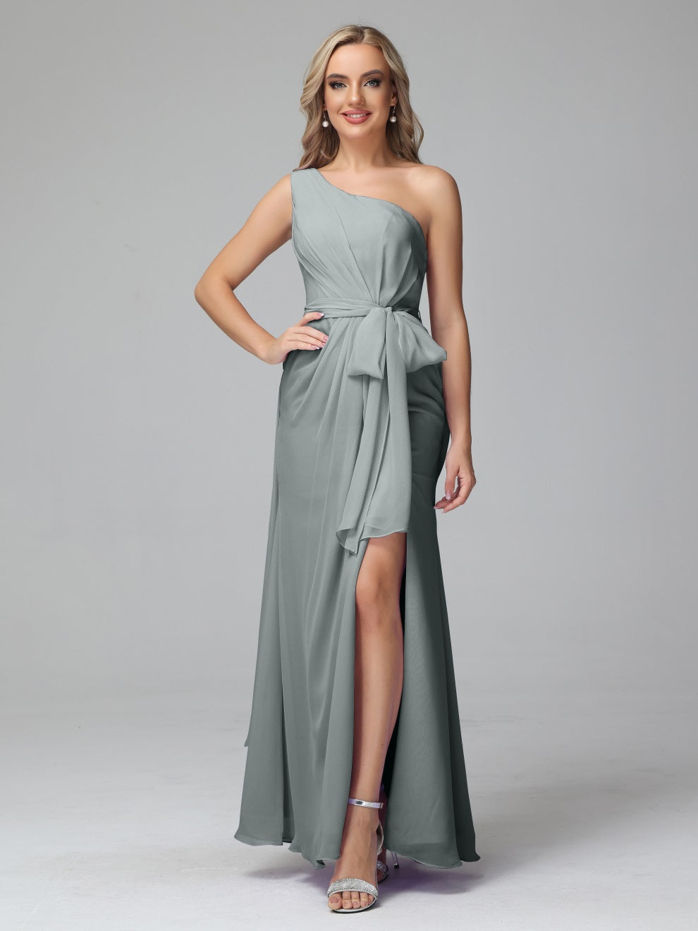 Daphne Ein-Schulter Chiffon Brautjungfernkleider mit Schlitz