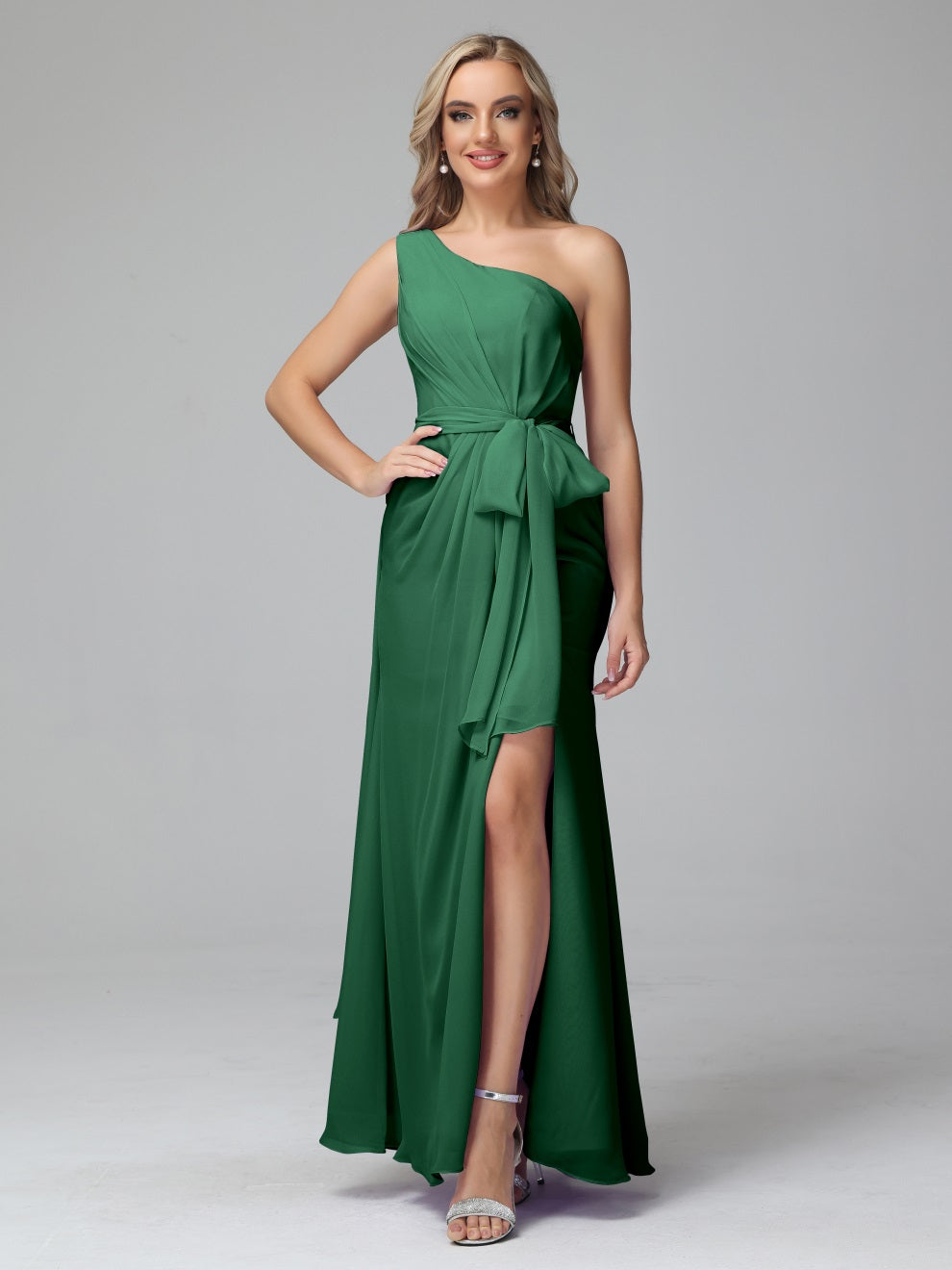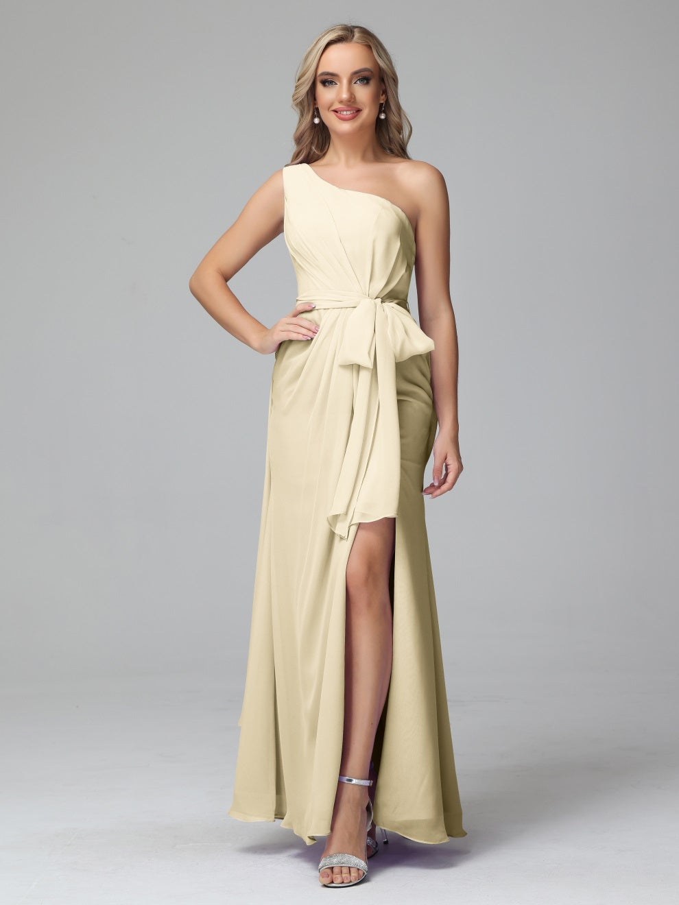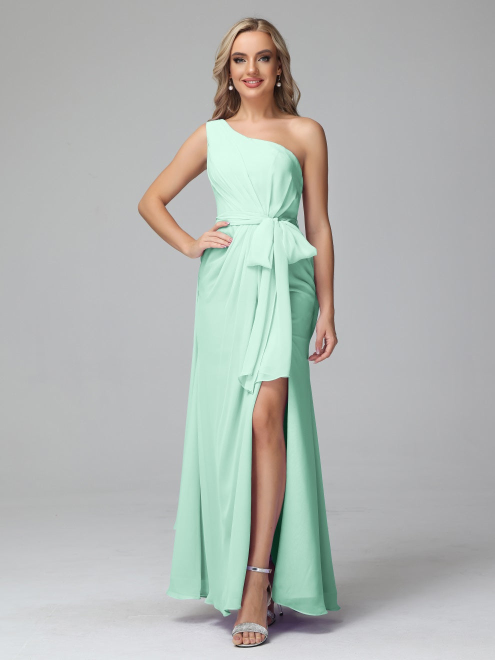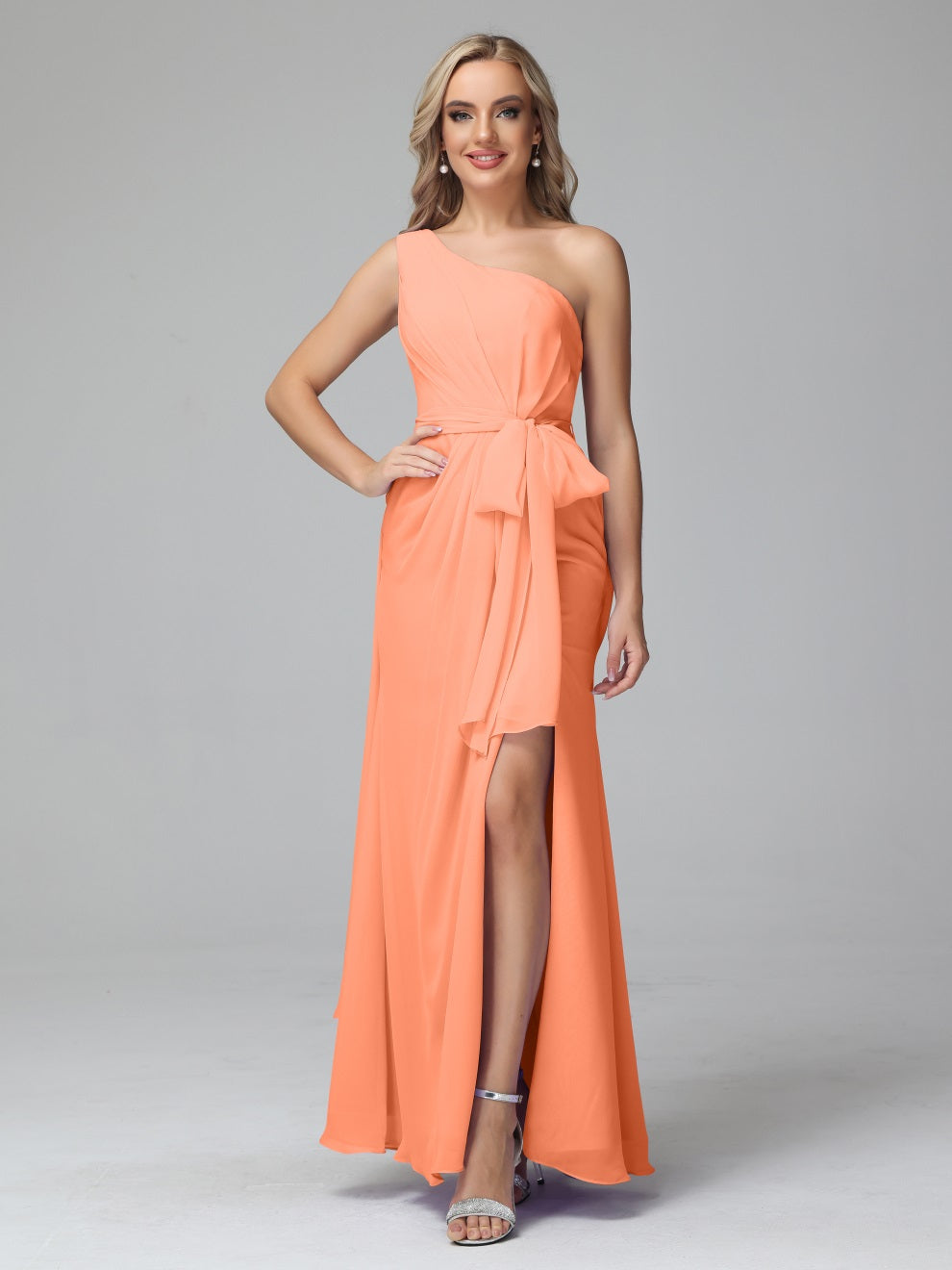 Daphne Ein-Schulter Chiffon Brautjungfernkleider mit Schlitz