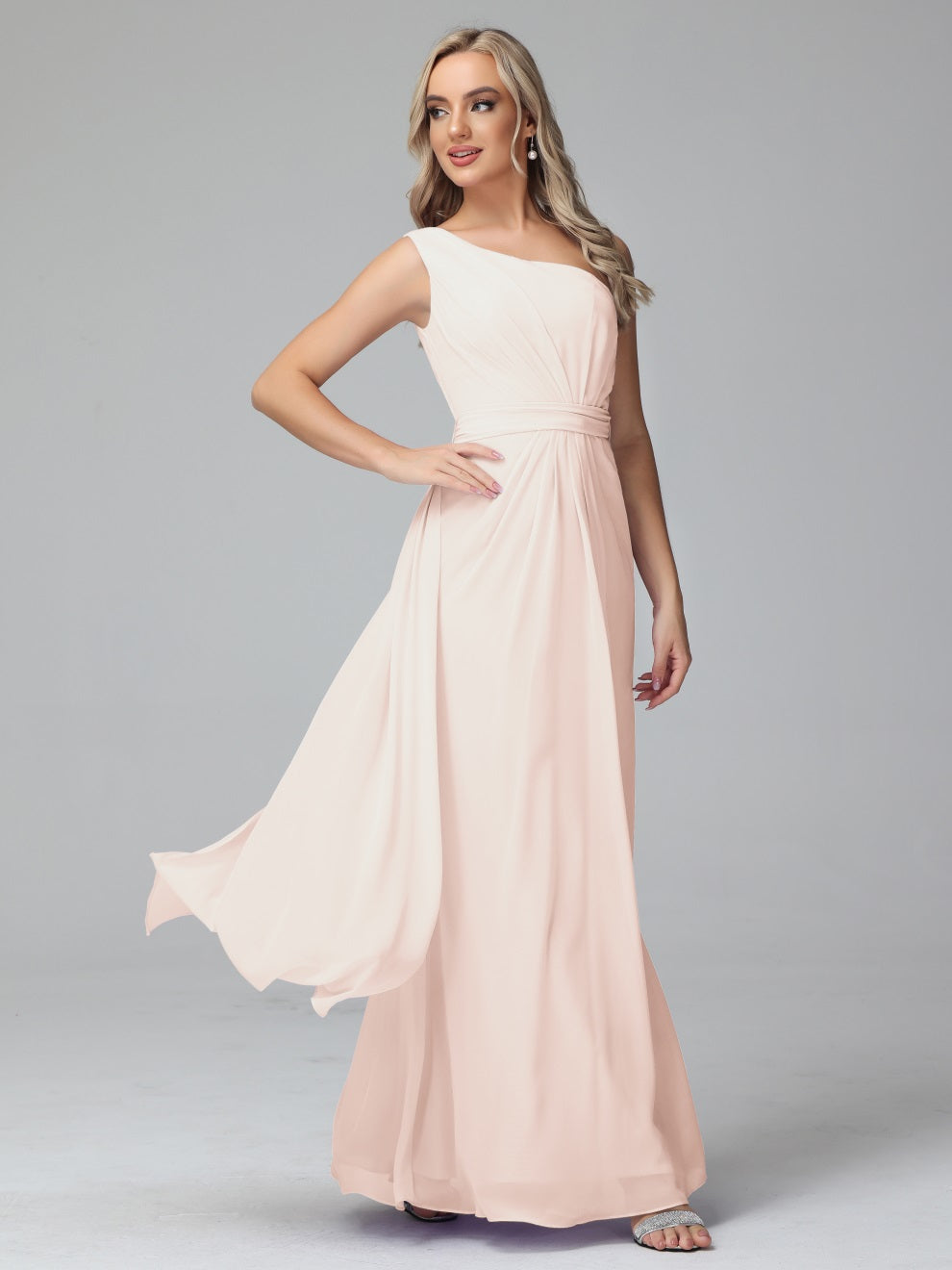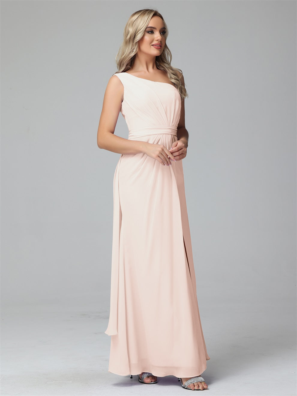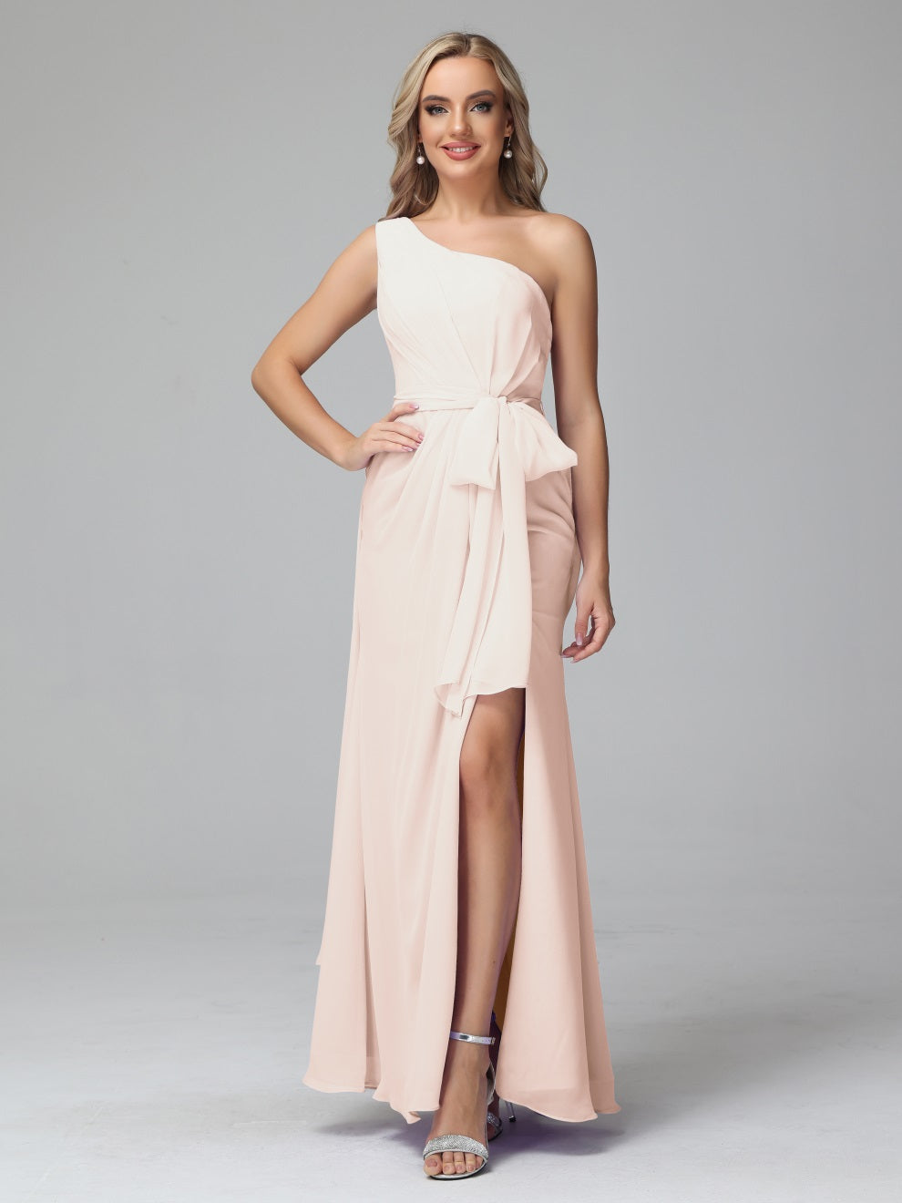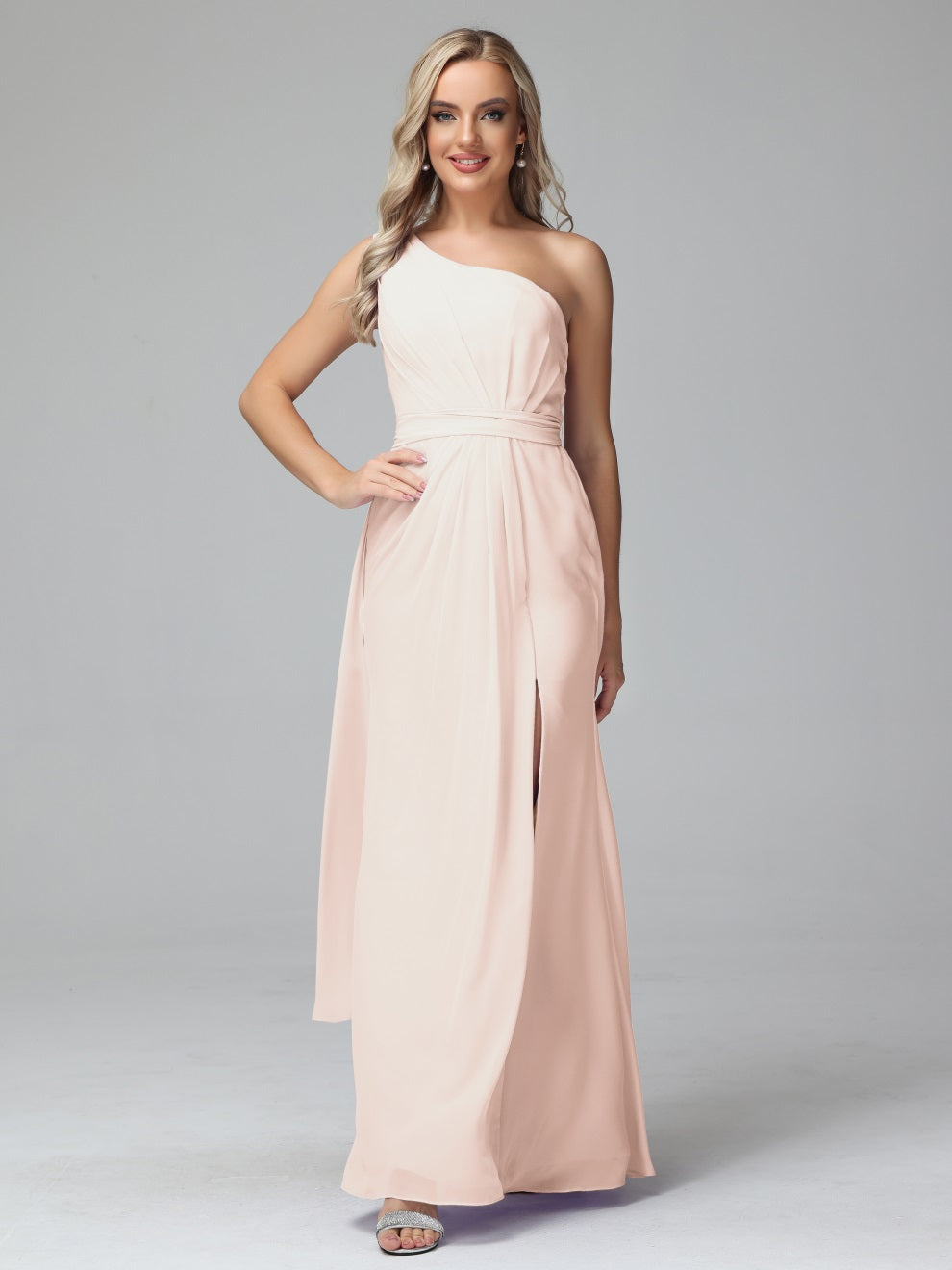 Daphne Ein-Schulter Chiffon Brautjungfernkleider mit Schlitz