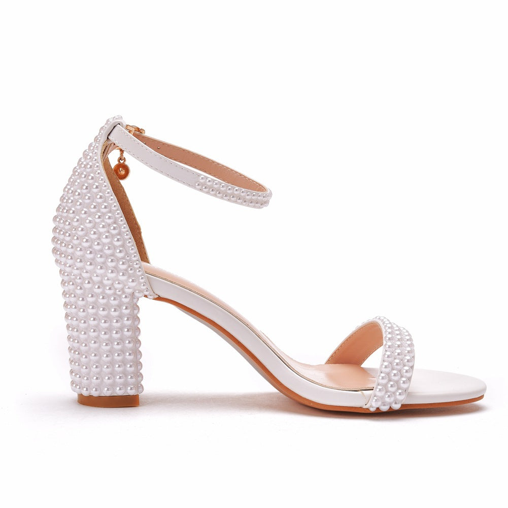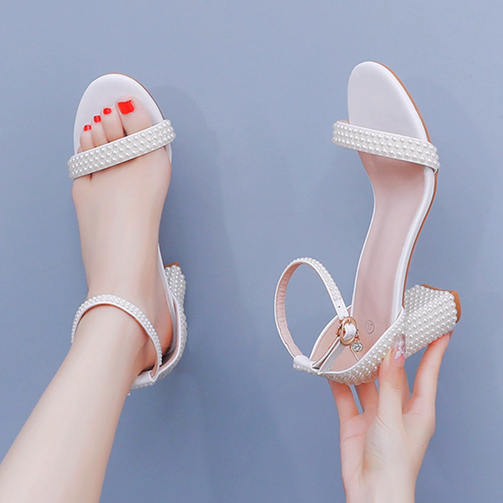 Ein Riemen Weiß Perle Hochzeit High Heel Sandalen
