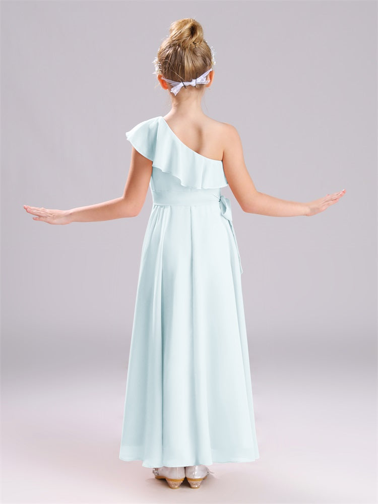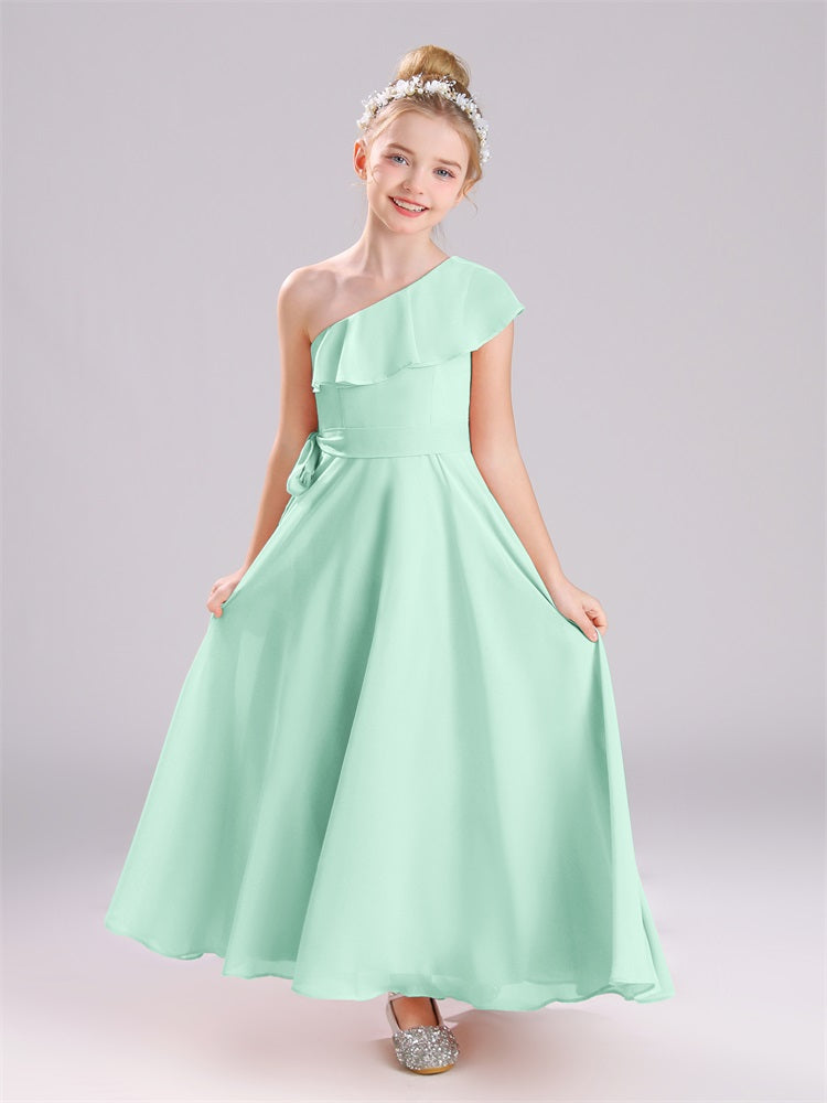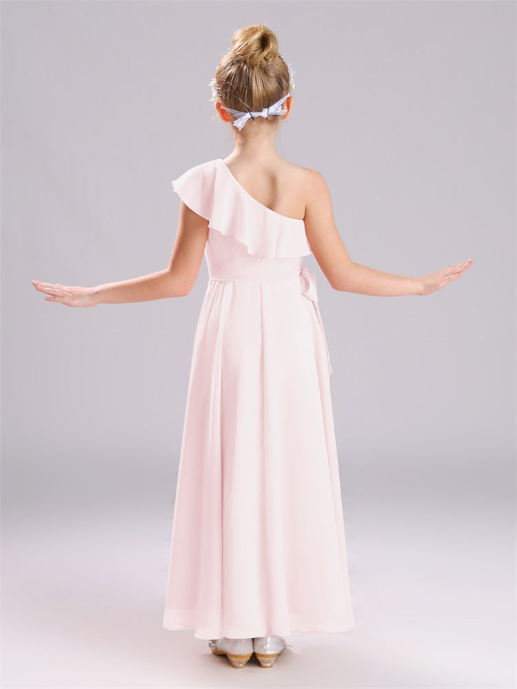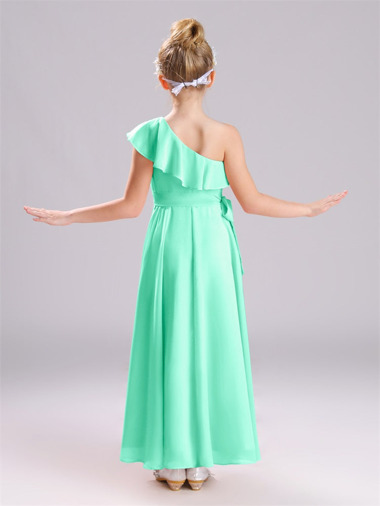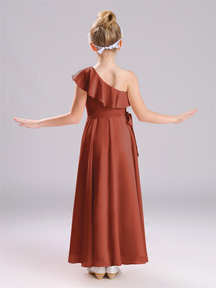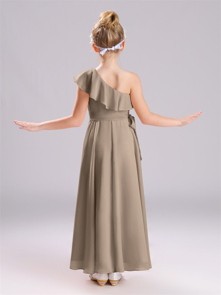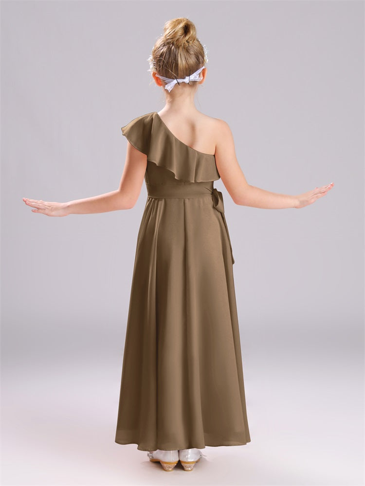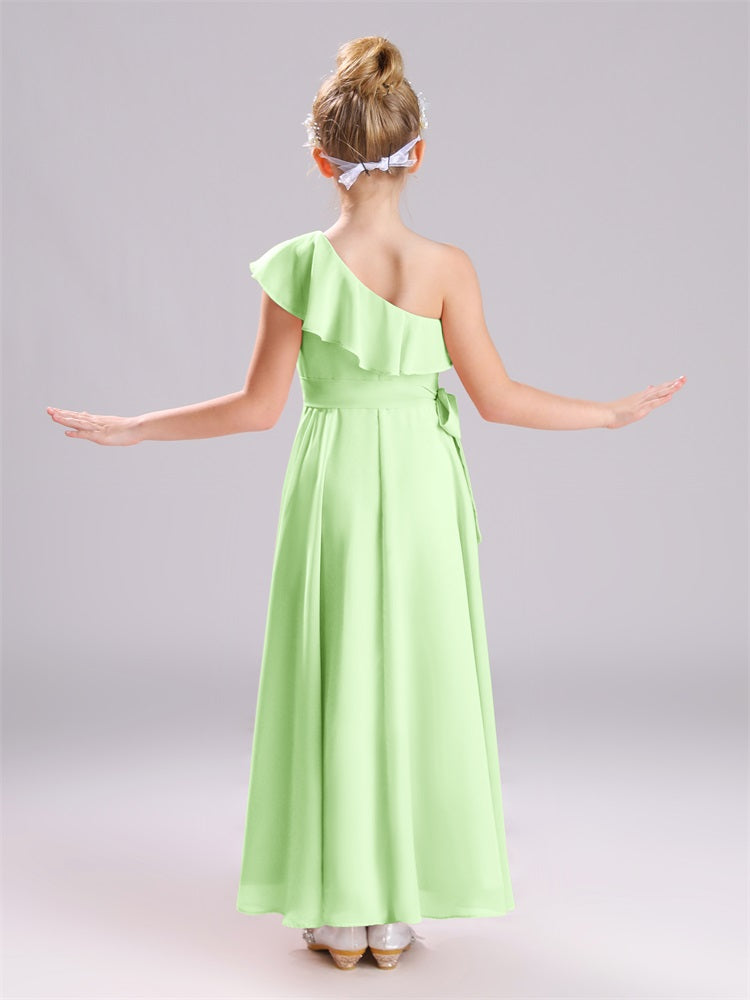 Ein-Schulter-Rüschen Chiffon Junior Brautjungfernkleider