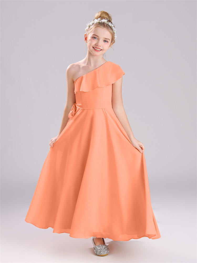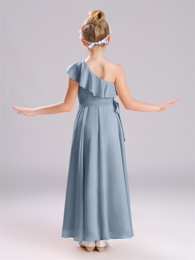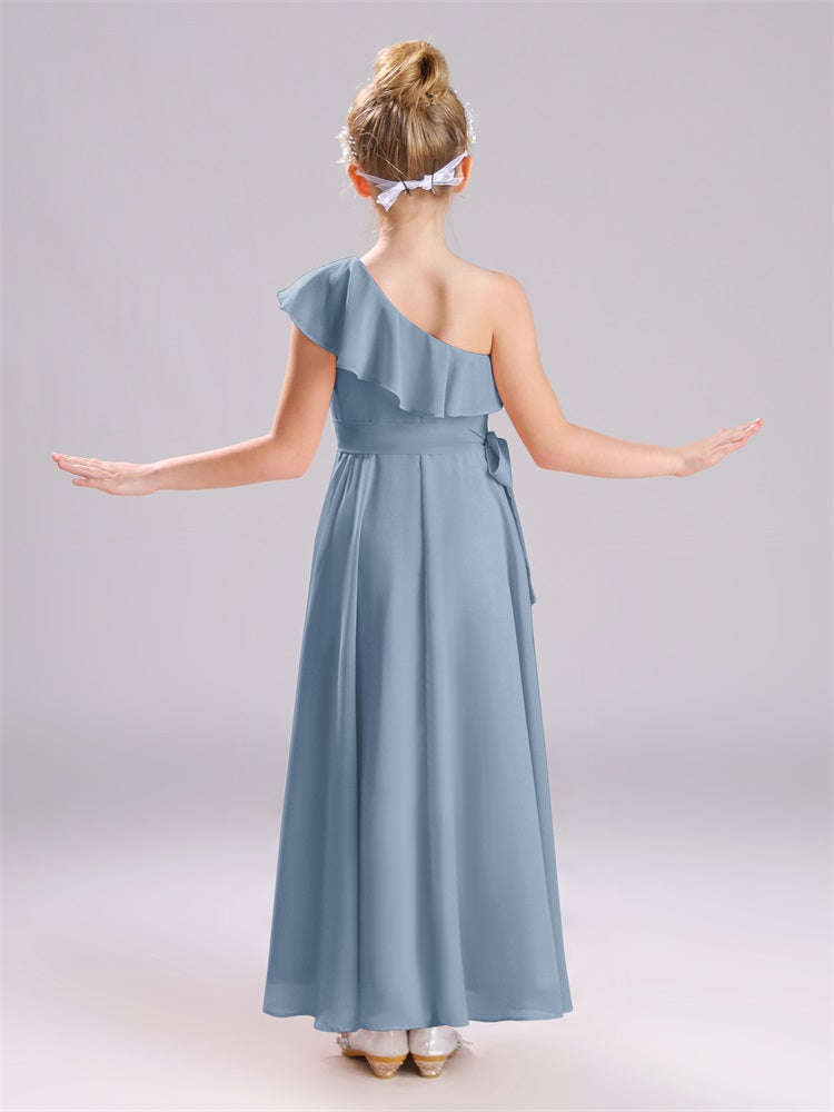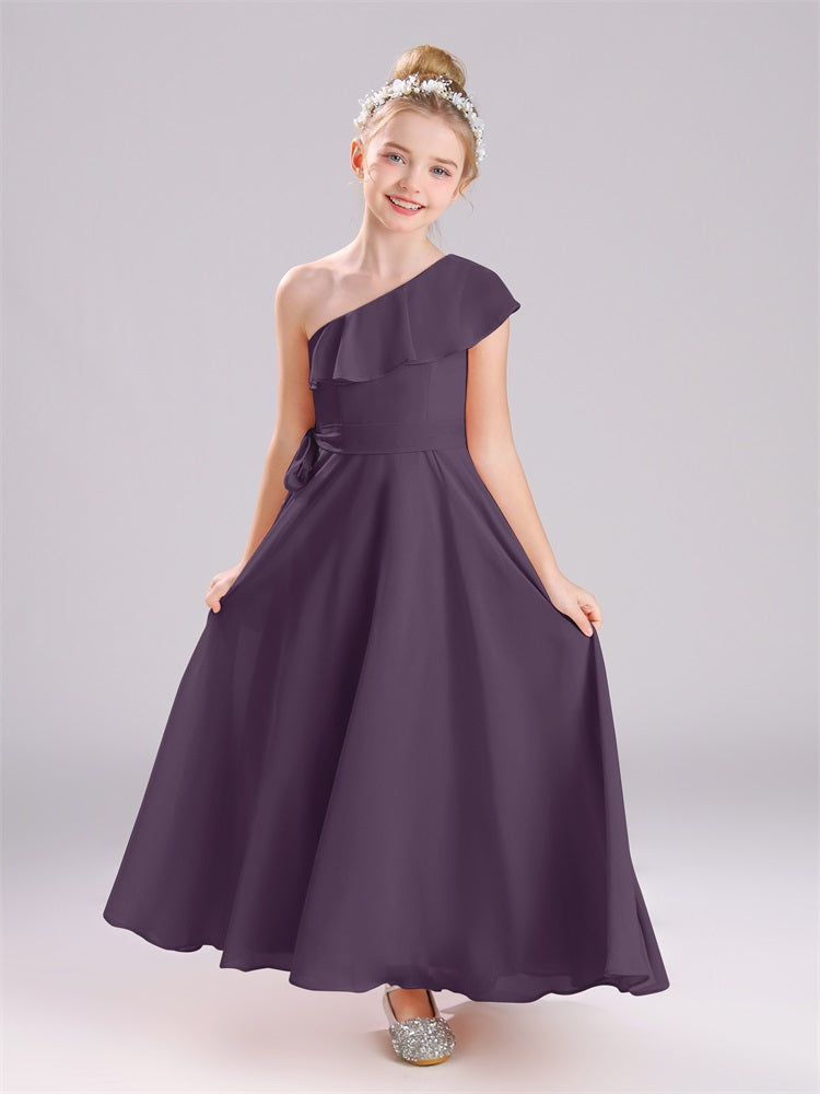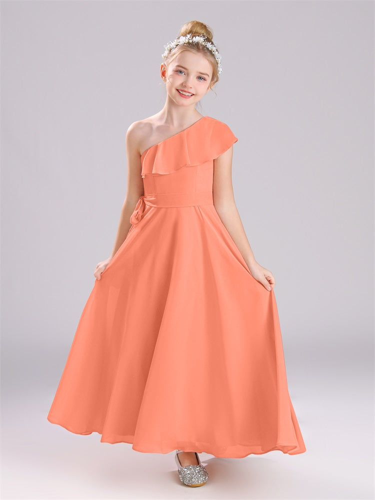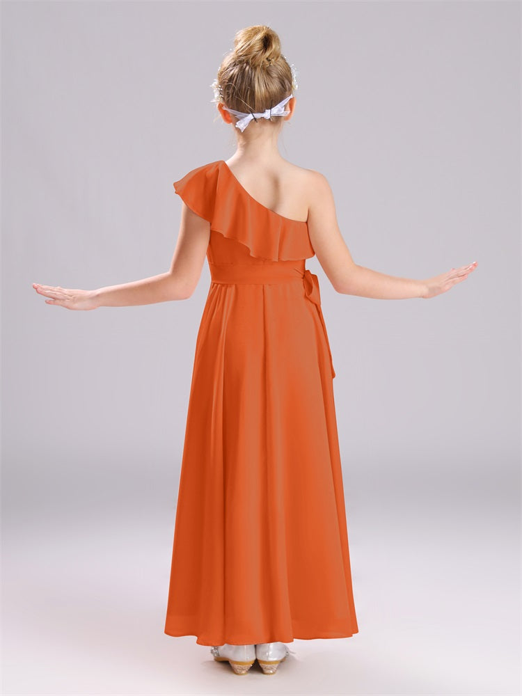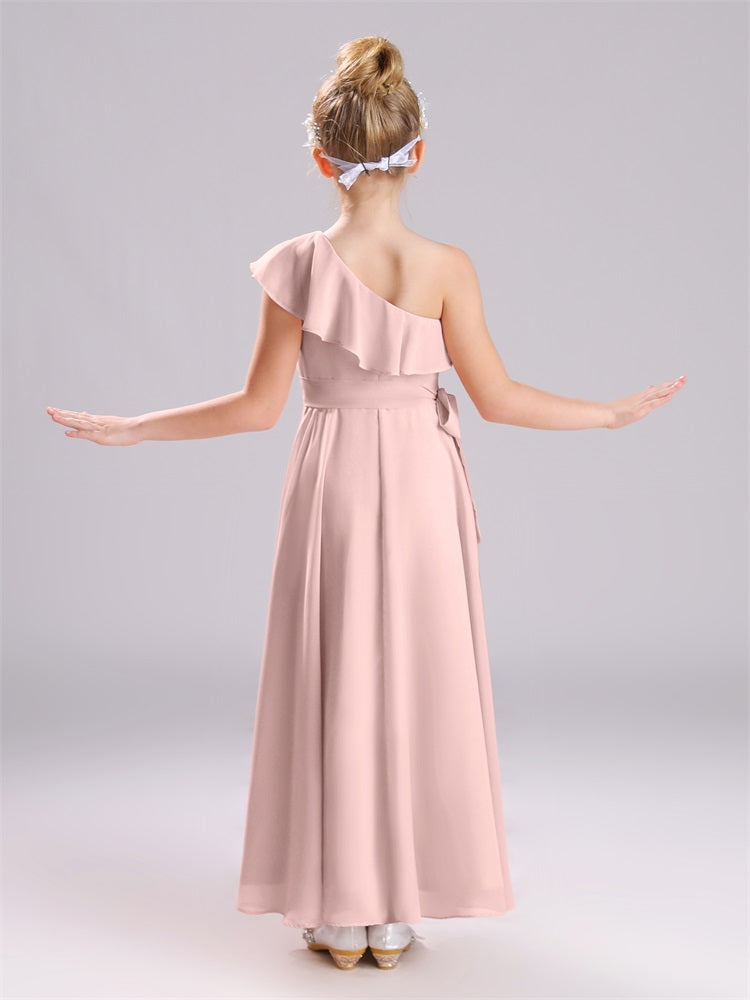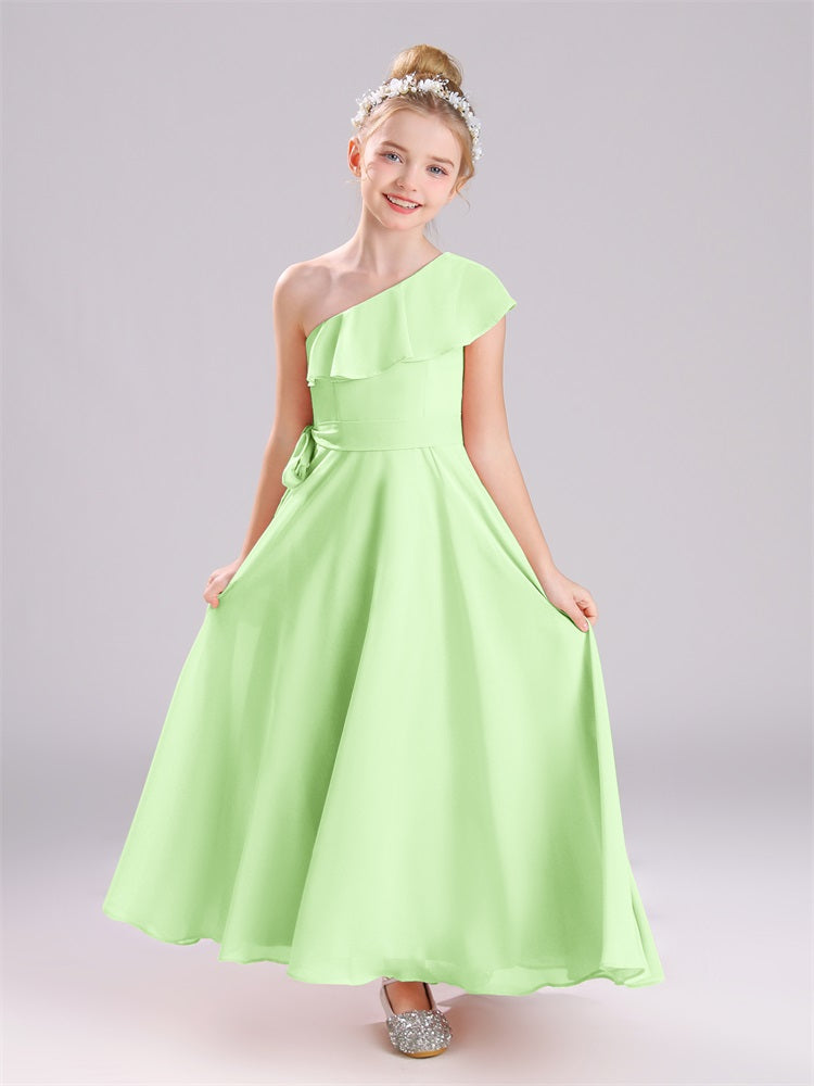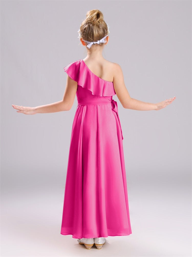 Ein-Schulter-Rüschen Chiffon Junior Brautjungfernkleider