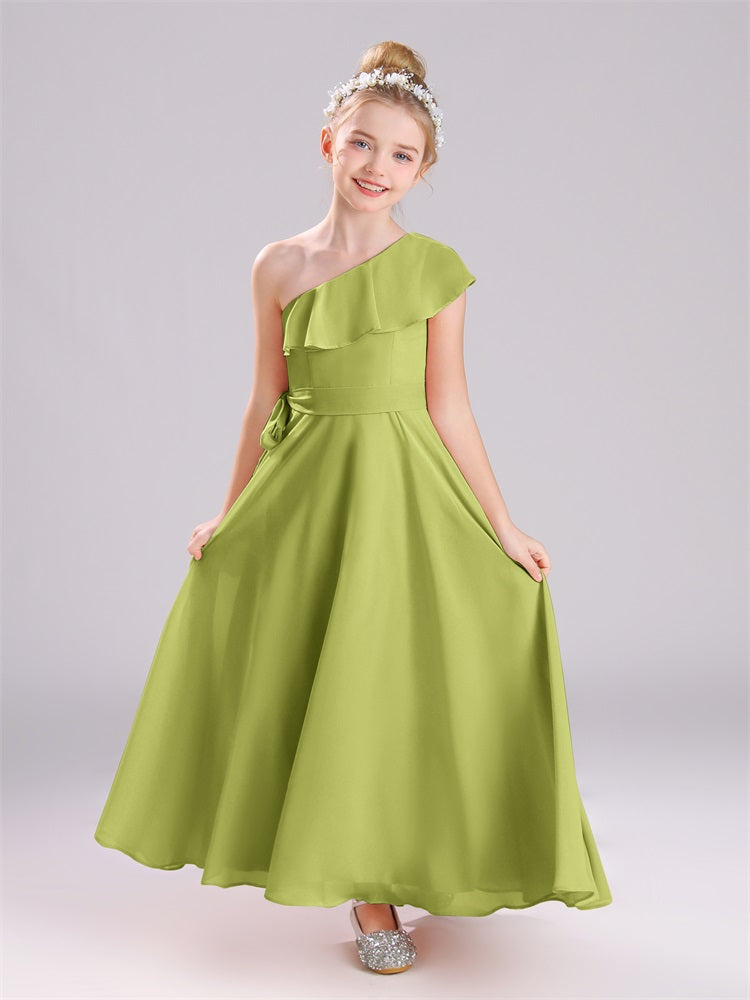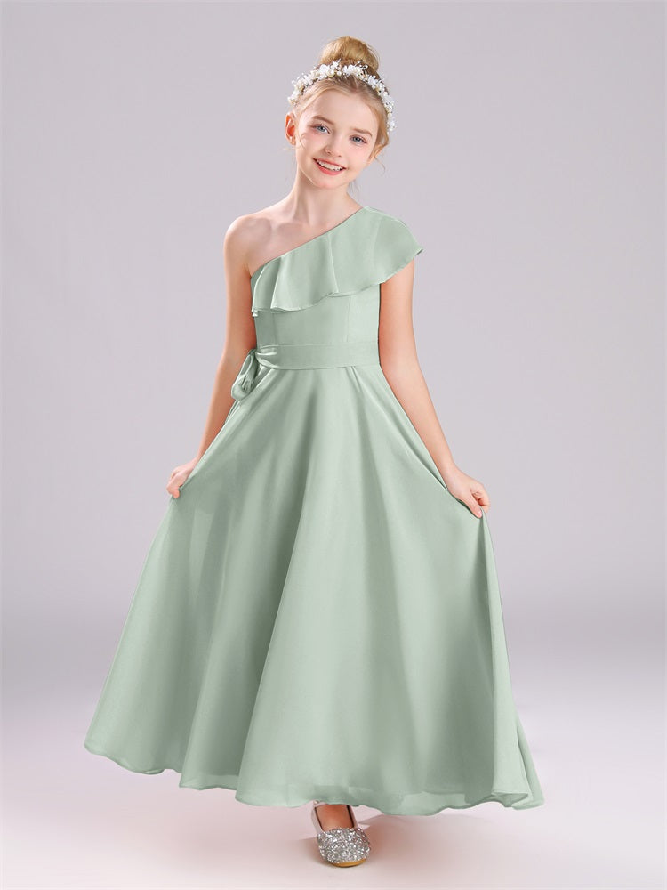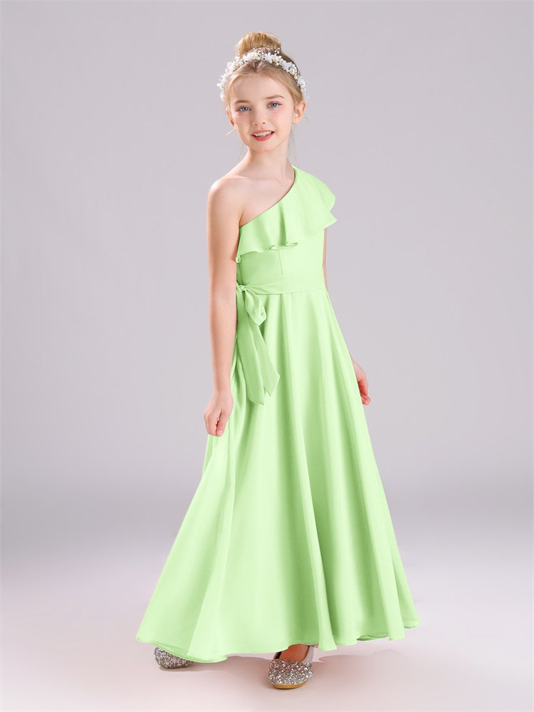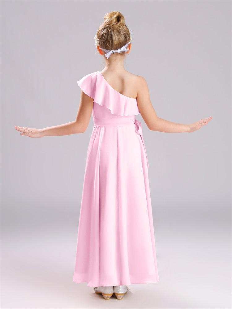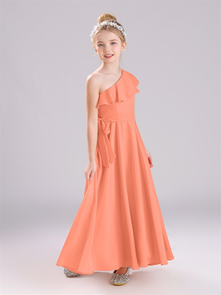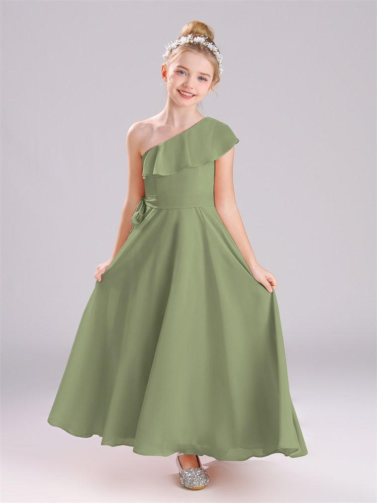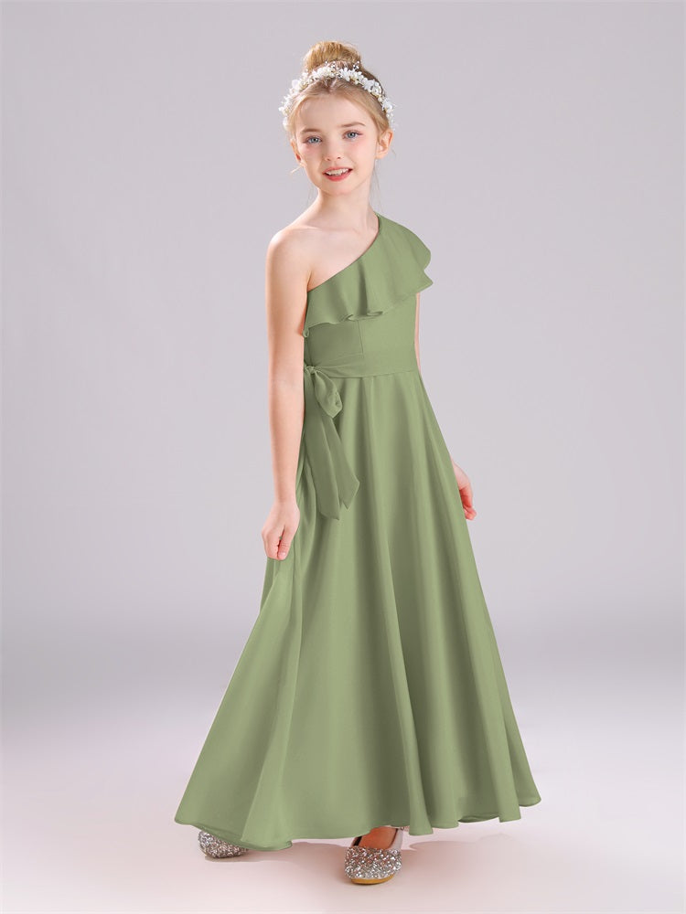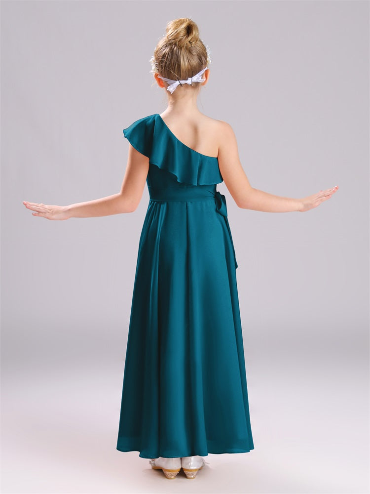 Ein-Schulter-Rüschen Chiffon Junior Brautjungfernkleider