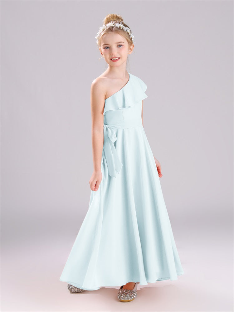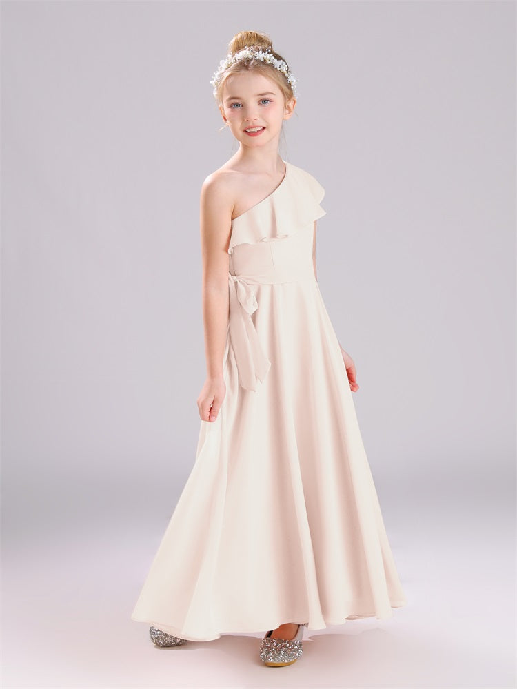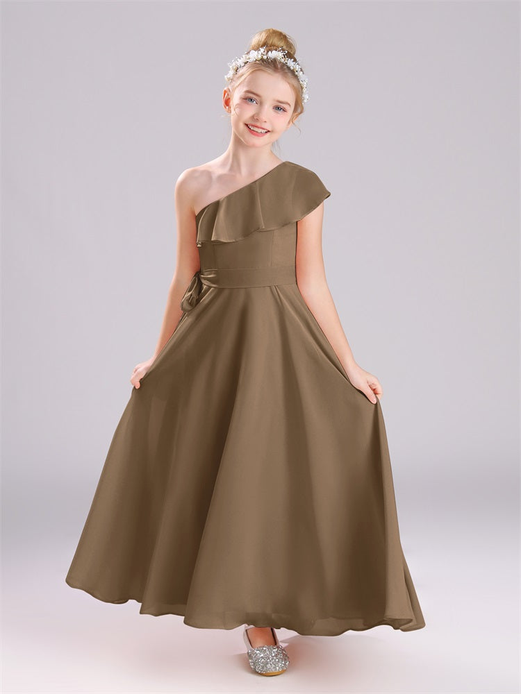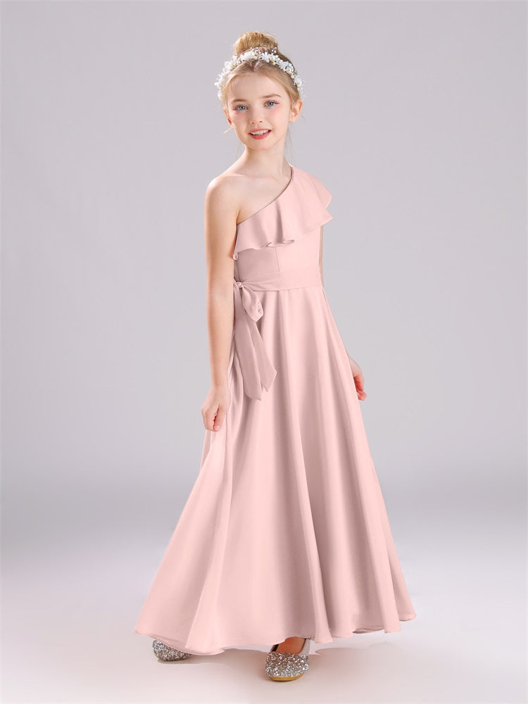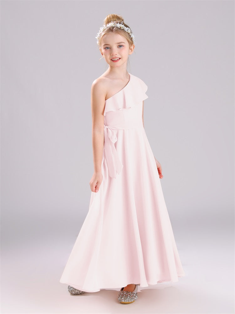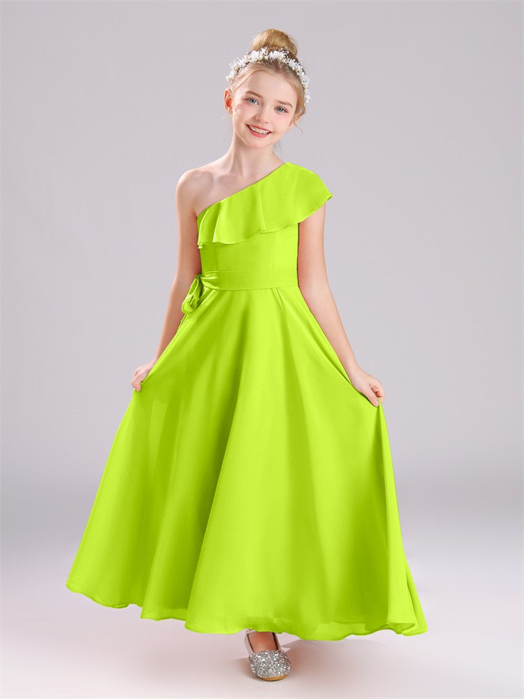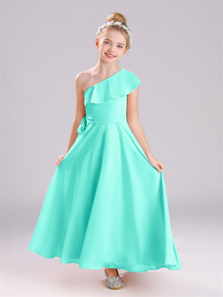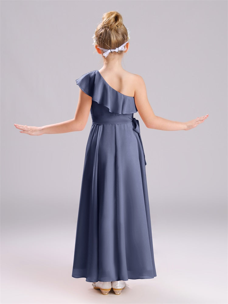 Ein-Schulter-Rüschen Chiffon Junior Brautjungfernkleider