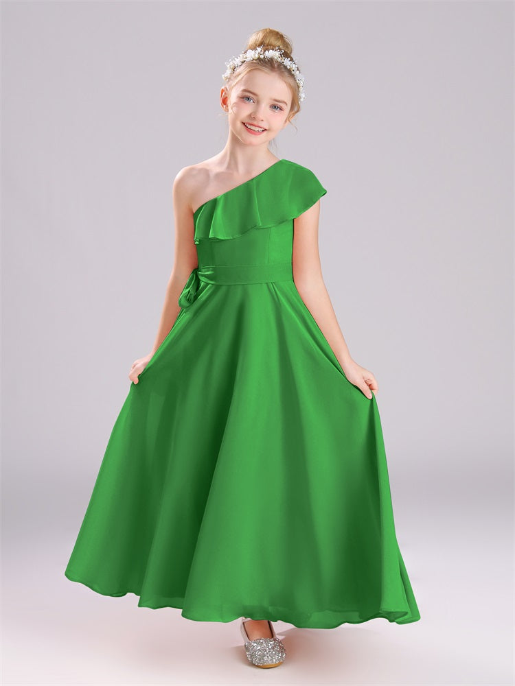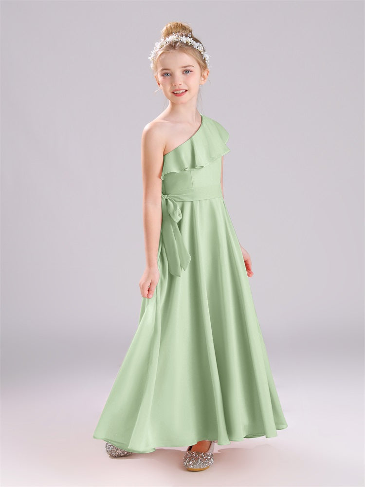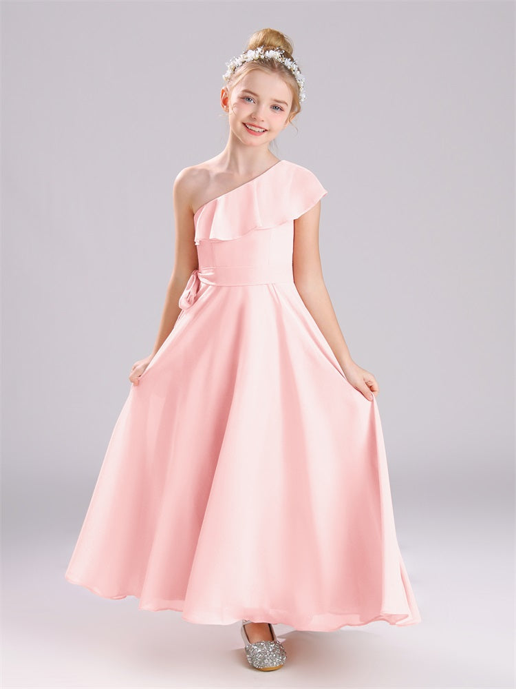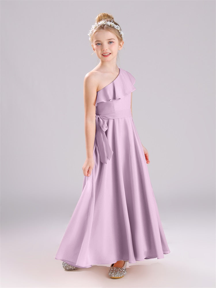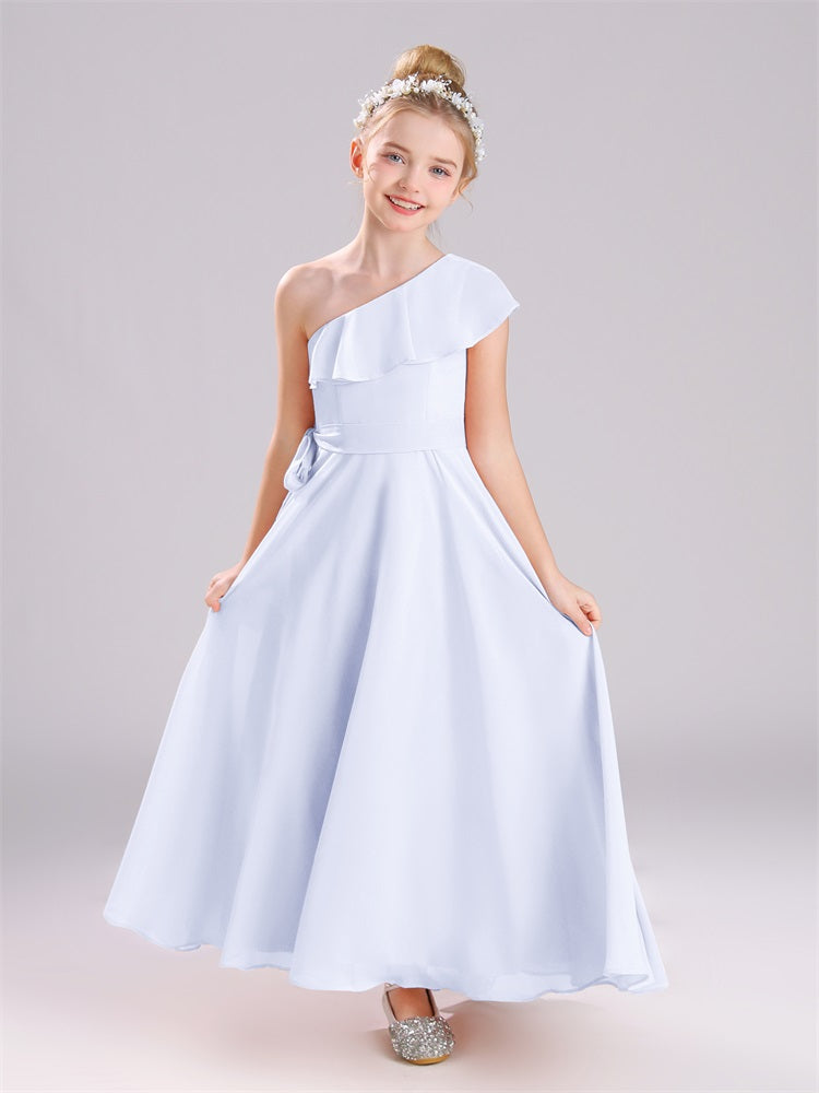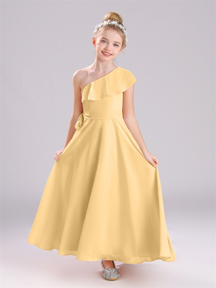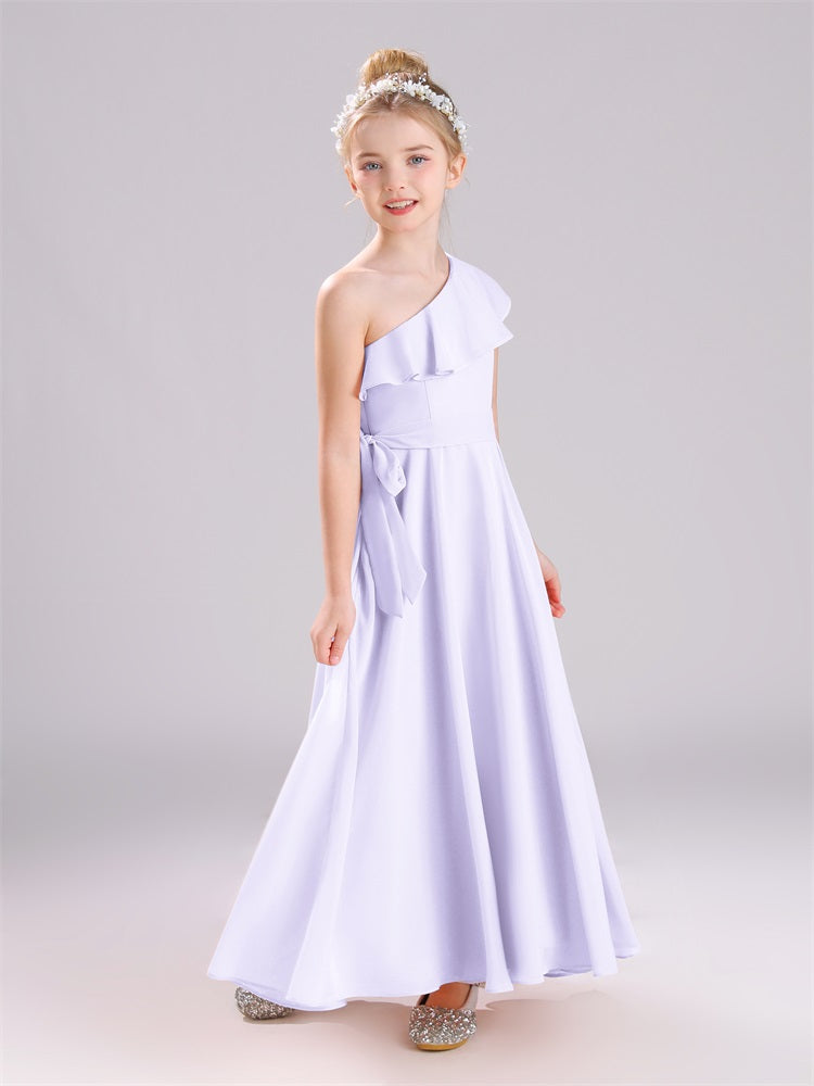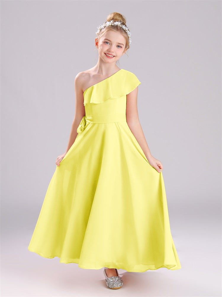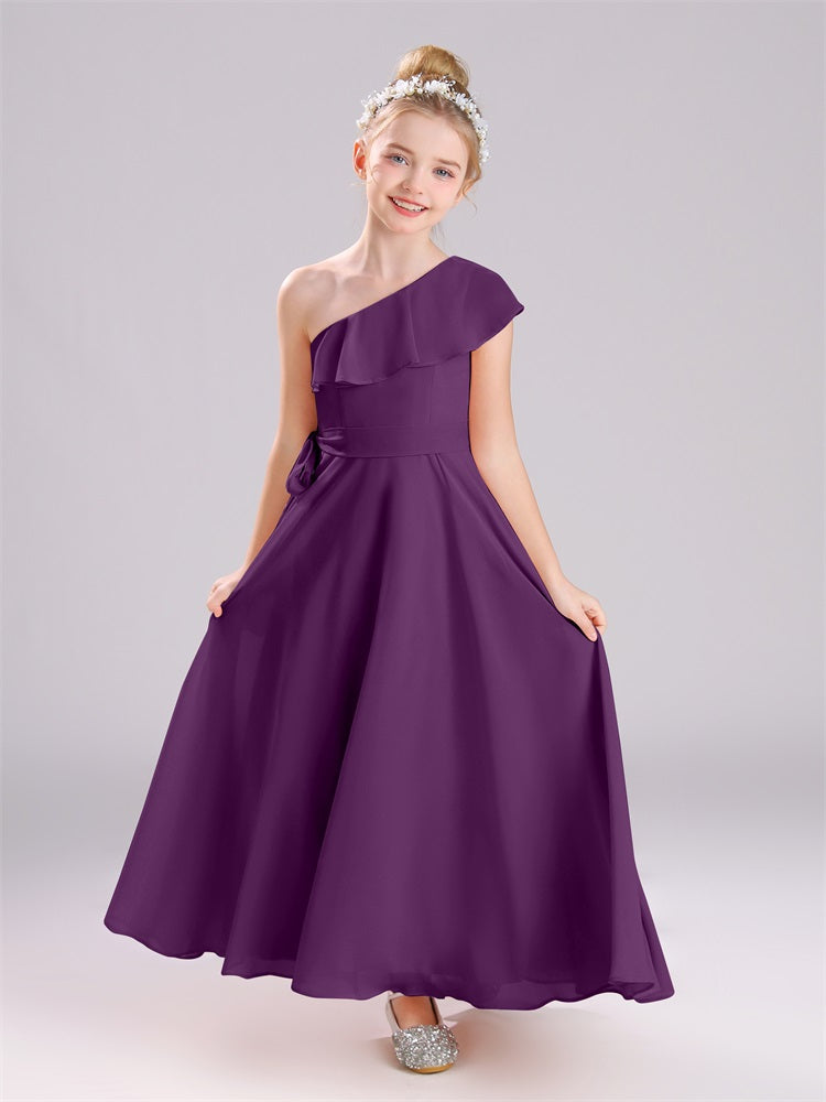 Ein-Schulter-Rüschen Chiffon Junior Brautjungfernkleider
