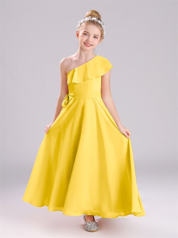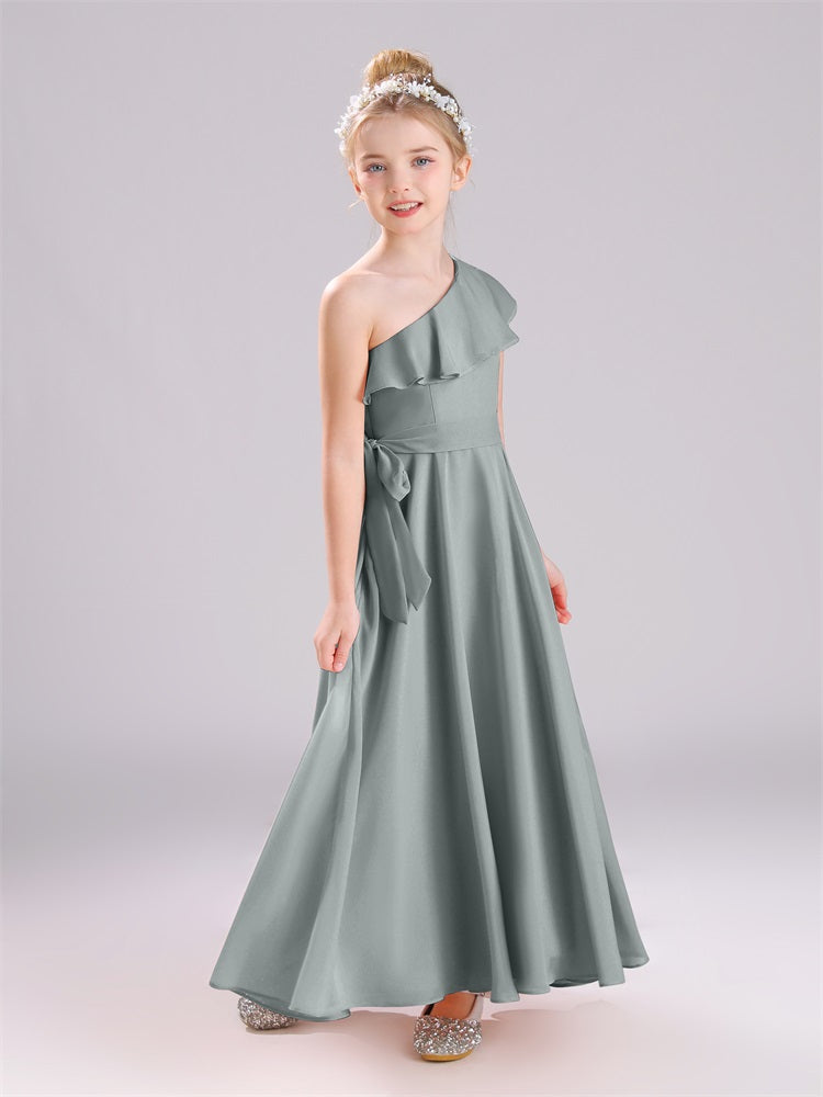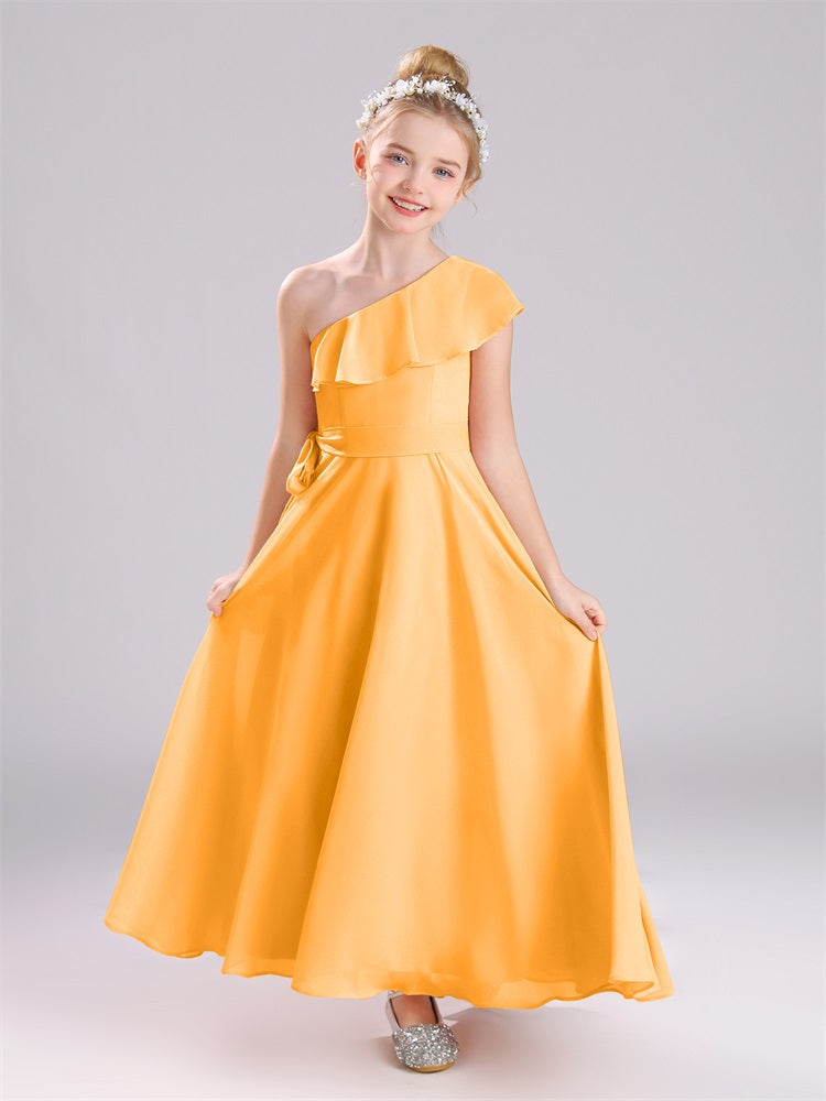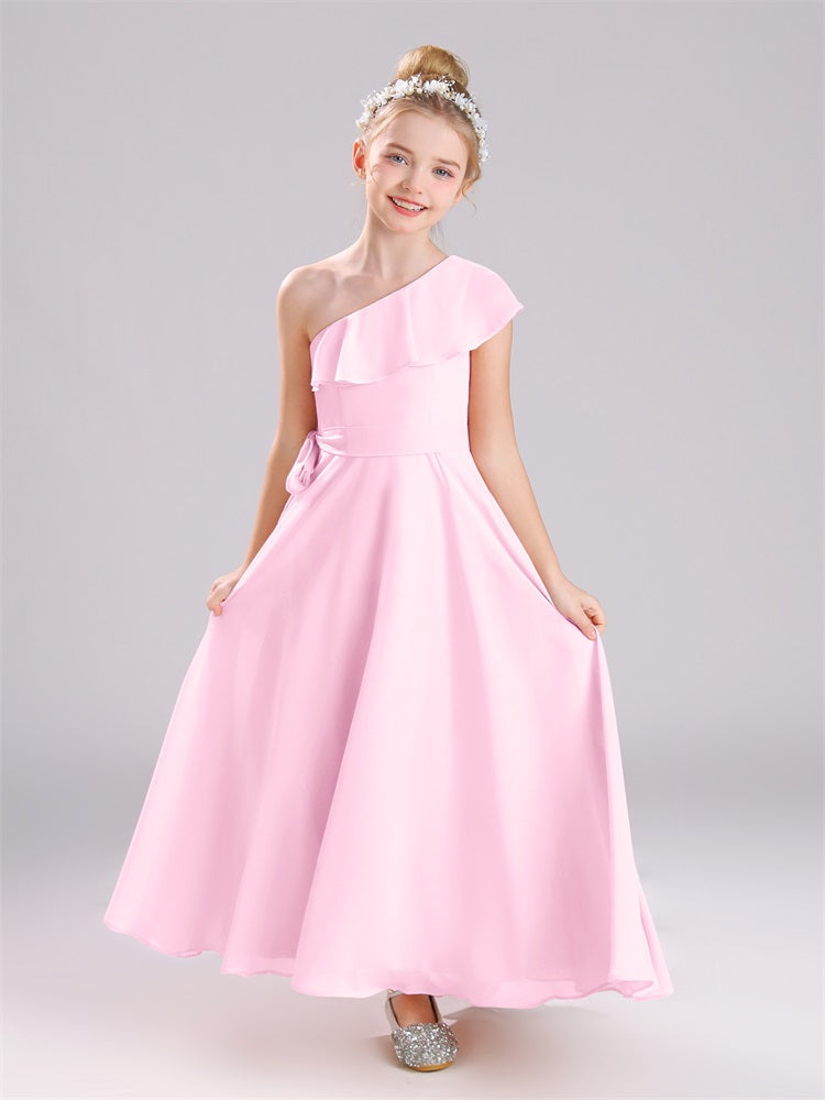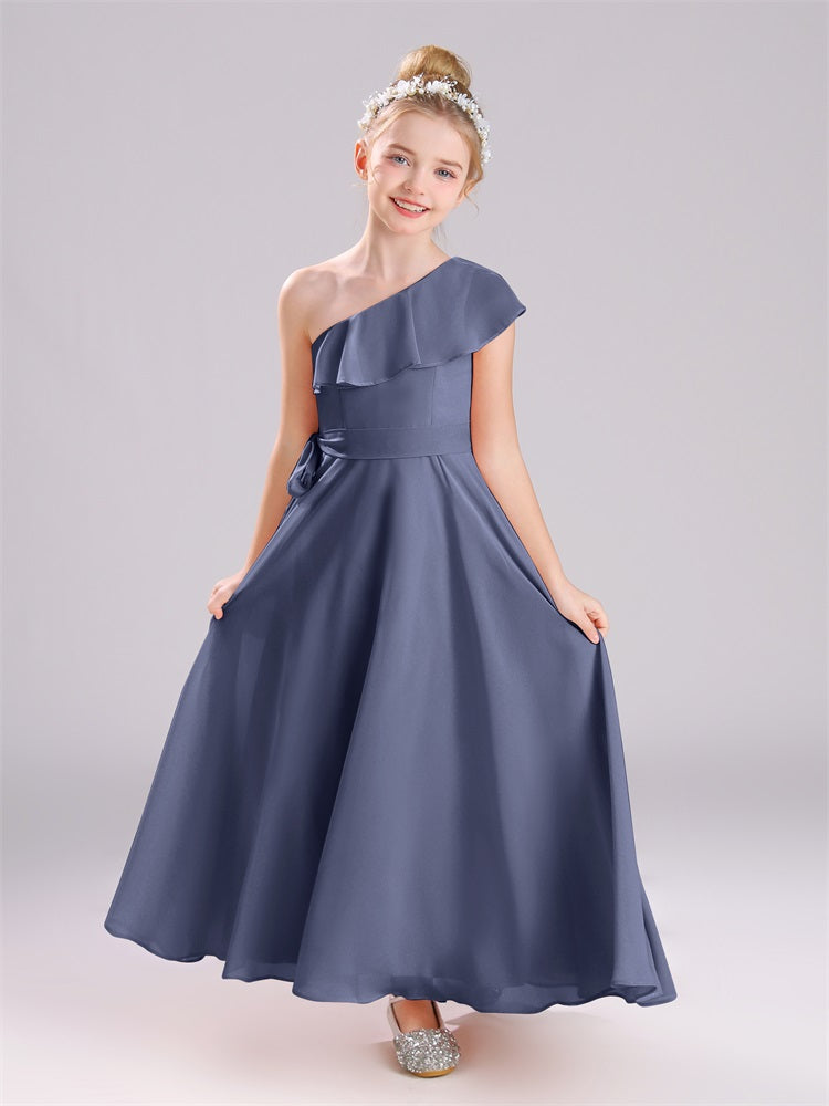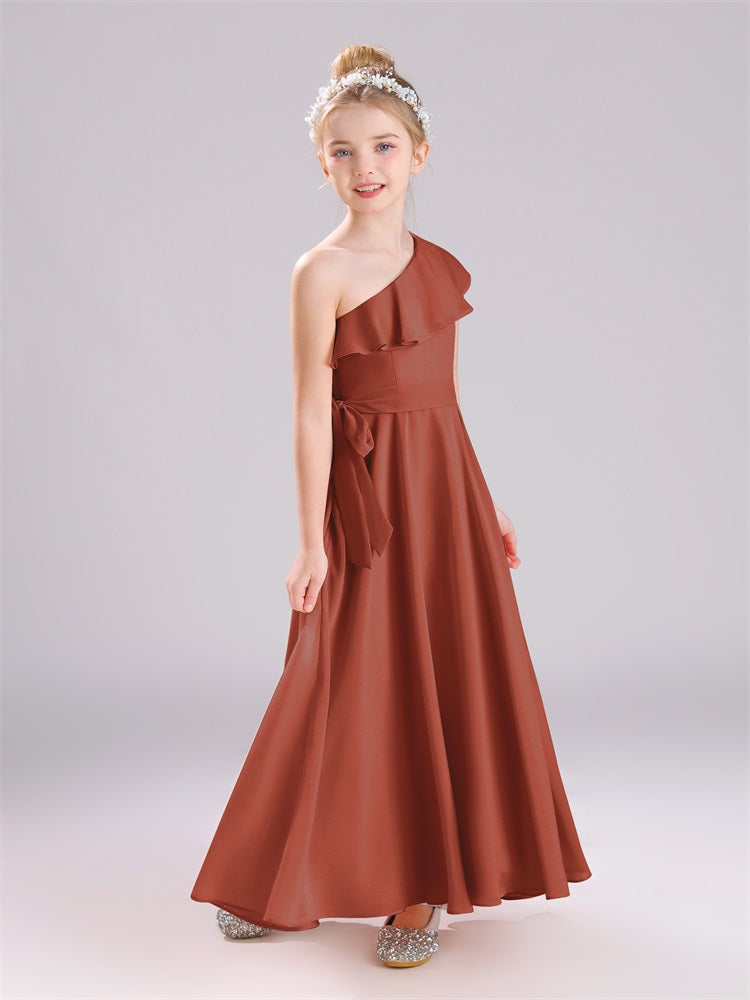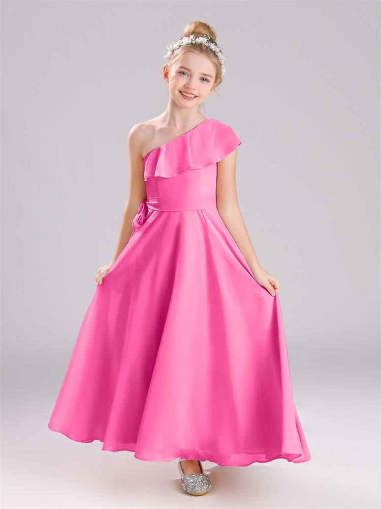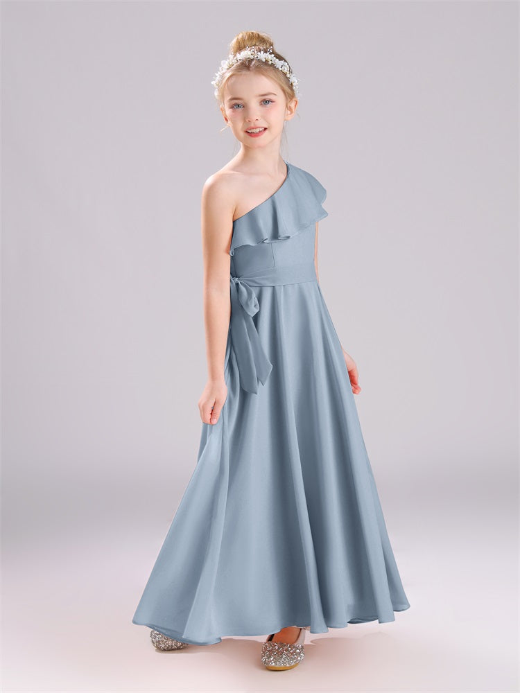 Ein-Schulter-Rüschen Chiffon Junior Brautjungfernkleider