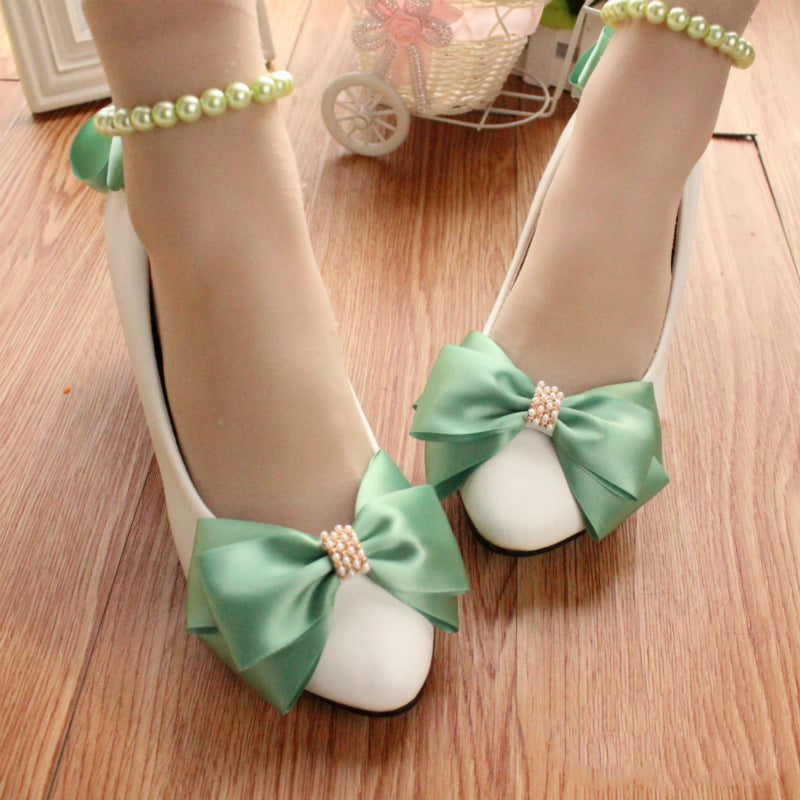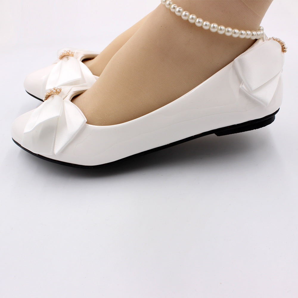 Einfache Prinzessin Stil Satin Bogen Perle Fußkettchen Hochzeit Schuhe