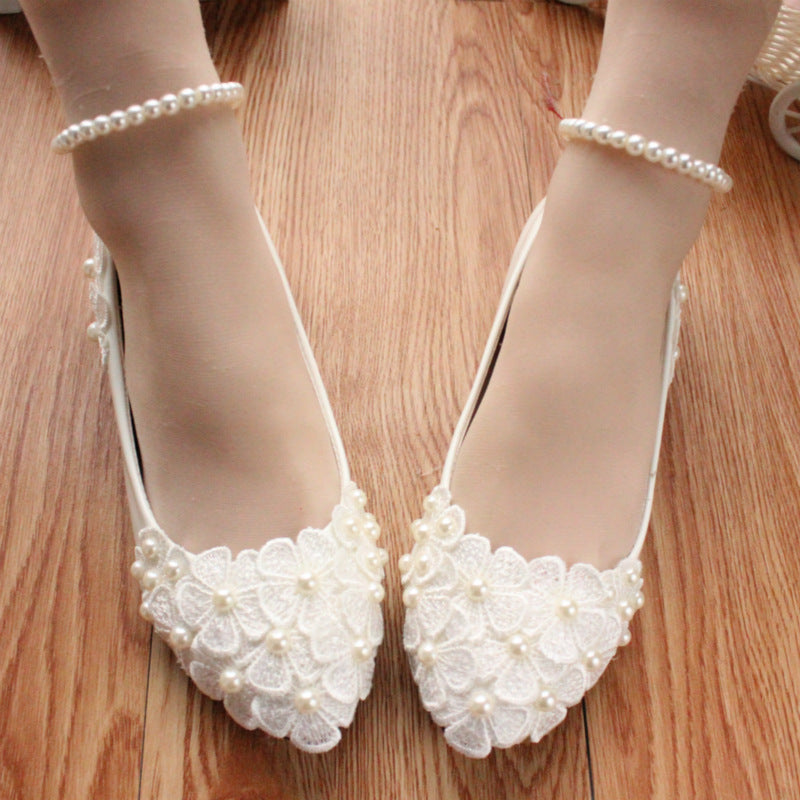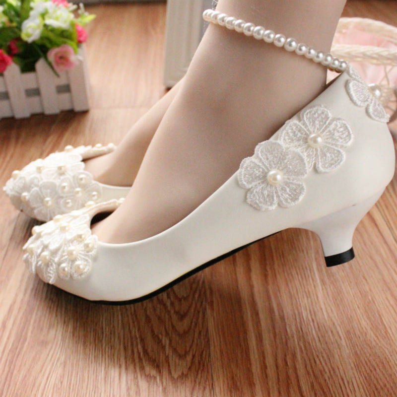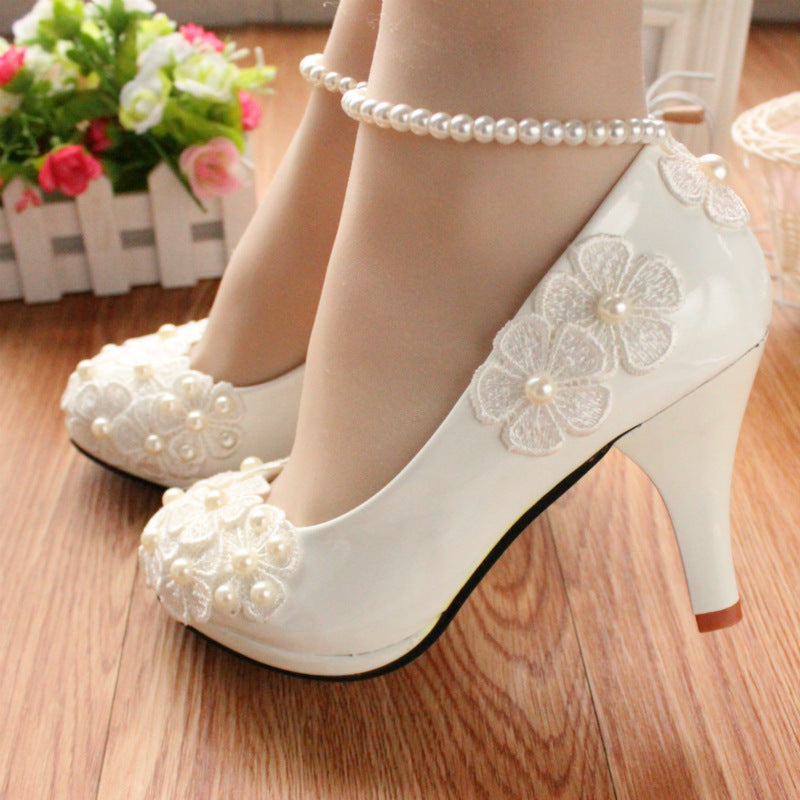 Elegante Perle Kleine weiße Blume Hochzeit Schuhe