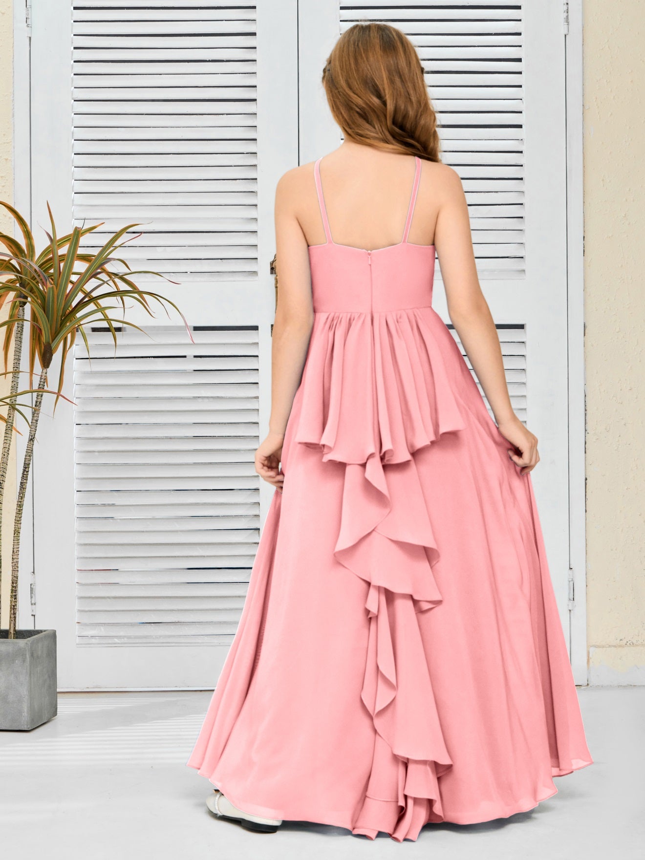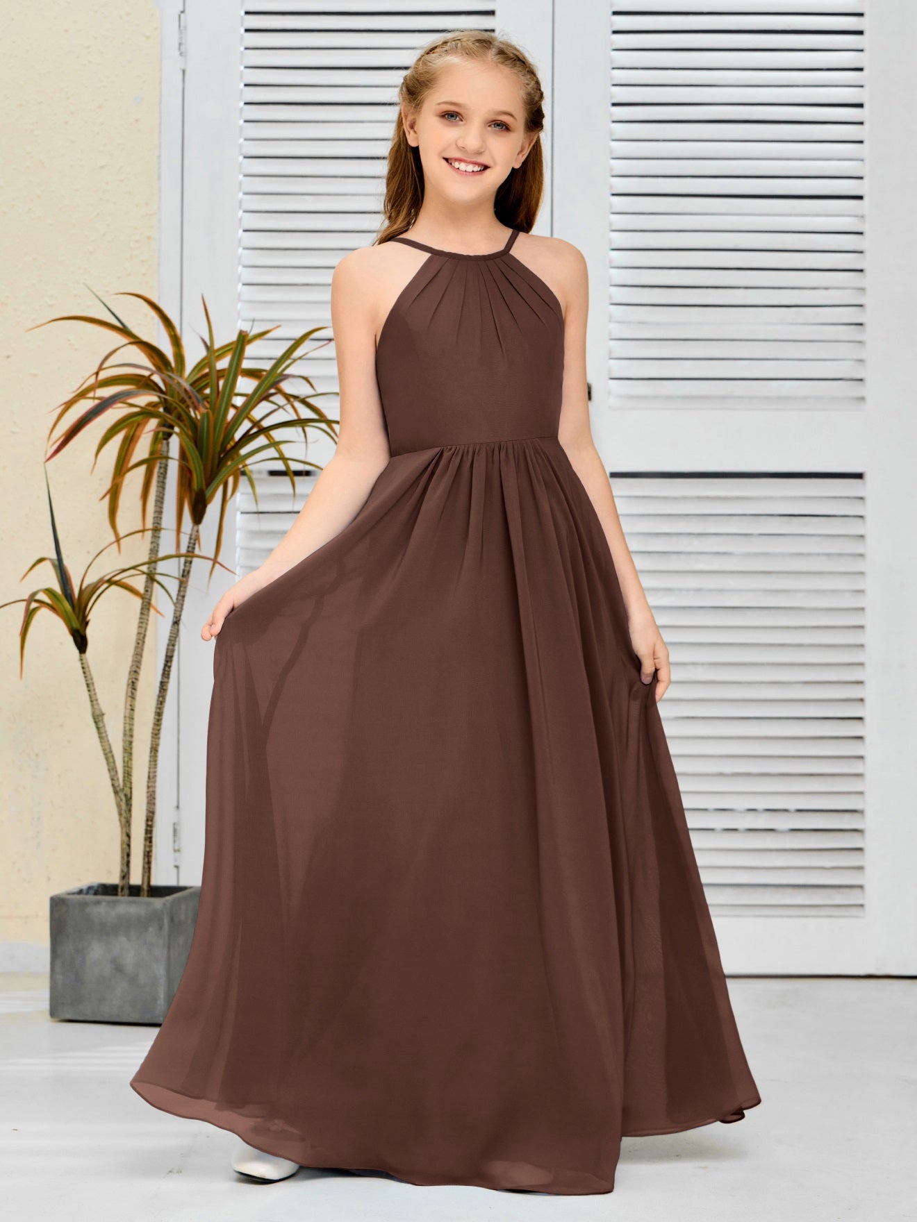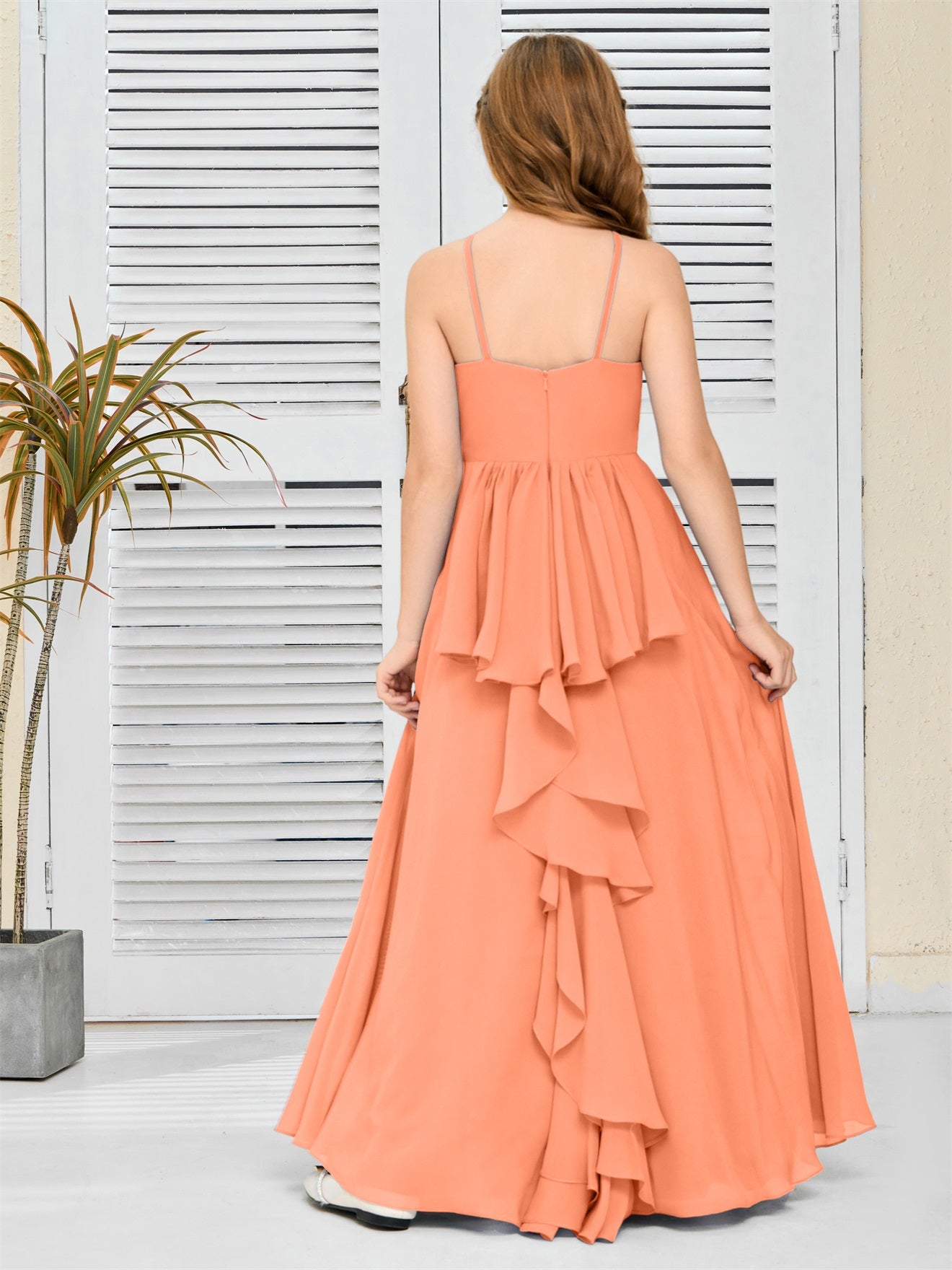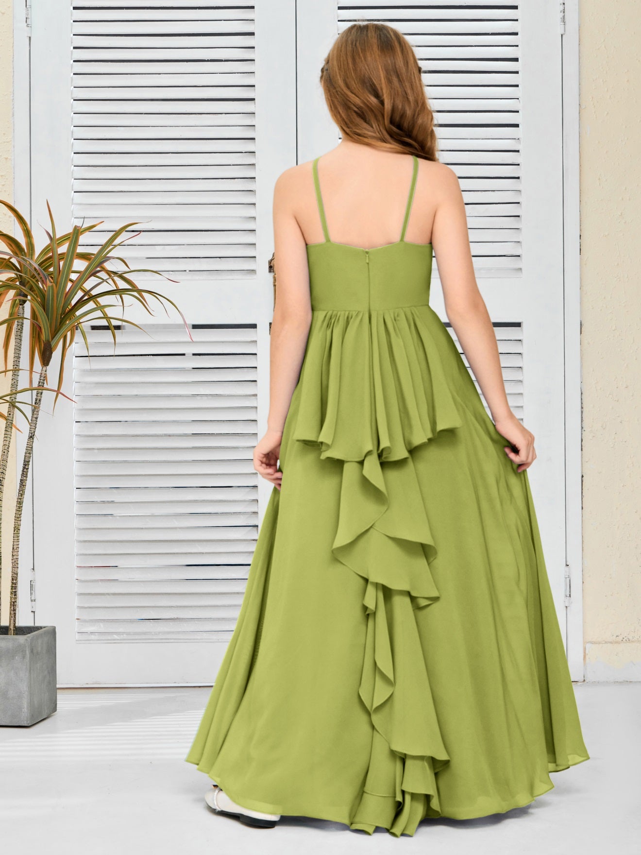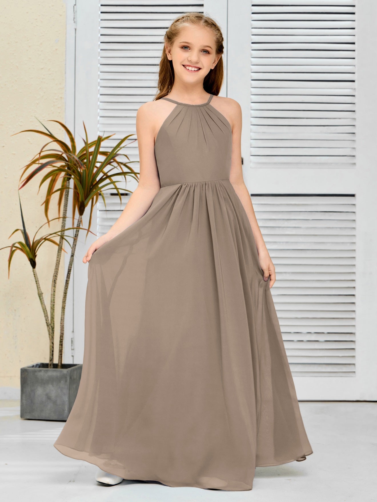 Elegantes Chiffon Junior-Brautjungfernkleid mit hängendem Ausschnitt