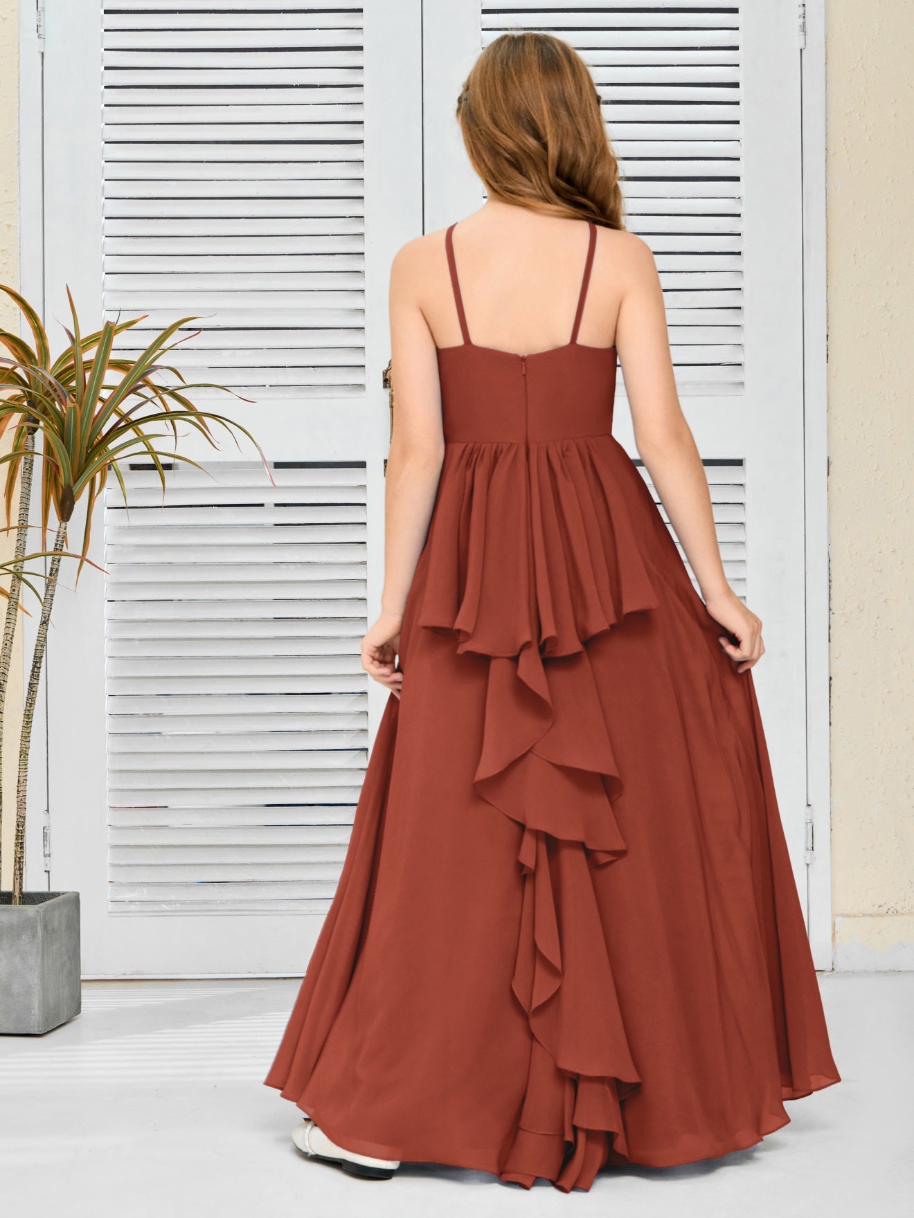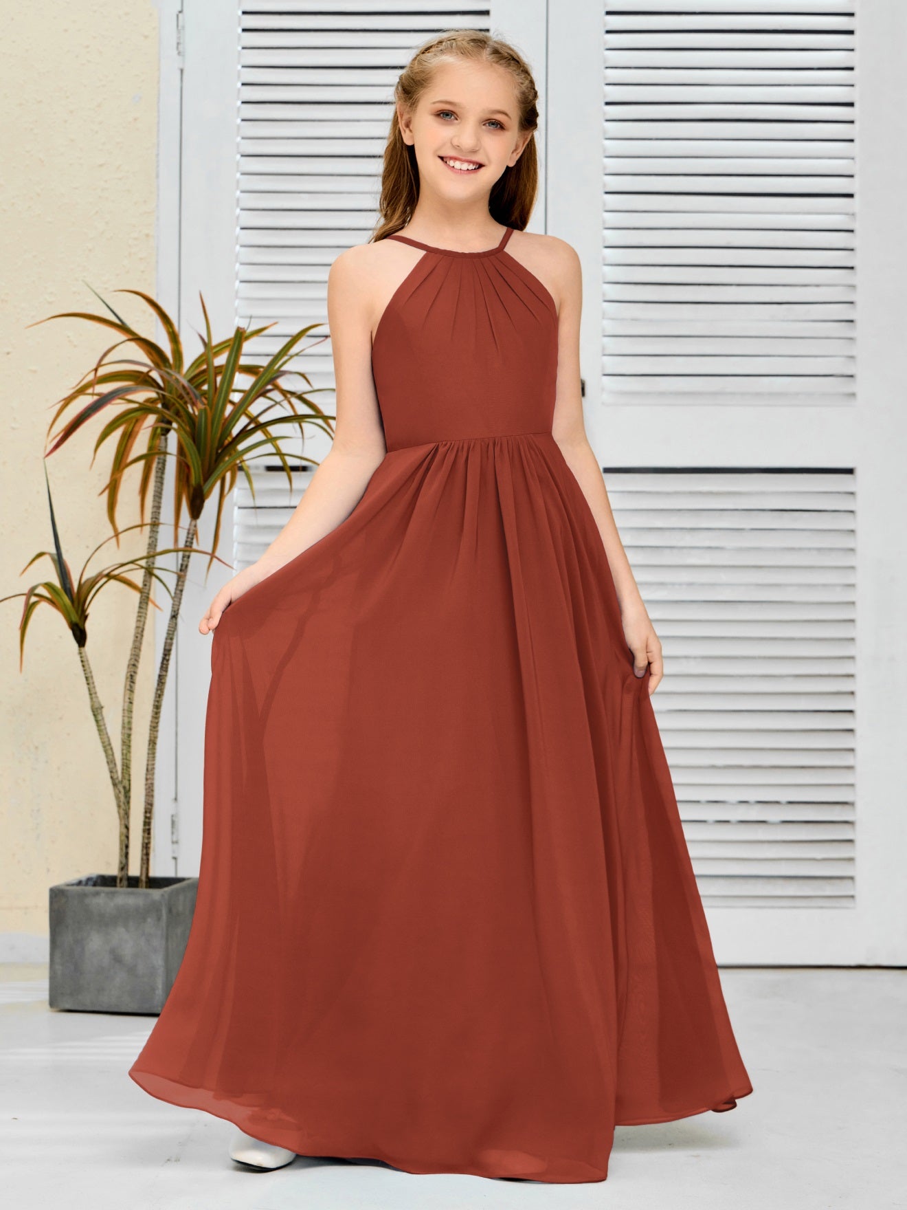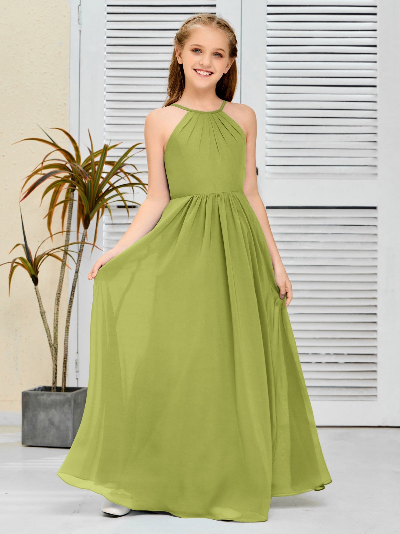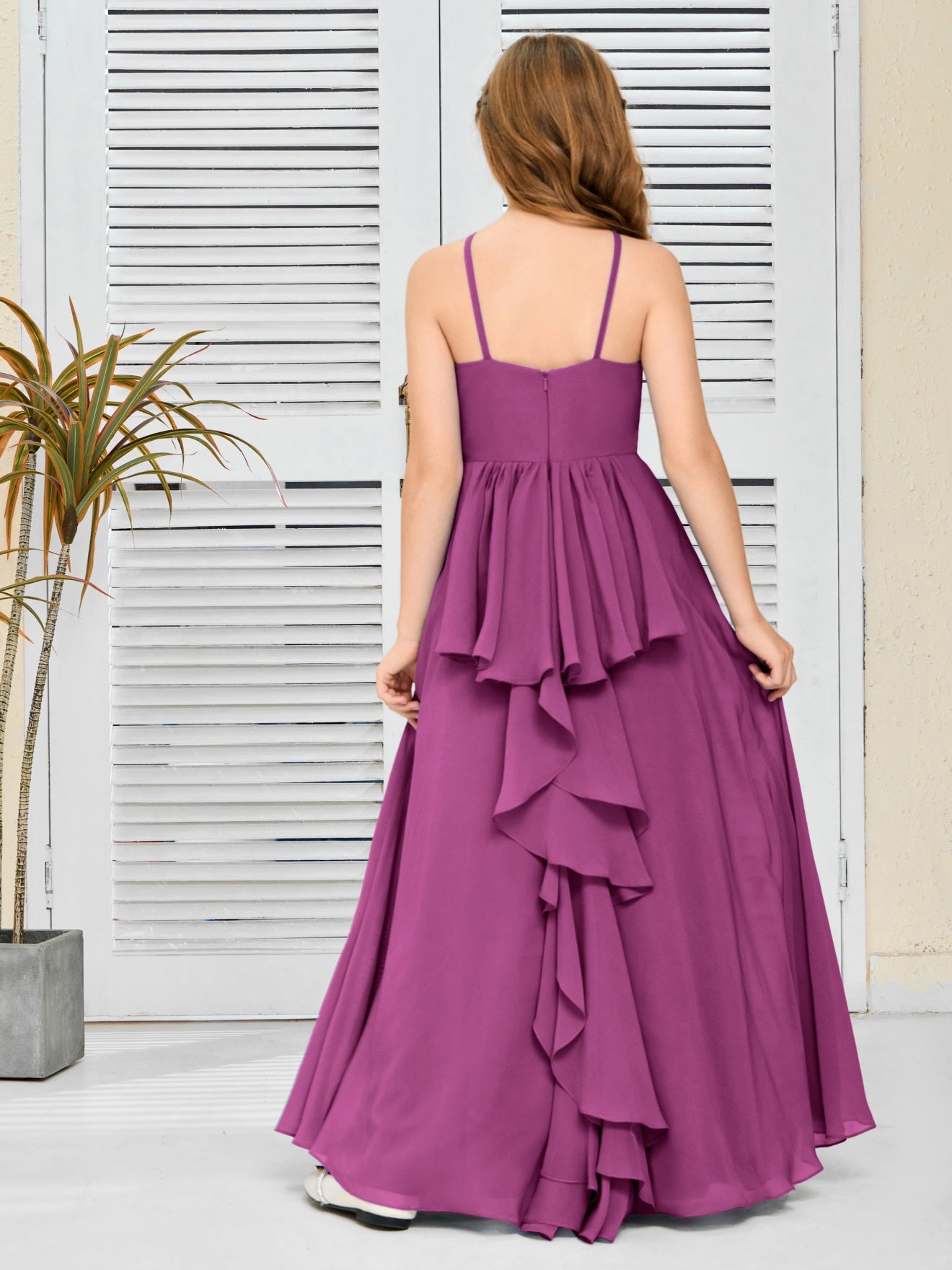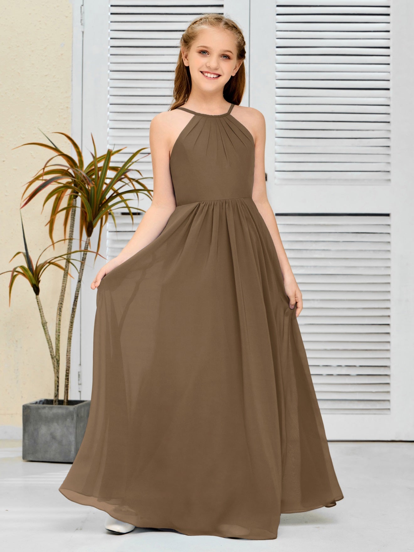 Elegantes Chiffon Junior-Brautjungfernkleid mit hängendem Ausschnitt