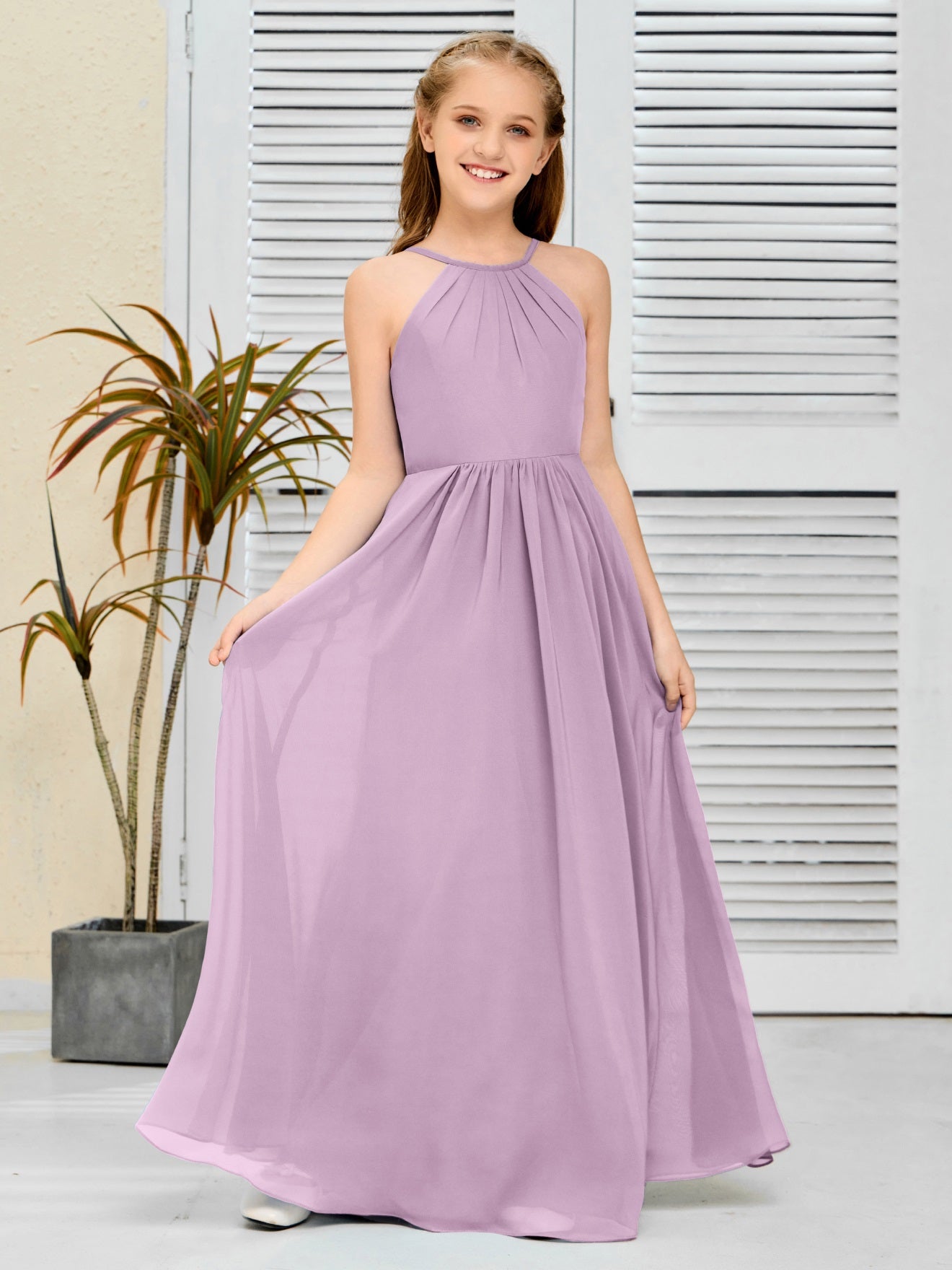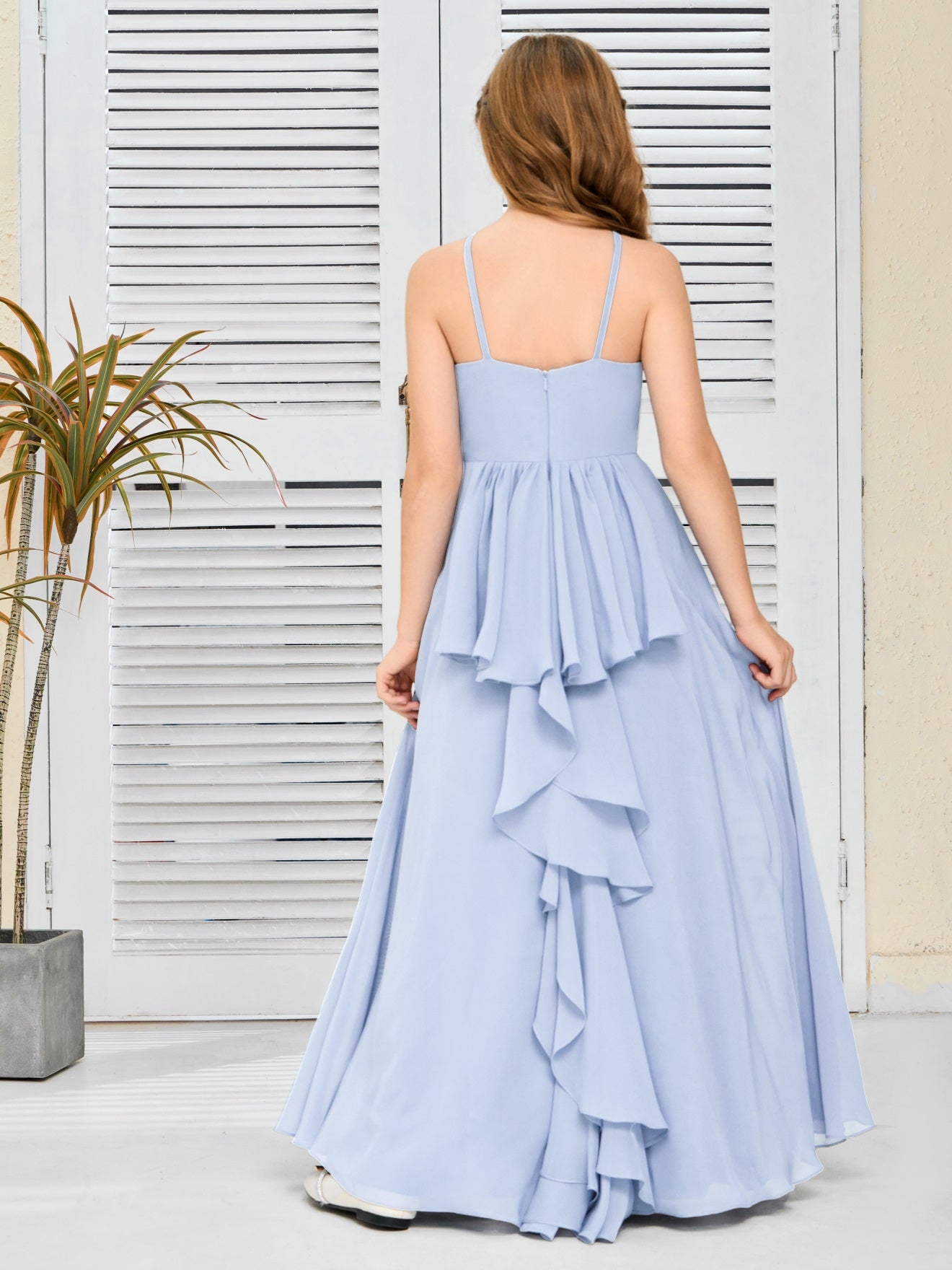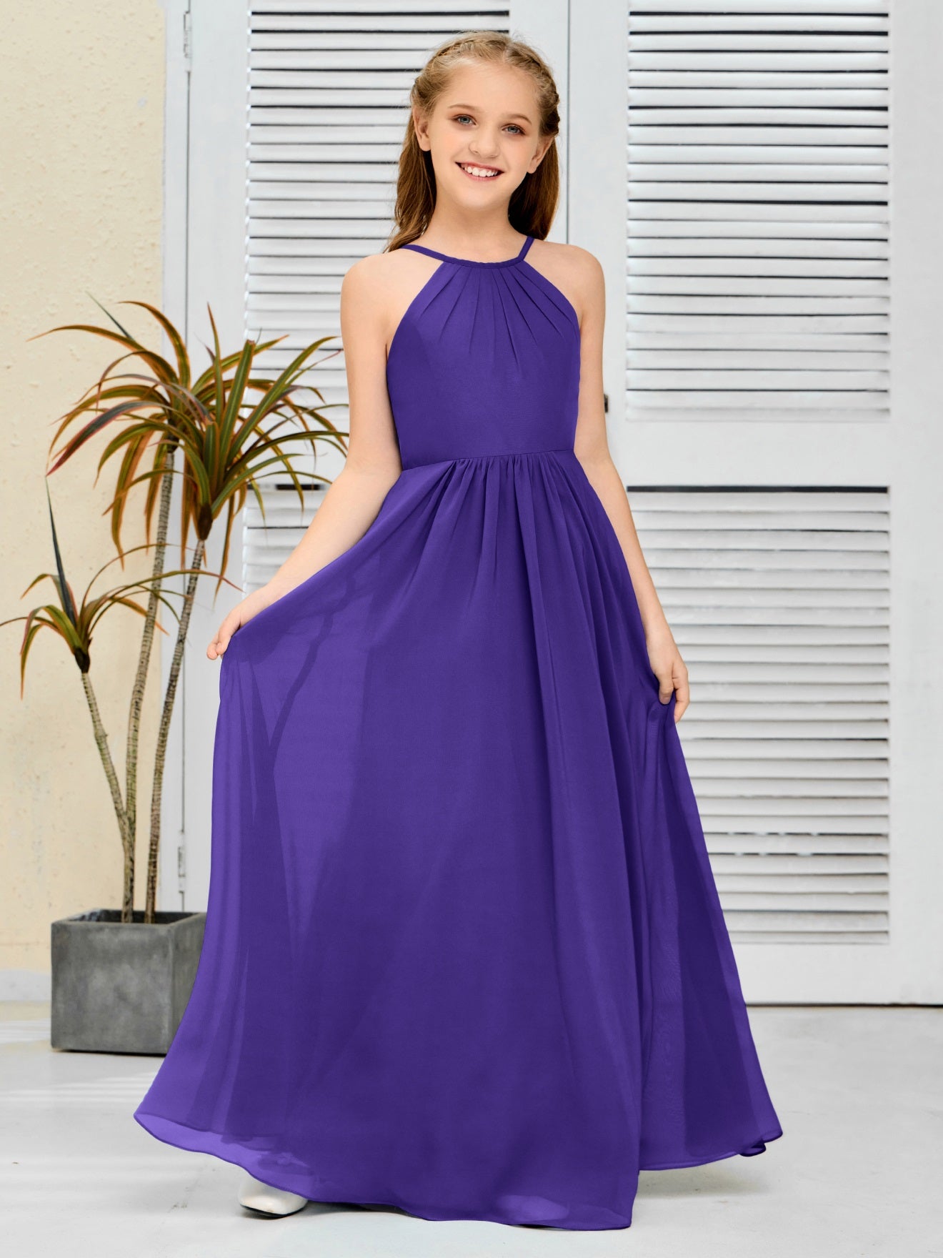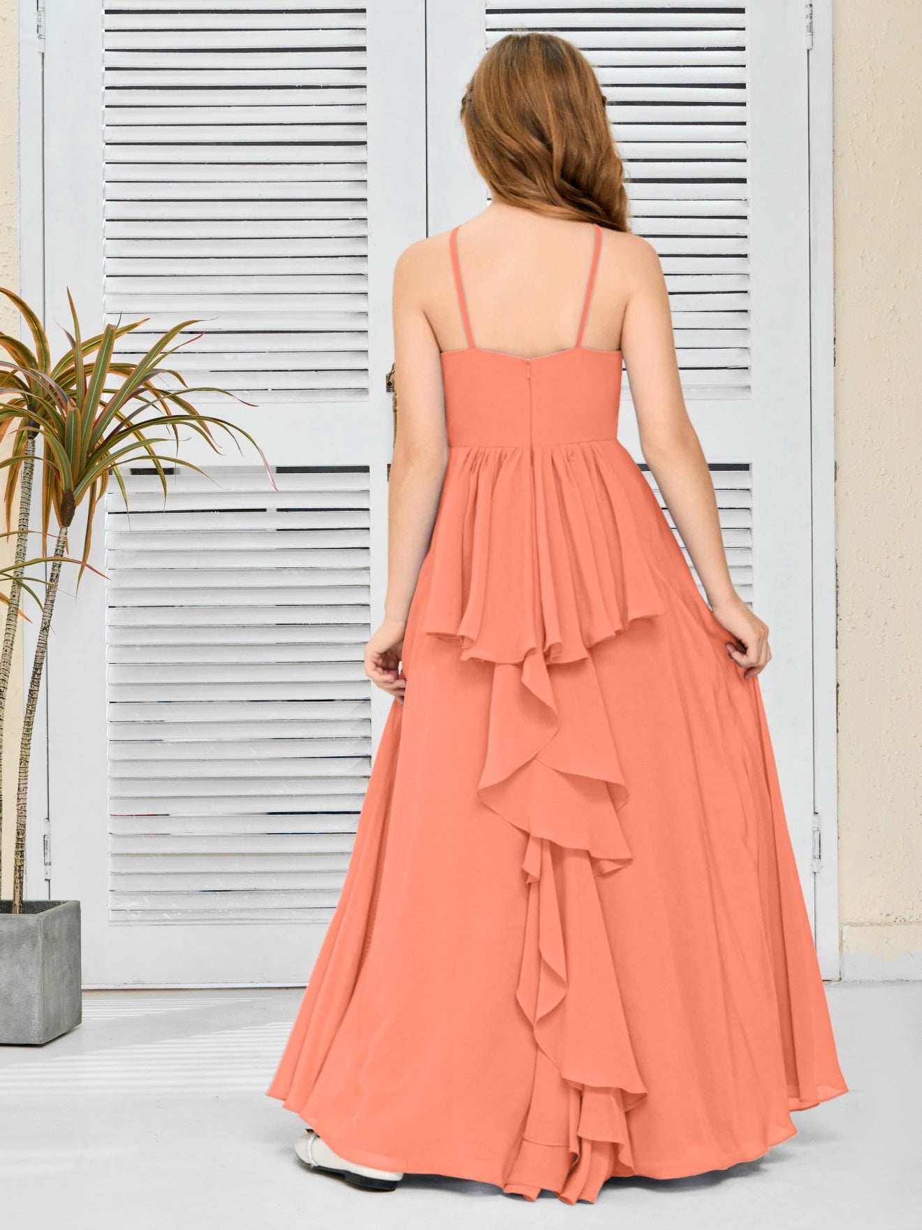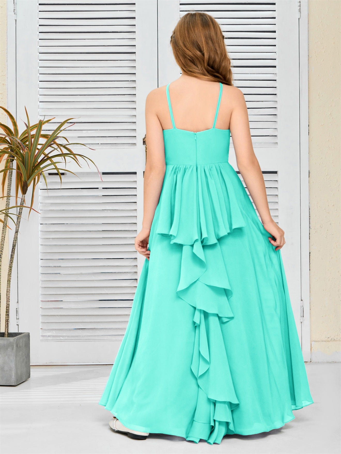 Elegantes Chiffon Junior-Brautjungfernkleid mit hängendem Ausschnitt