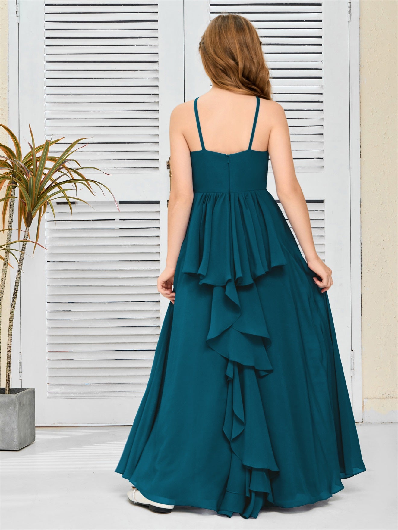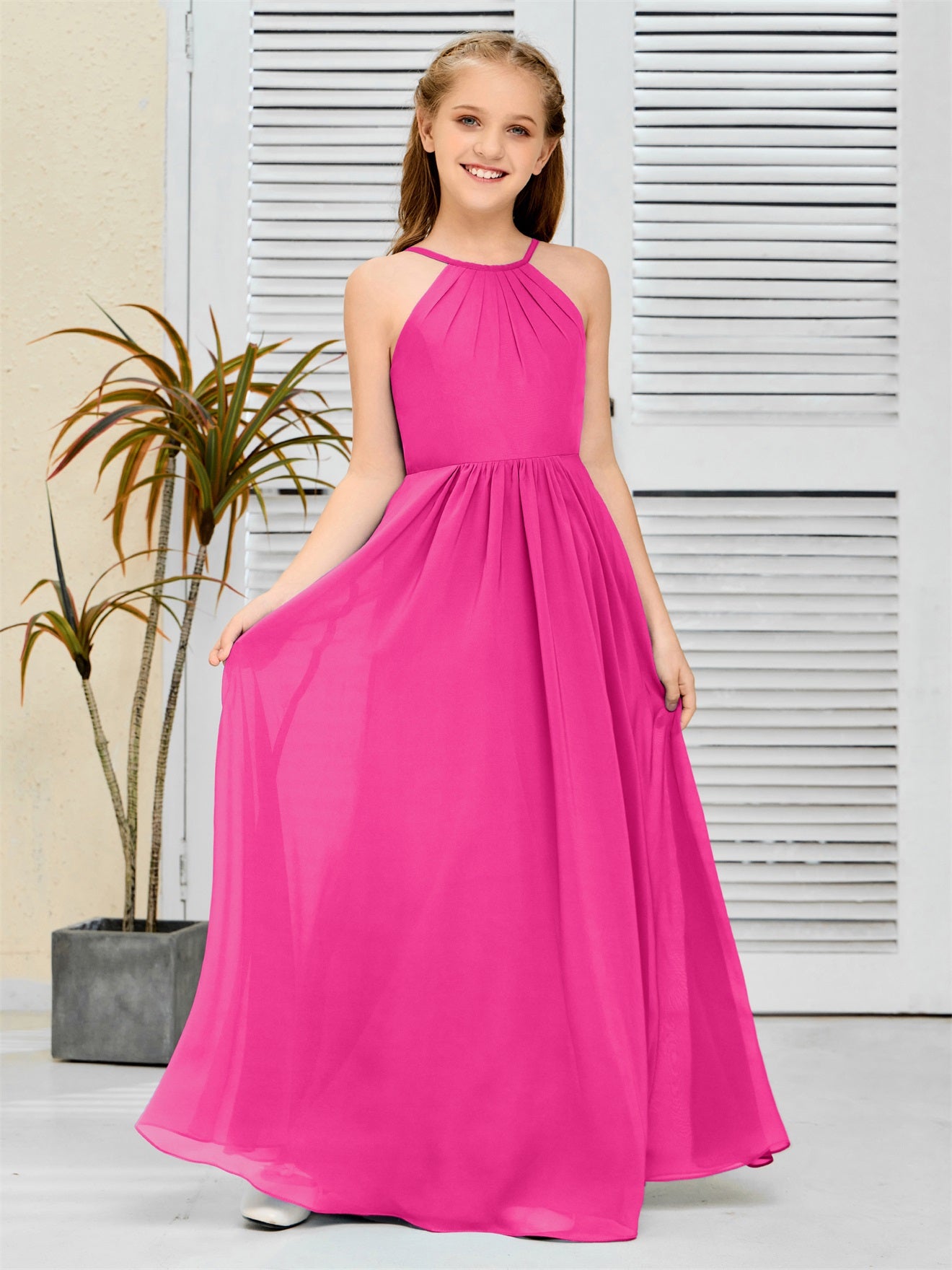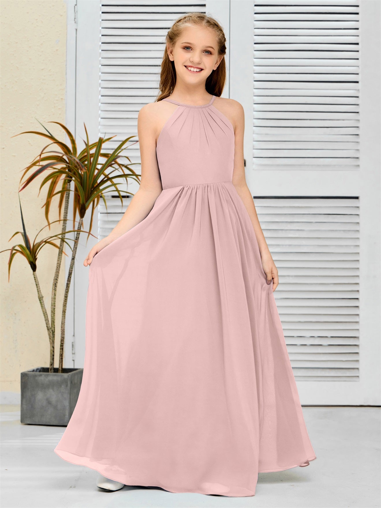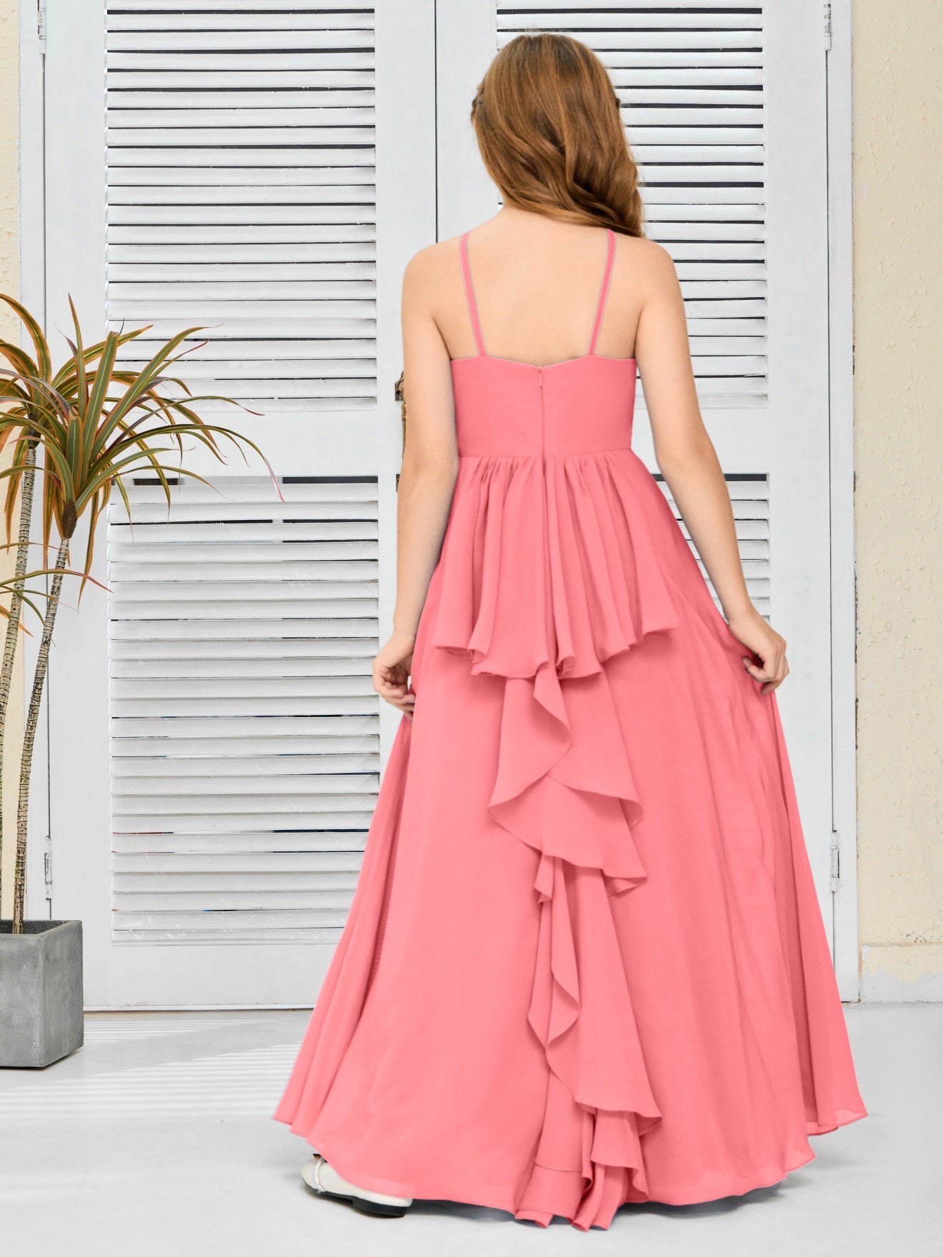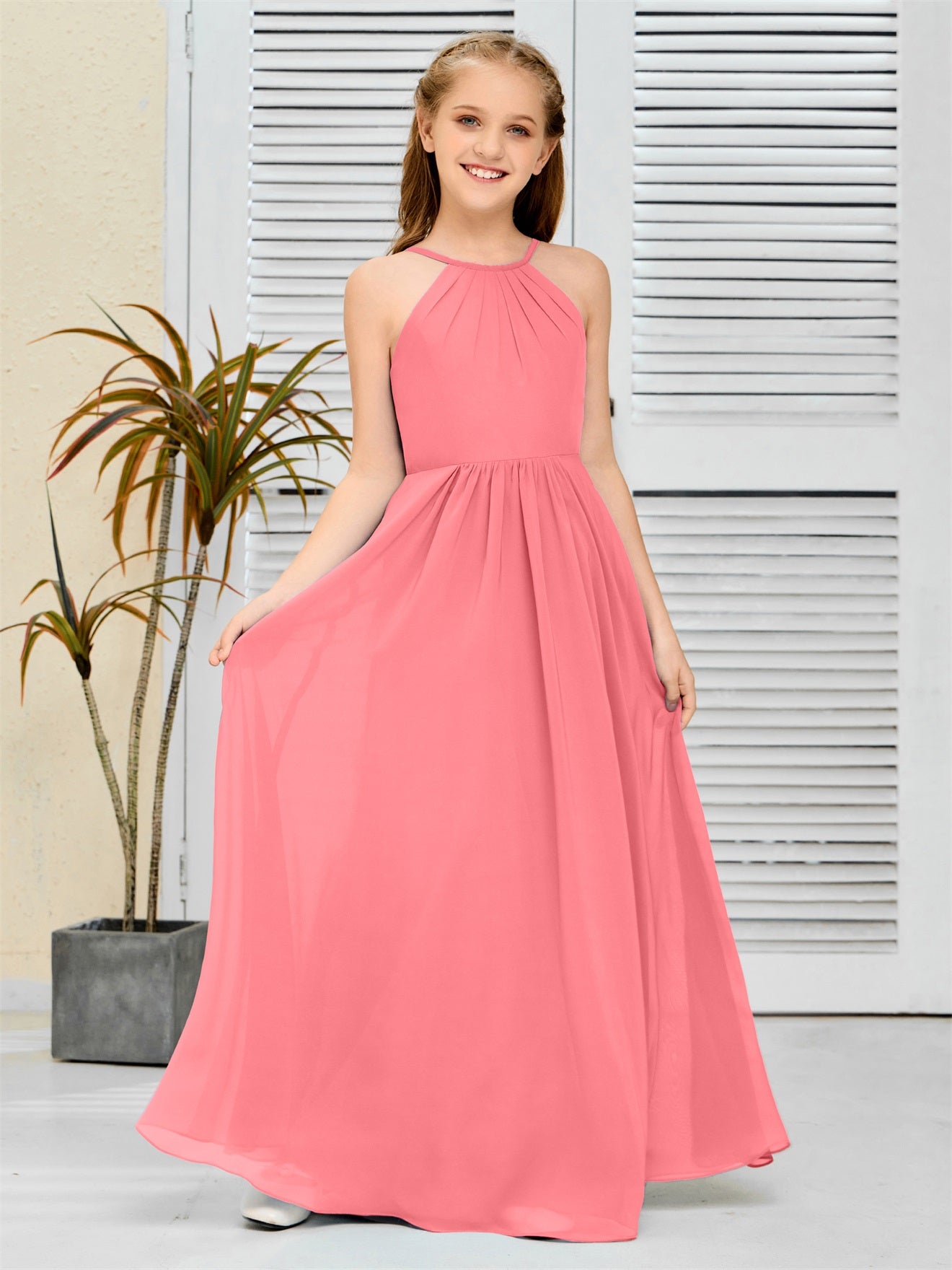 Elegantes Chiffon Junior-Brautjungfernkleid mit hängendem Ausschnitt