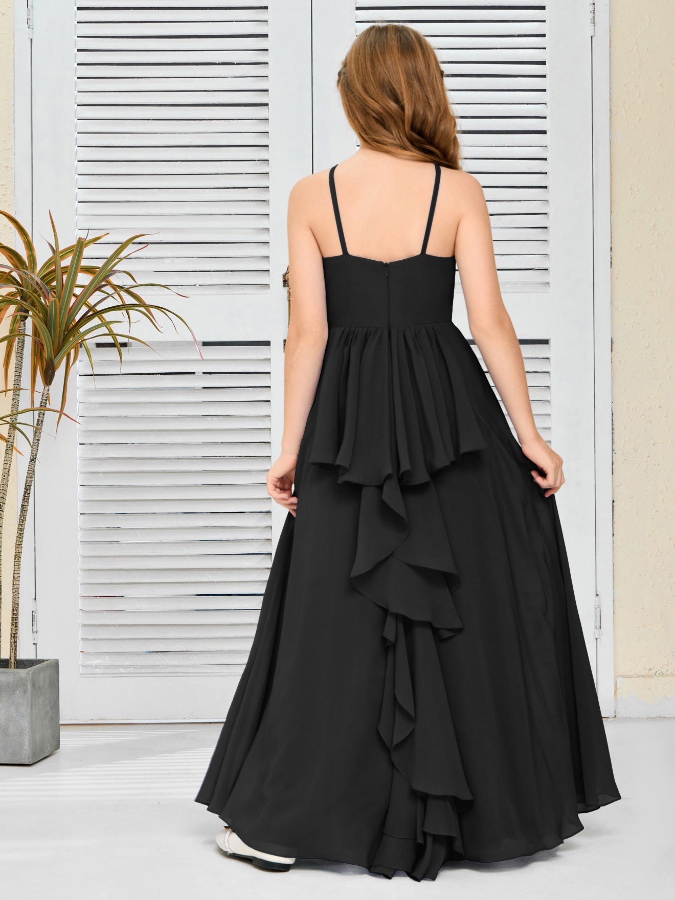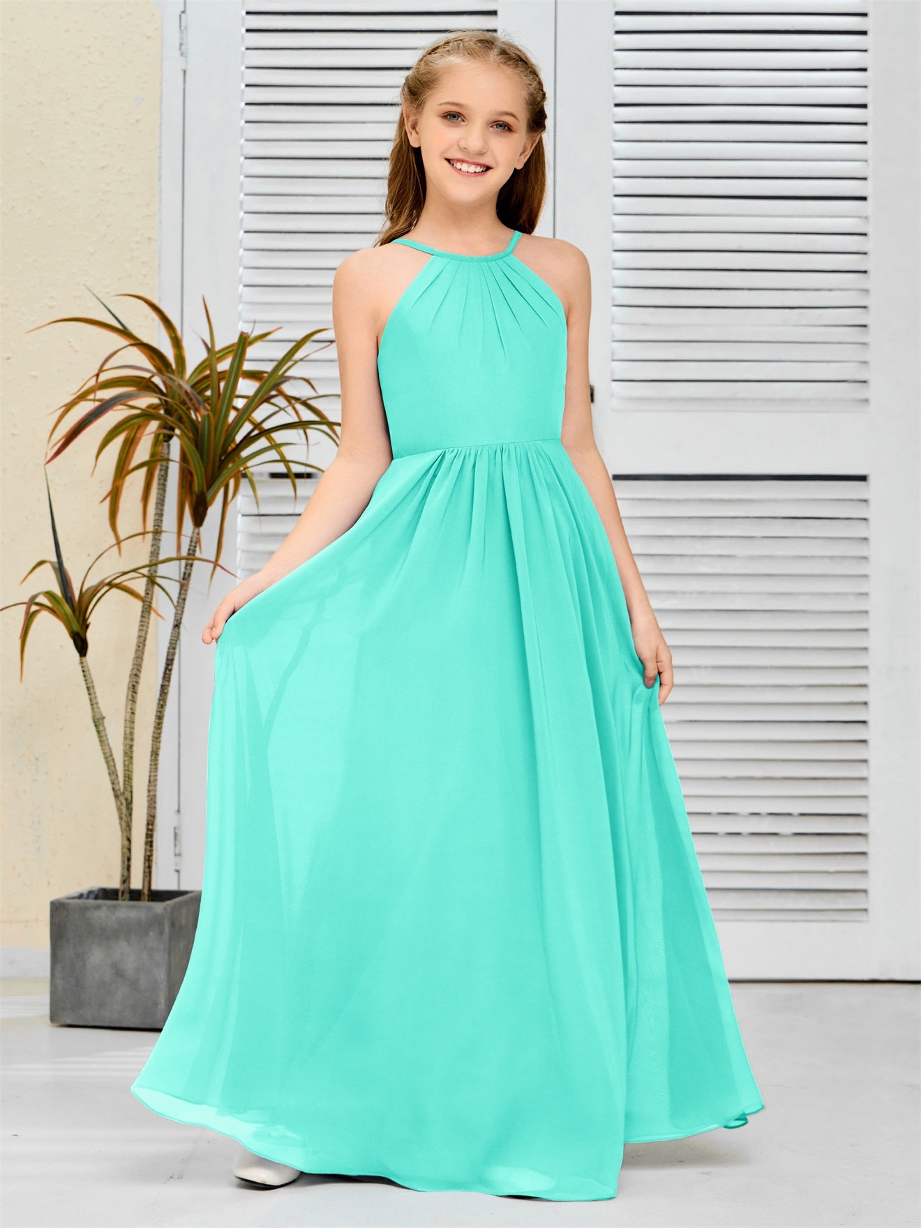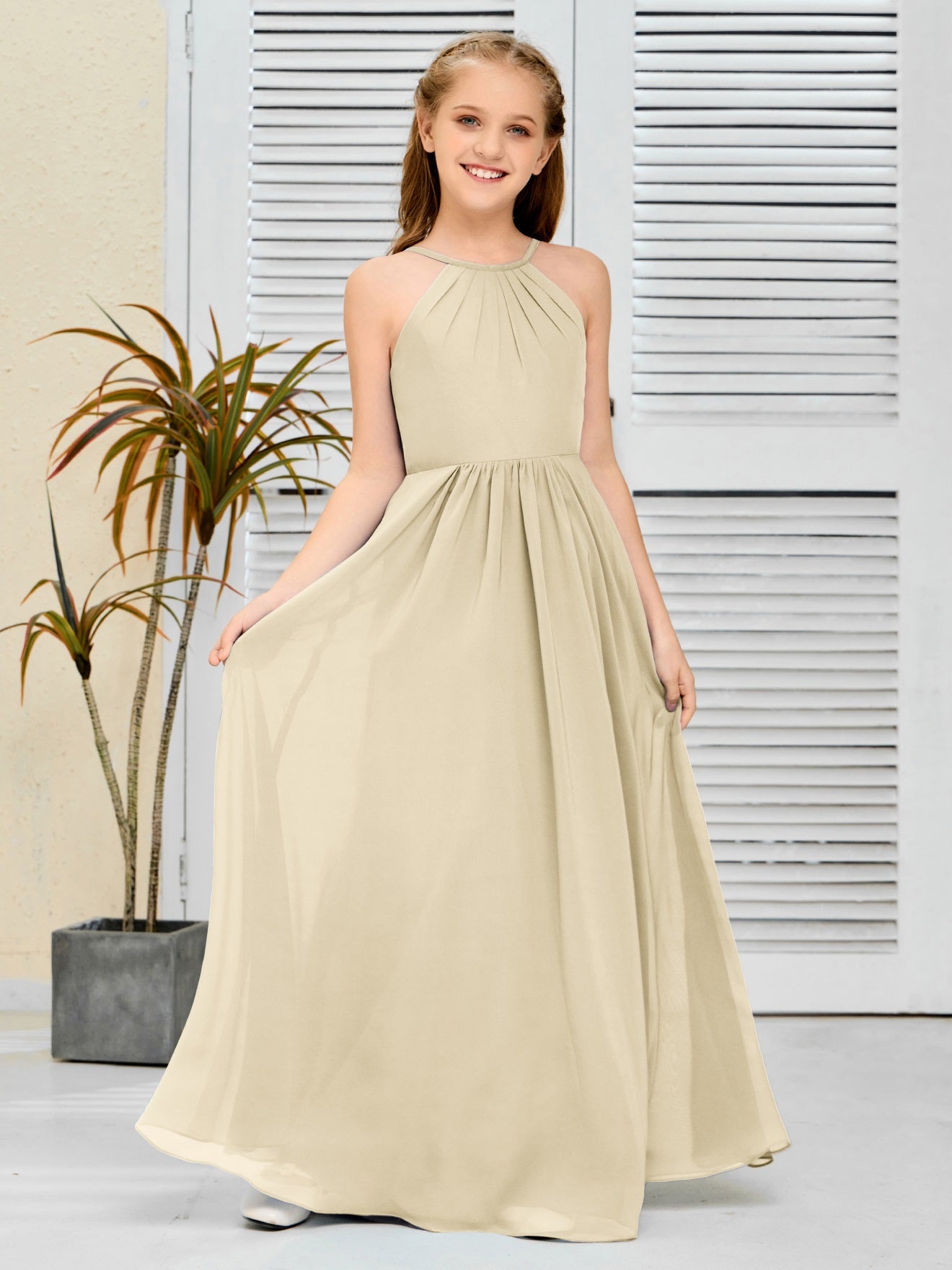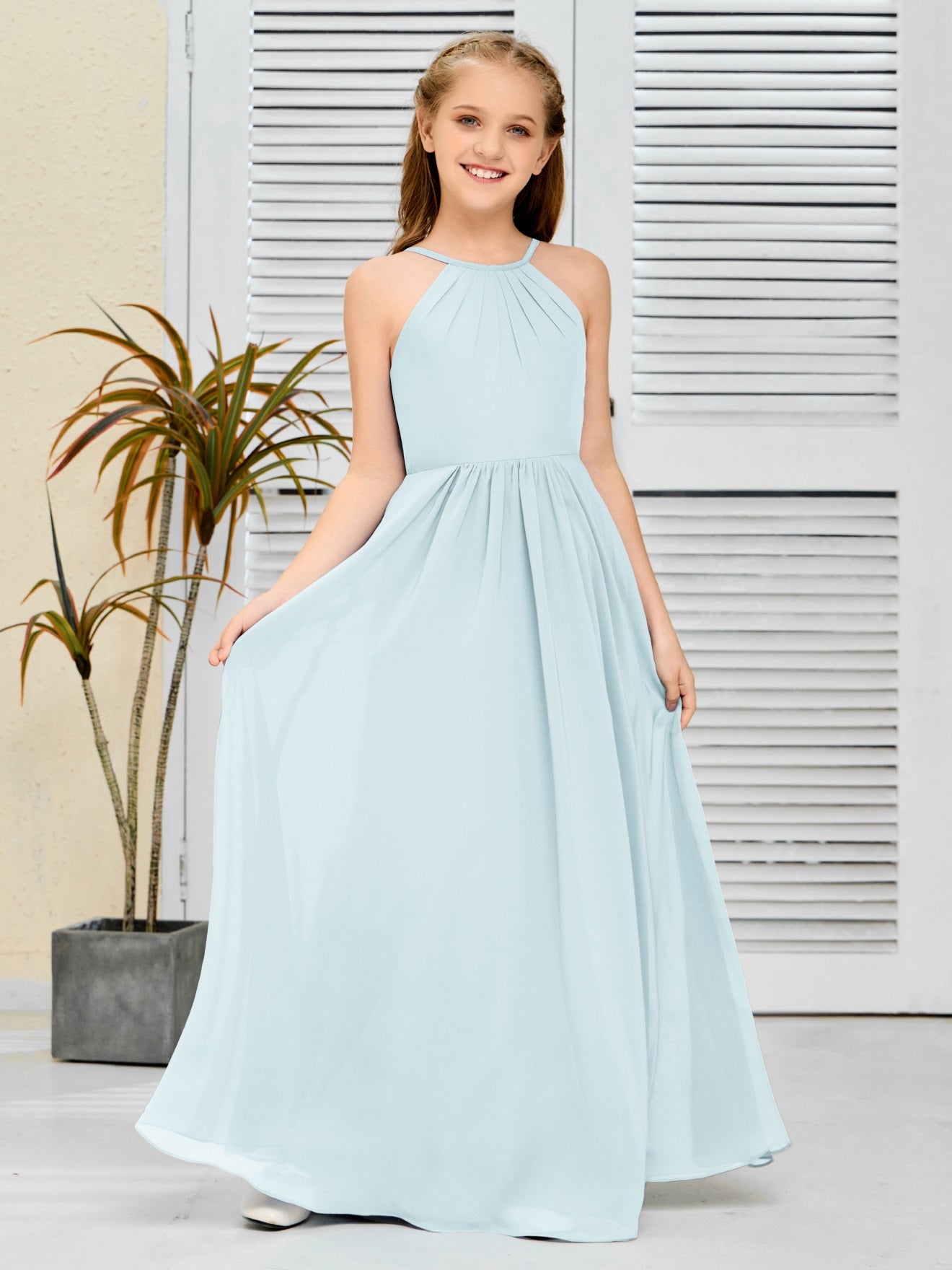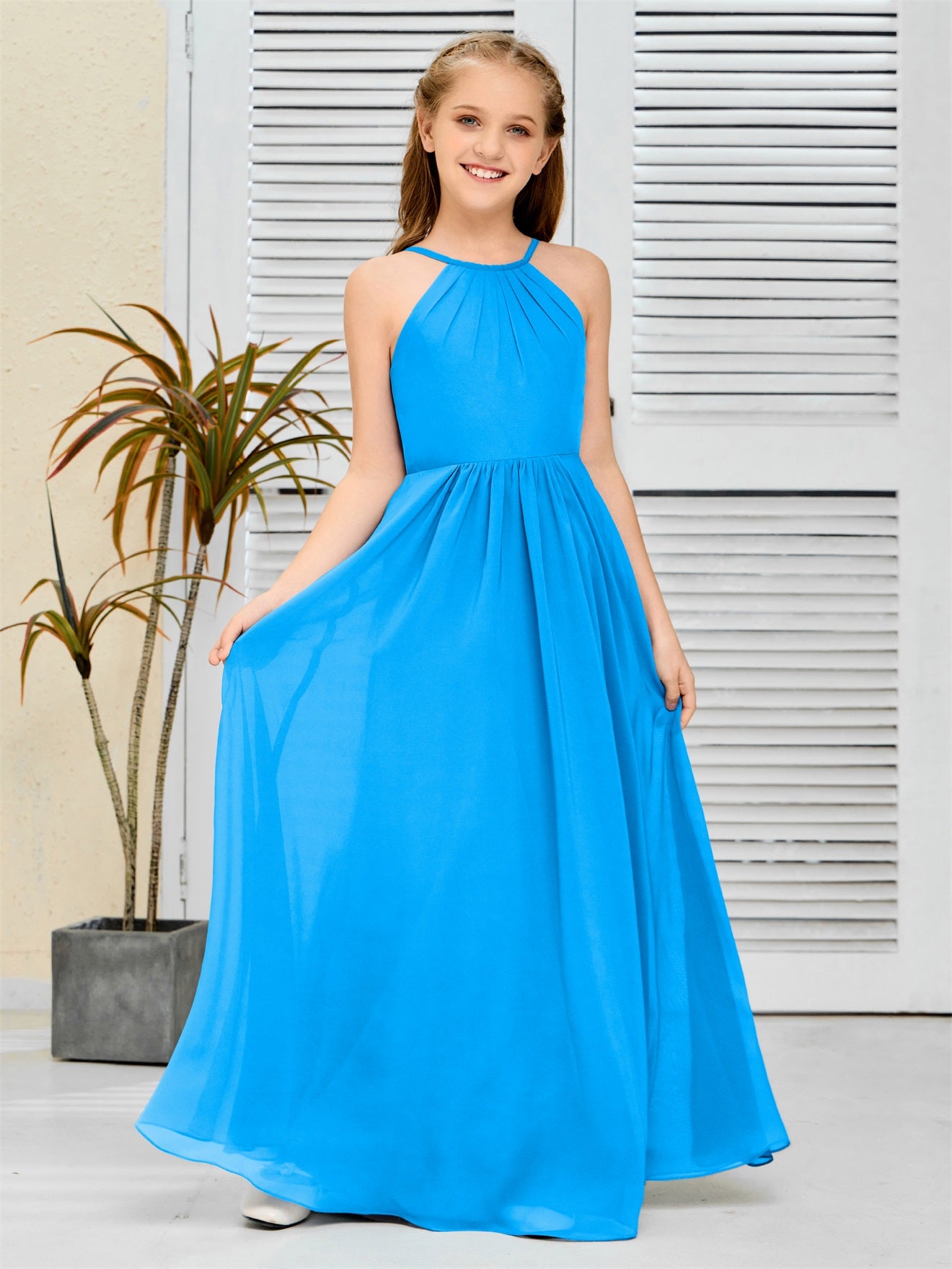Elegantes Chiffon Junior-Brautjungfernkleid mit hängendem Ausschnitt