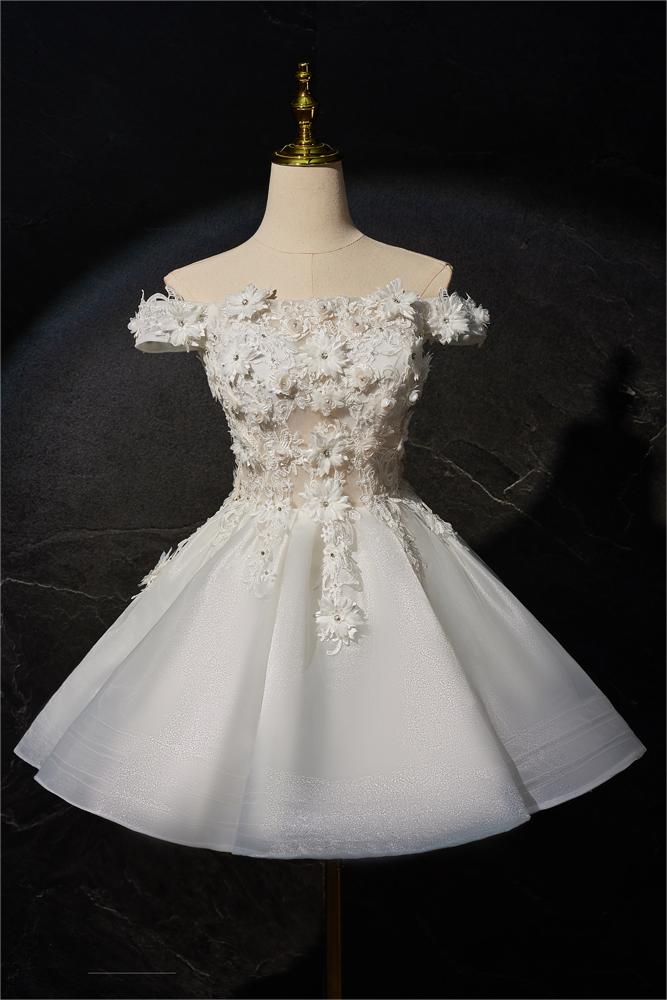 Elfenbeinfarbene schulterfreie Prinzessinnen Ballkleider mit 3D-Blumenapplikationen