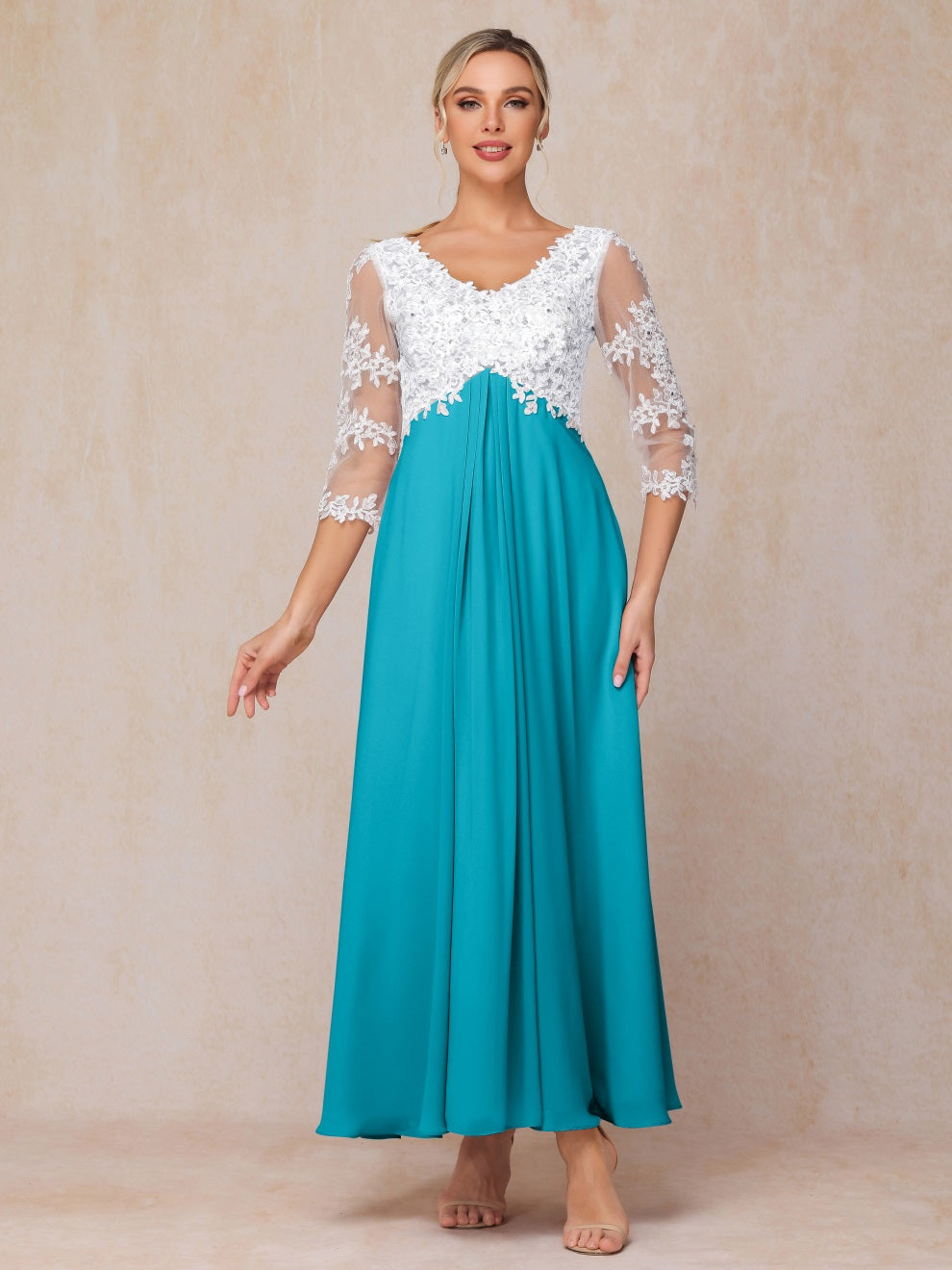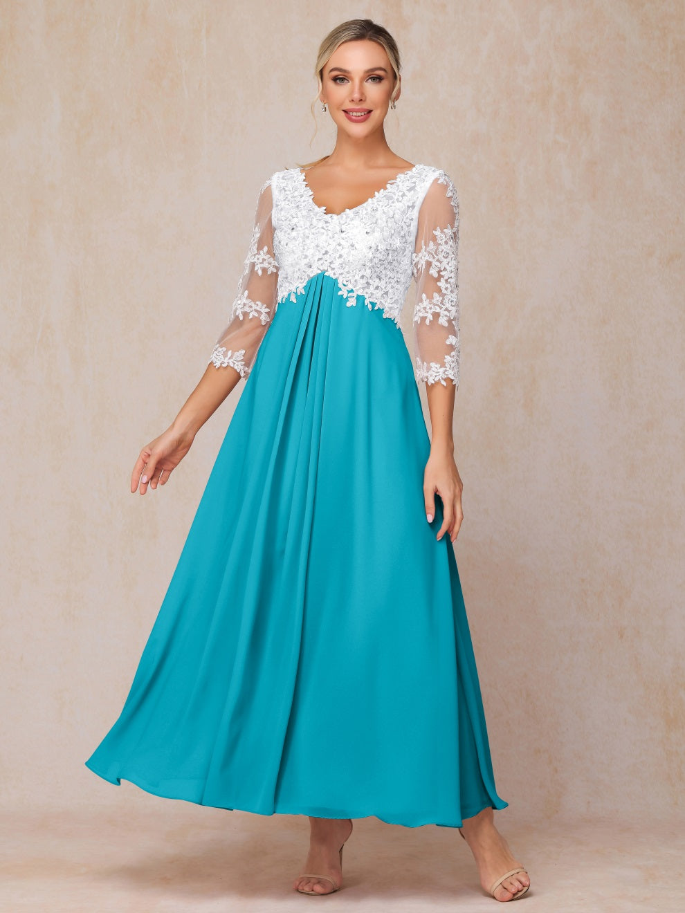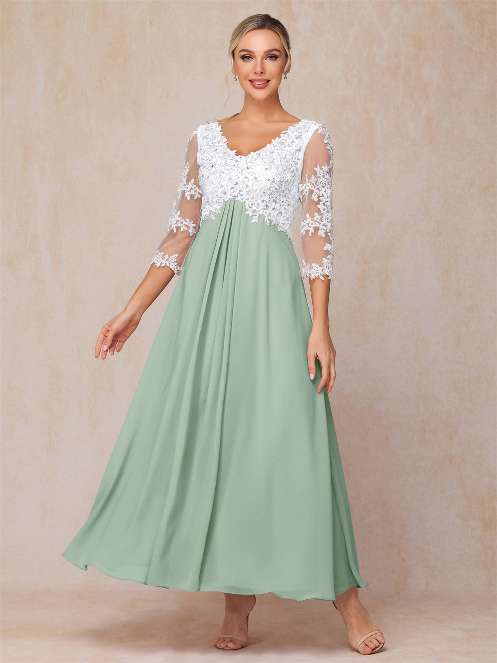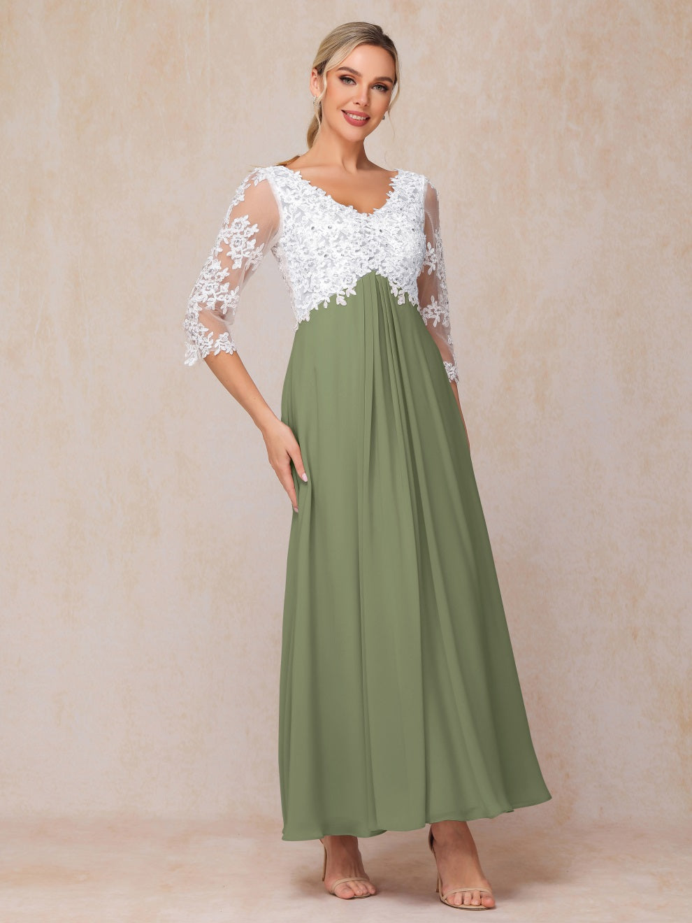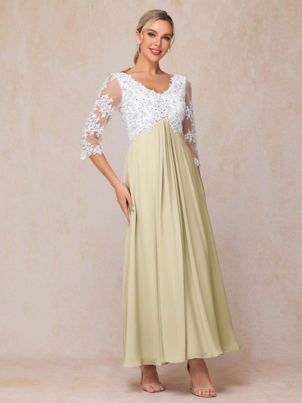 Empire Trapez Illusion 3/4 Ärmel Chiffon Spitze Mutter der Braut Kleid