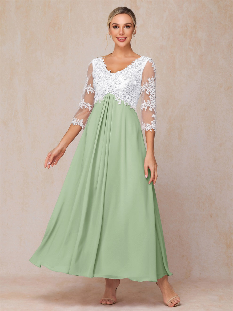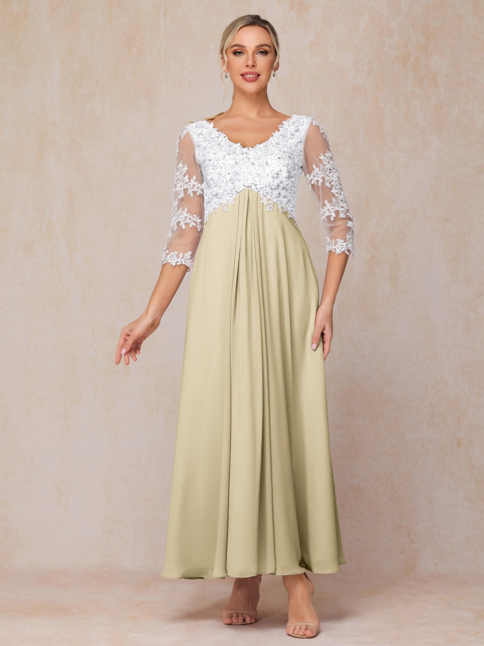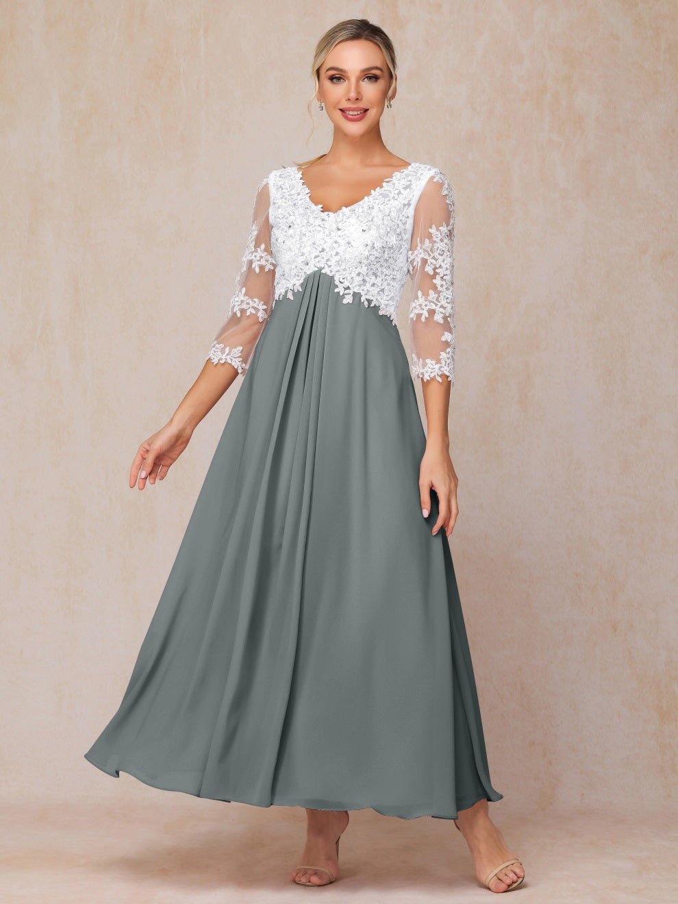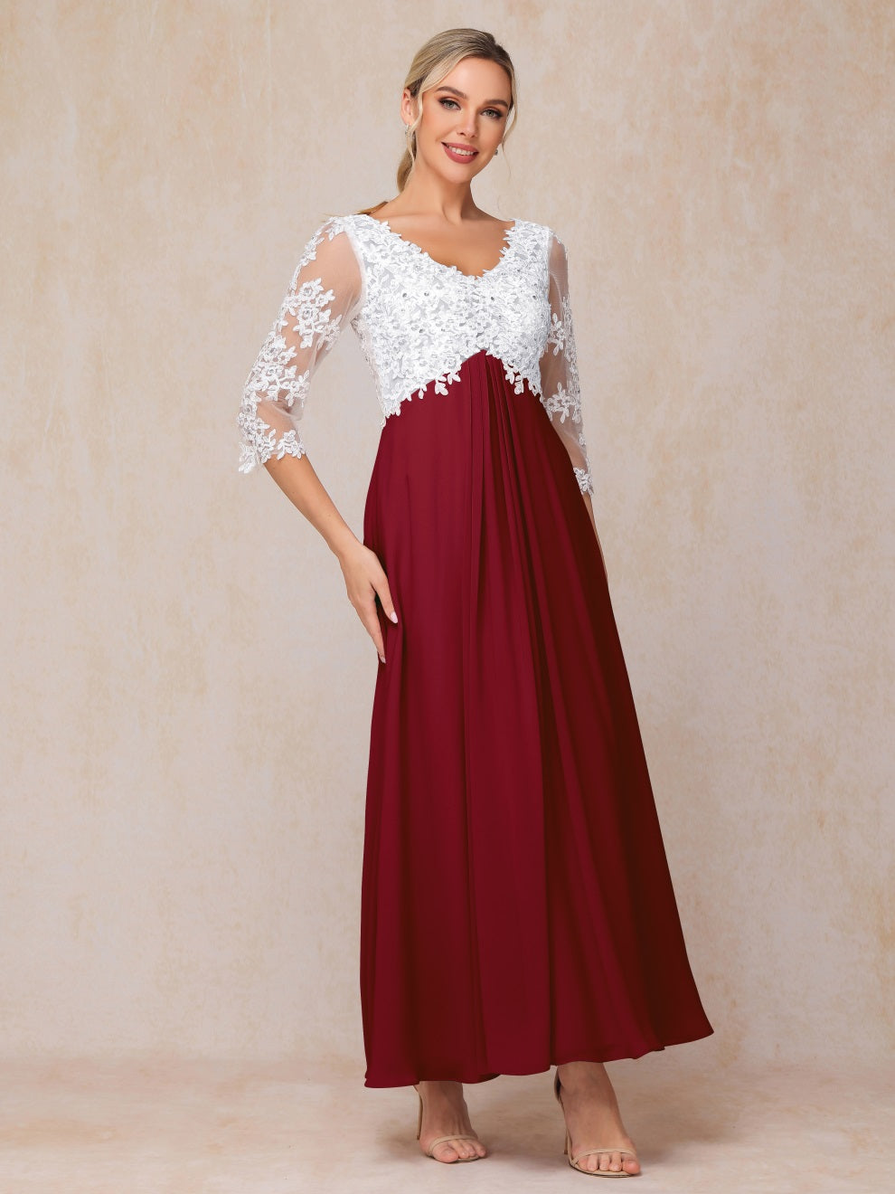 Empire Trapez Illusion 3/4 Ärmel Chiffon Spitze Mutter der Braut Kleid