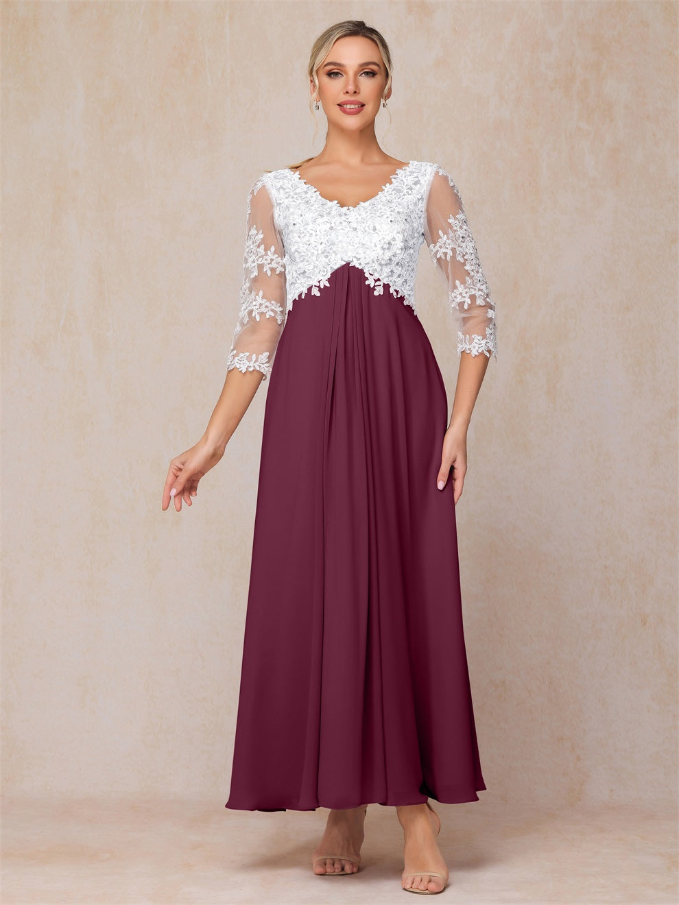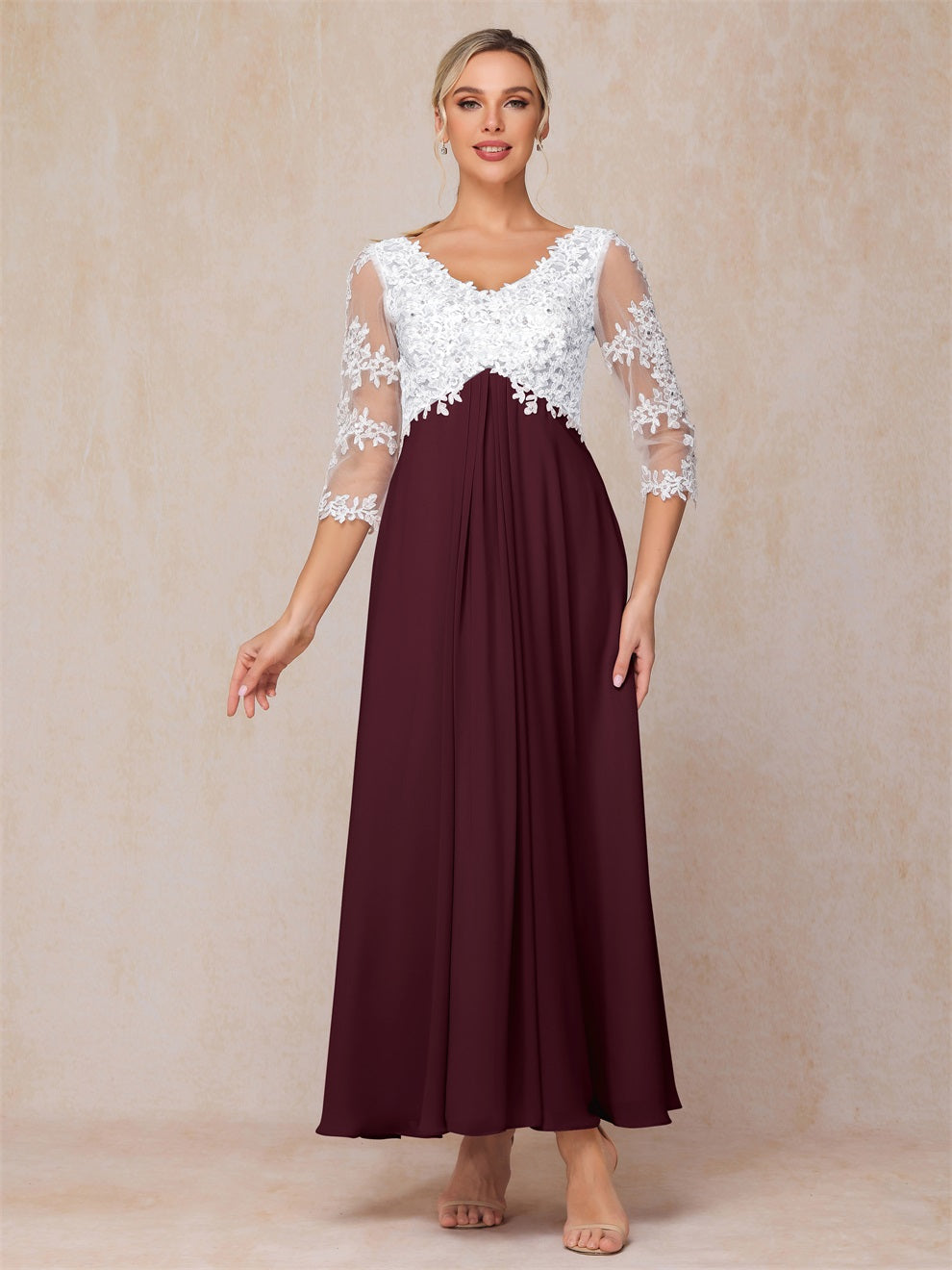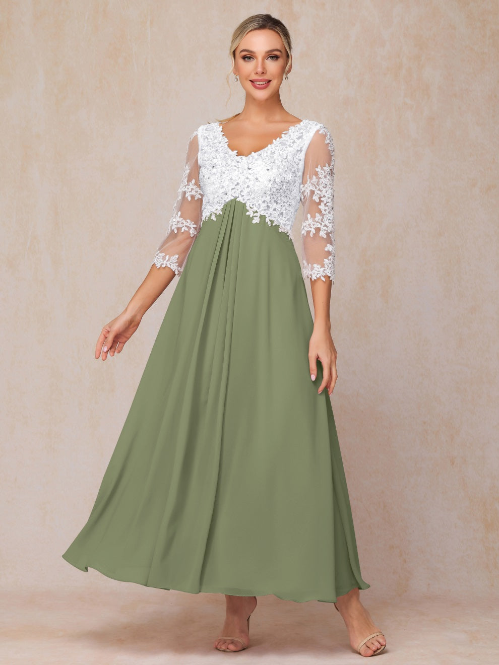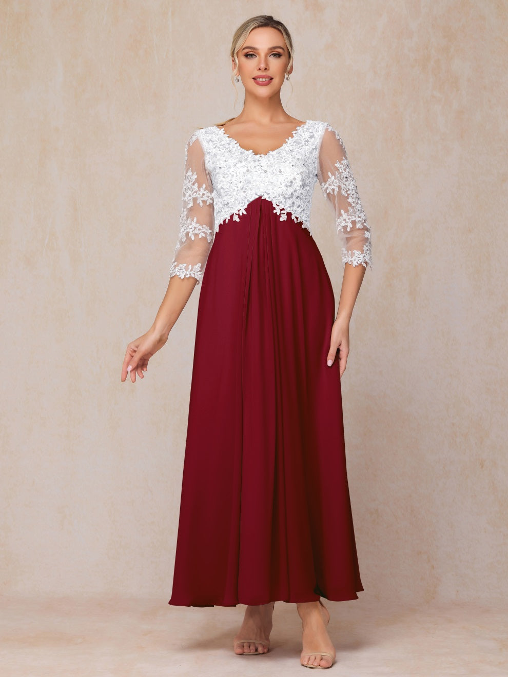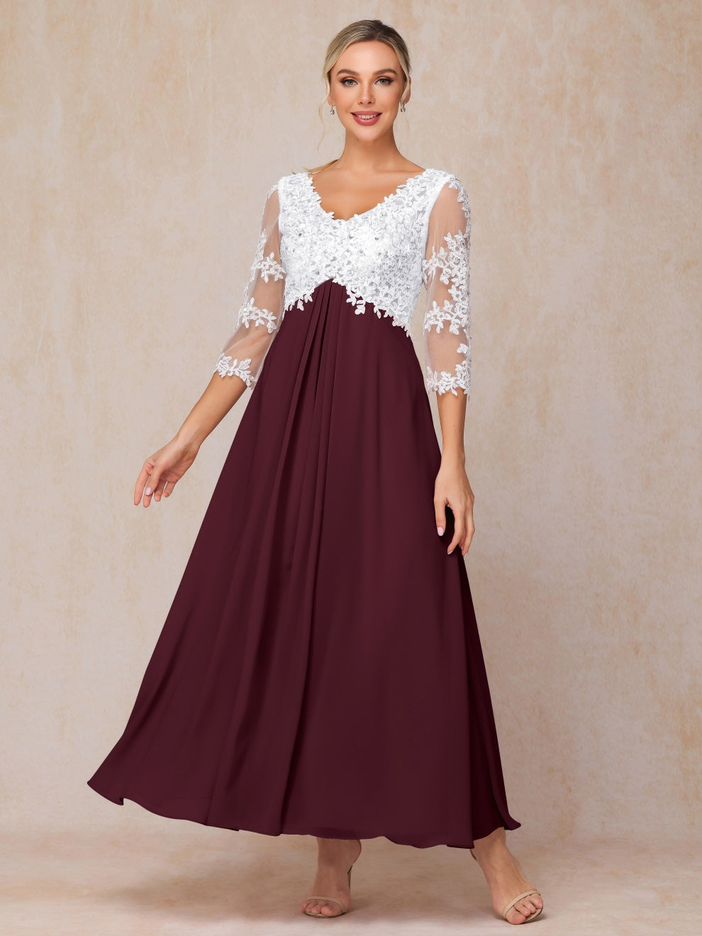 Empire Trapez Illusion 3/4 Ärmel Chiffon Spitze Mutter der Braut Kleid
