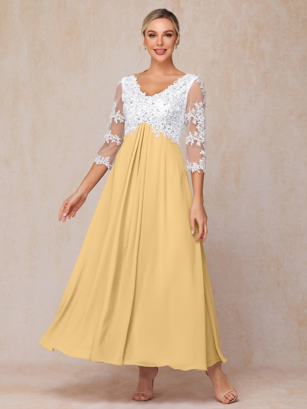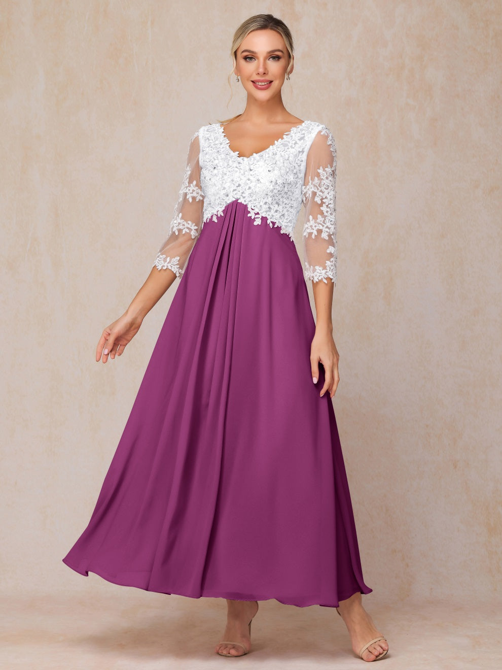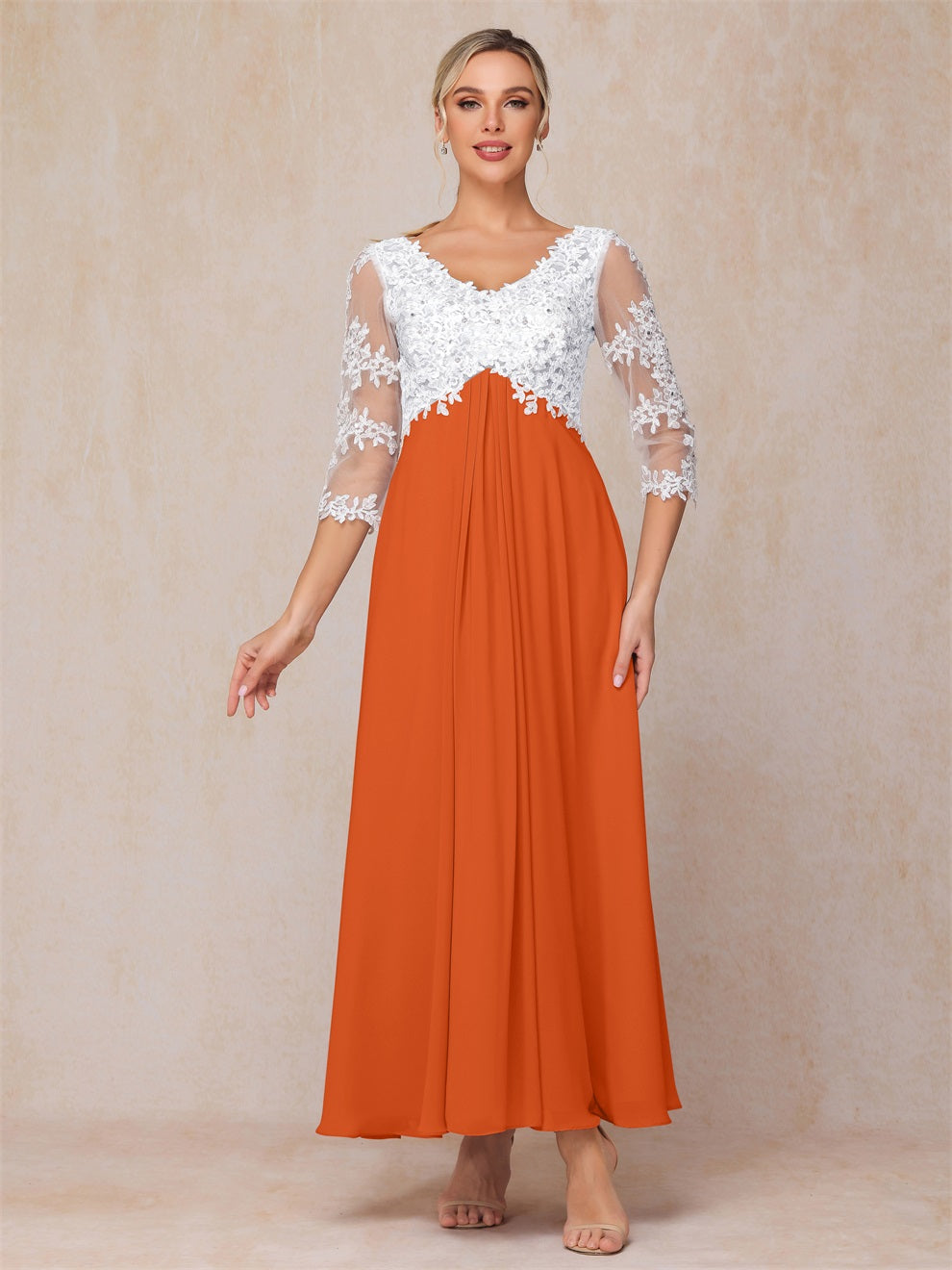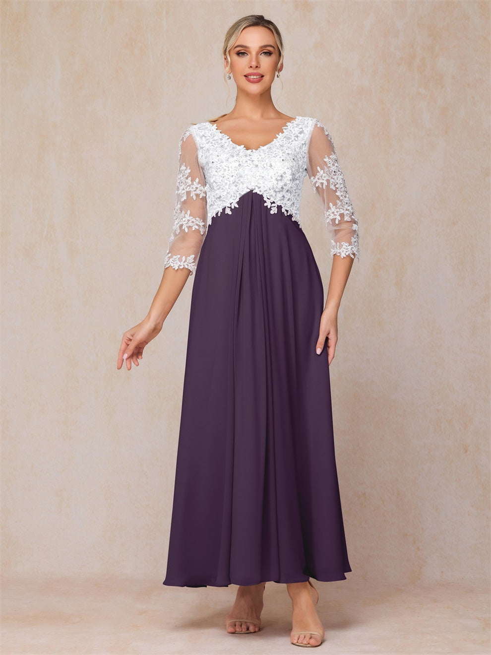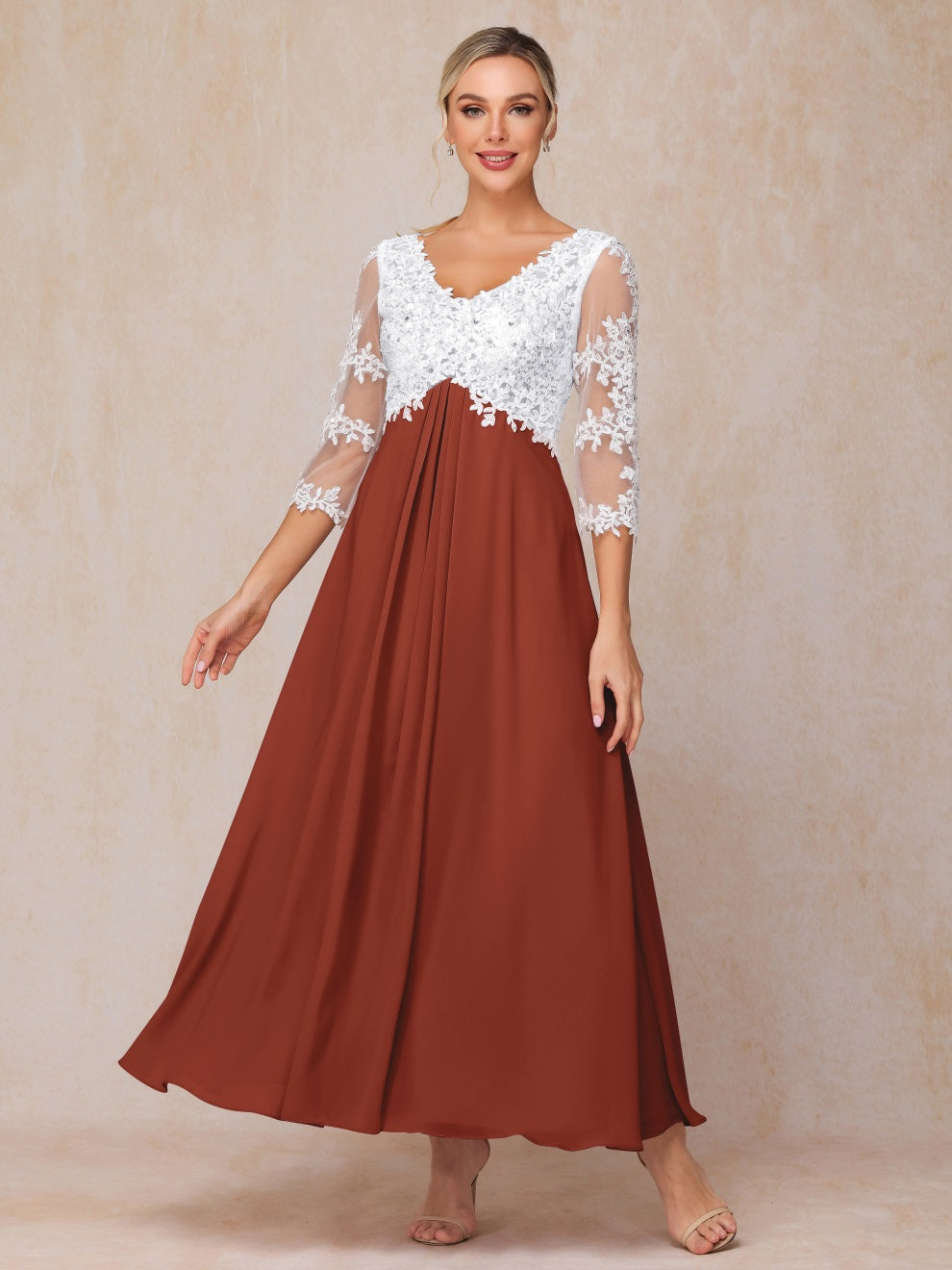 Empire Trapez Illusion 3/4 Ärmel Chiffon Spitze Mutter der Braut Kleid