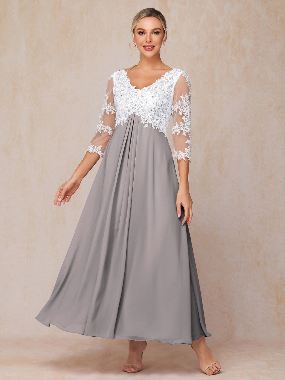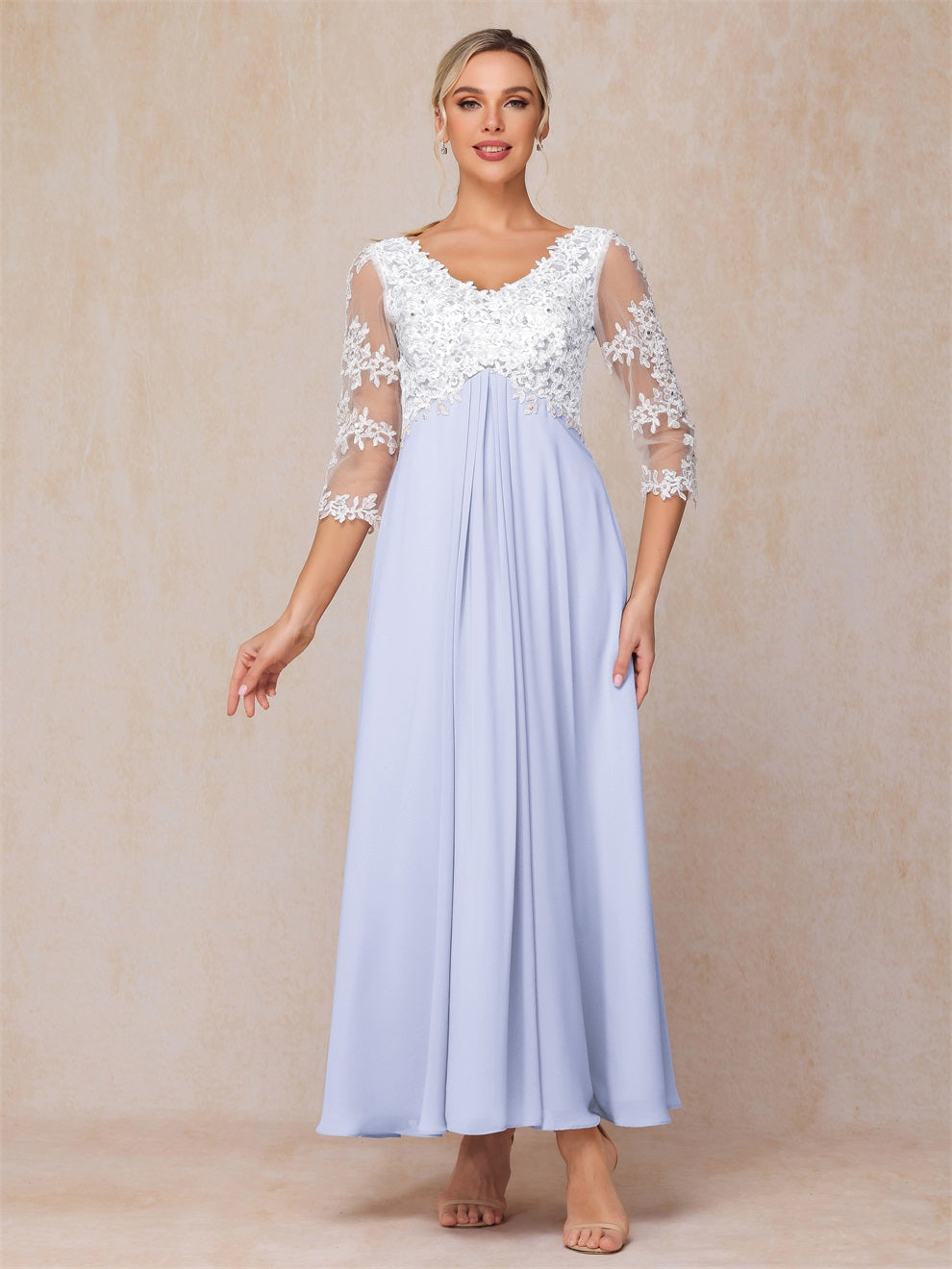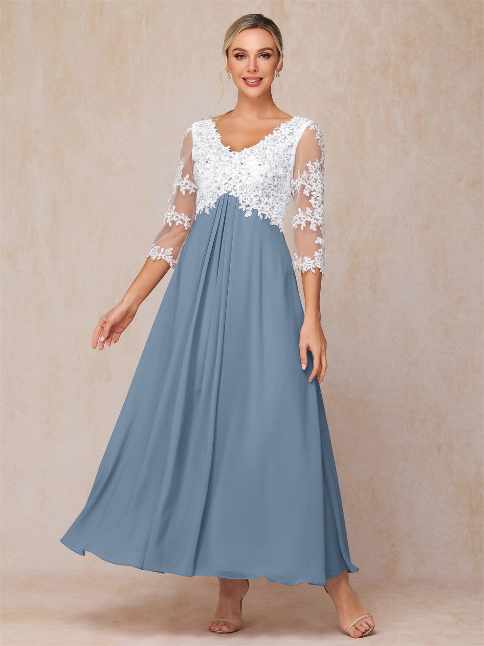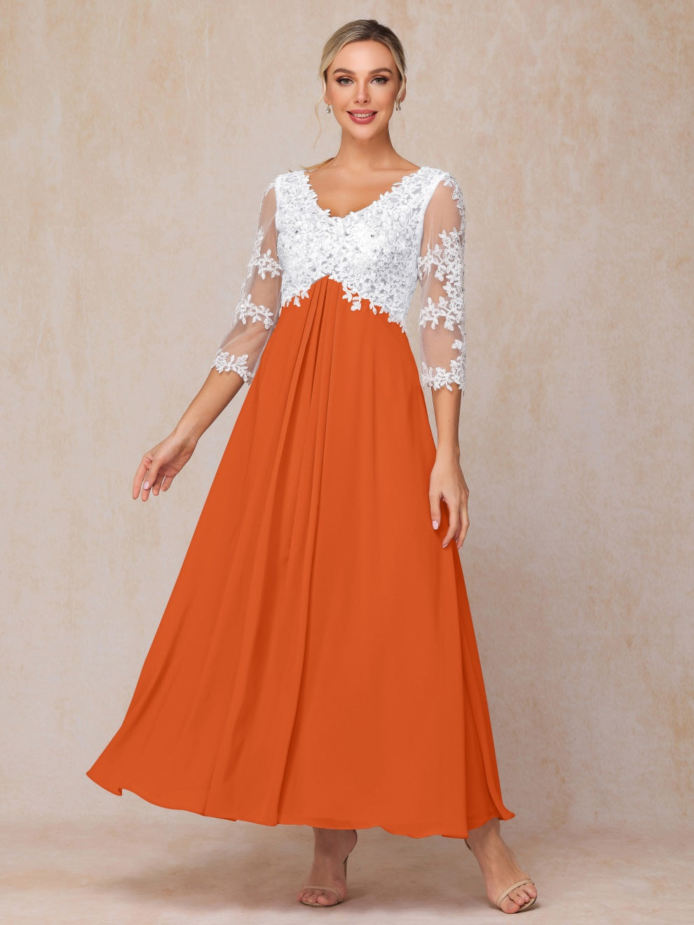 Empire Trapez Illusion 3/4 Ärmel Chiffon Spitze Mutter der Braut Kleid