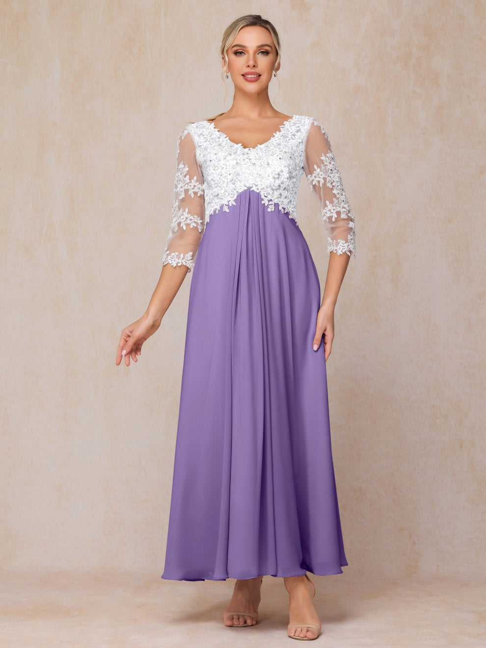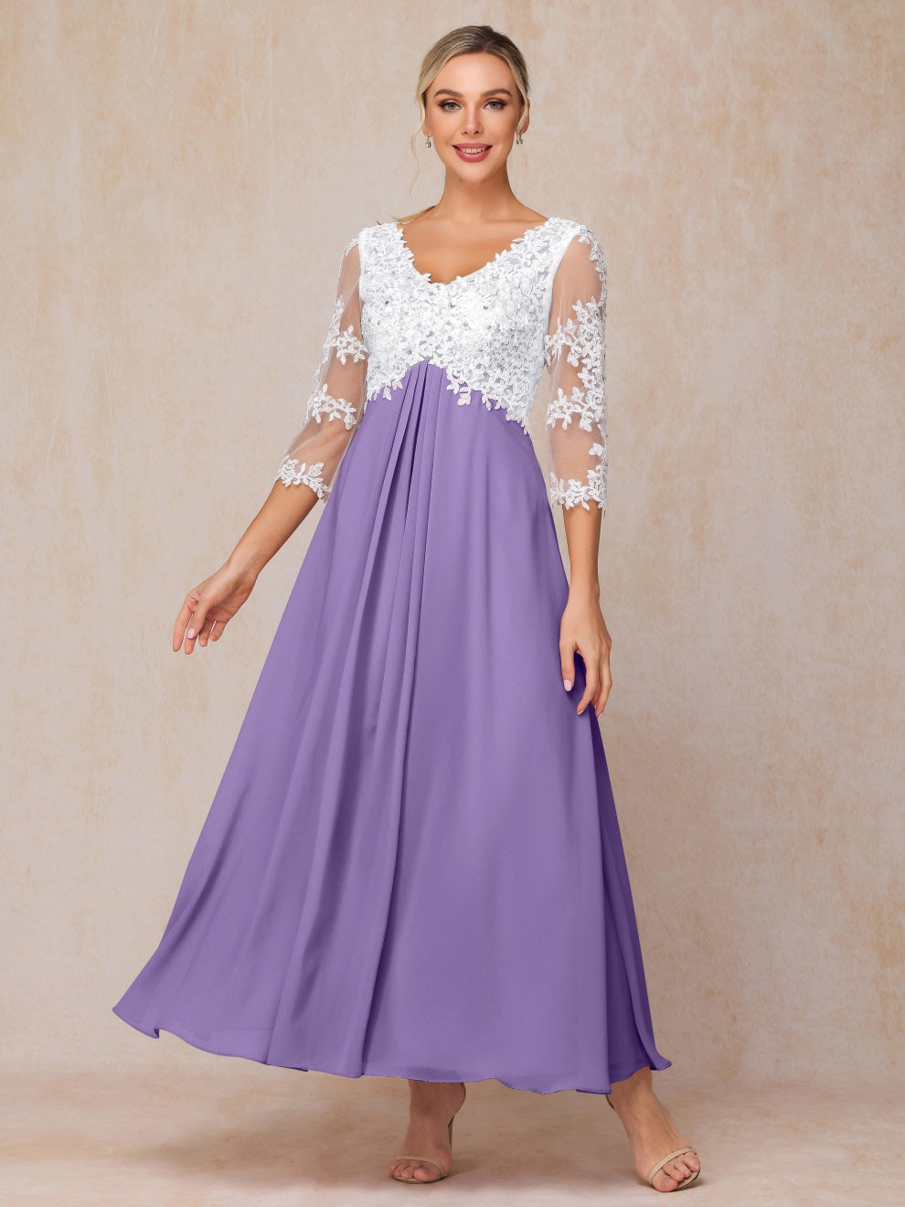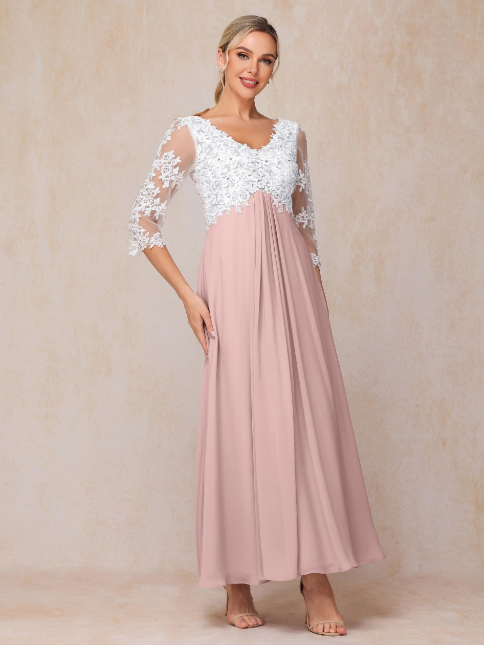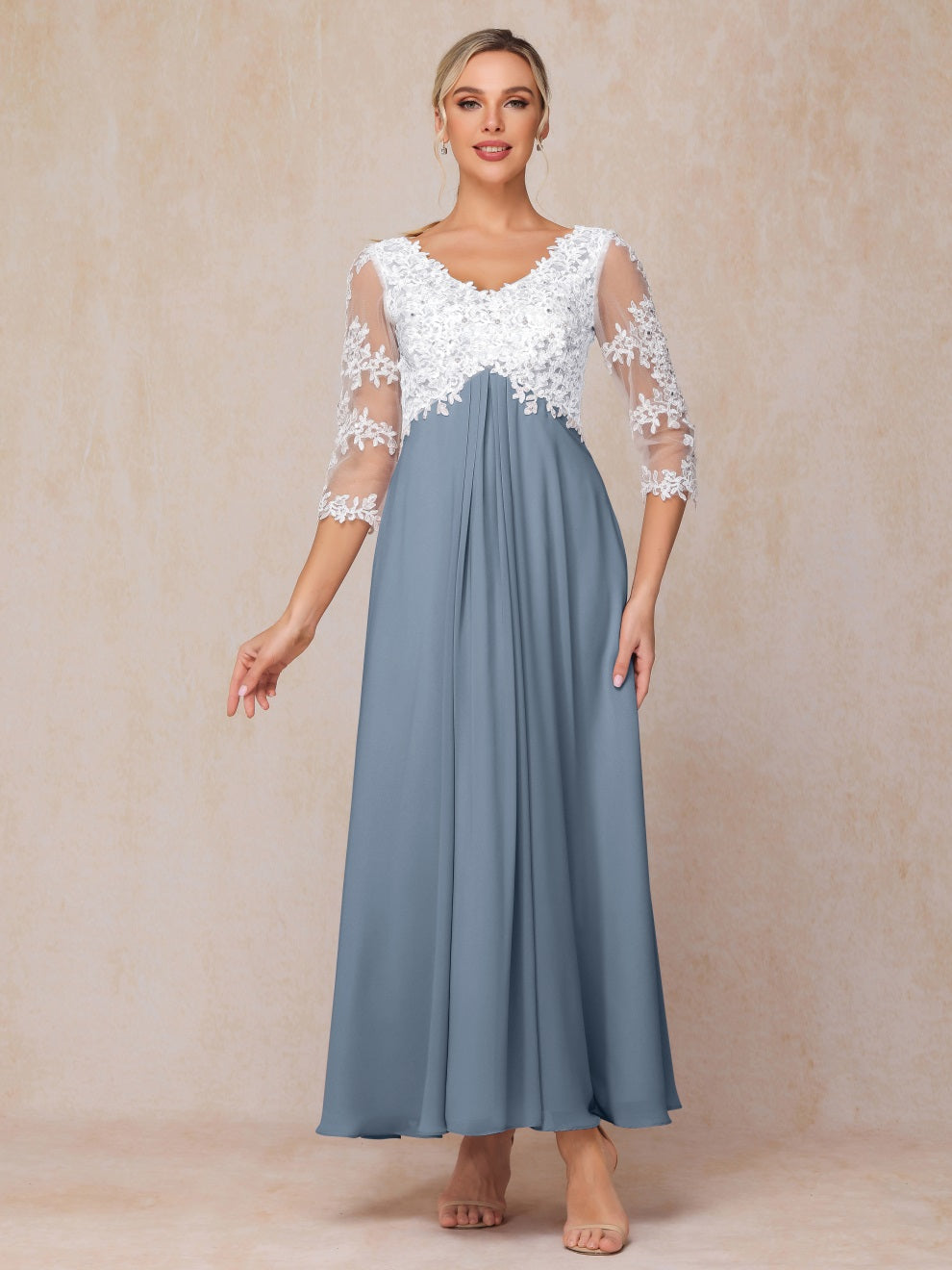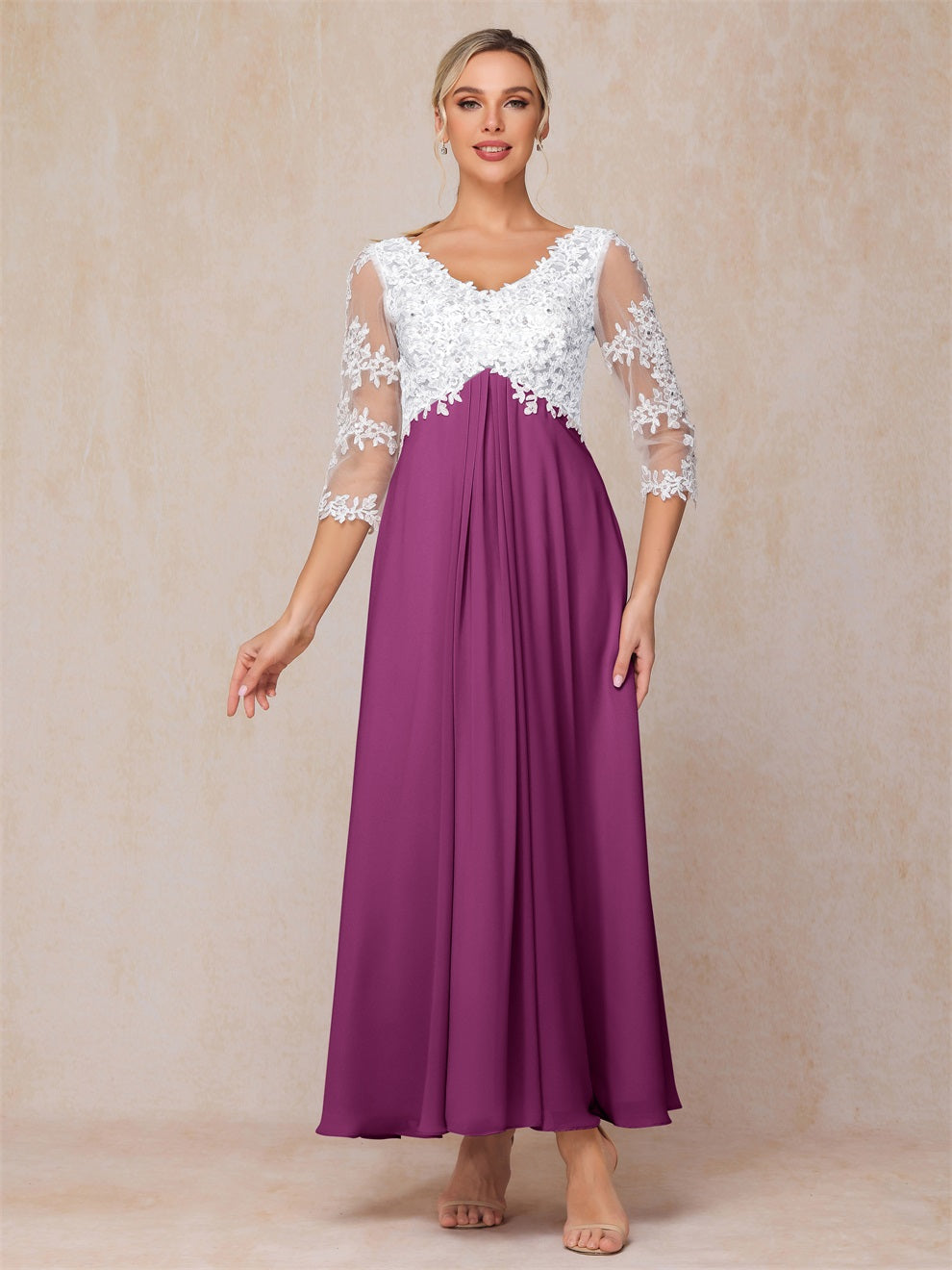 Empire Trapez Illusion 3/4 Ärmel Chiffon Spitze Mutter der Braut Kleid