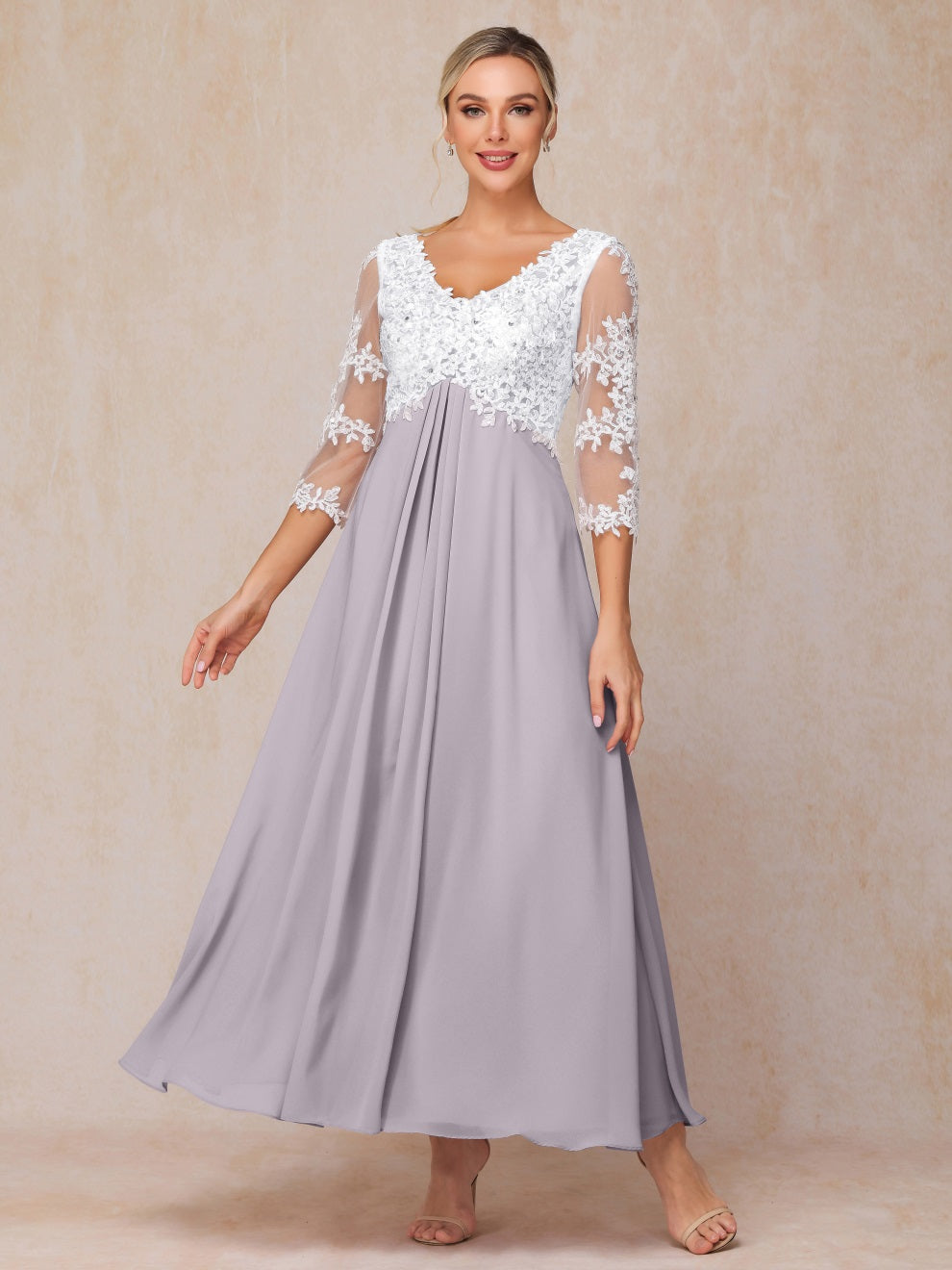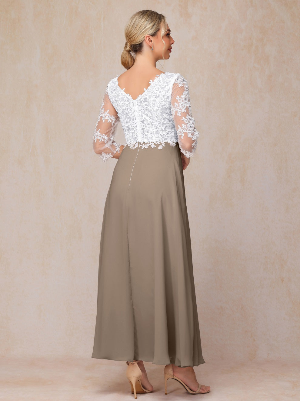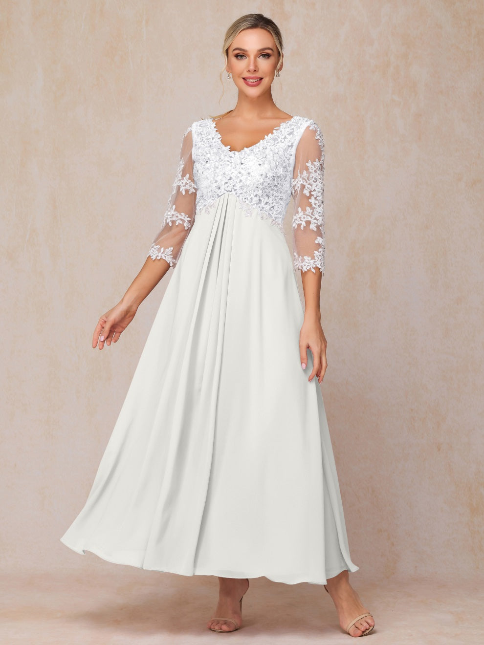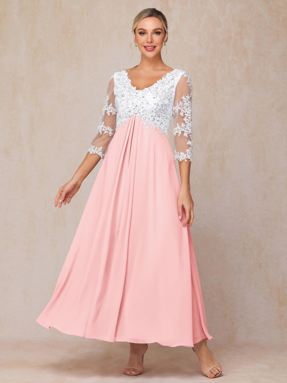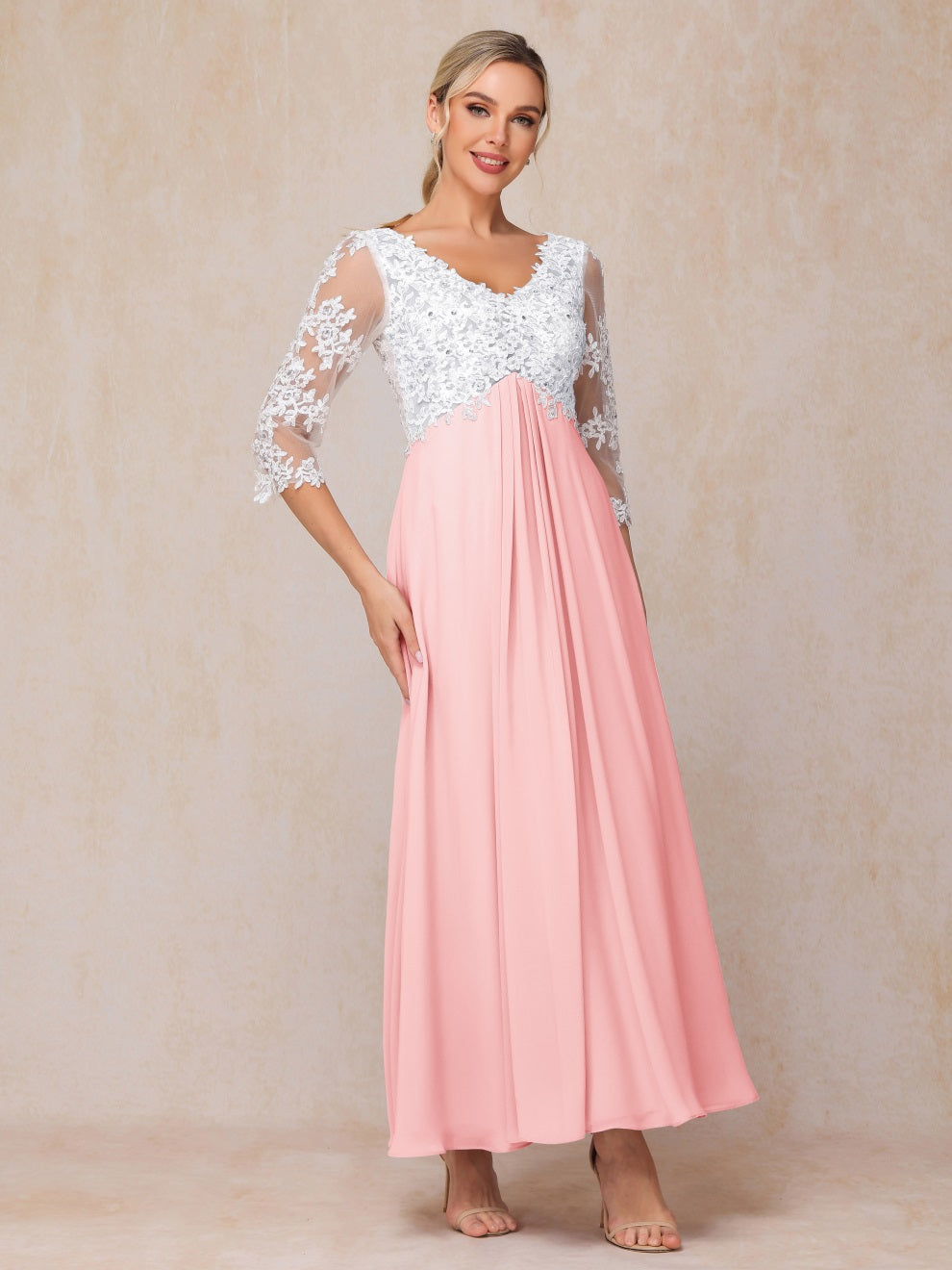 Empire Trapez Illusion 3/4 Ärmel Chiffon Spitze Mutter der Braut Kleid